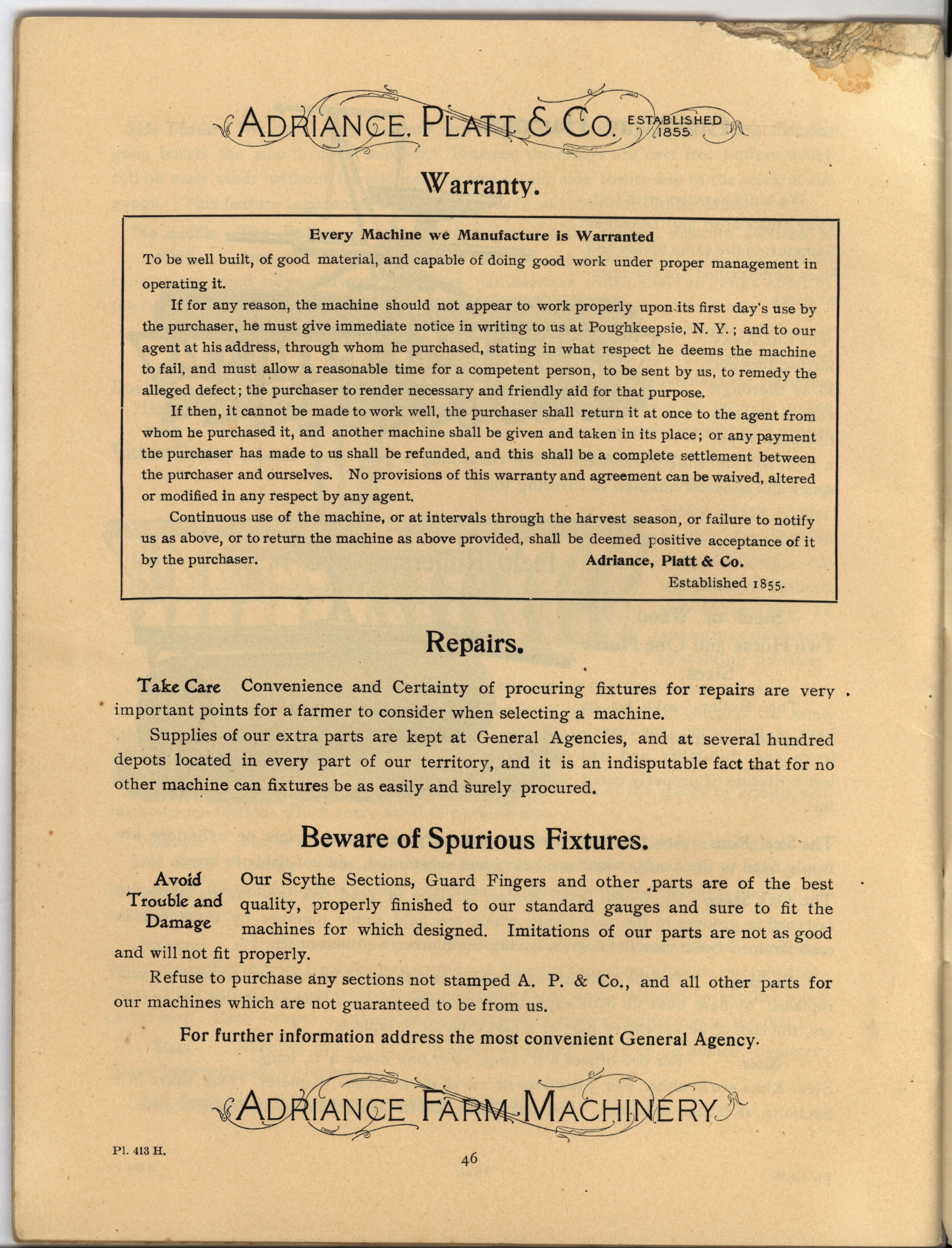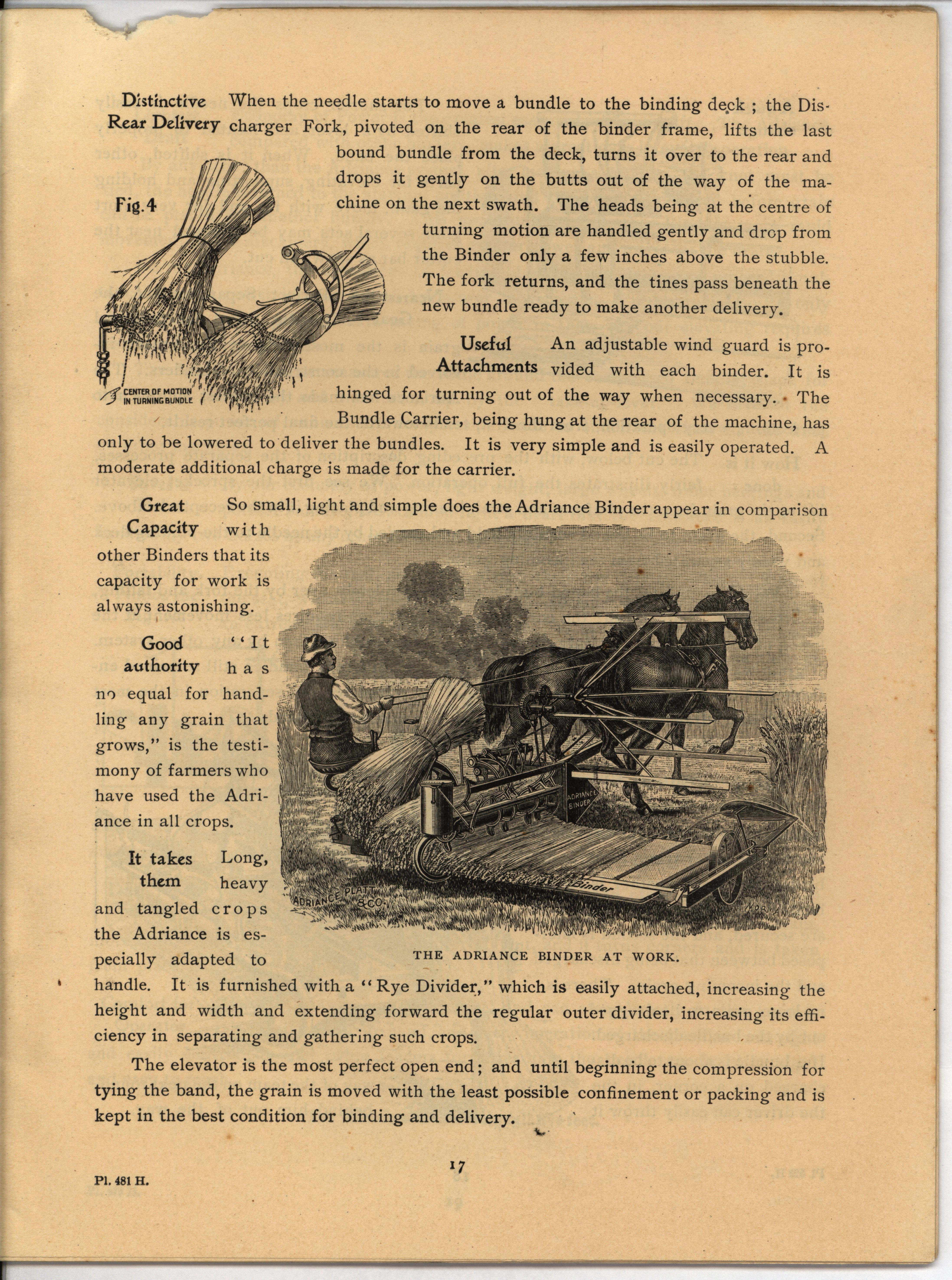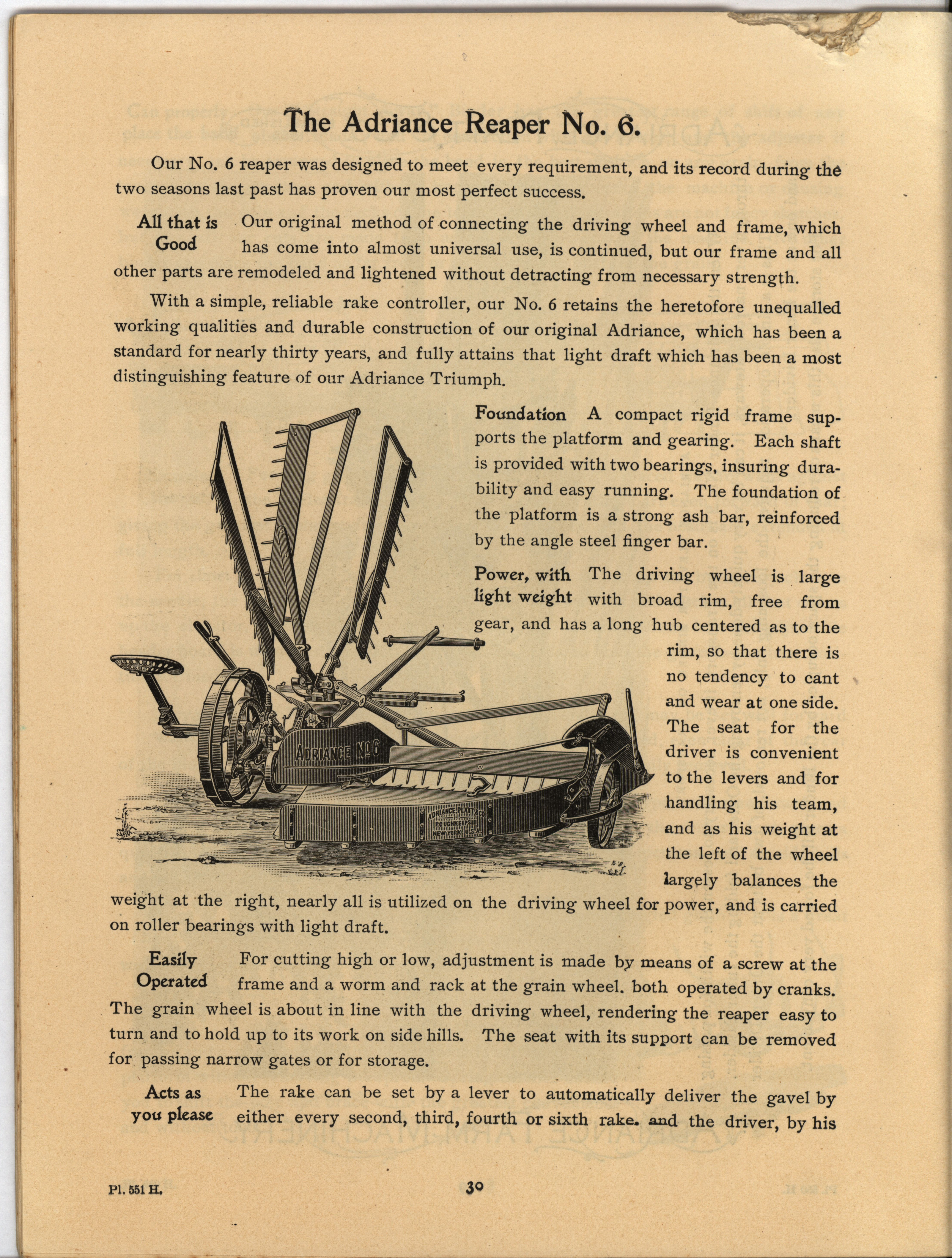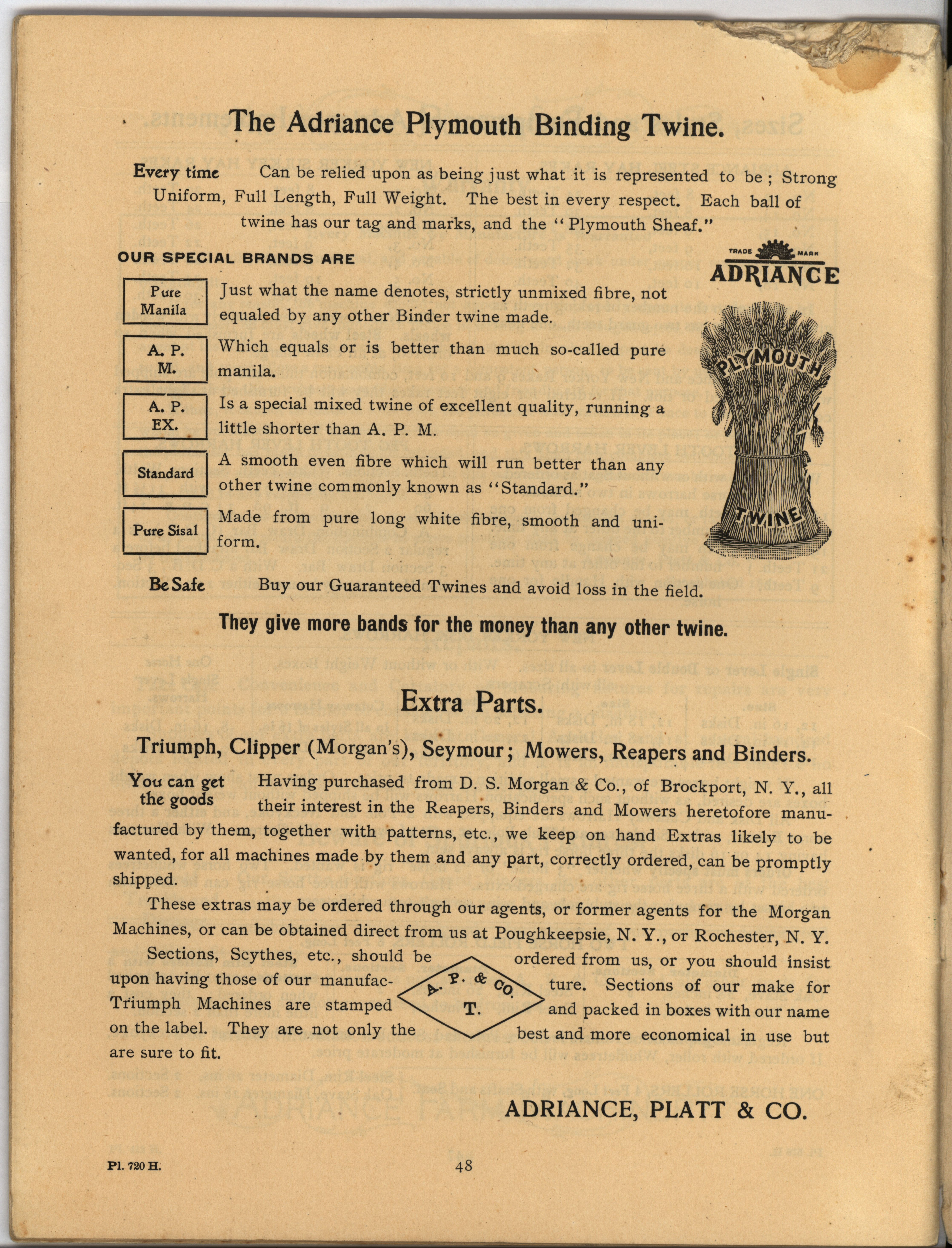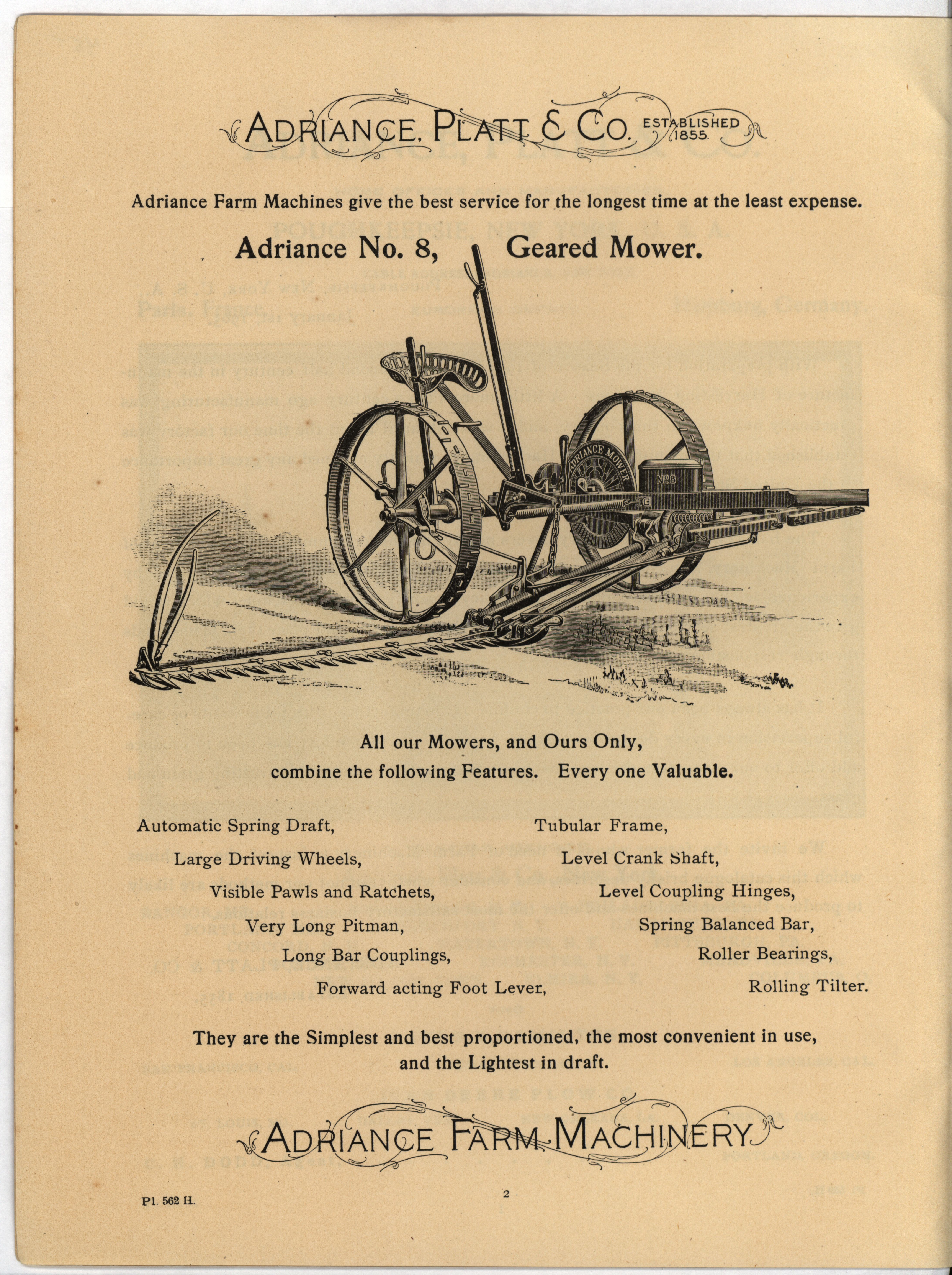 - "Adriance farm machinery--Adriance, Platt & Co.", Agricultural Machinery Literature Collection, Iowa State University Library Digital Collections