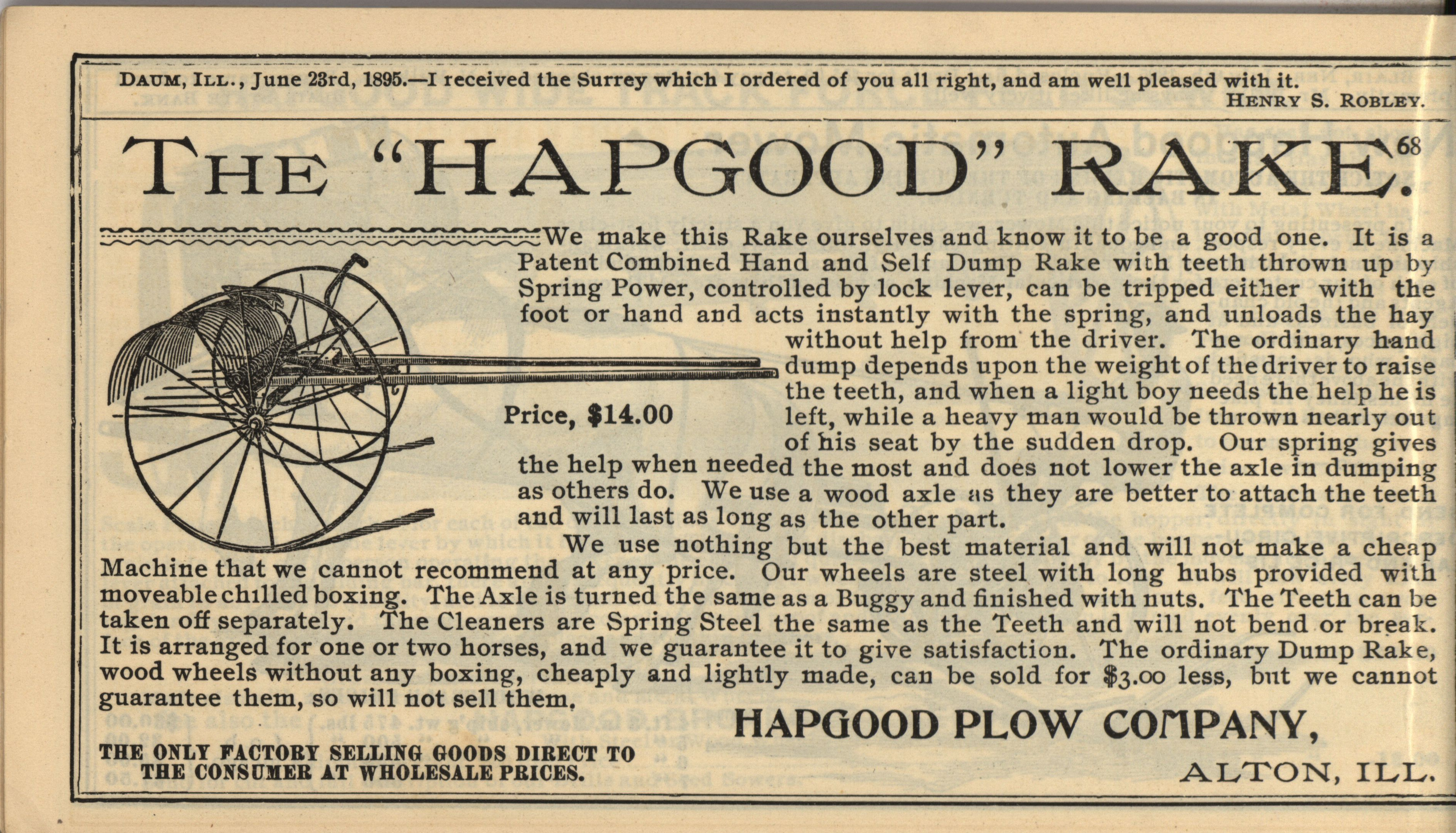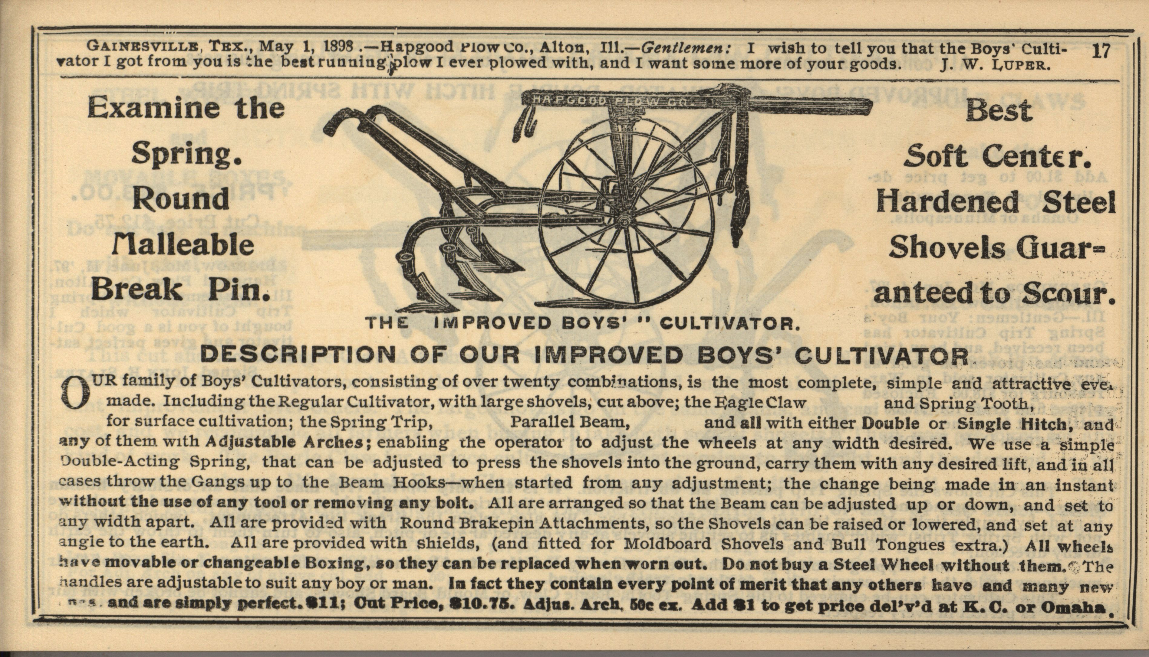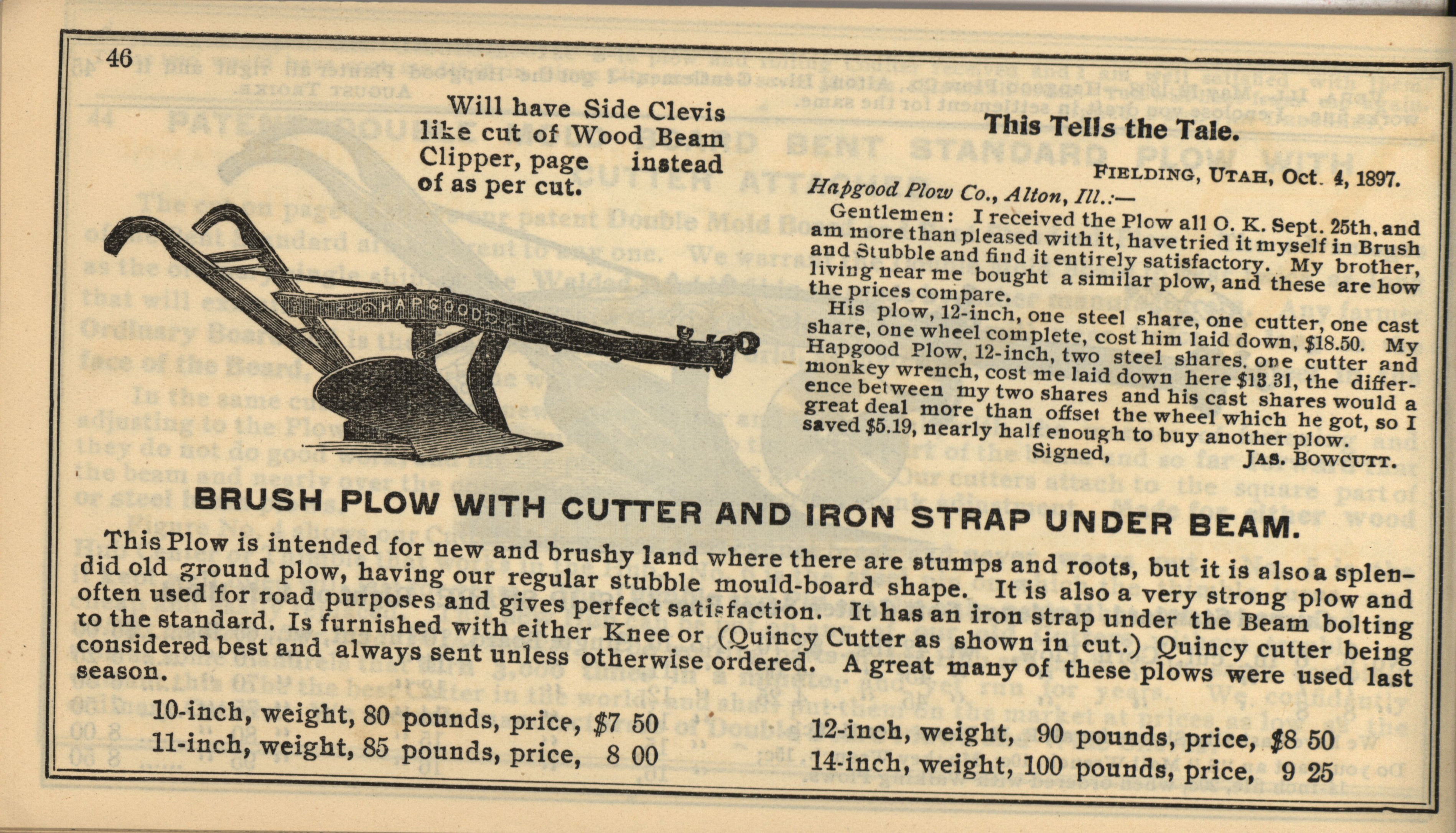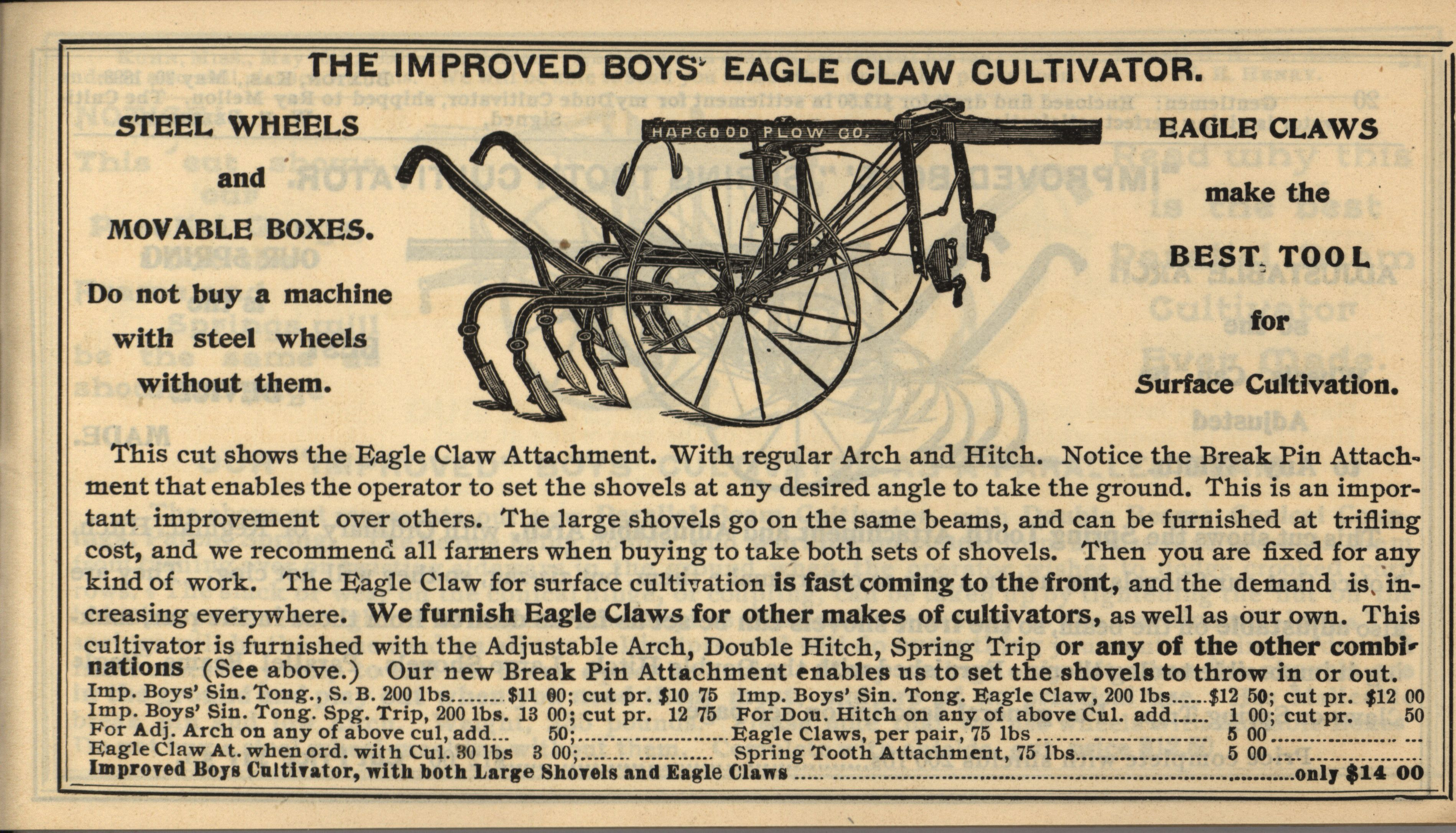 - "Hapgood Plow Company 1899 catalog", Agricultural Machinery Literature Collection, Iowa State University Library Digital Collections