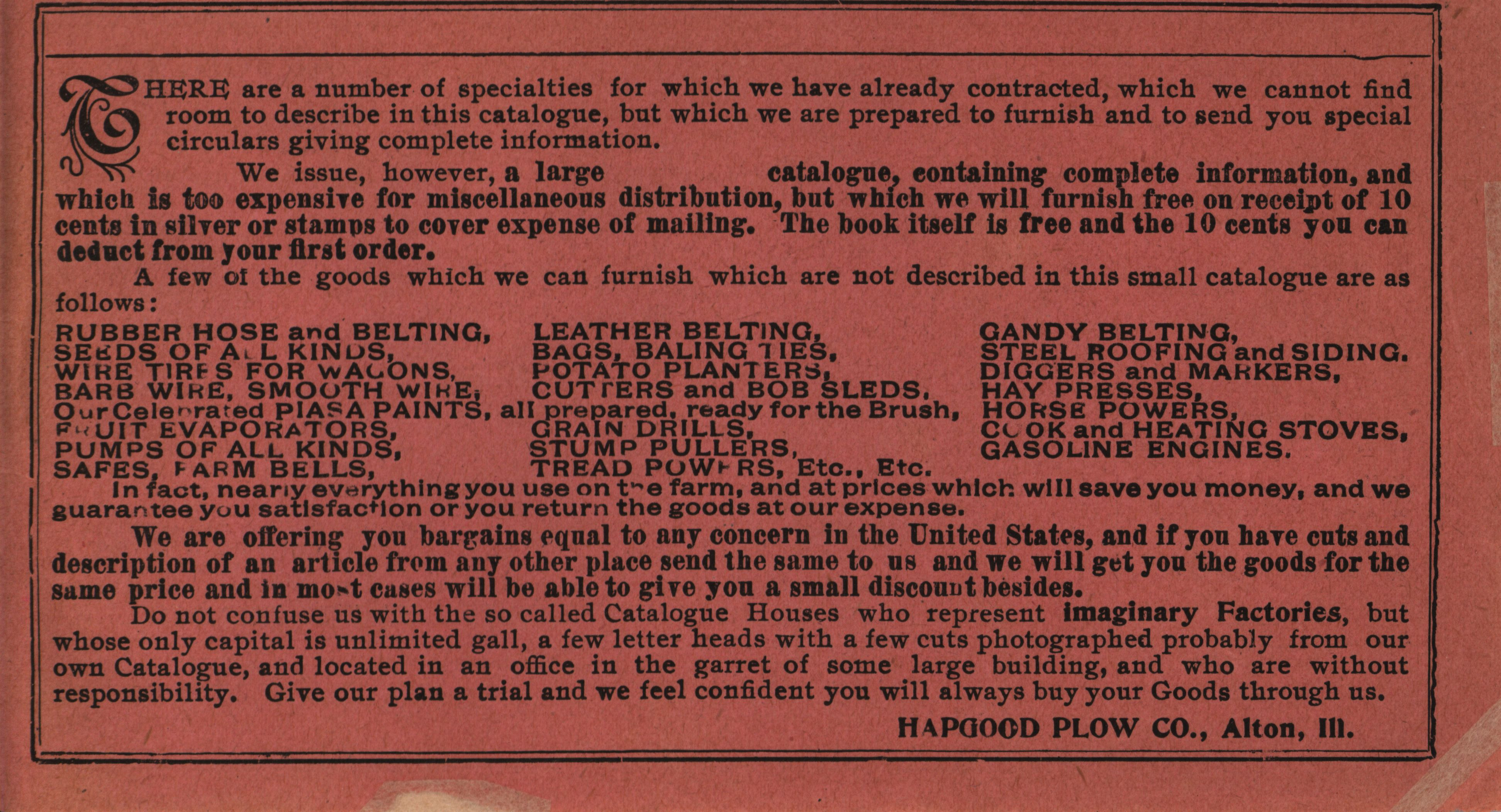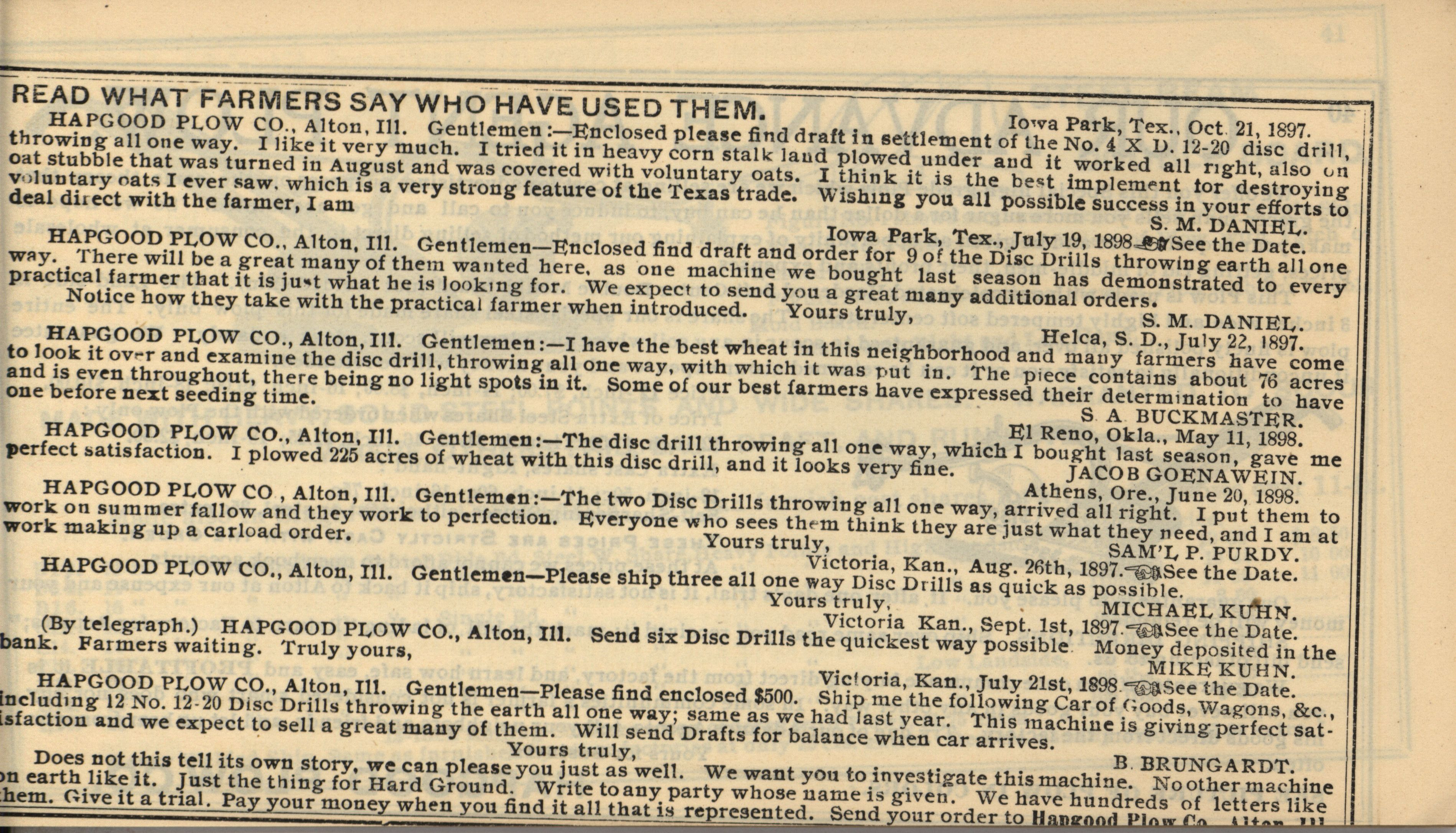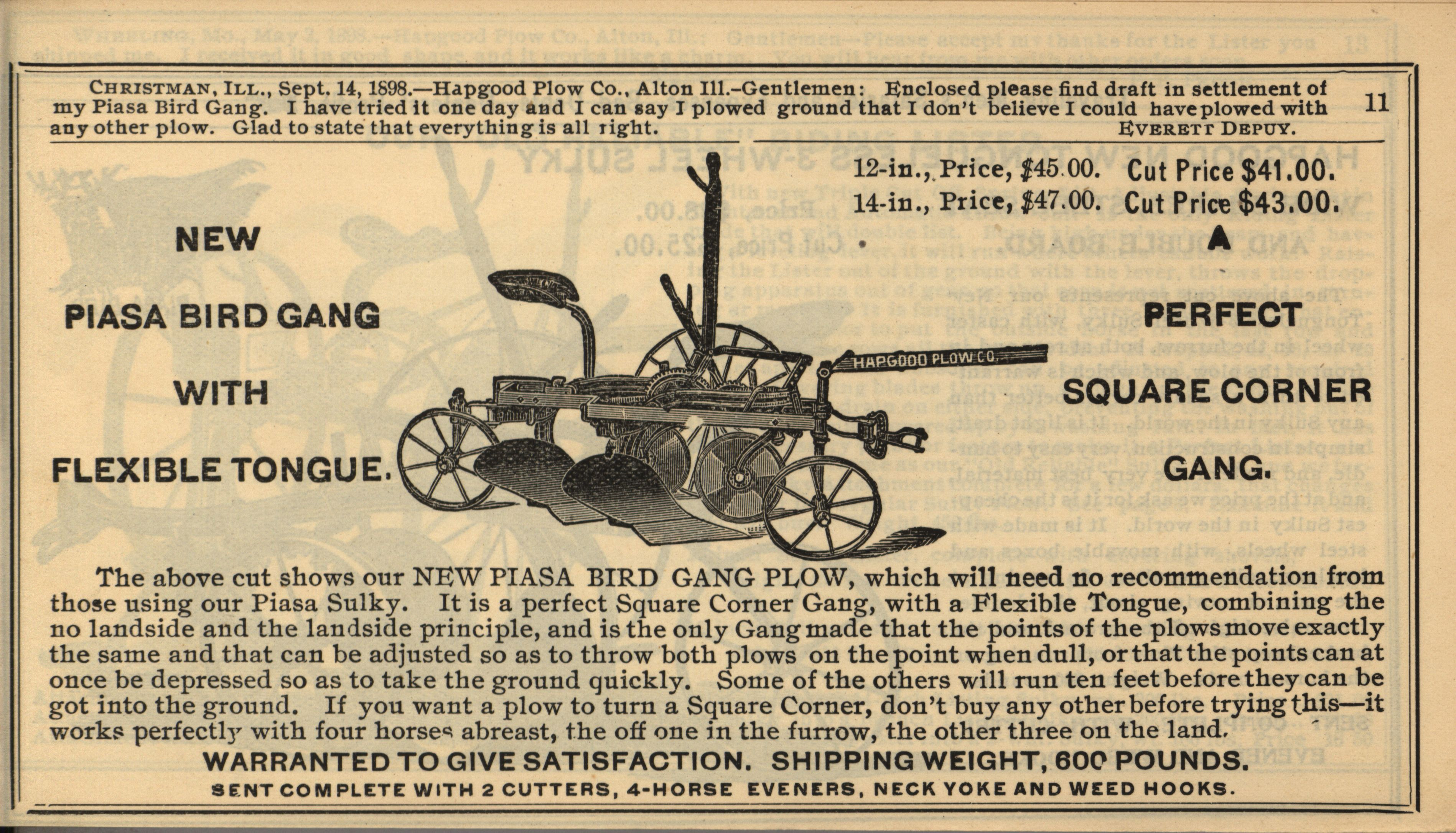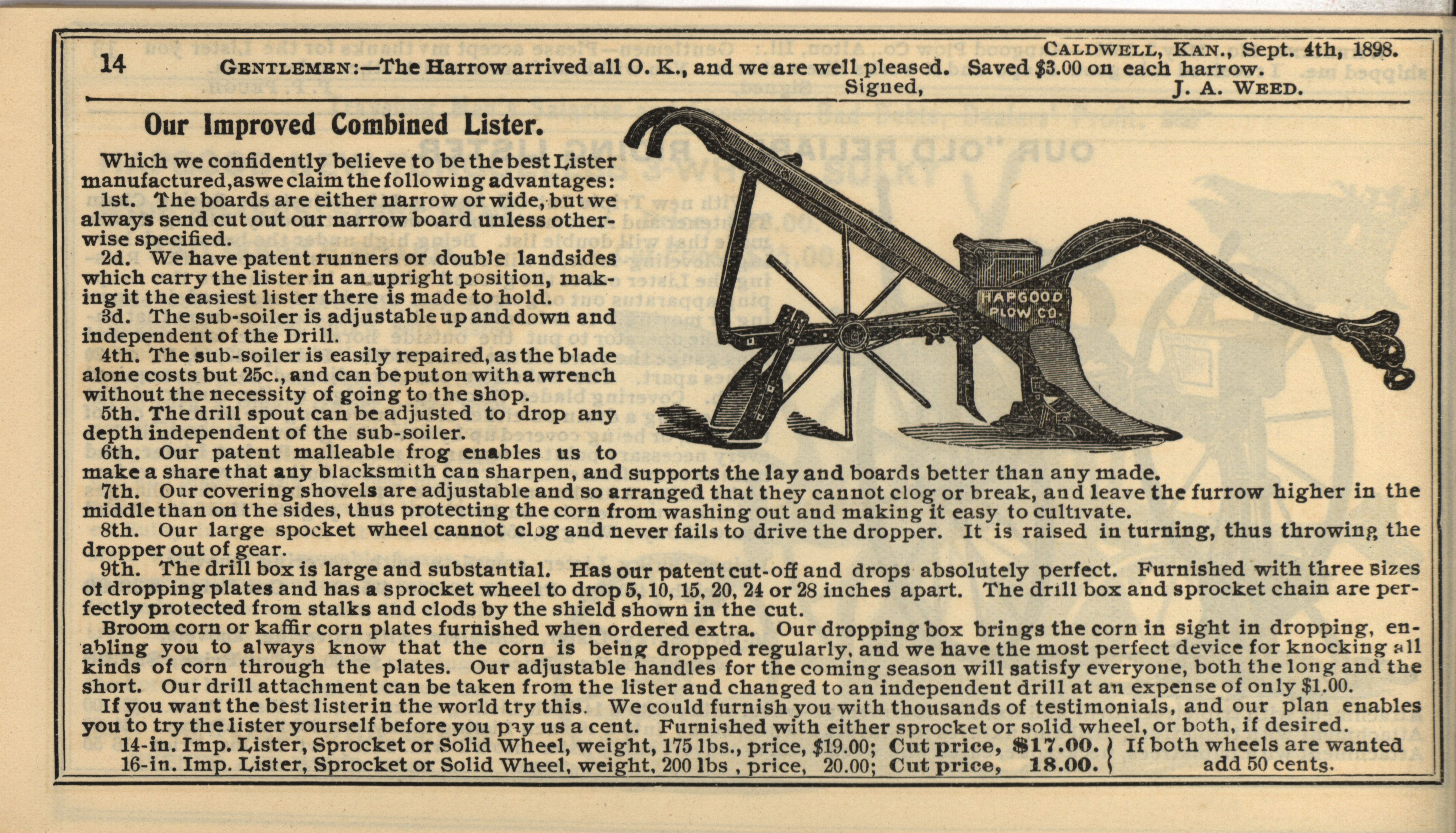 - "Hapgood Plow Company 1899 catalog", Agricultural Machinery Literature Collection, Iowa State University Library Digital Collections