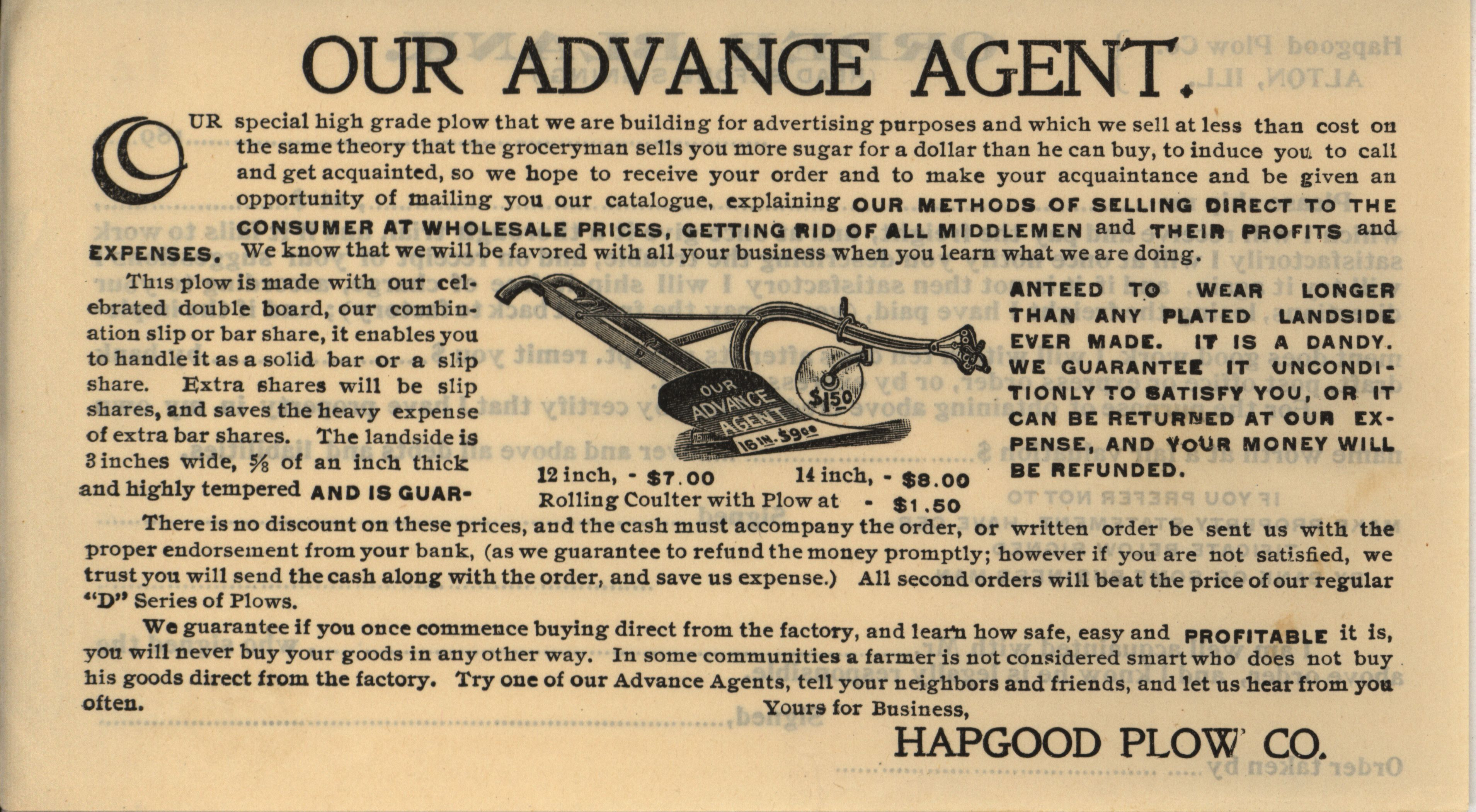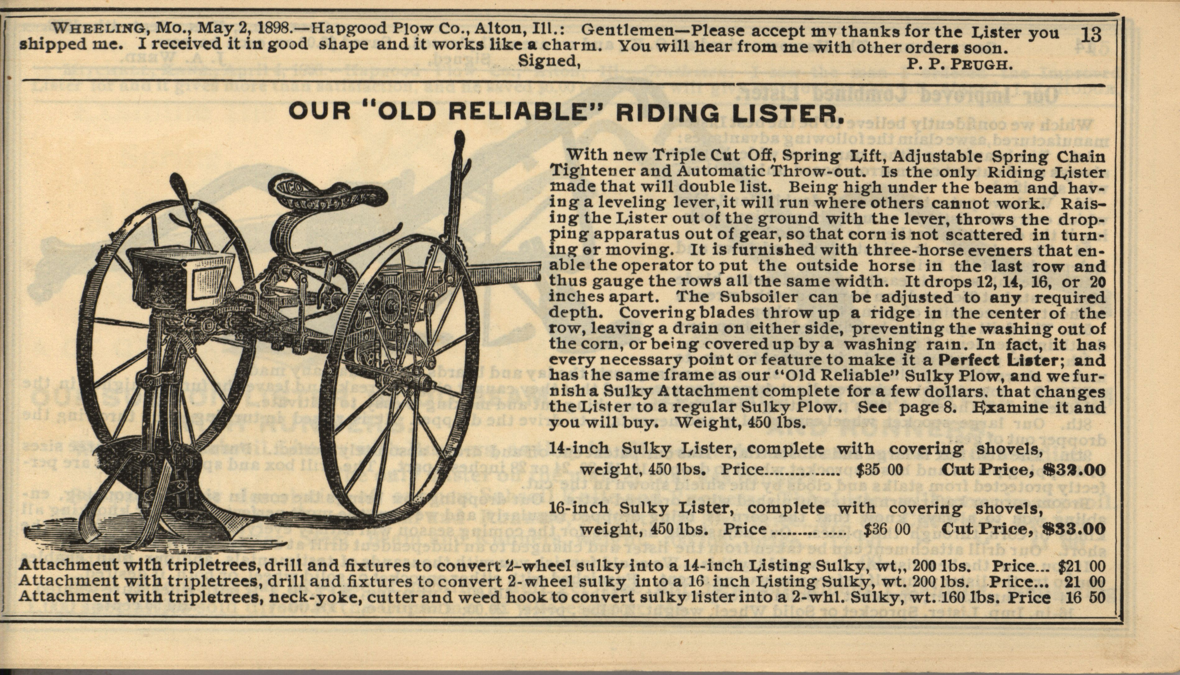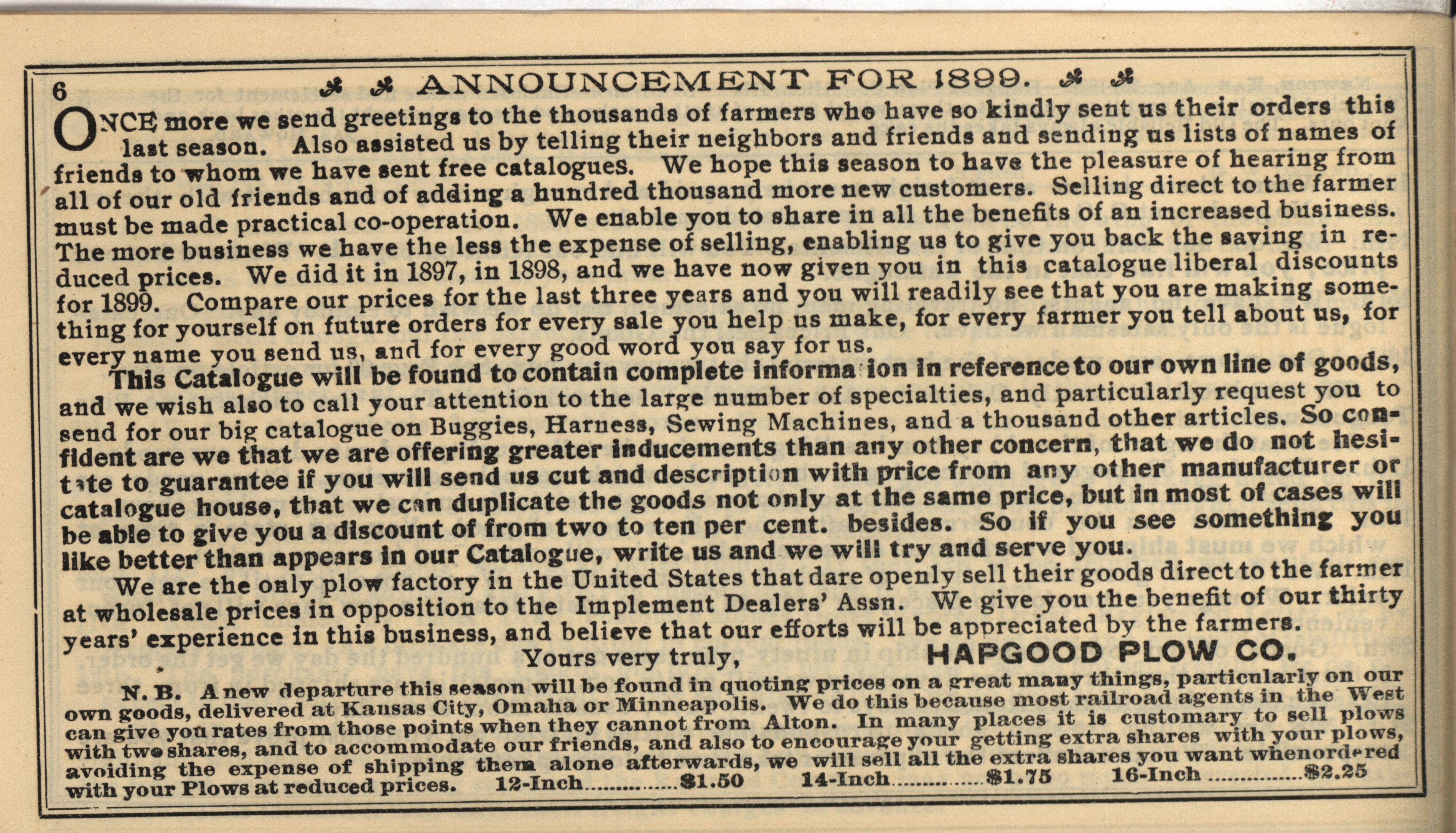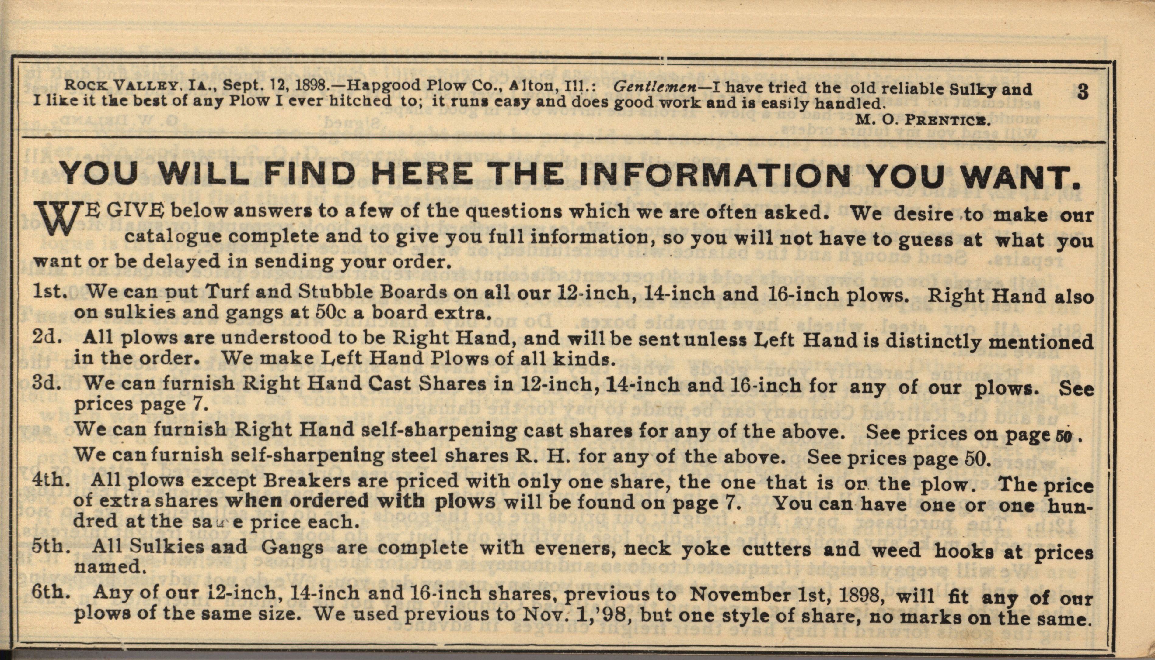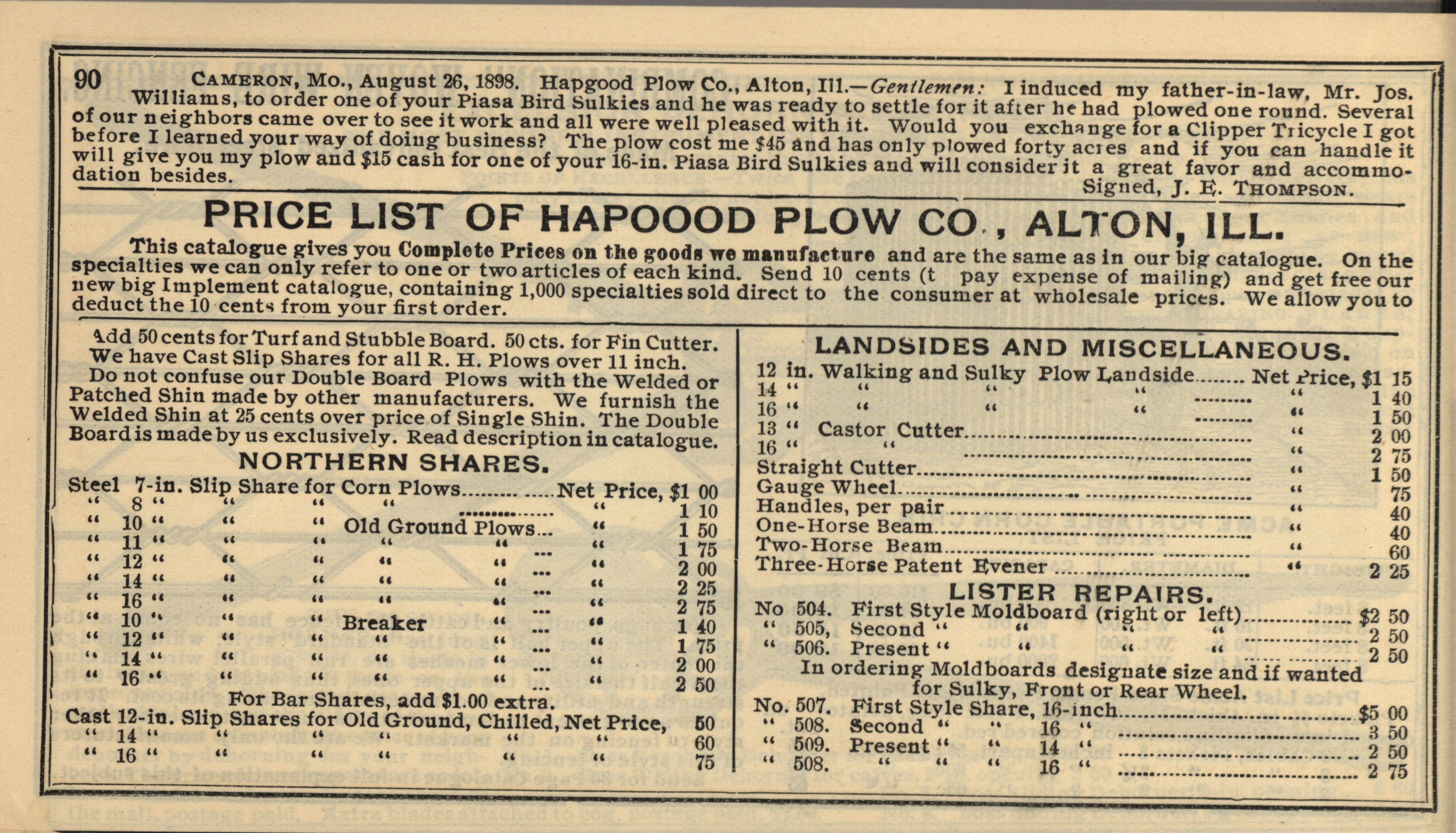 - "Hapgood Plow Company 1899 catalog", Agricultural Machinery Literature Collection, Iowa State University Library Digital Collections