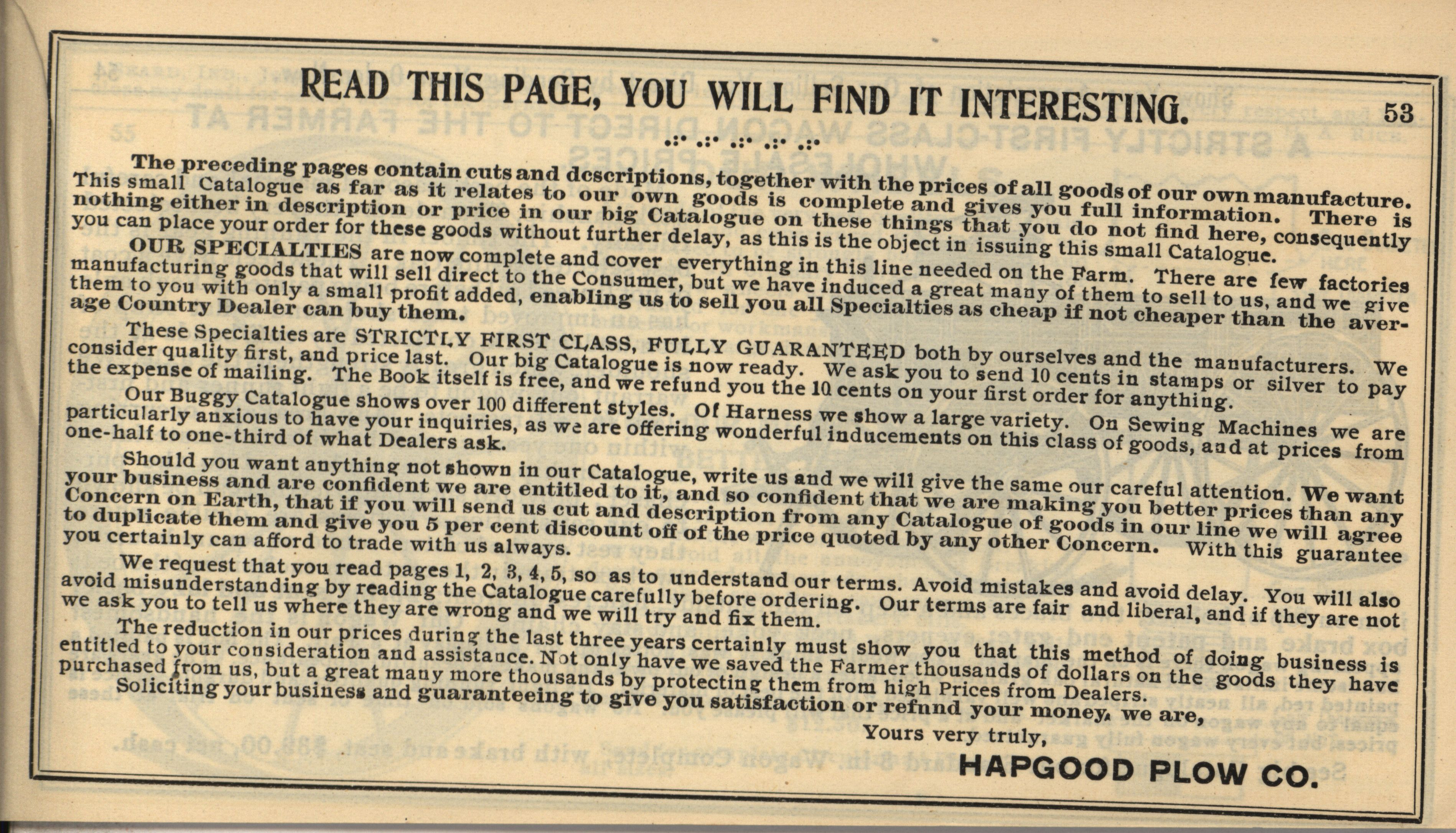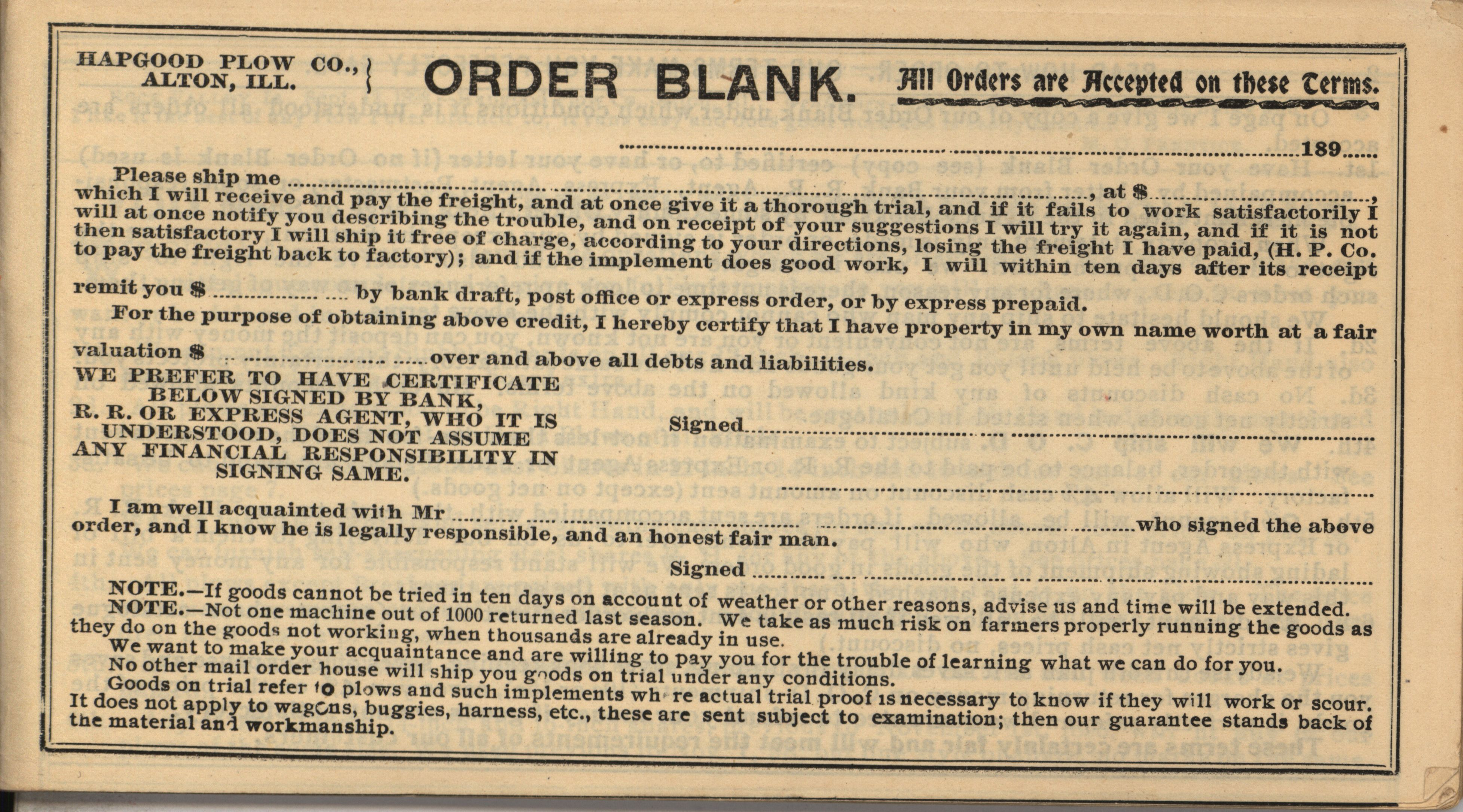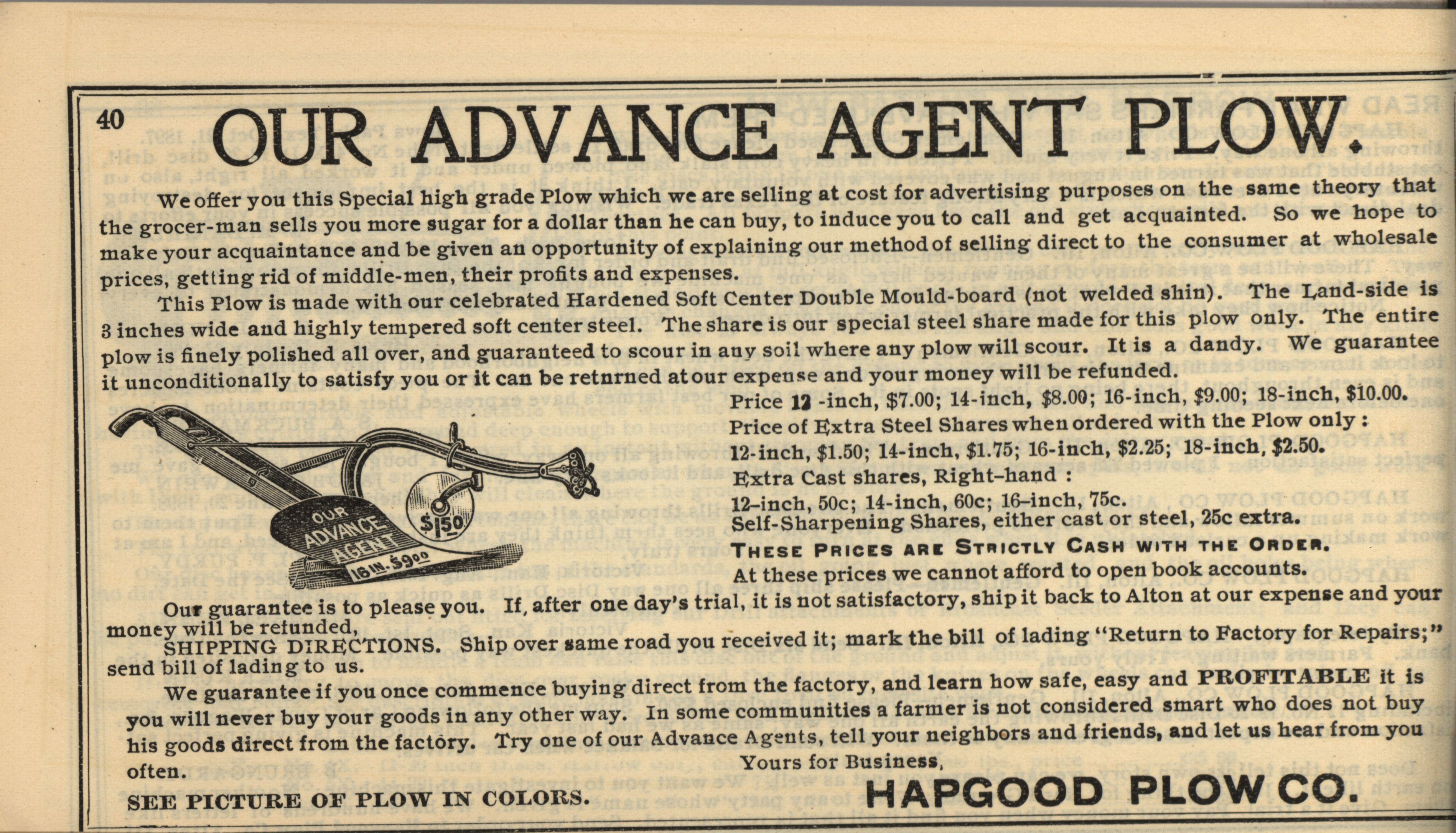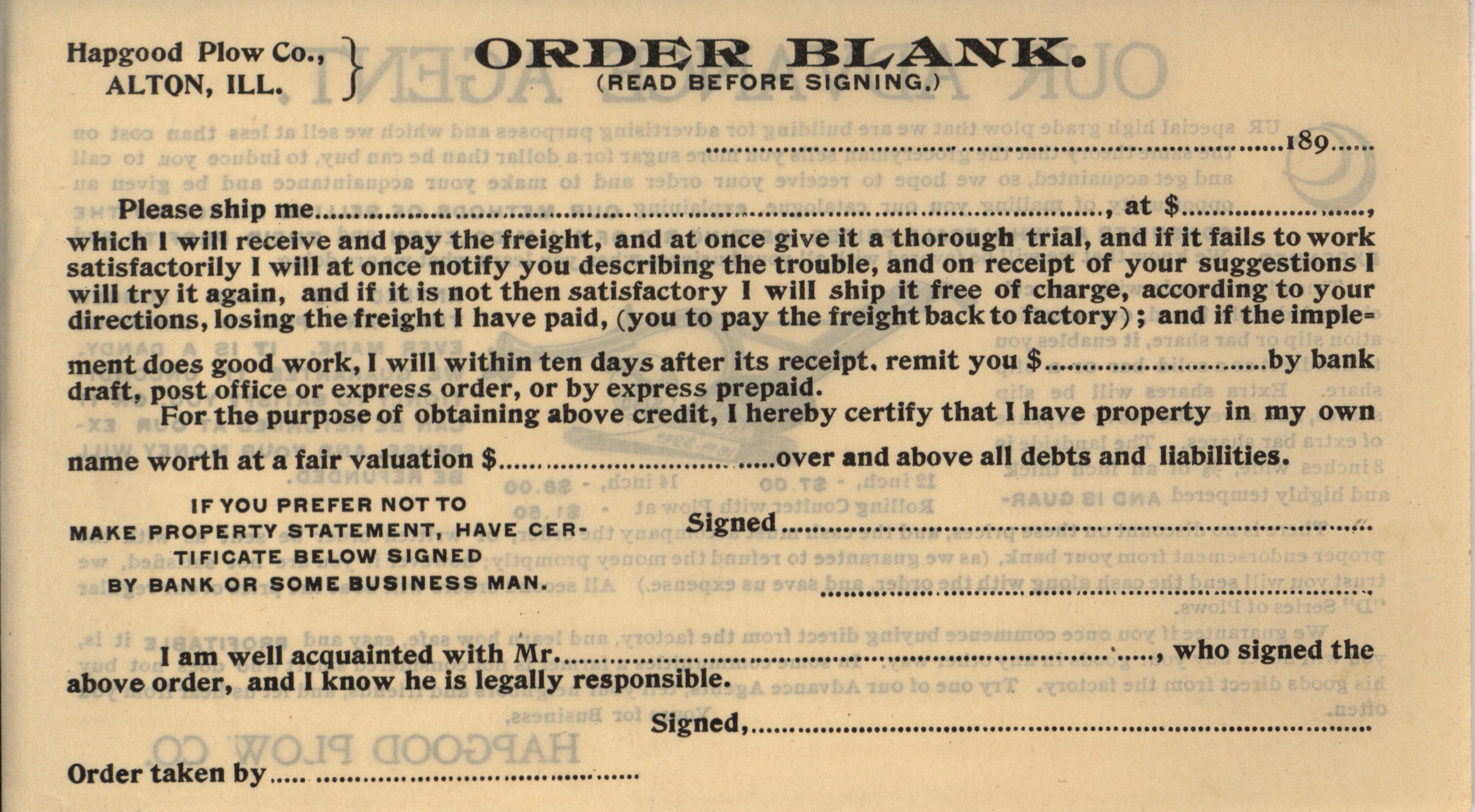 - "Hapgood Plow Company 1899 catalog", Agricultural Machinery Literature Collection, Iowa State University Library Digital Collections