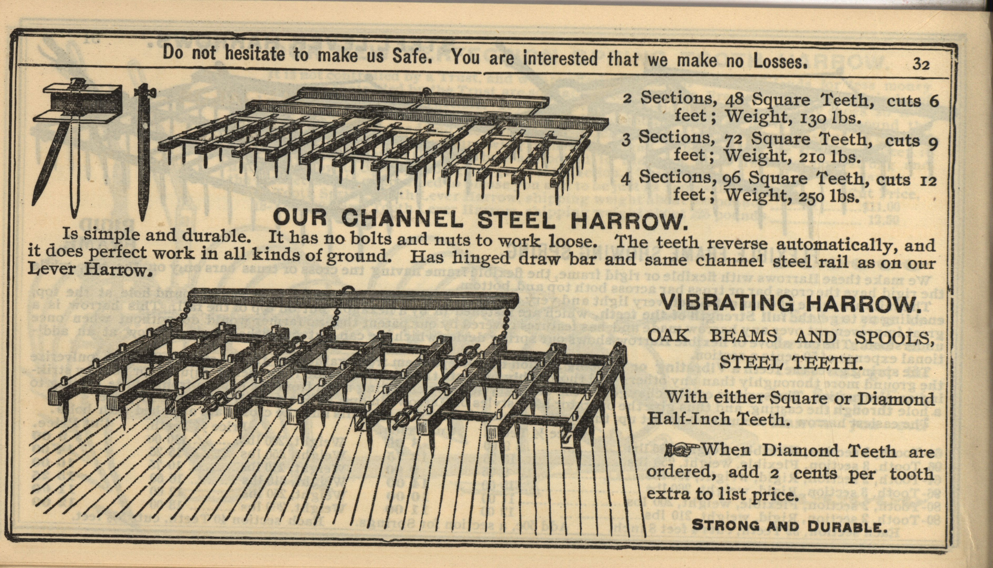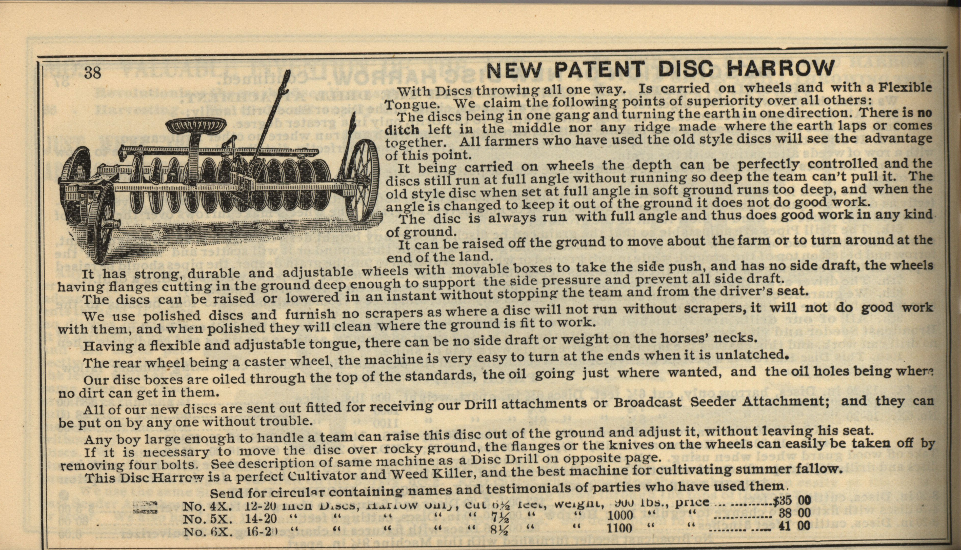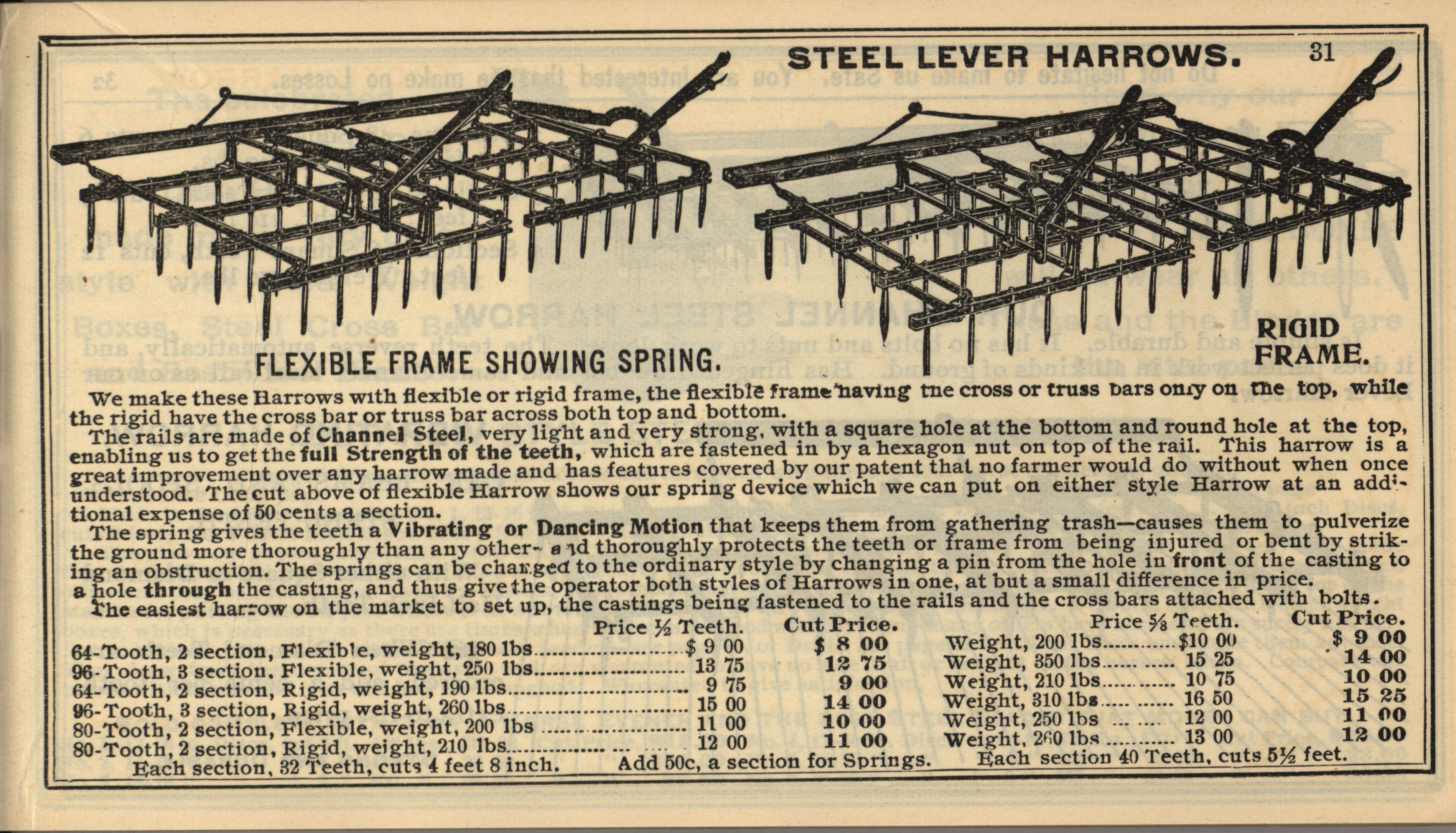 - Illustrated catalog describing the agricultural implements offered by Hapgood Plow Company in 1899, includes a price list.