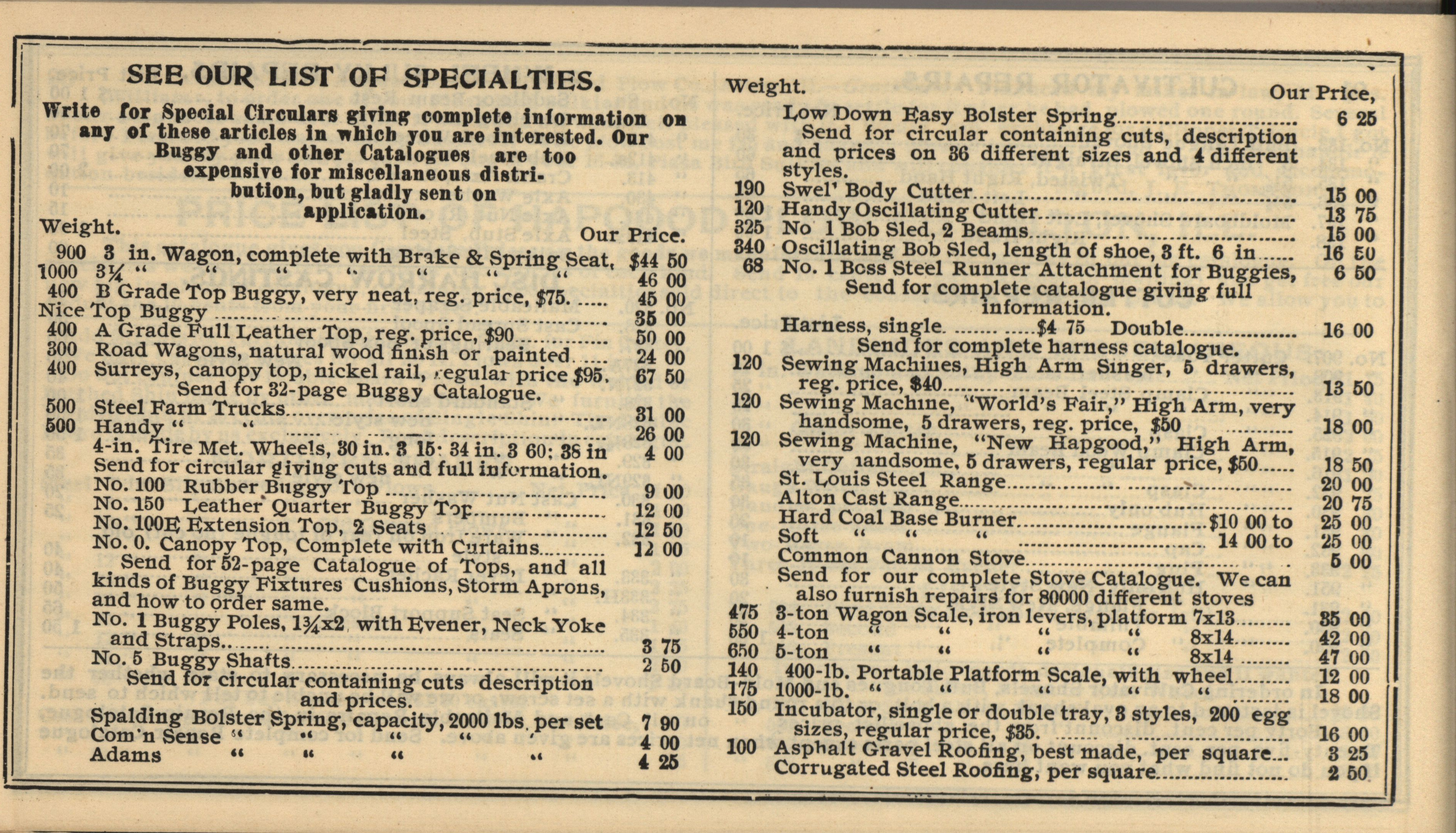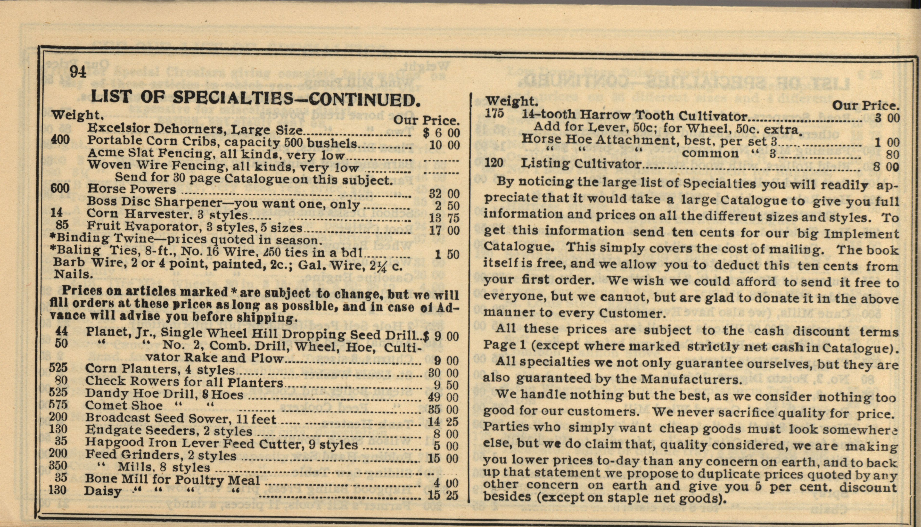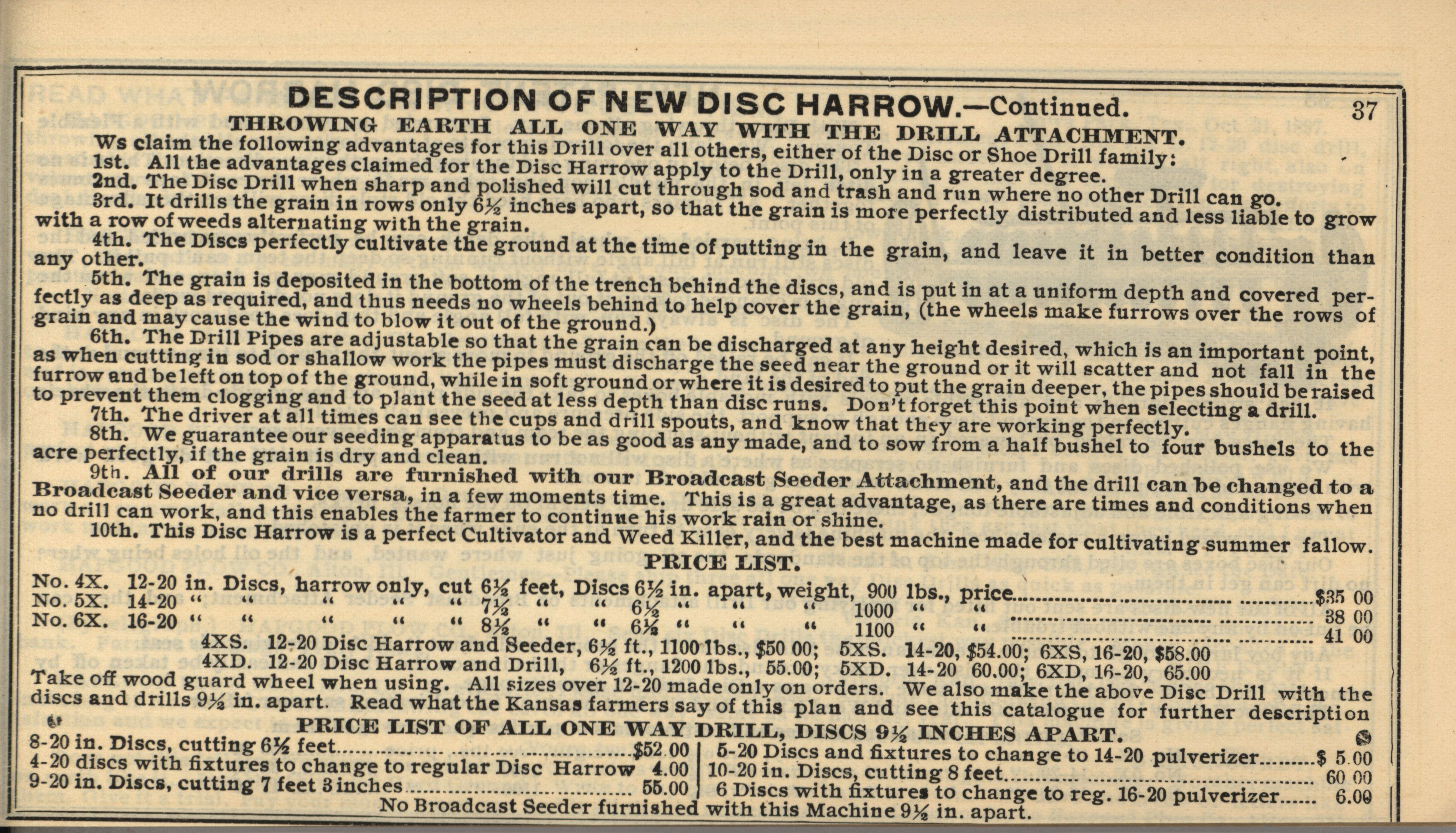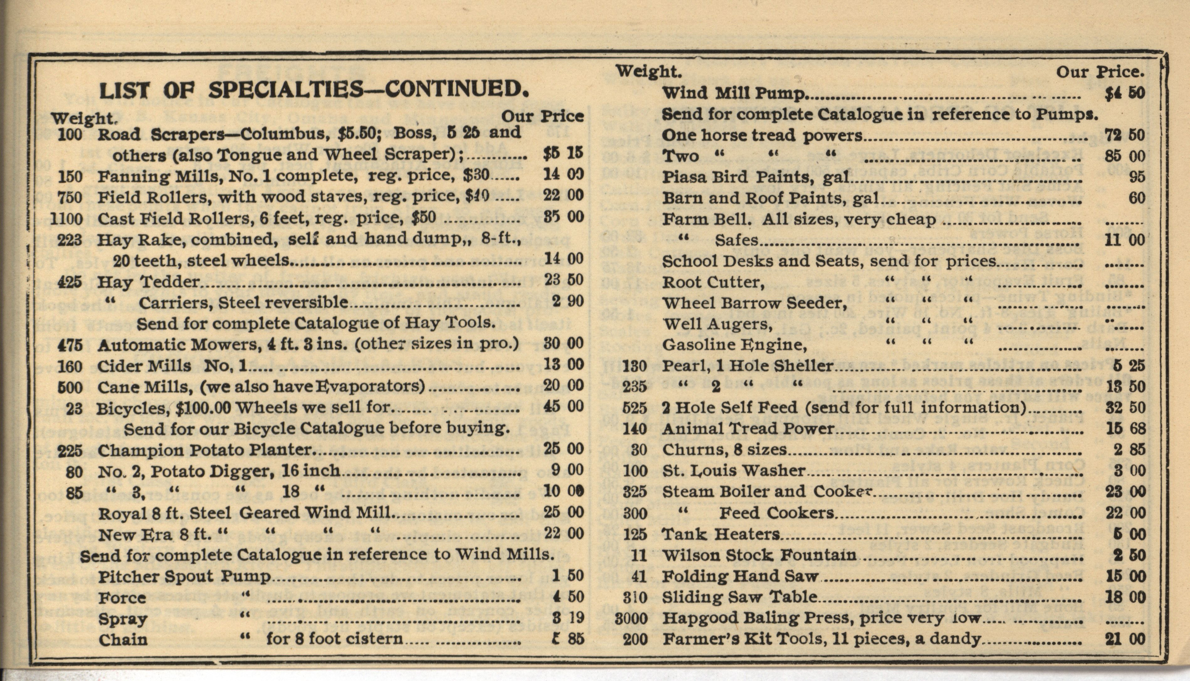 - Illustrated catalog describing the agricultural implements offered by Hapgood Plow Company in 1899, includes a price list.
