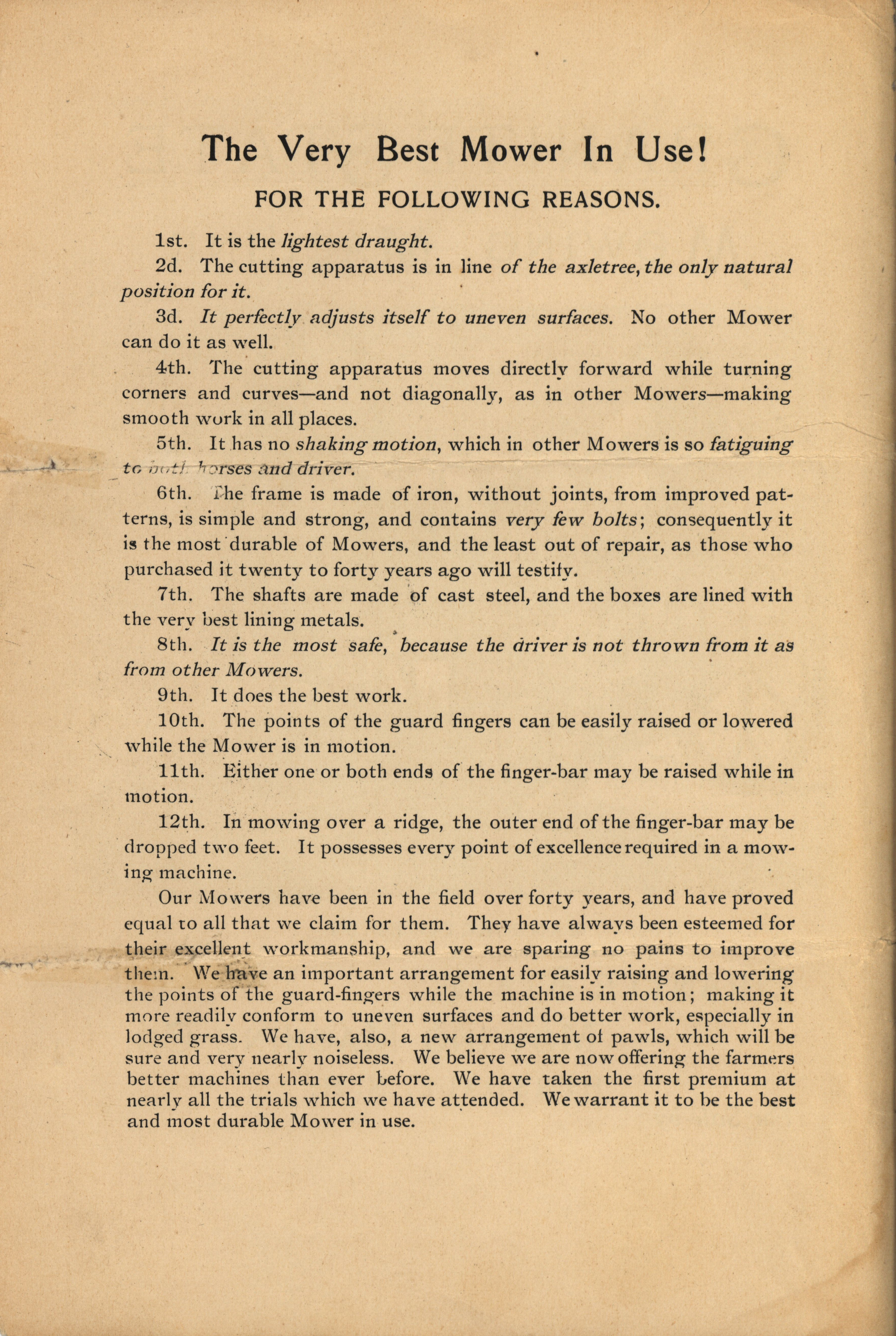 - Illustrated catalog describing the agricultural products offered by Granite State Mowing Machine Company, including a price list.