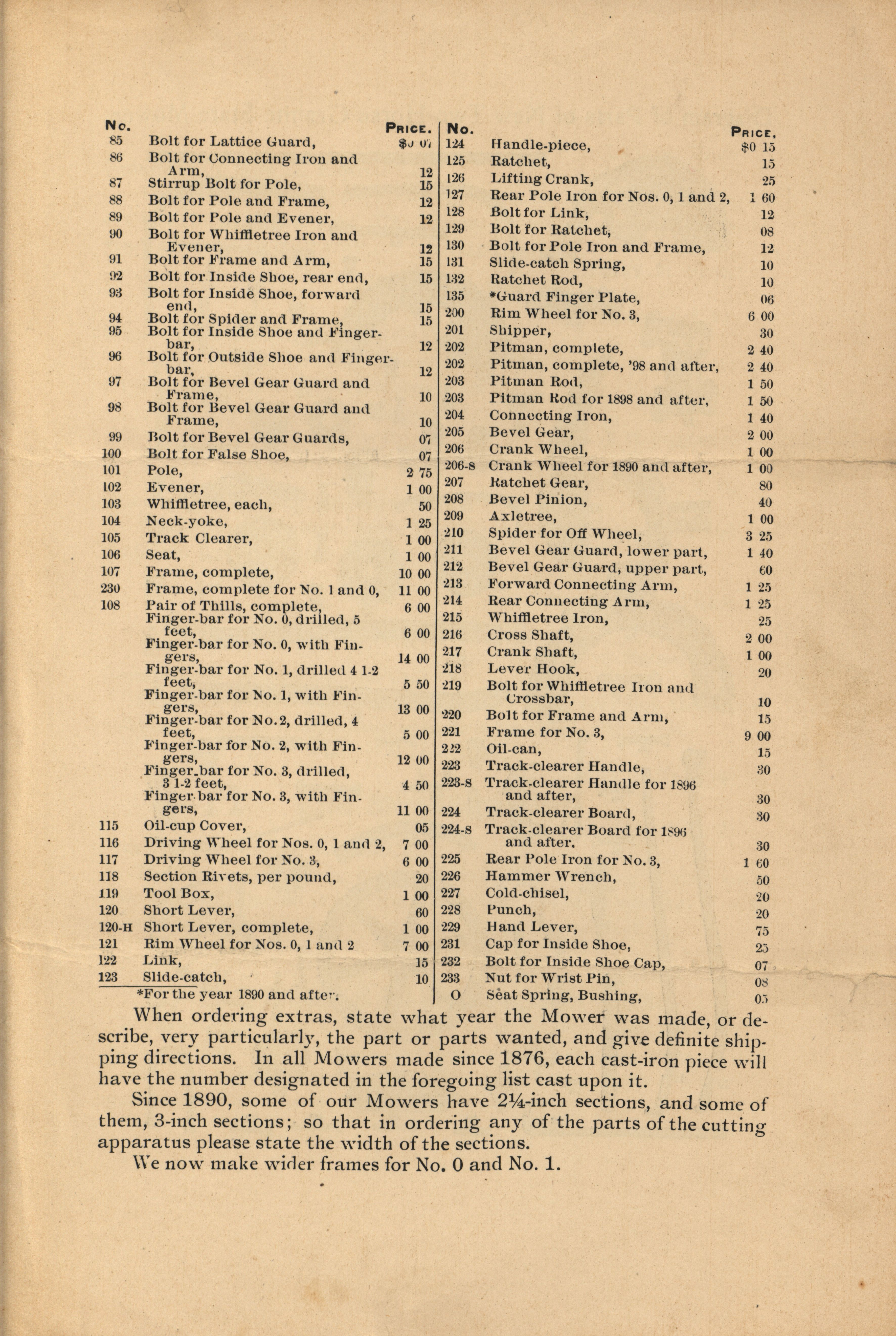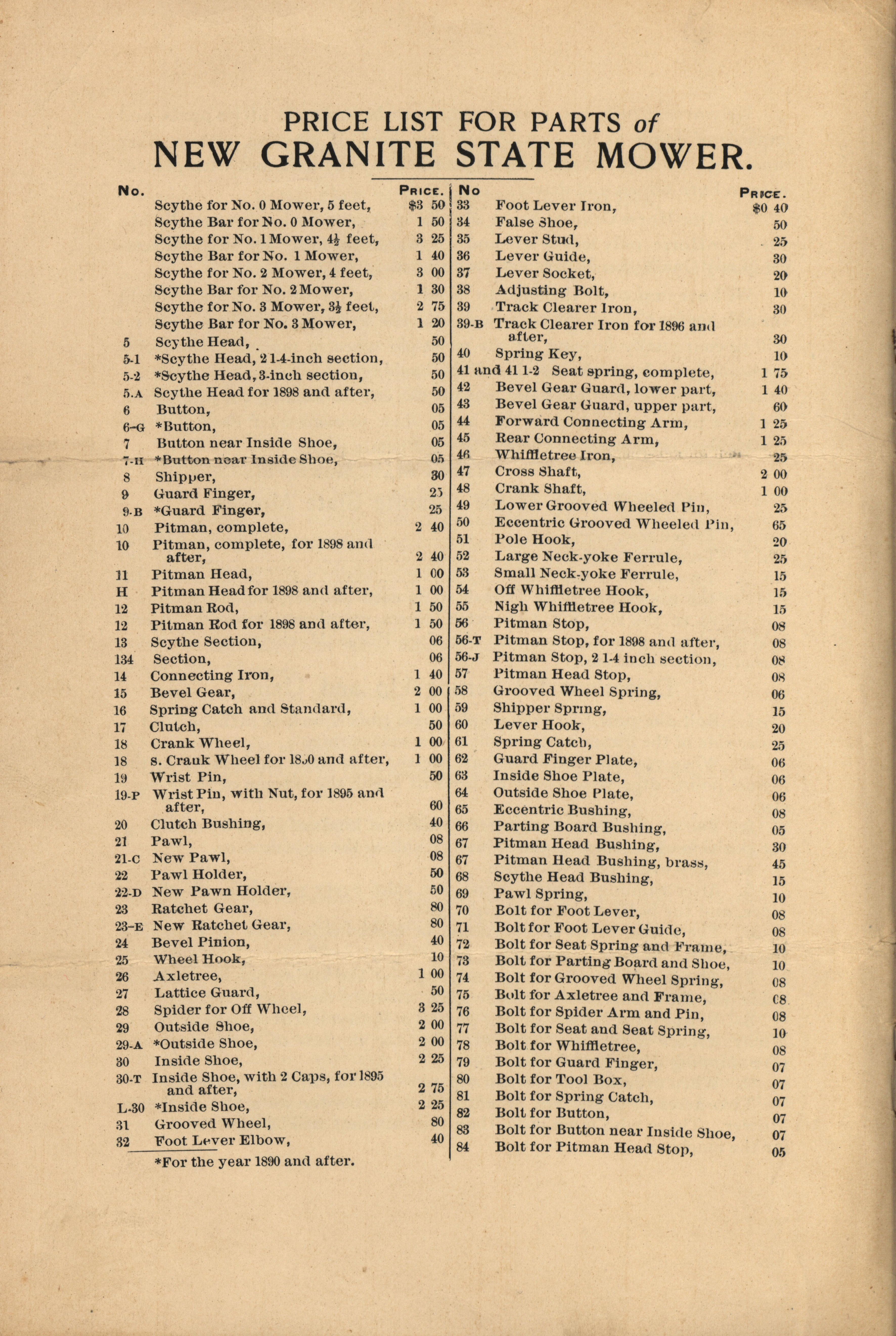 Granite State Mowing Machine Company catalog Item Info
