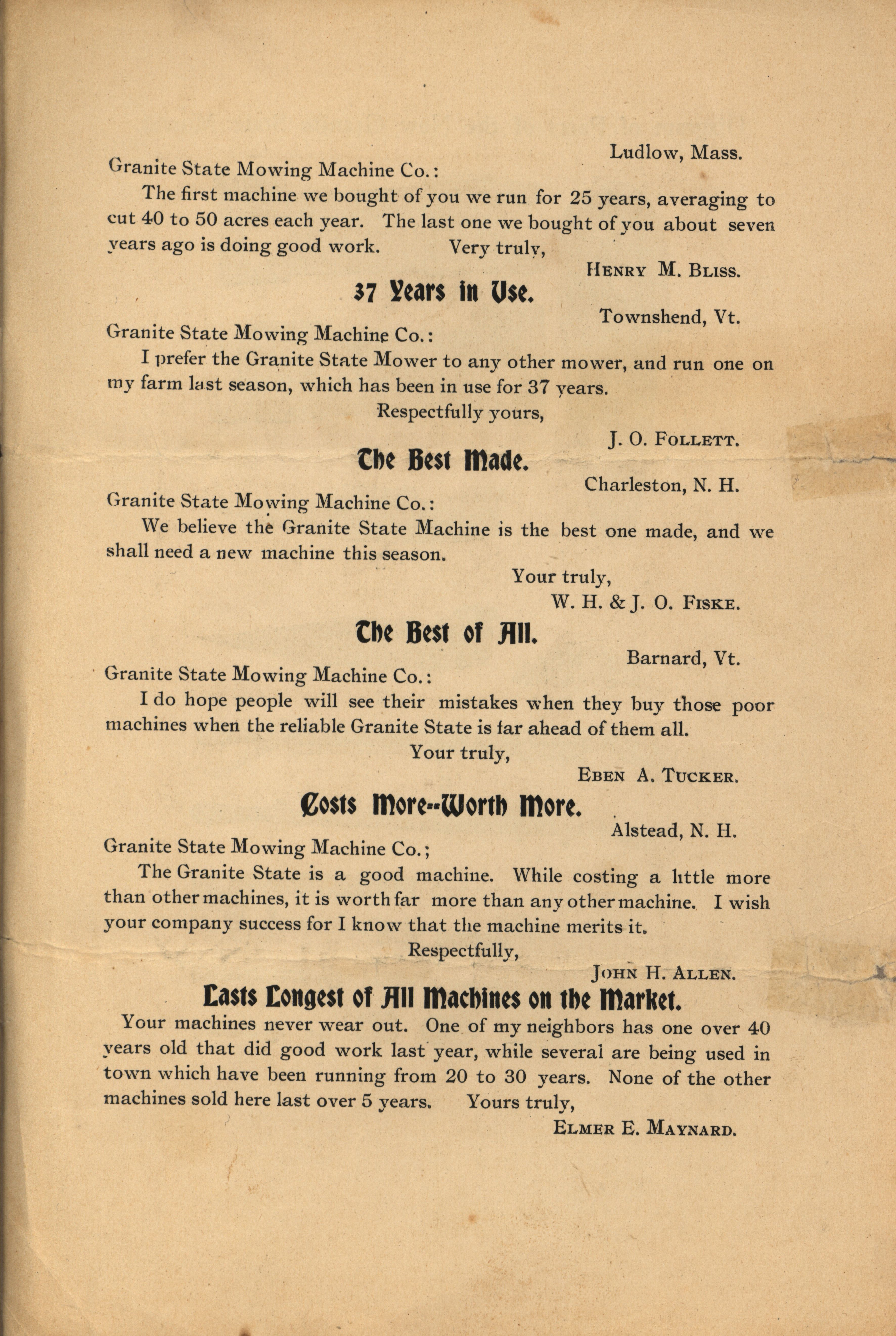 - "Granite State Mowing Machine Company catalog", Agricultural Machinery Literature Collection, Iowa State University Library Digital Collections