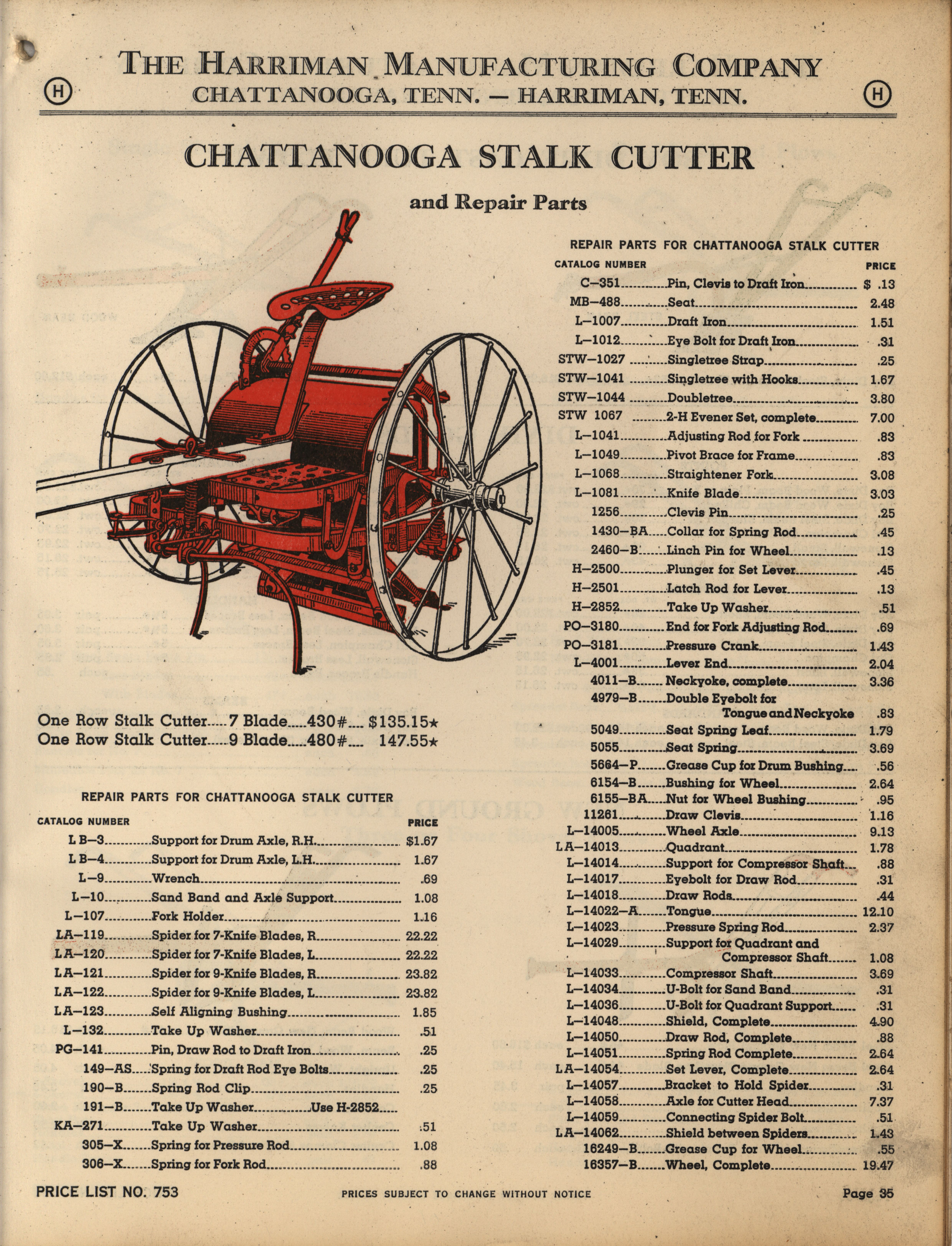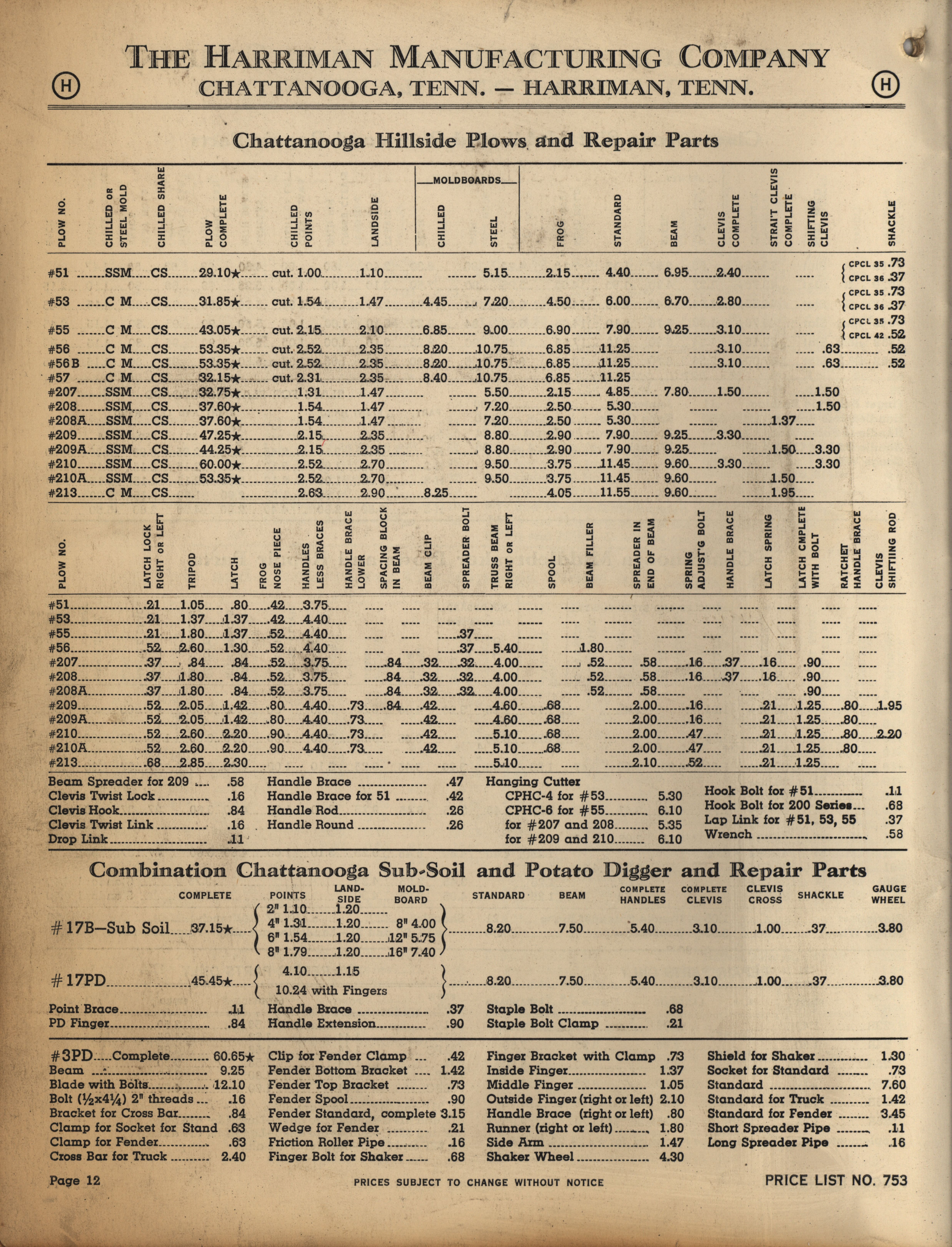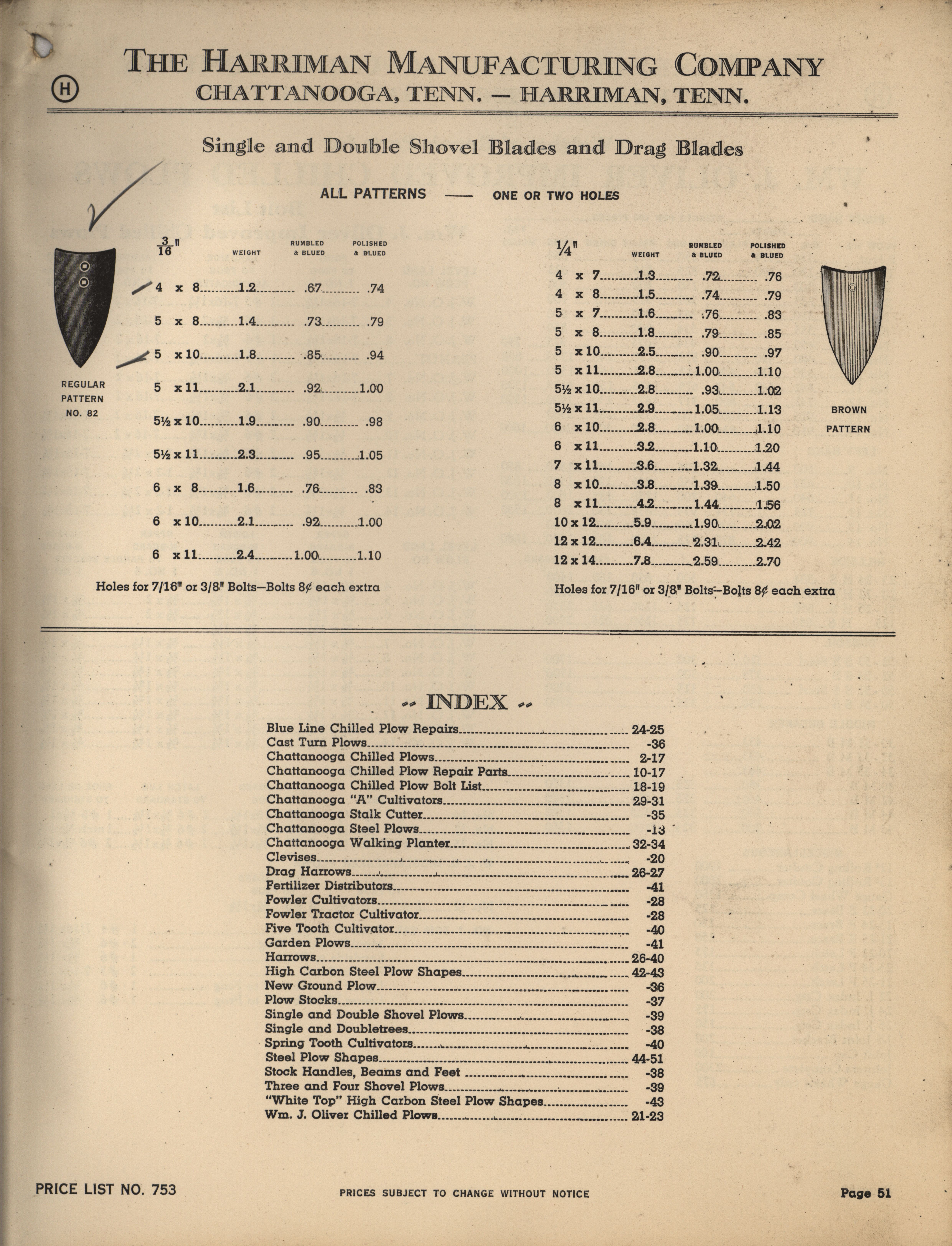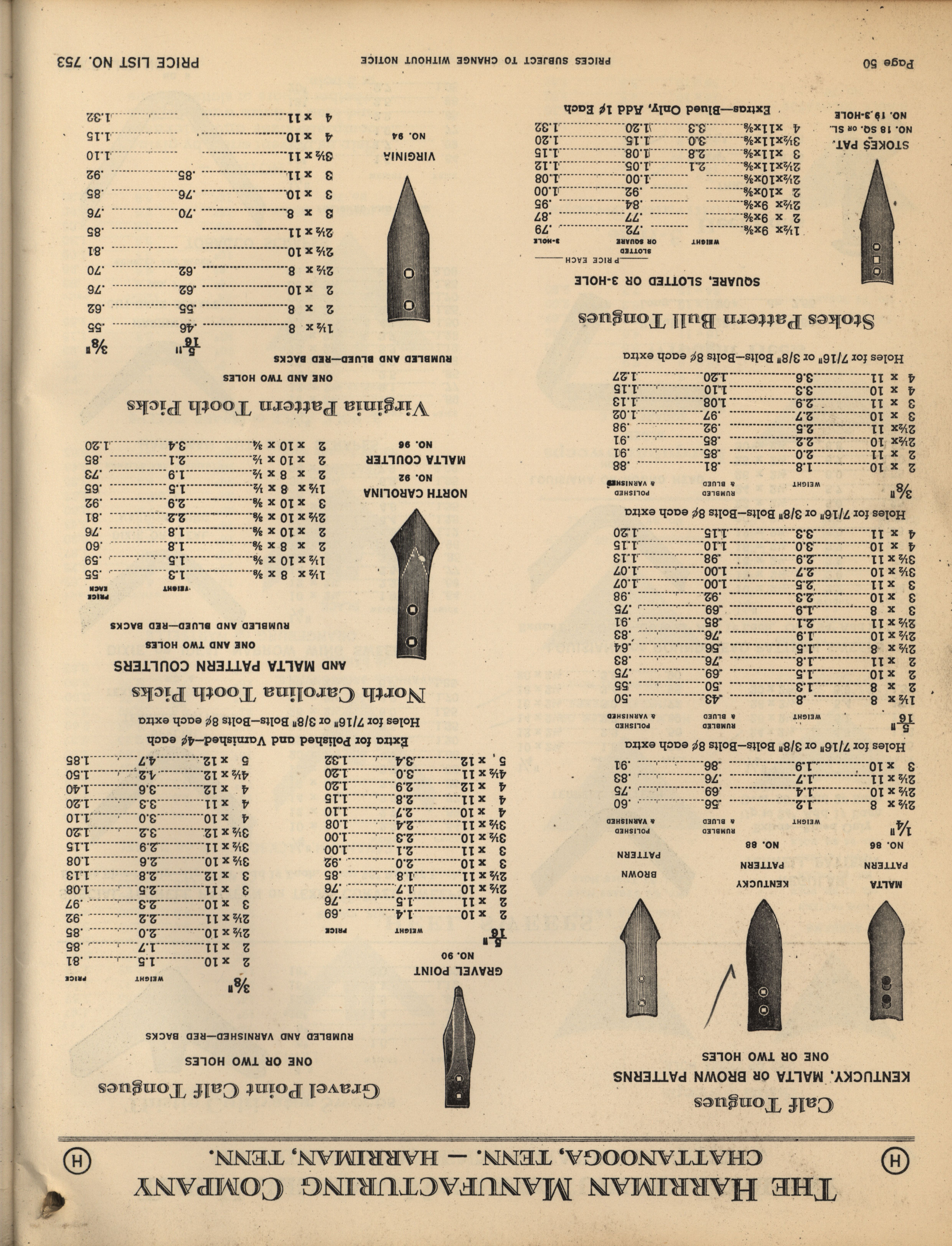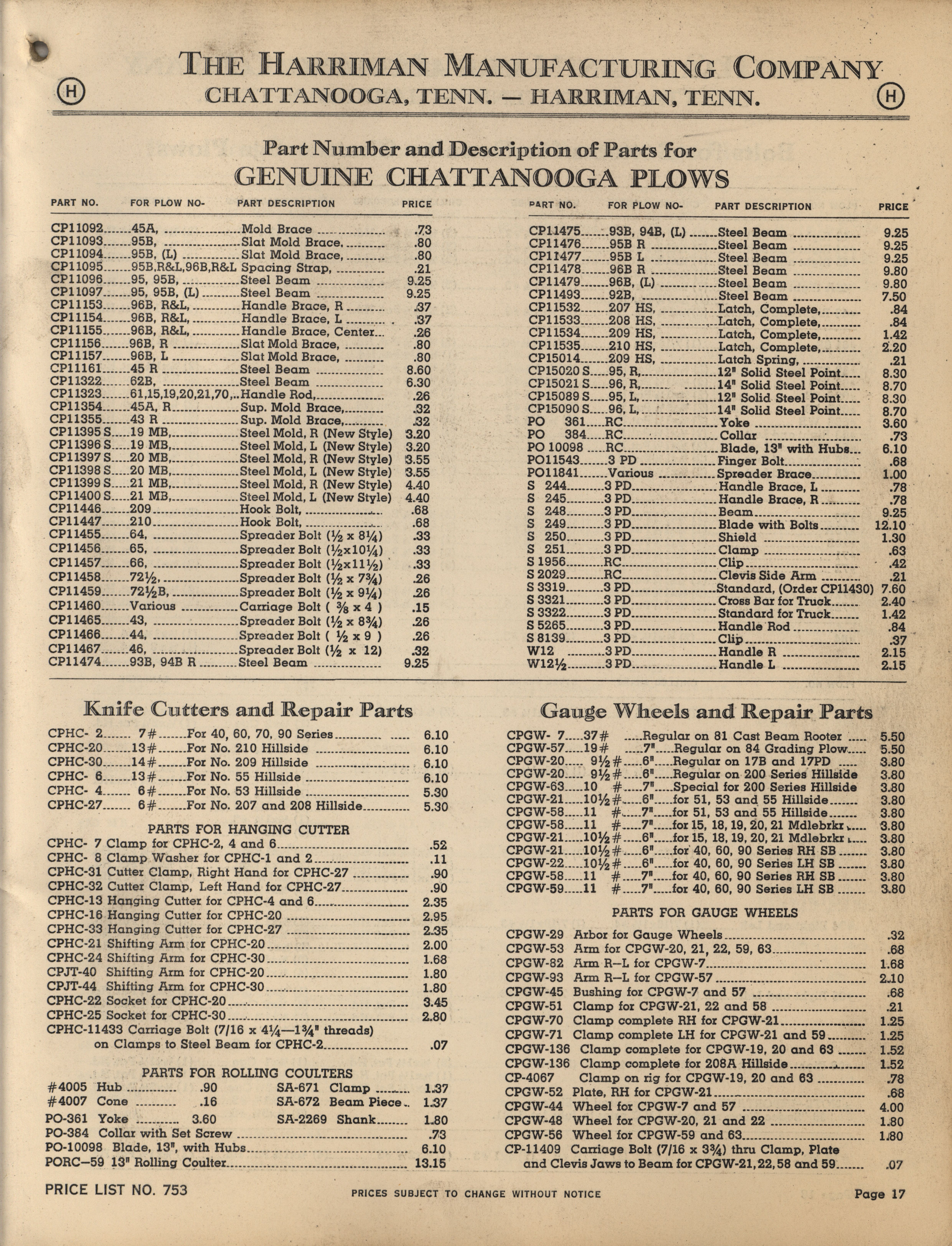 - Illustrated catalog describing the agricultural implements offered by Harriman Manufacturing Company in 1953, includes price list.