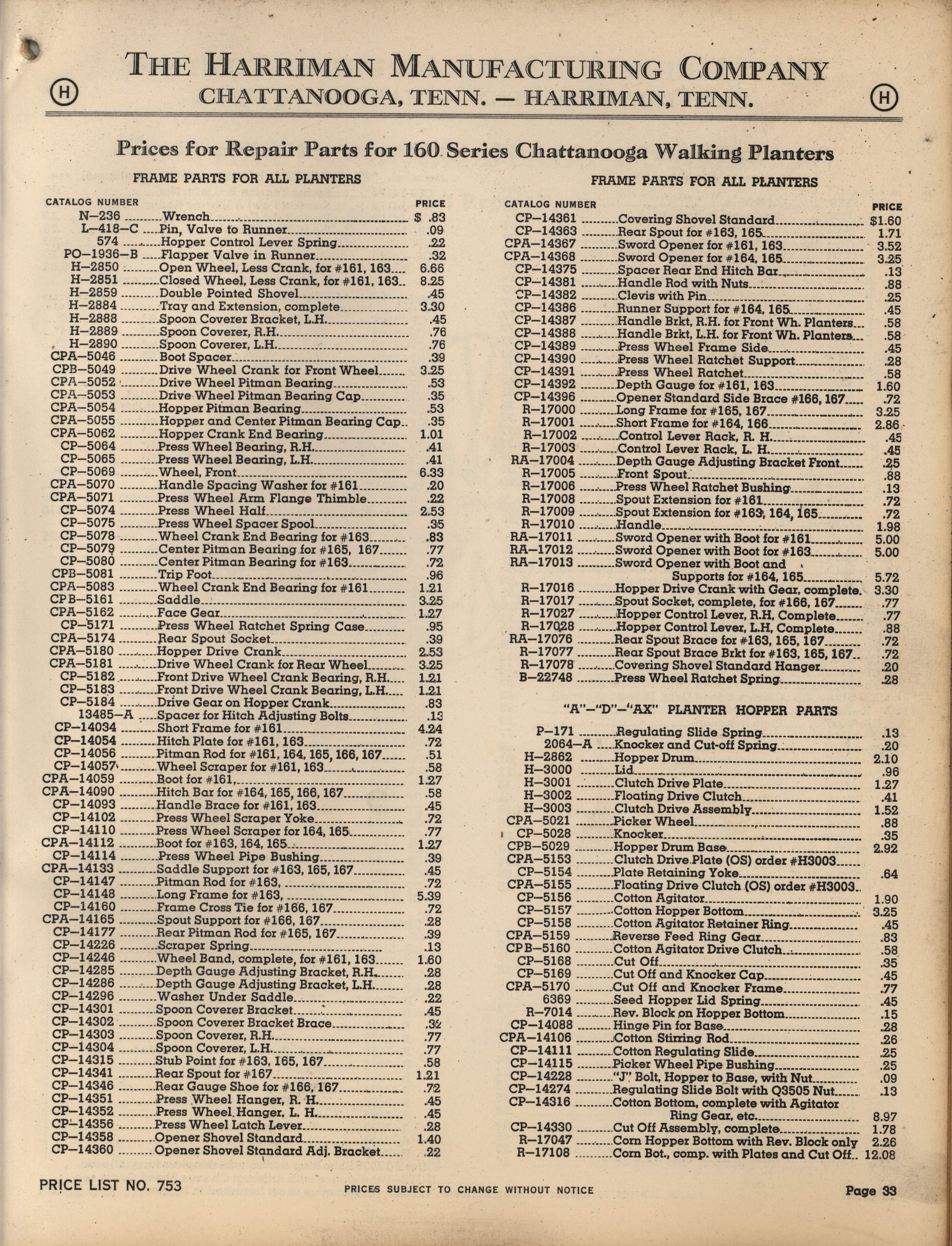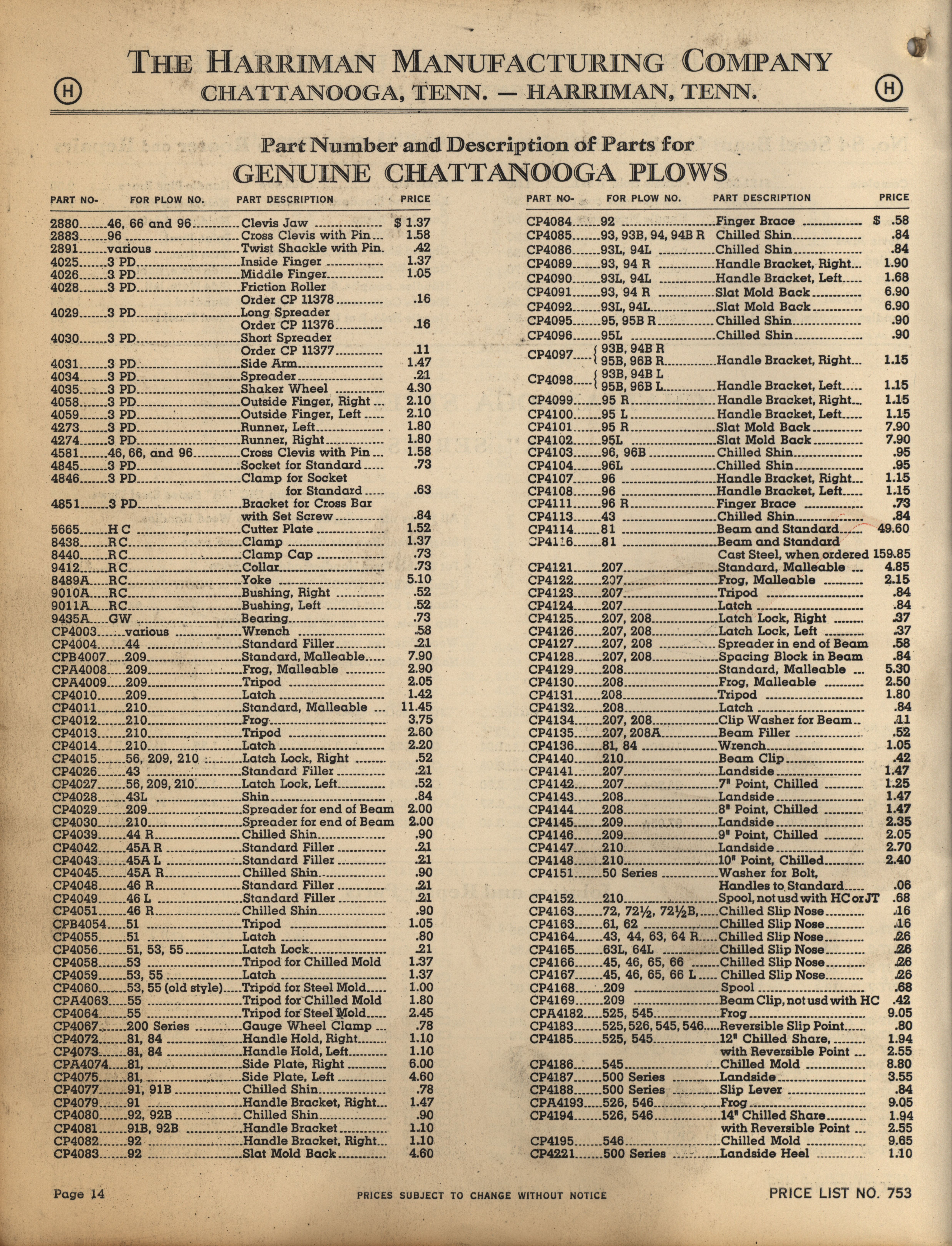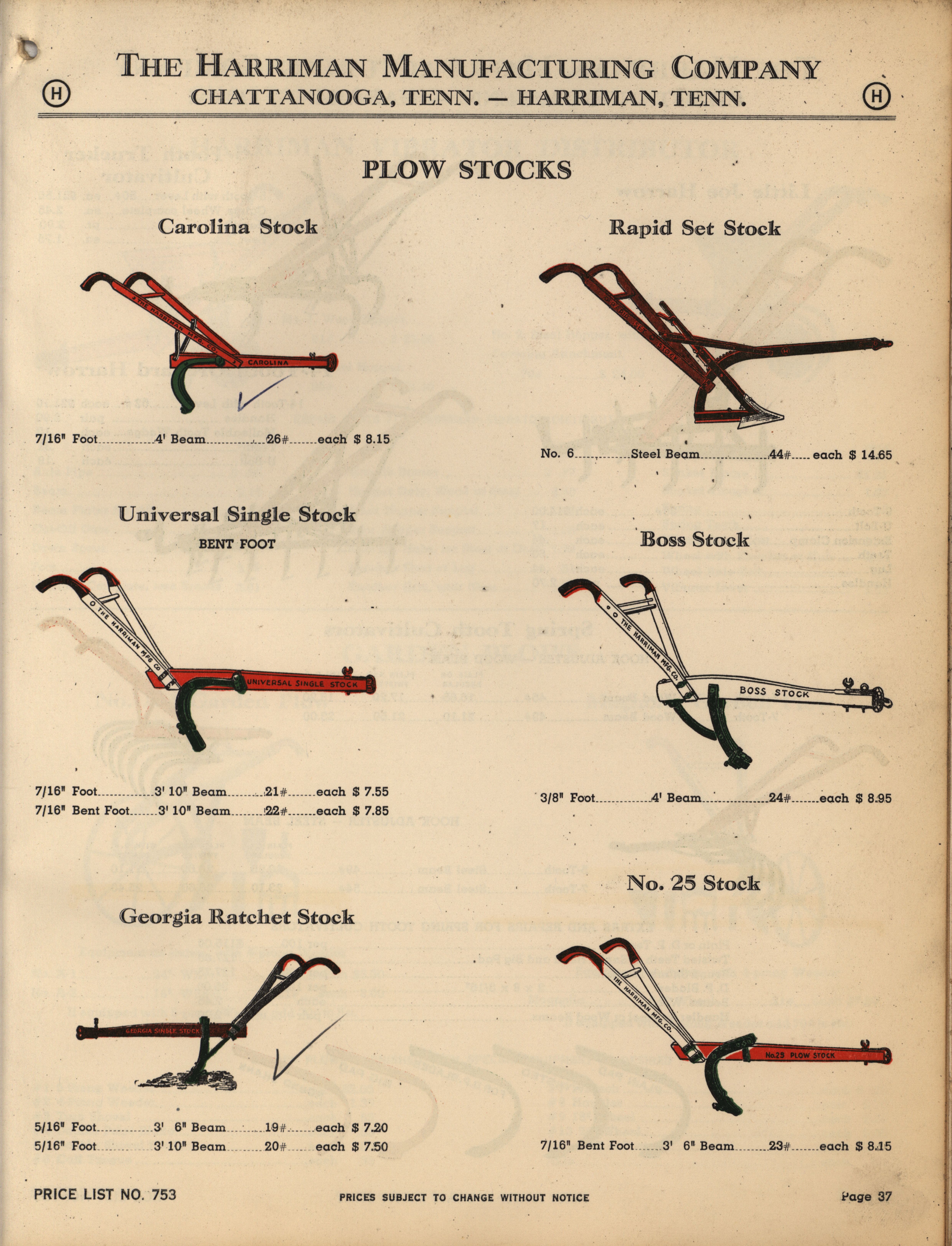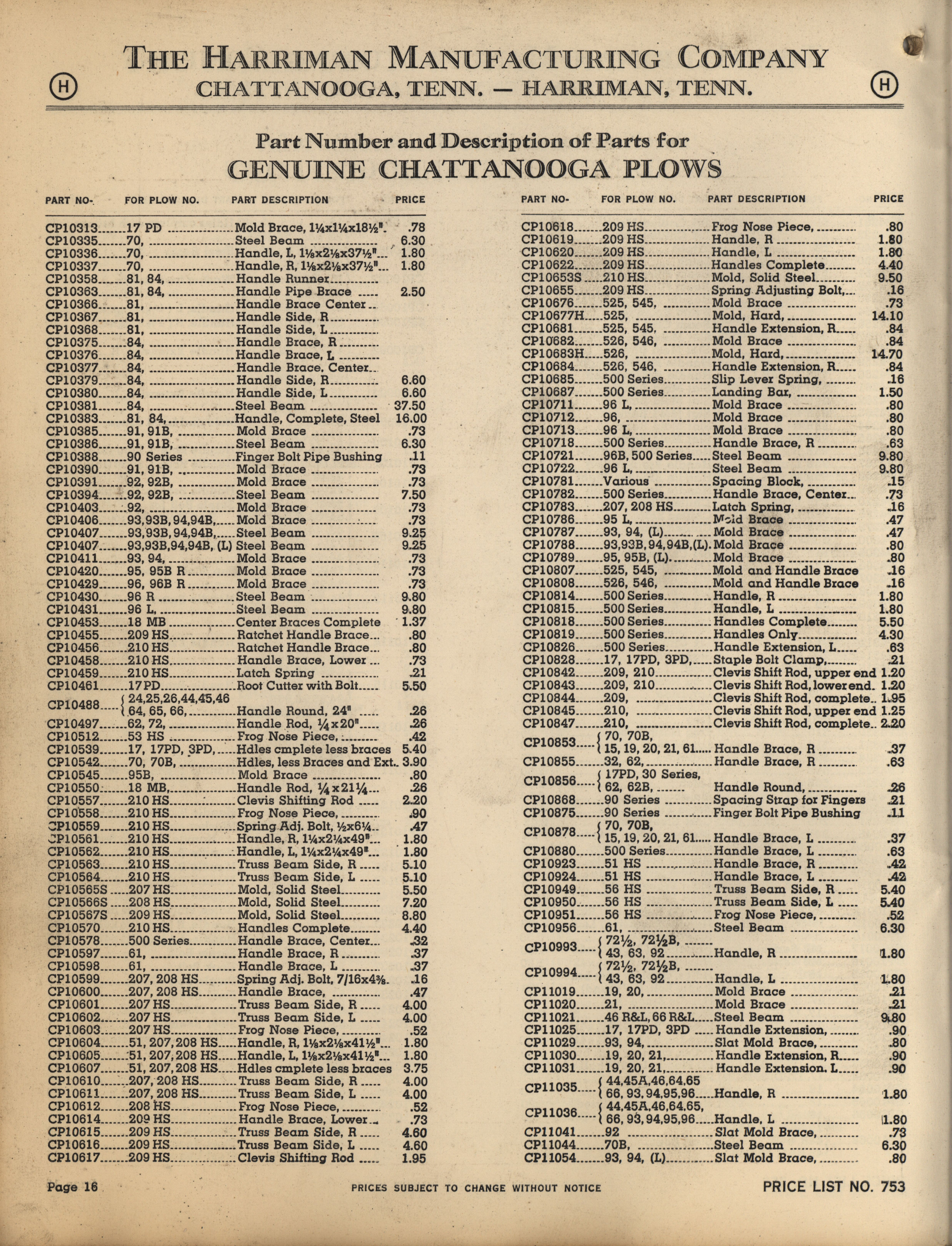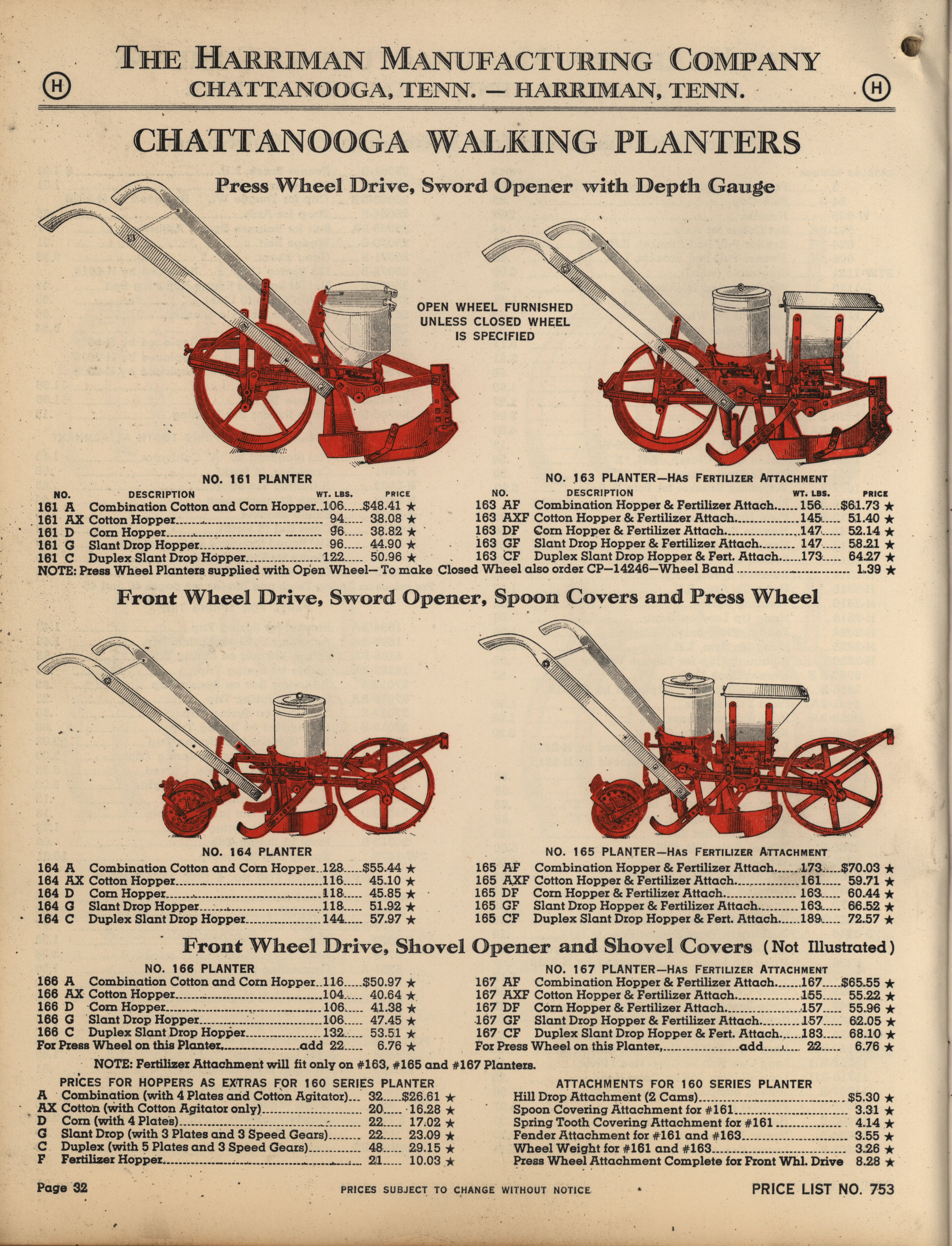- Illustrated catalog describing the agricultural implements offered by Harriman Manufacturing Company in 1953, includes price list.