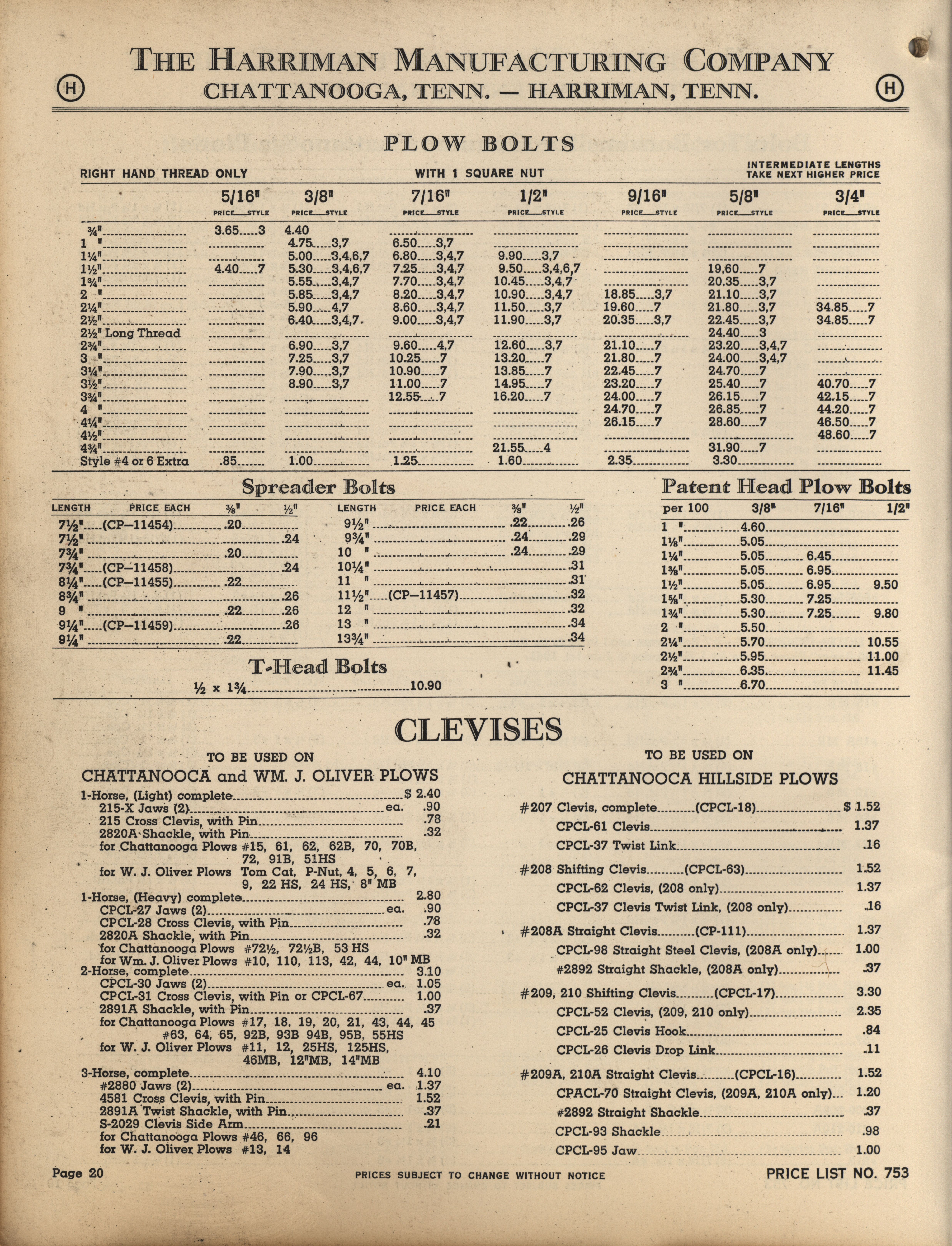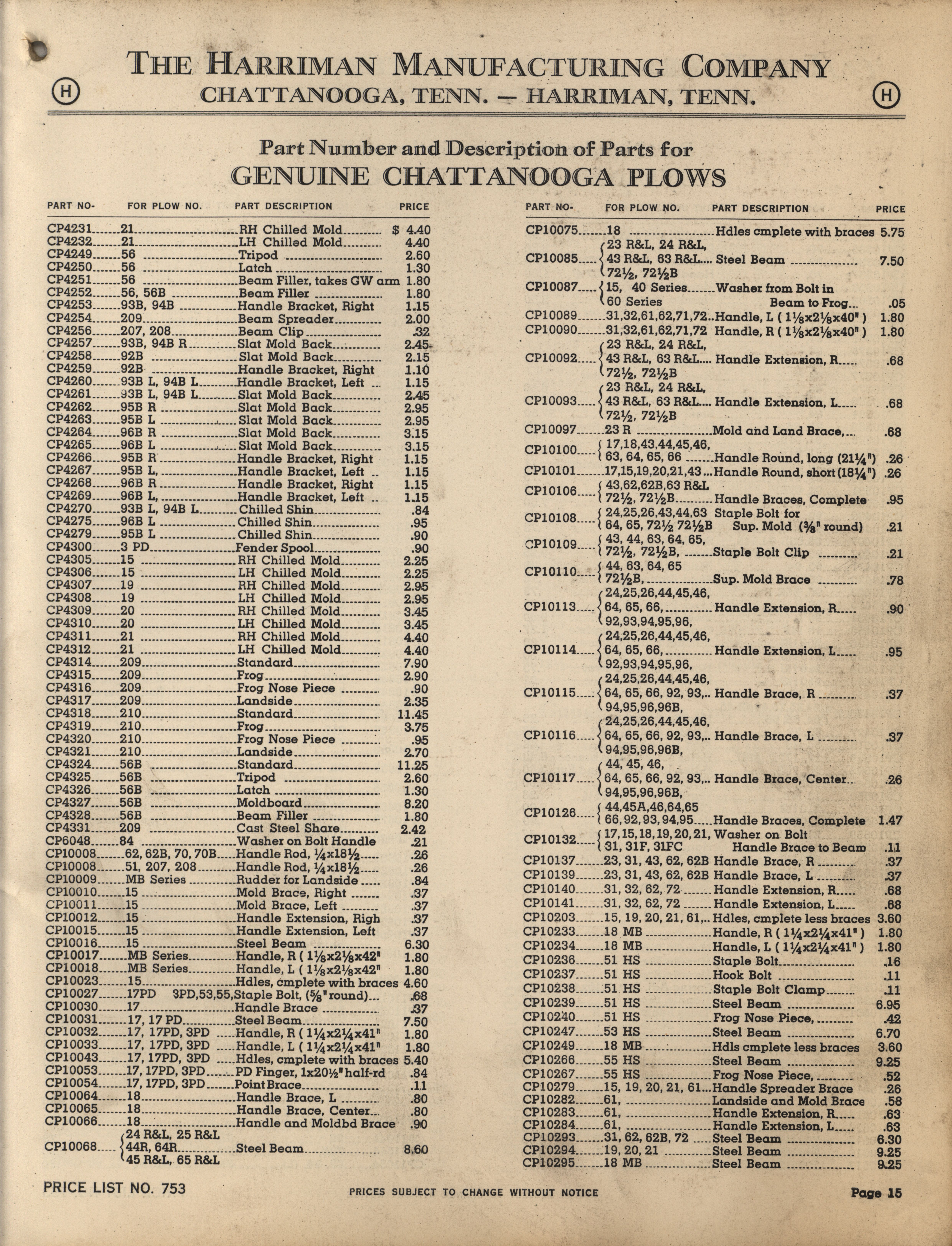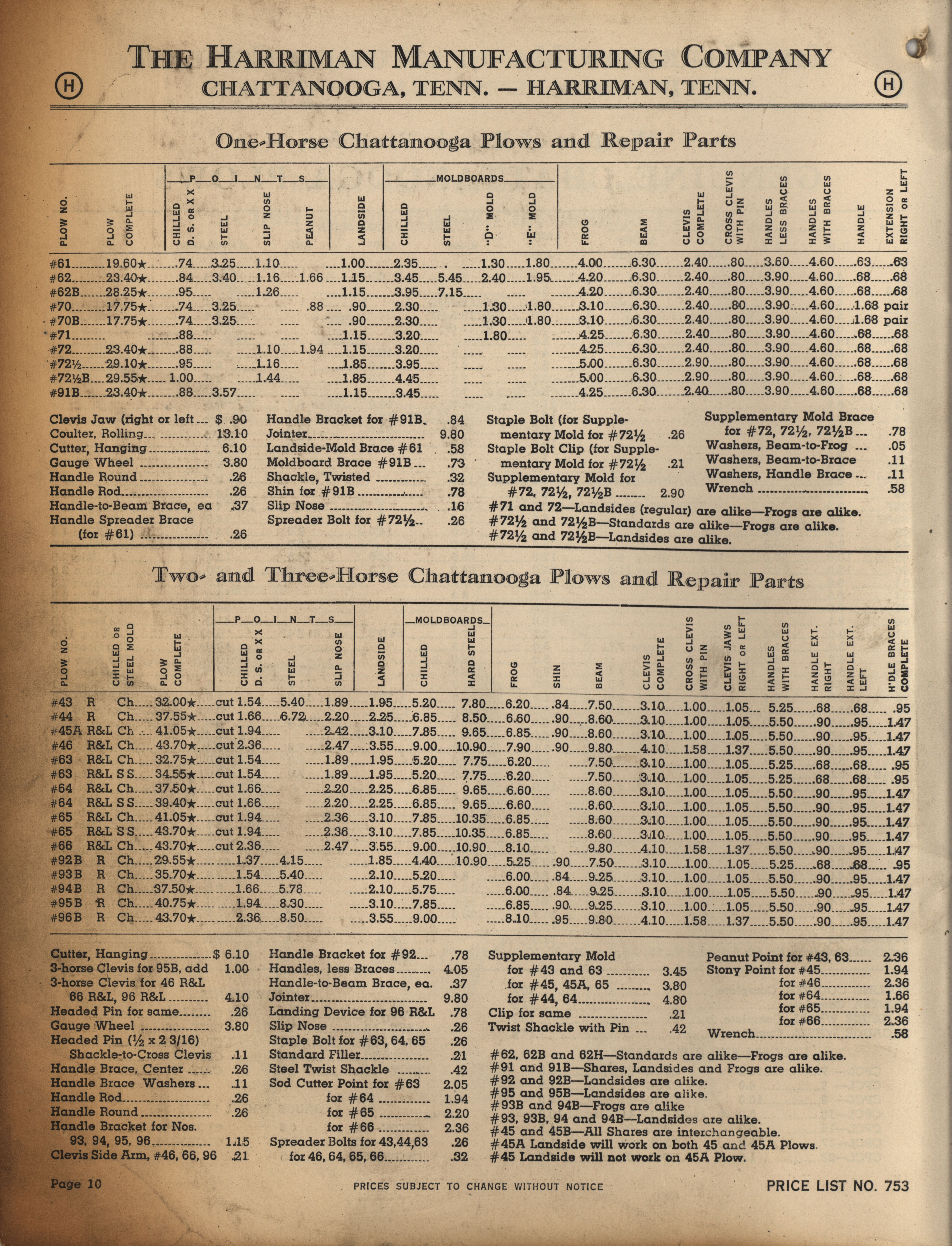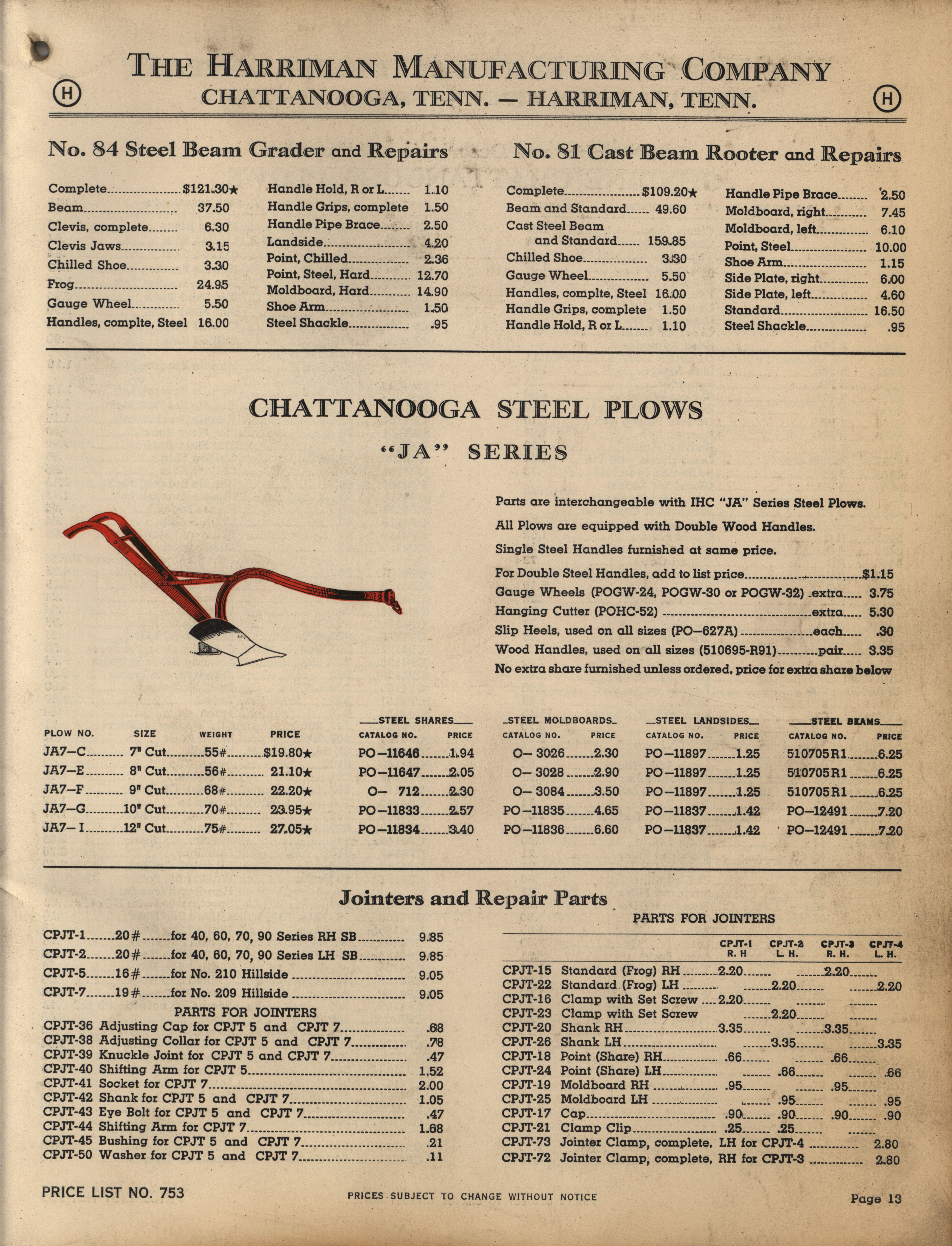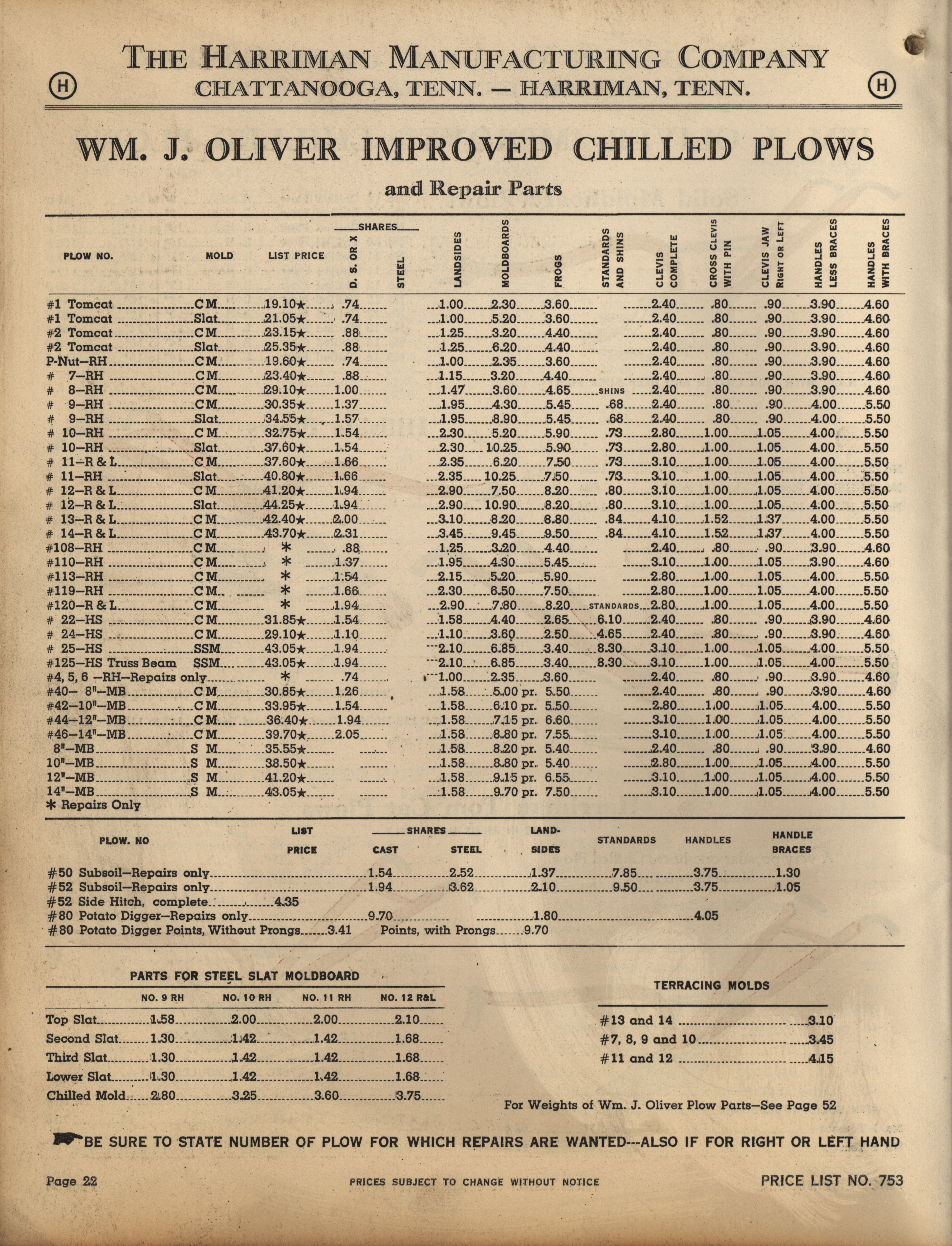 - Illustrated catalog describing the agricultural implements offered by Harriman Manufacturing Company in 1953, includes price list.