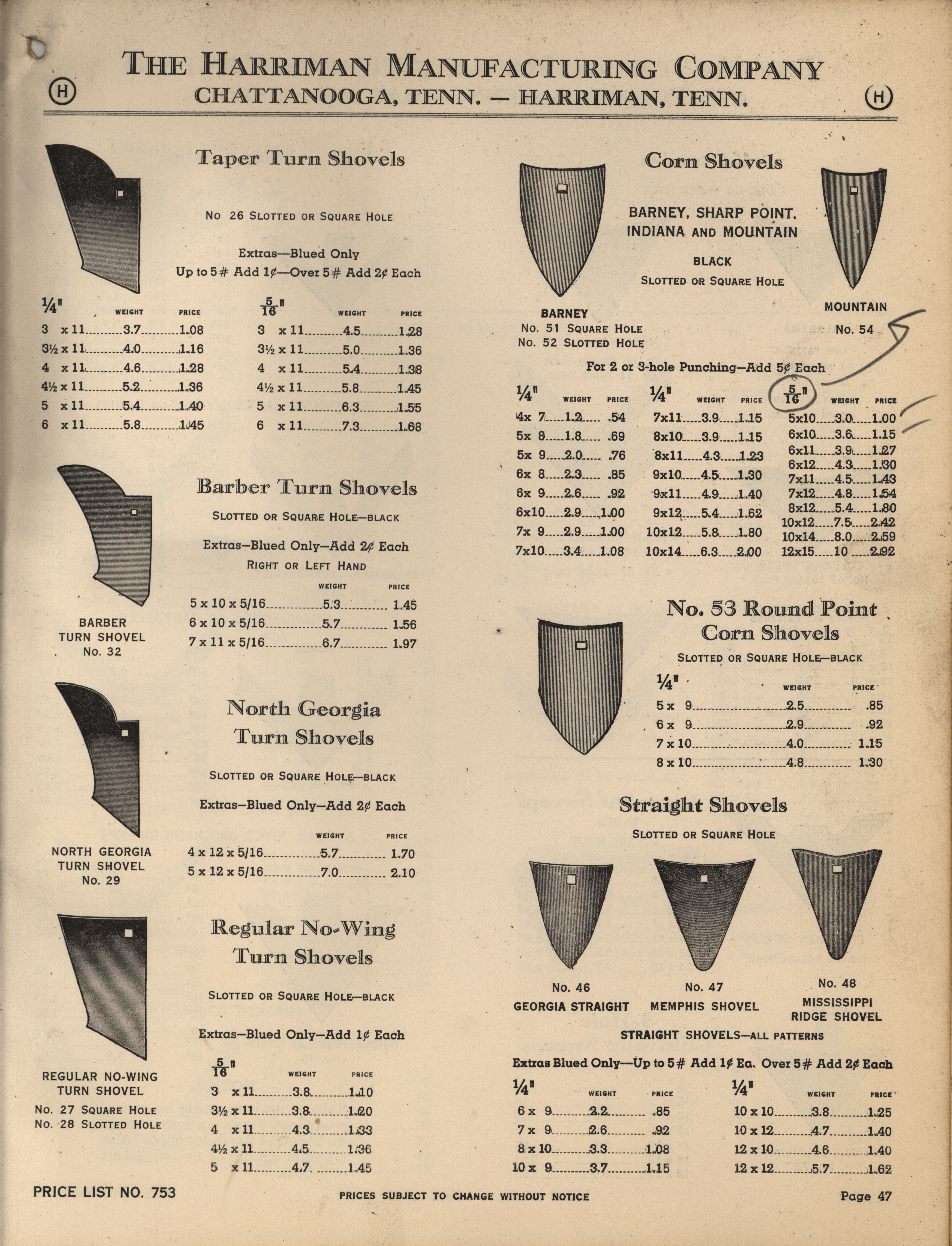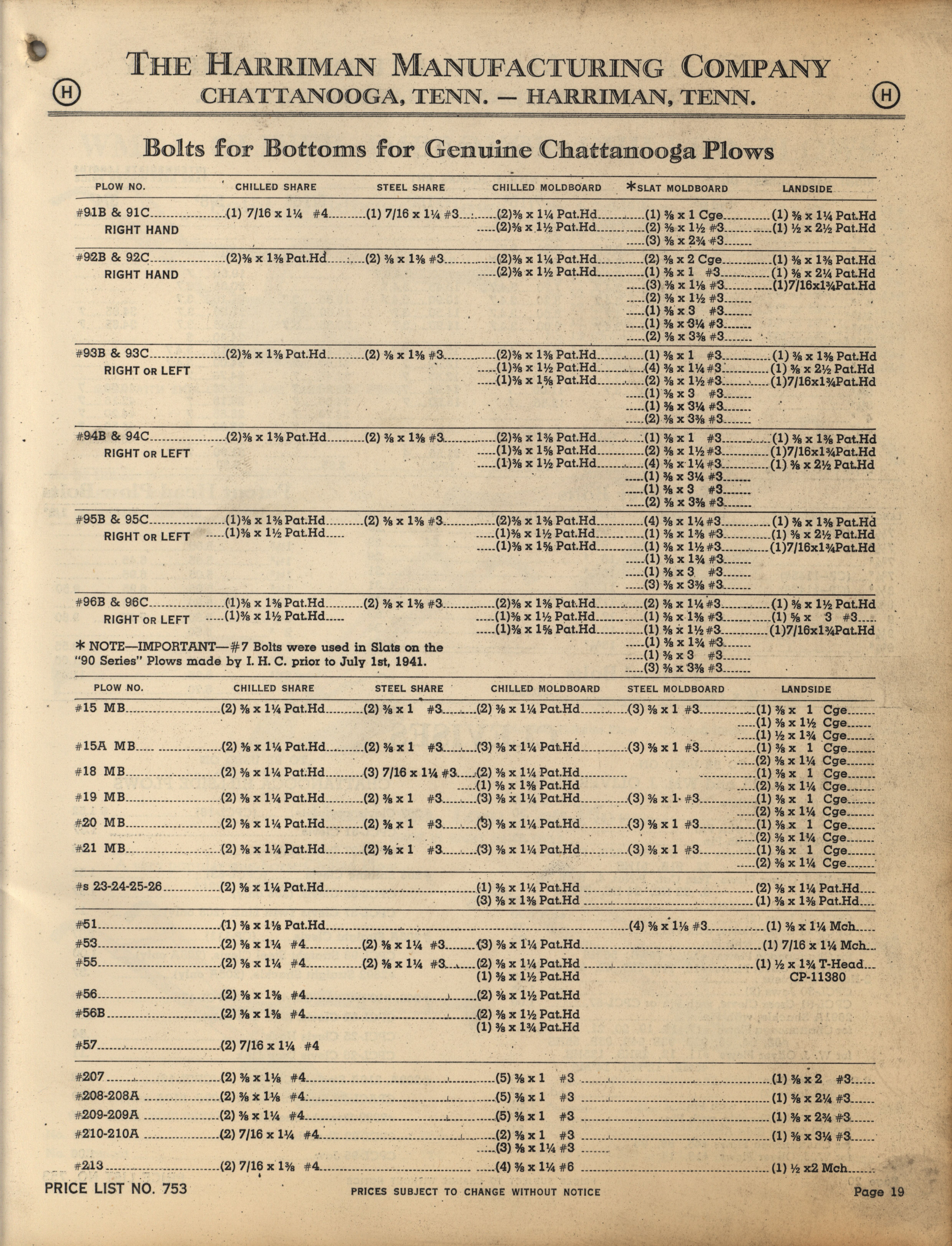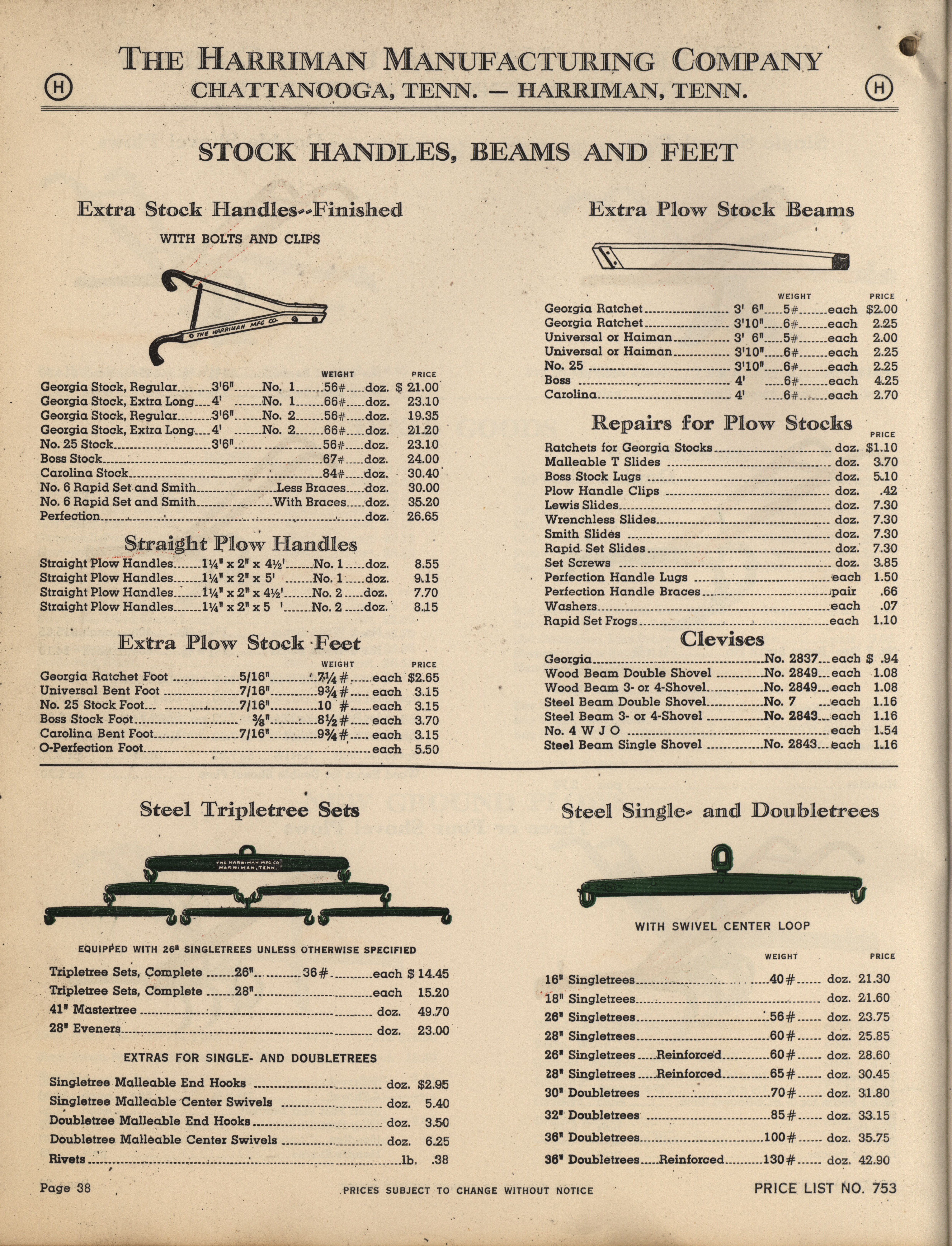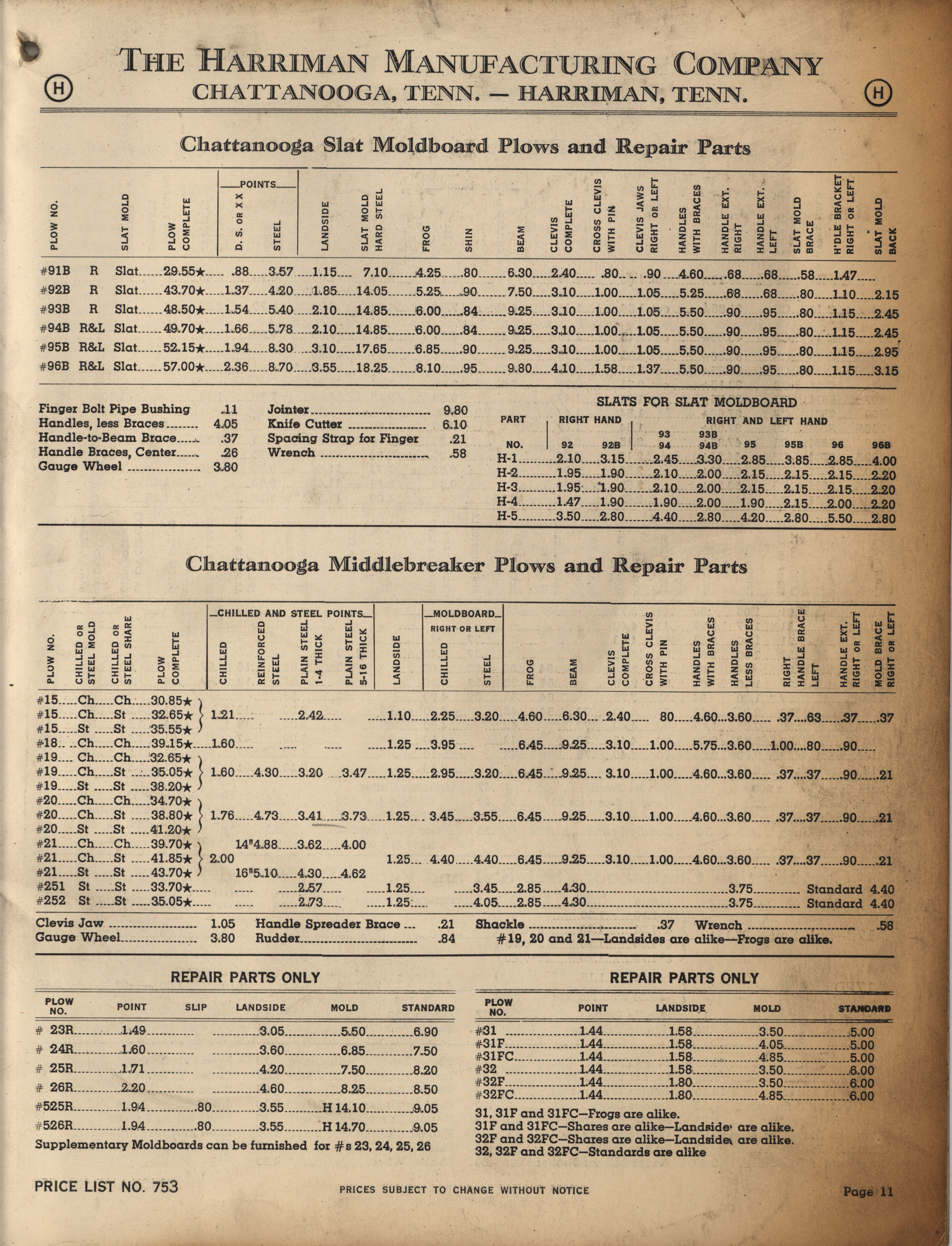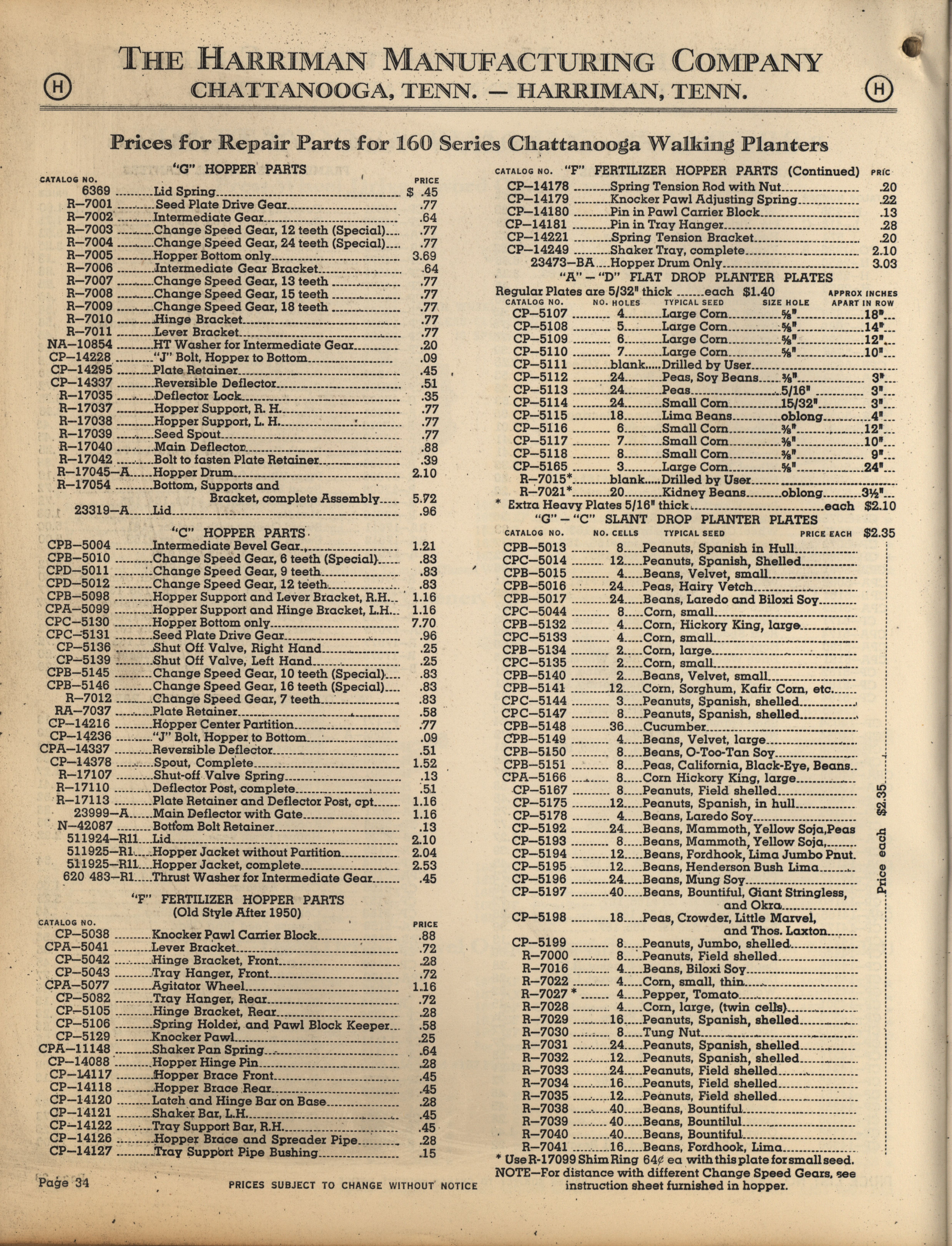 - Illustrated catalog describing the agricultural implements offered by Harriman Manufacturing Company in 1953, includes price list.