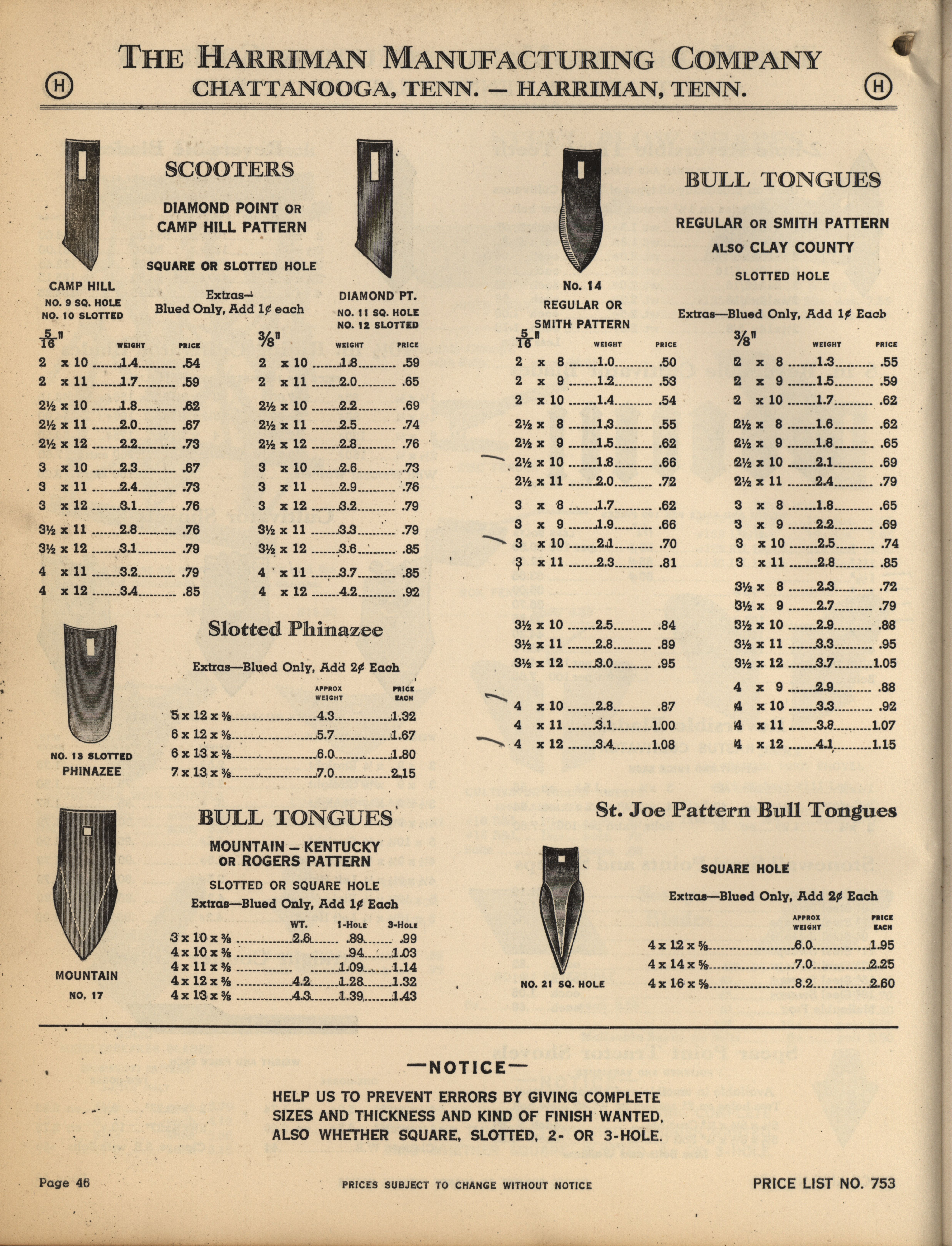 Harriman Manufacturing Company Agricultural Implements catalog Item Info