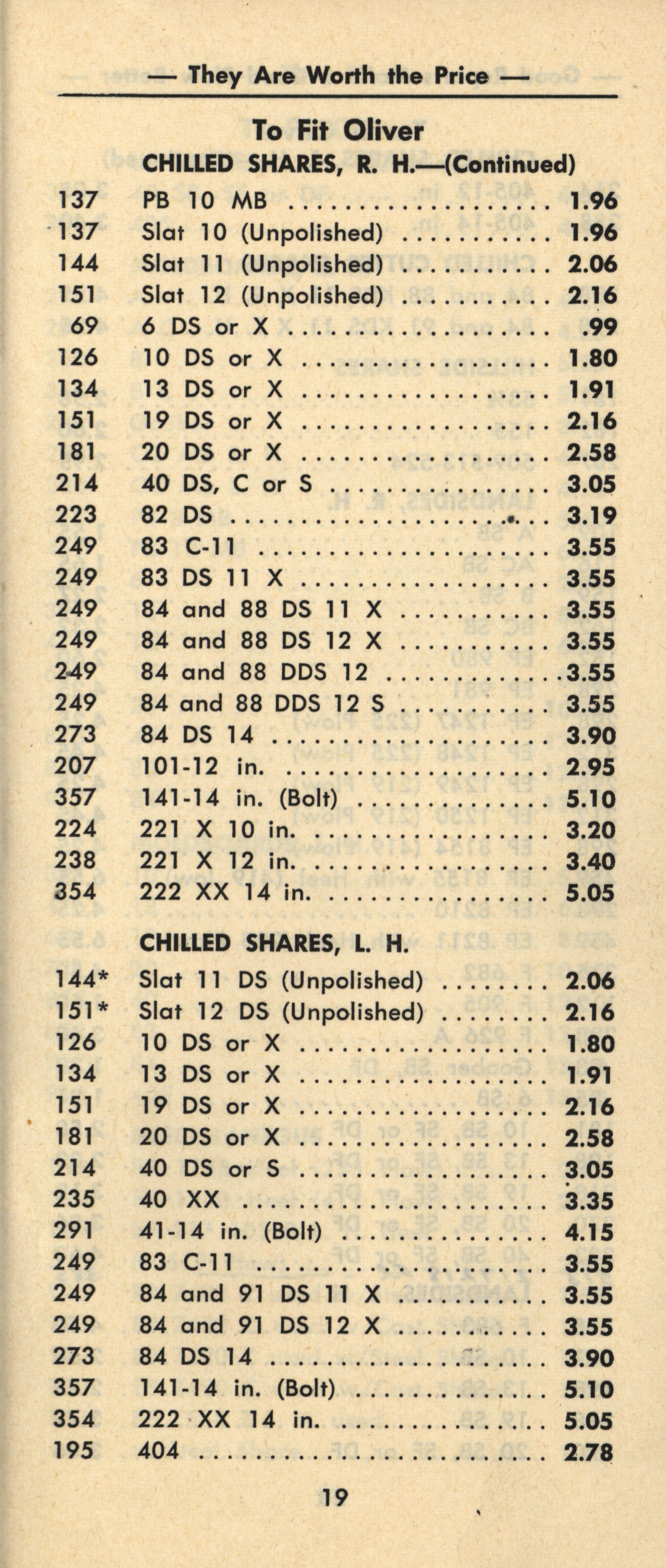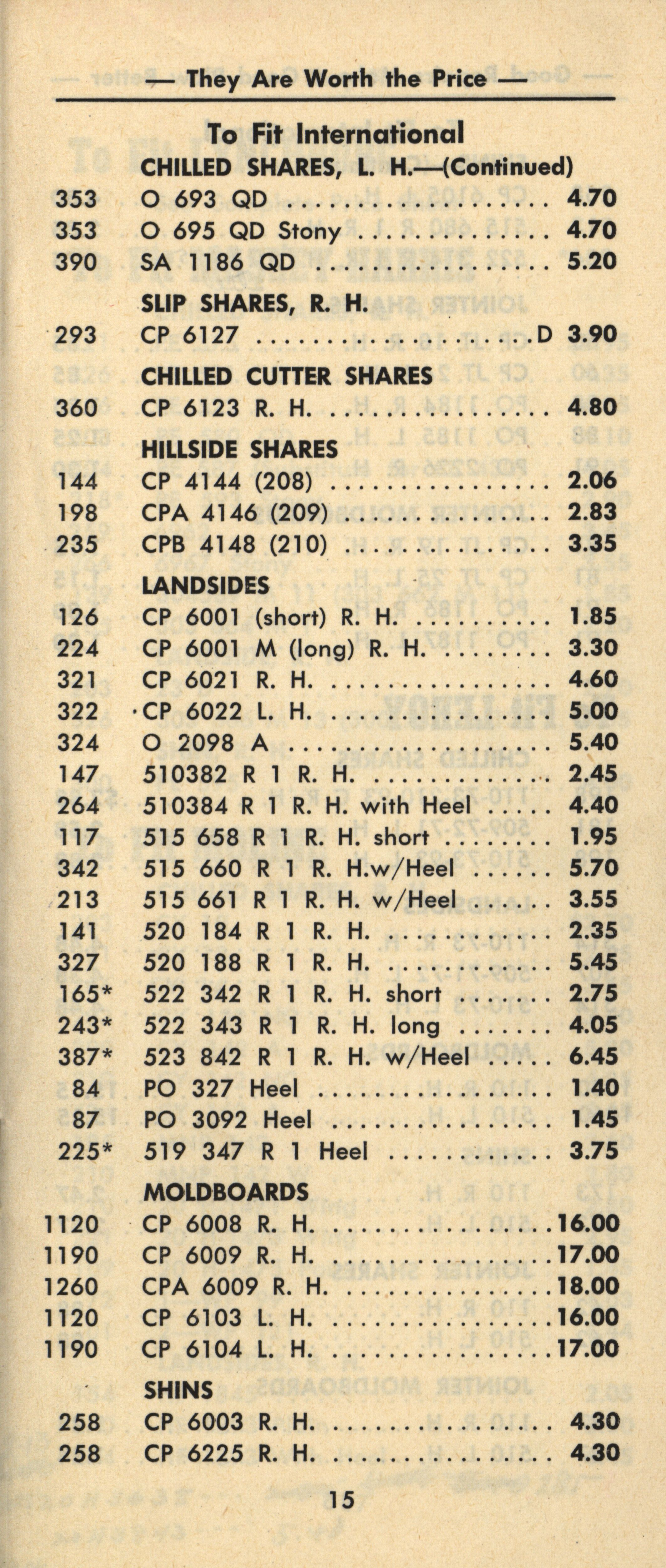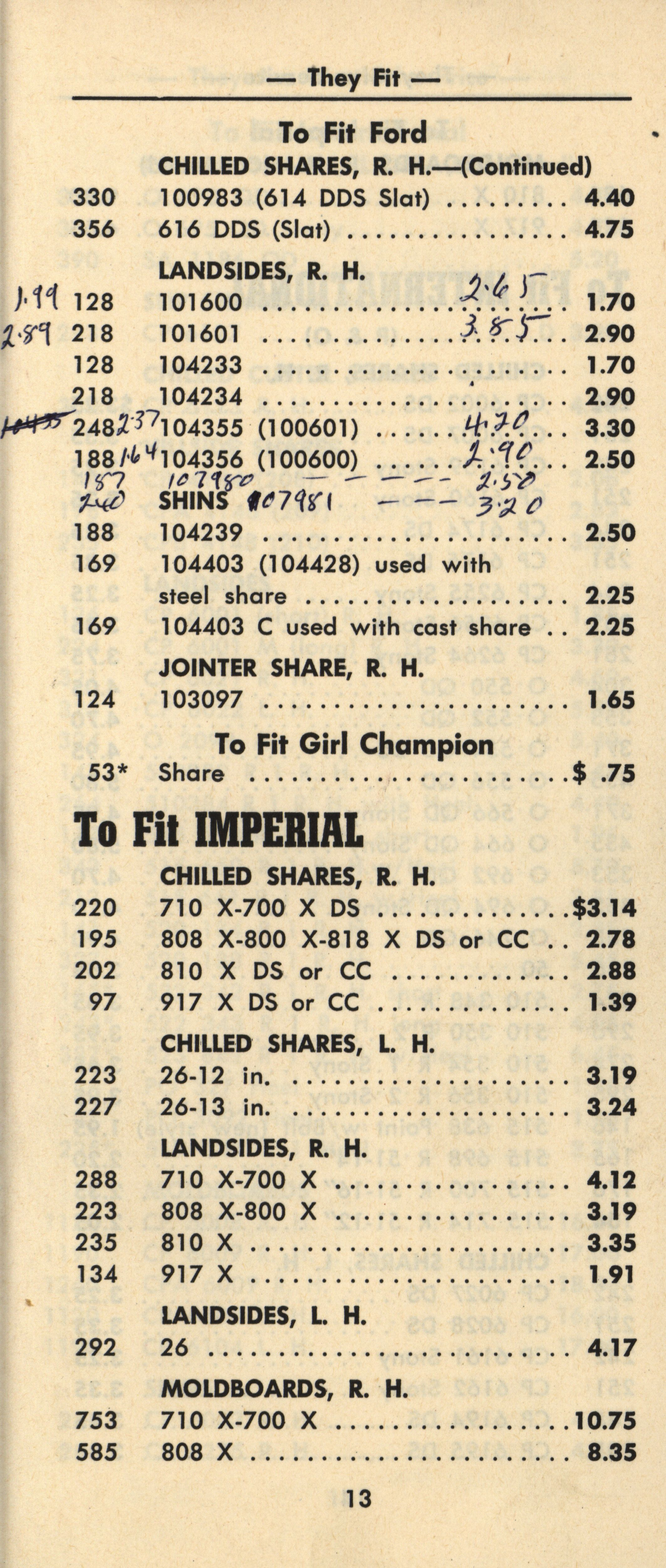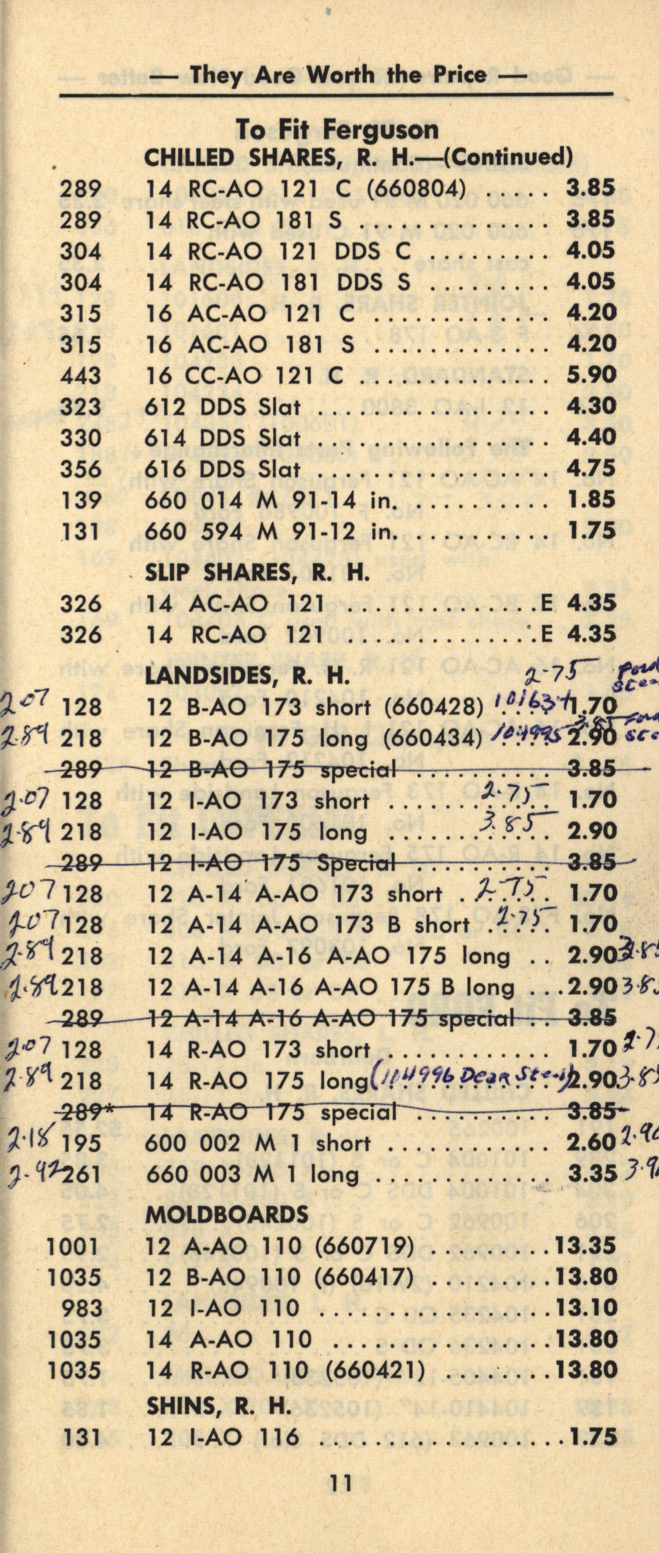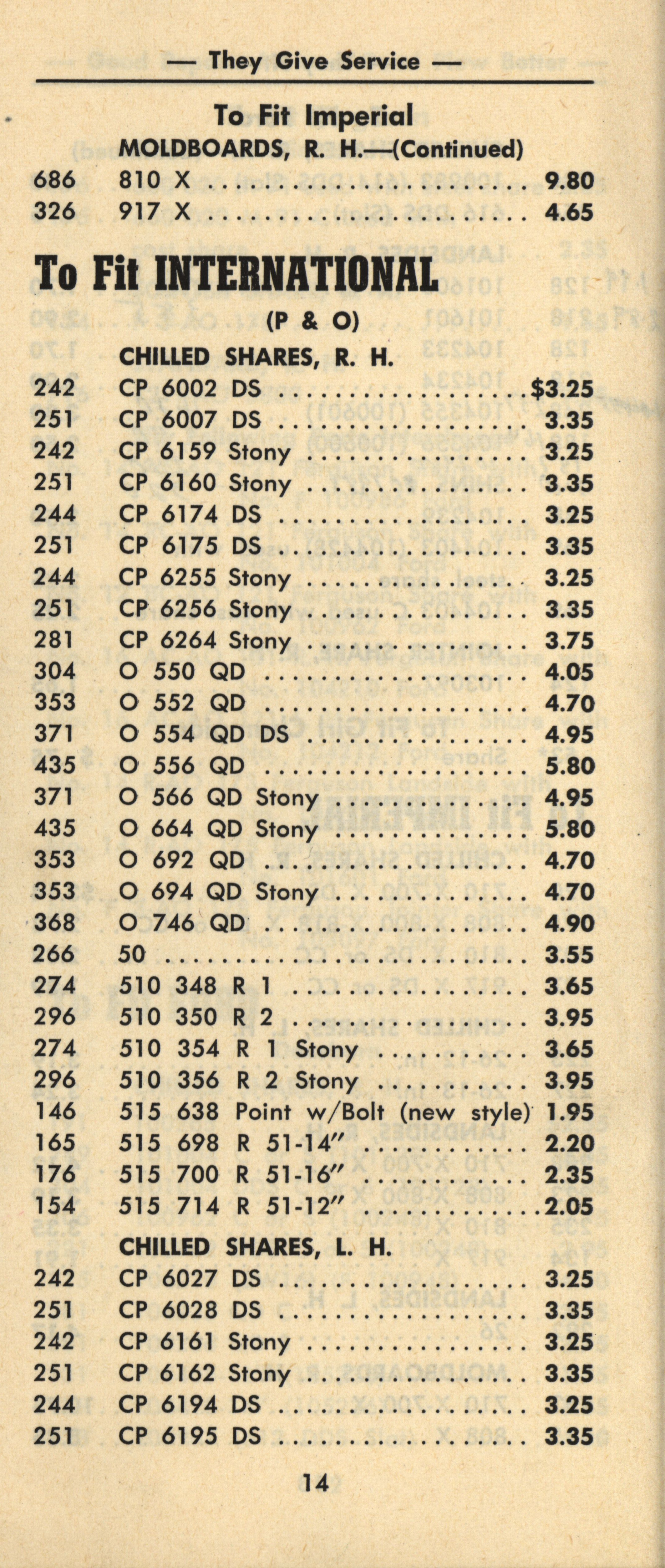 - Price list for repairs and parts offered by Hamburg Plow Works in 1961.