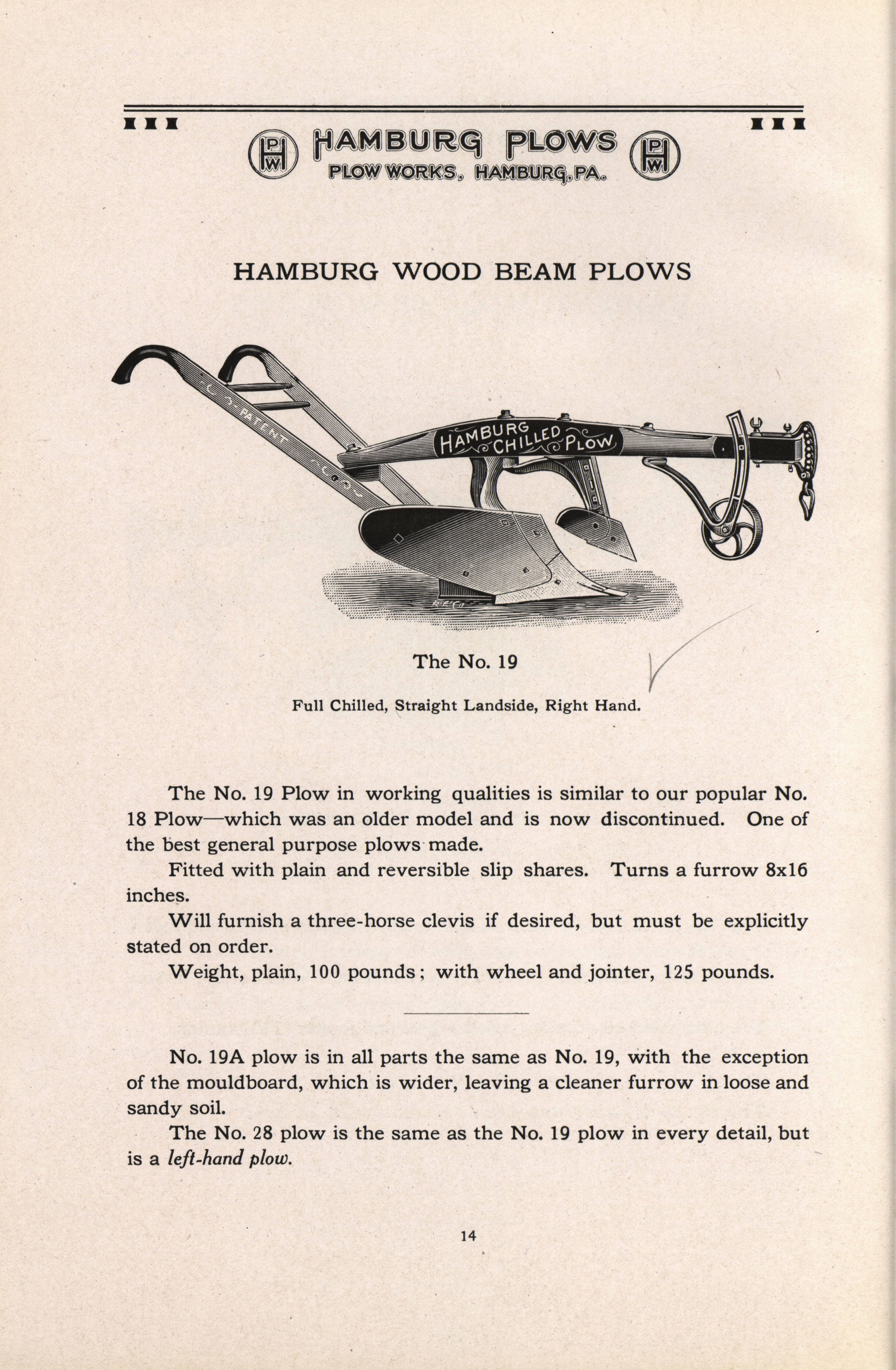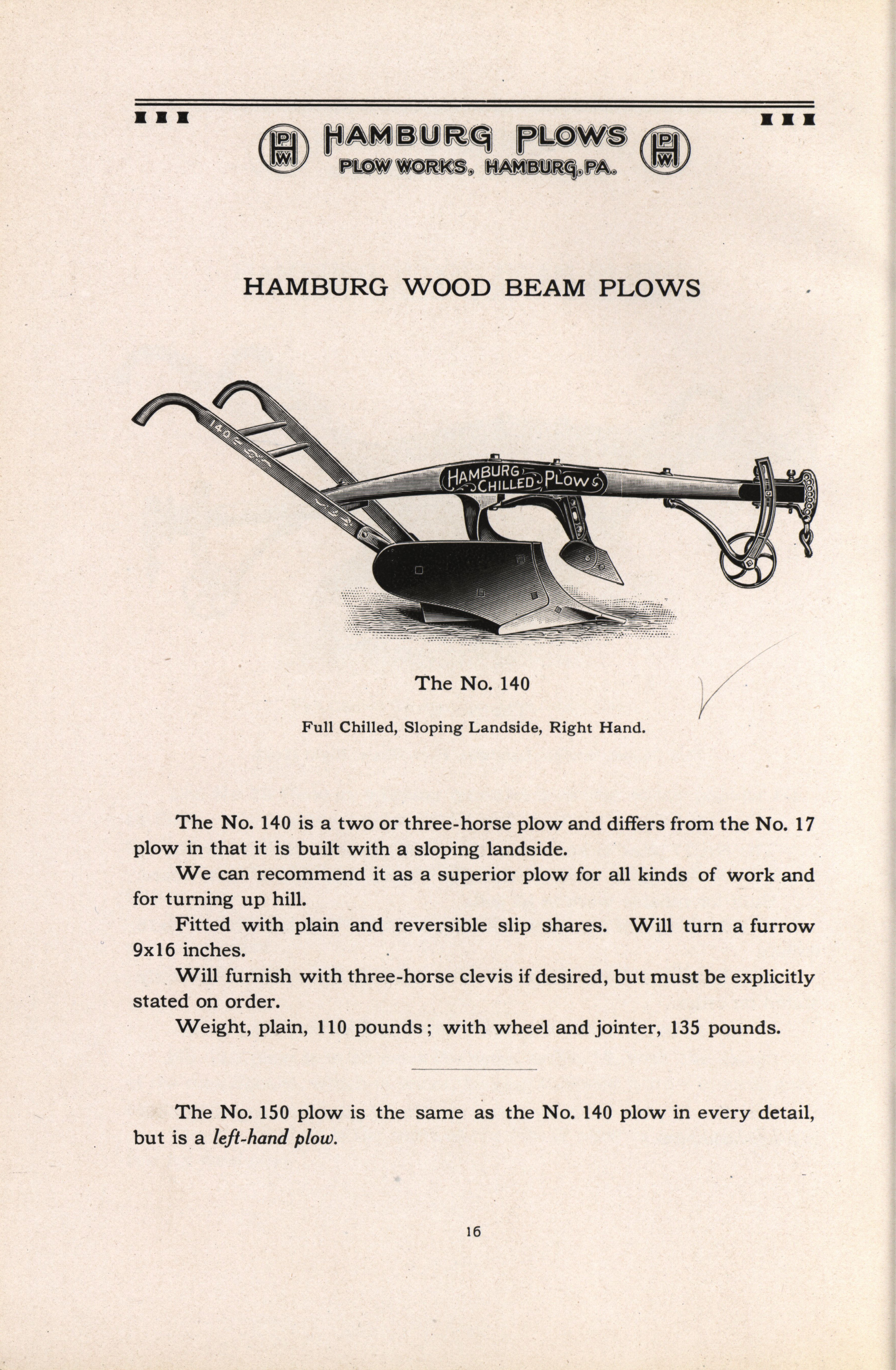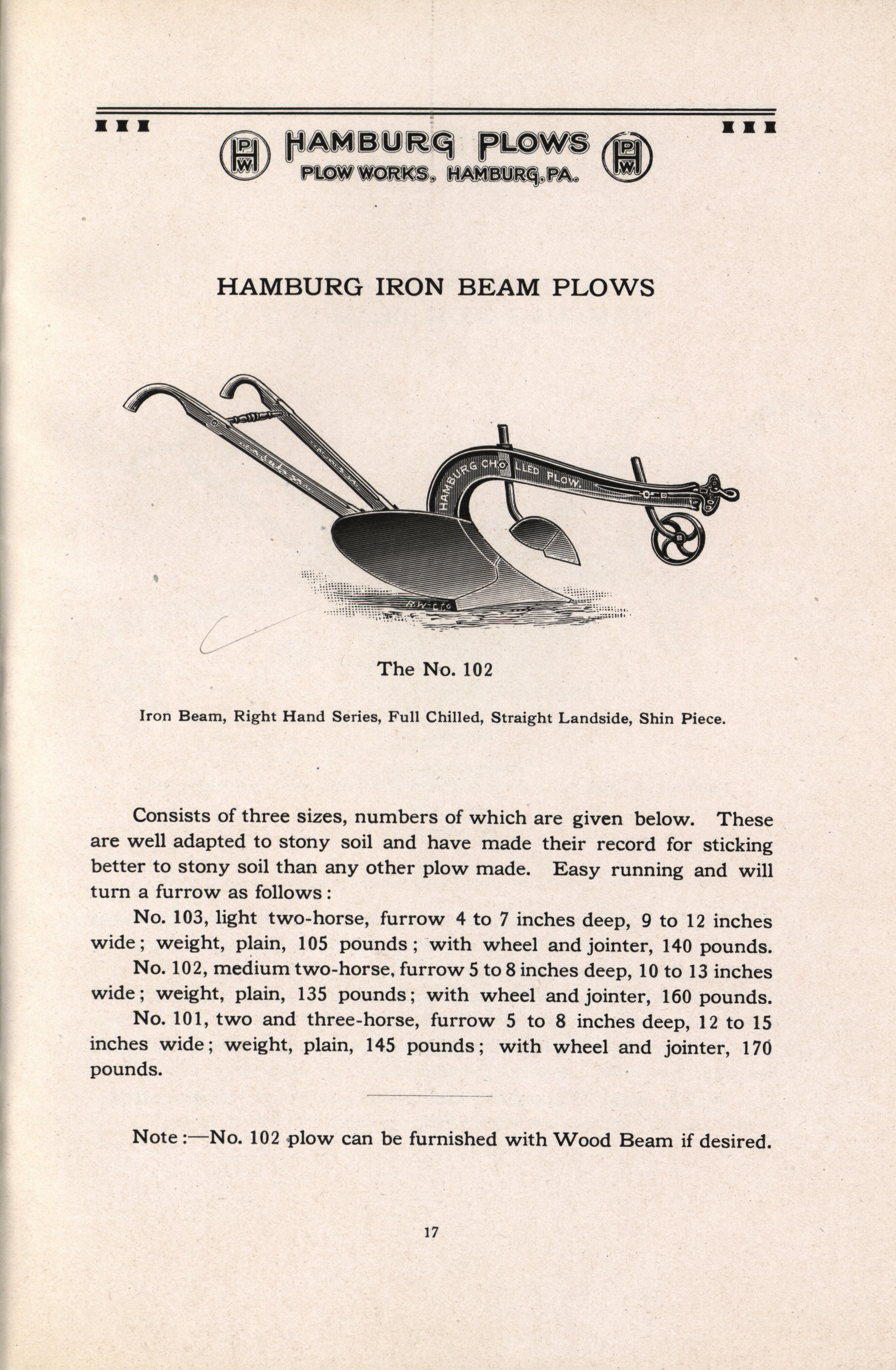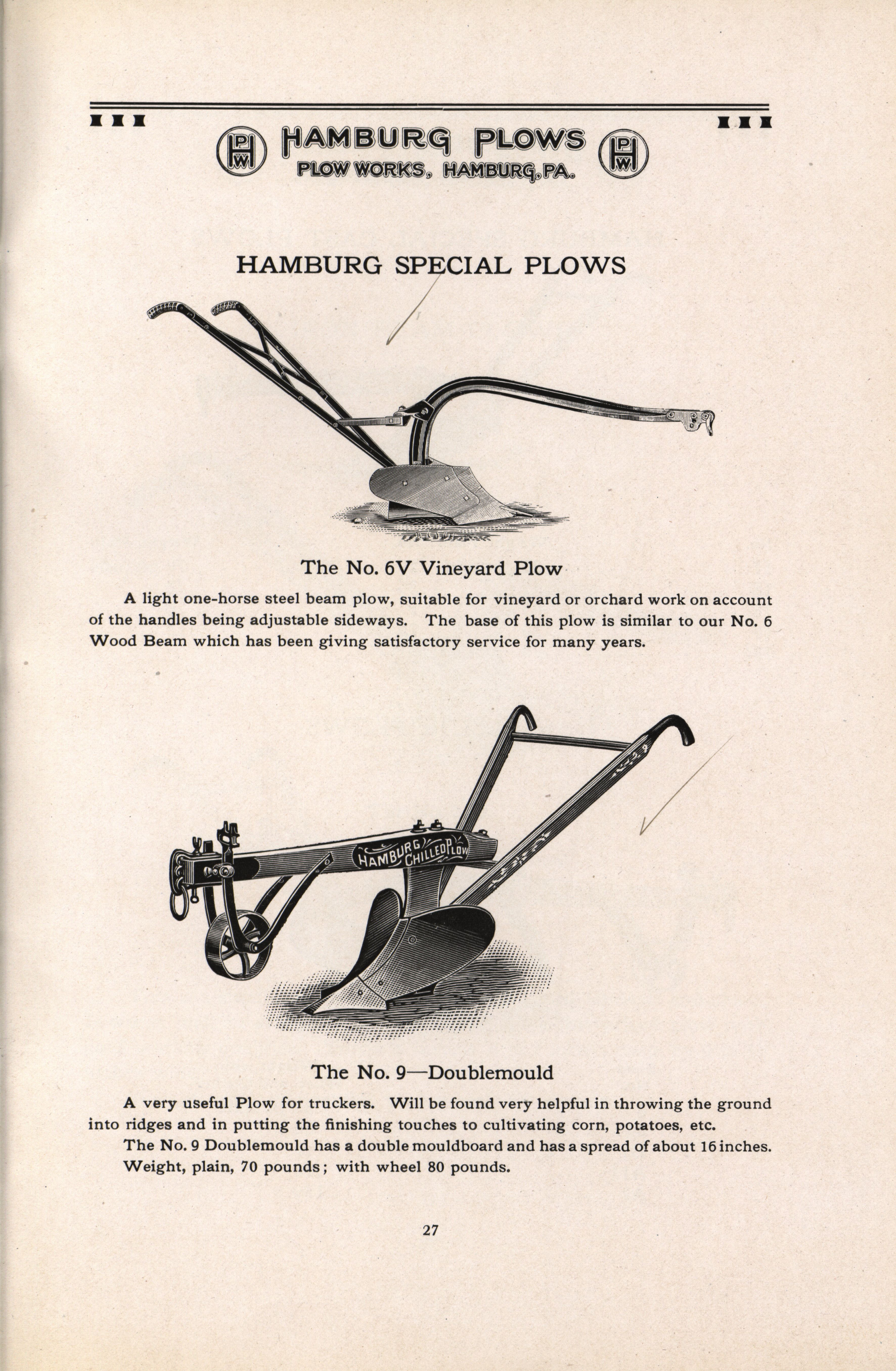 - "Hamburg Plow Works catalog, No. 1", Agricultural Machinery Literature Collection, Iowa State University Library Digital Collections