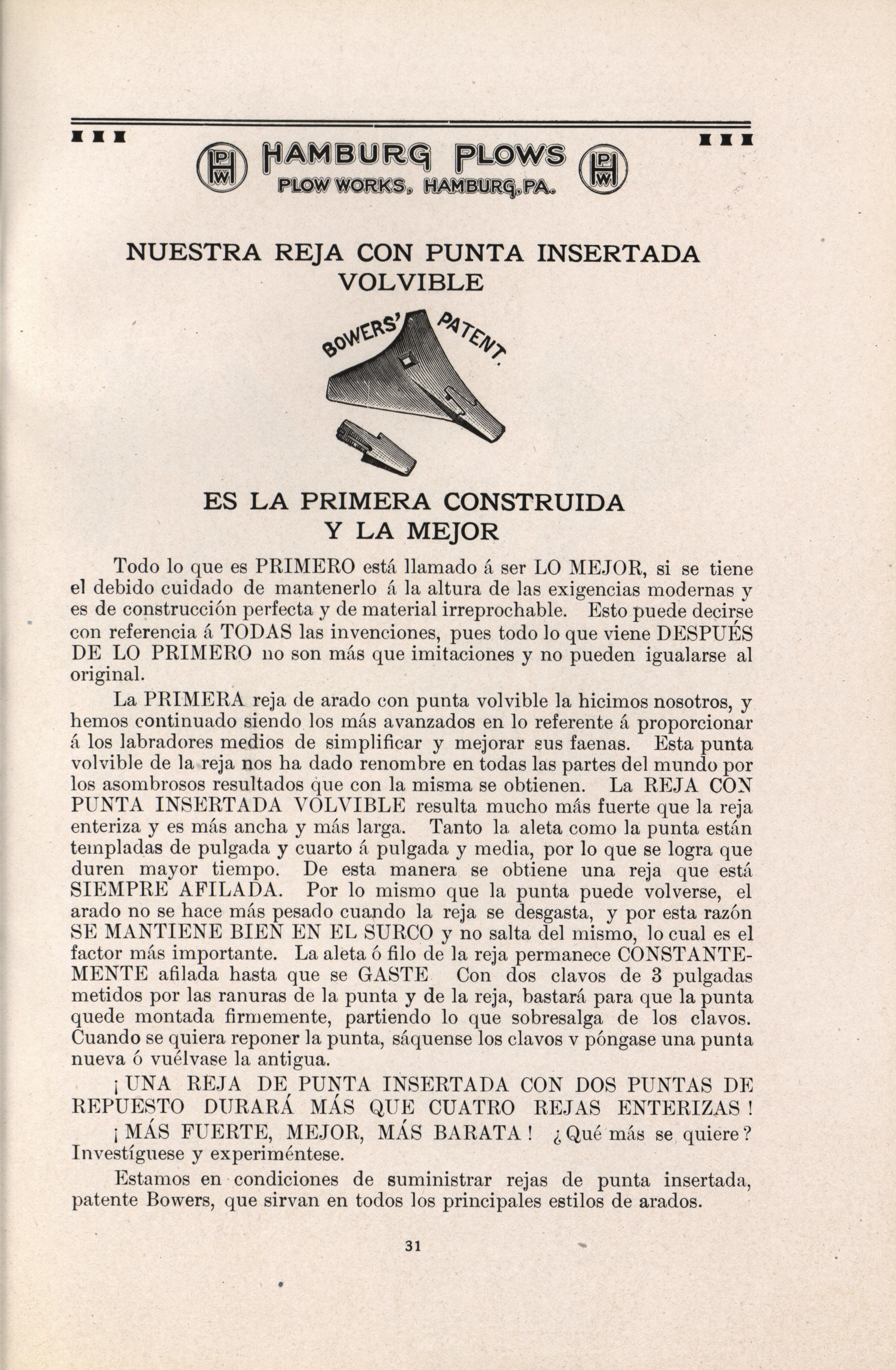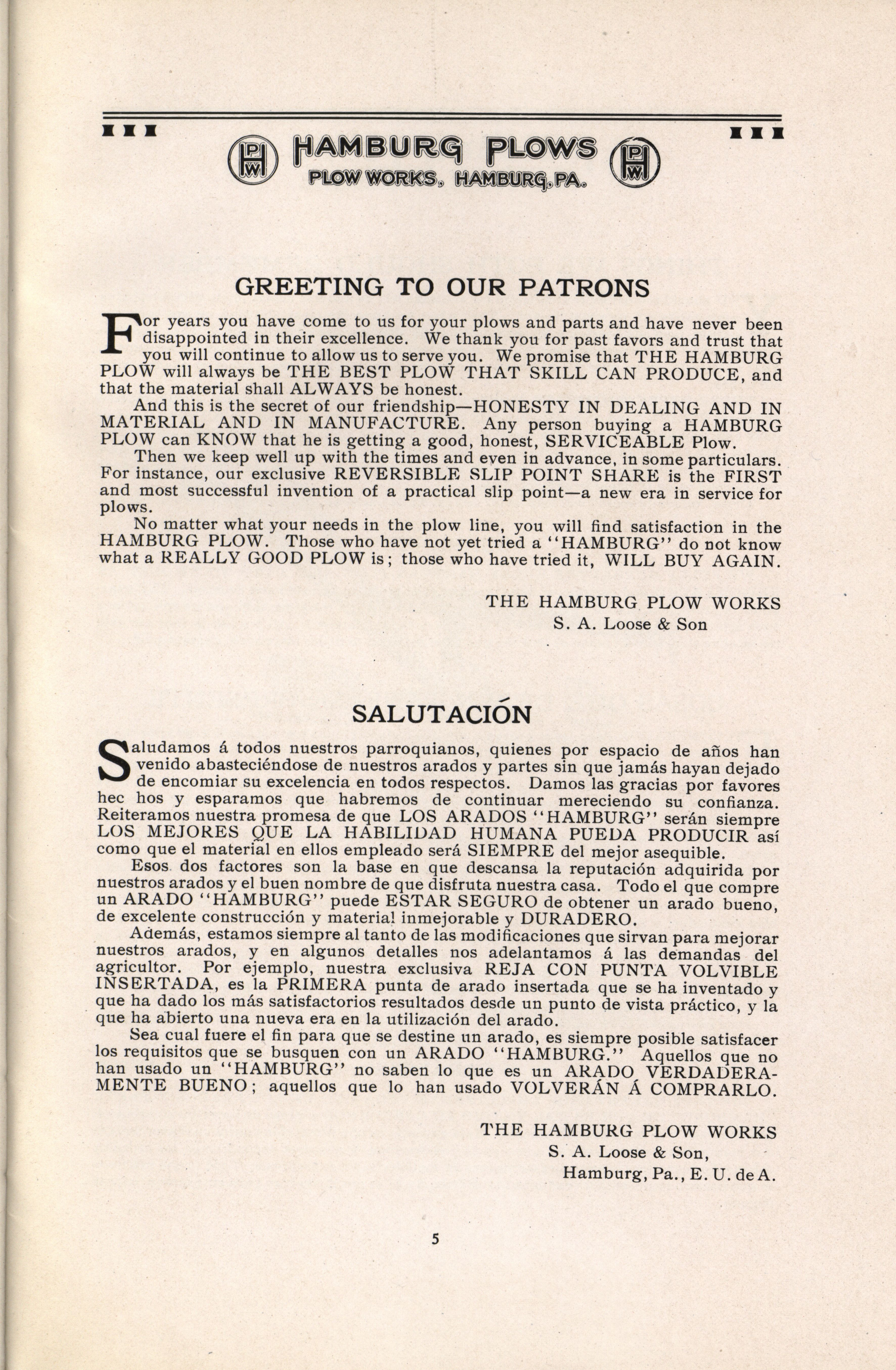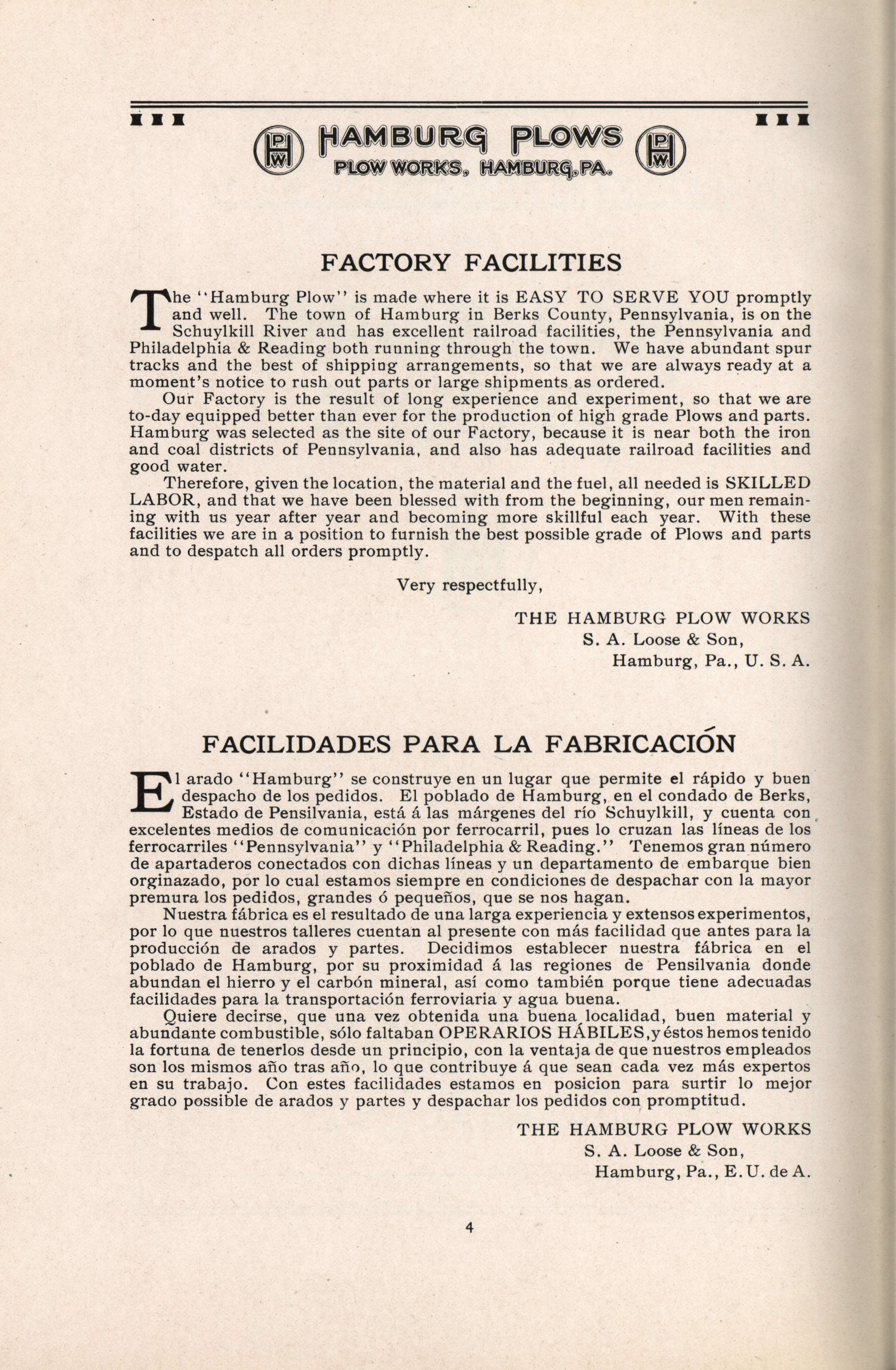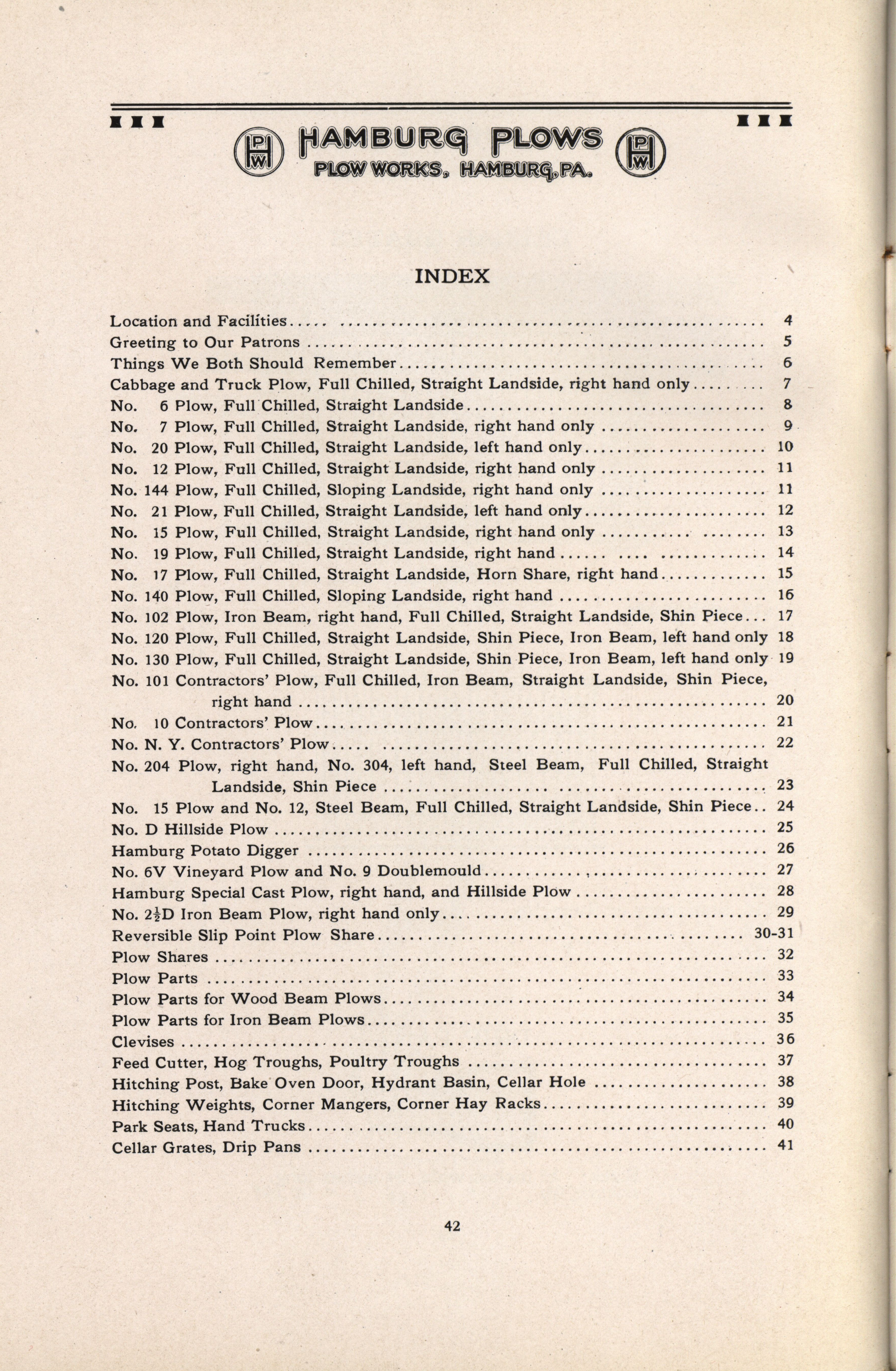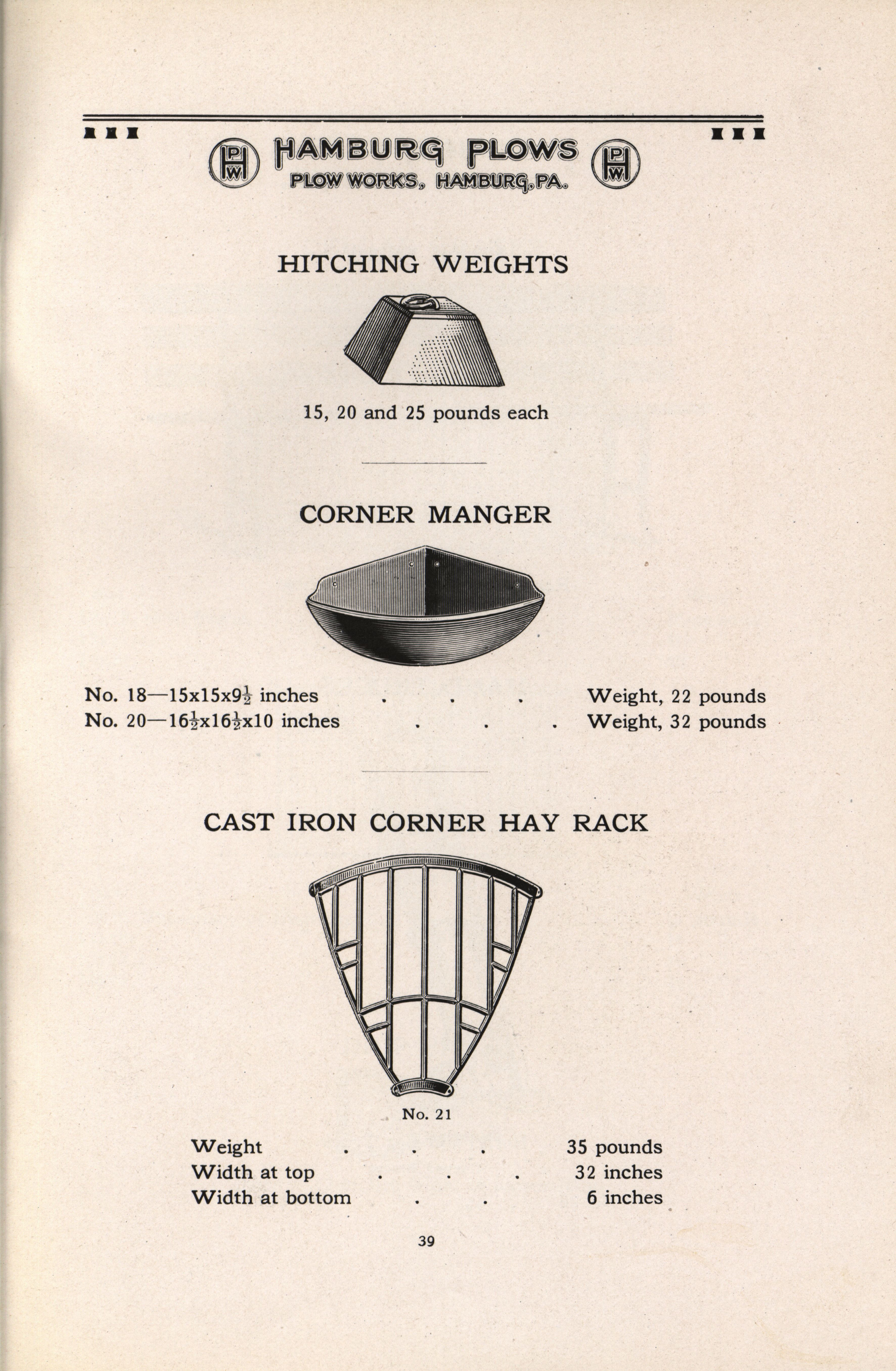 - "Hamburg Plow Works catalog, No. 1", Agricultural Machinery Literature Collection, Iowa State University Library Digital Collections