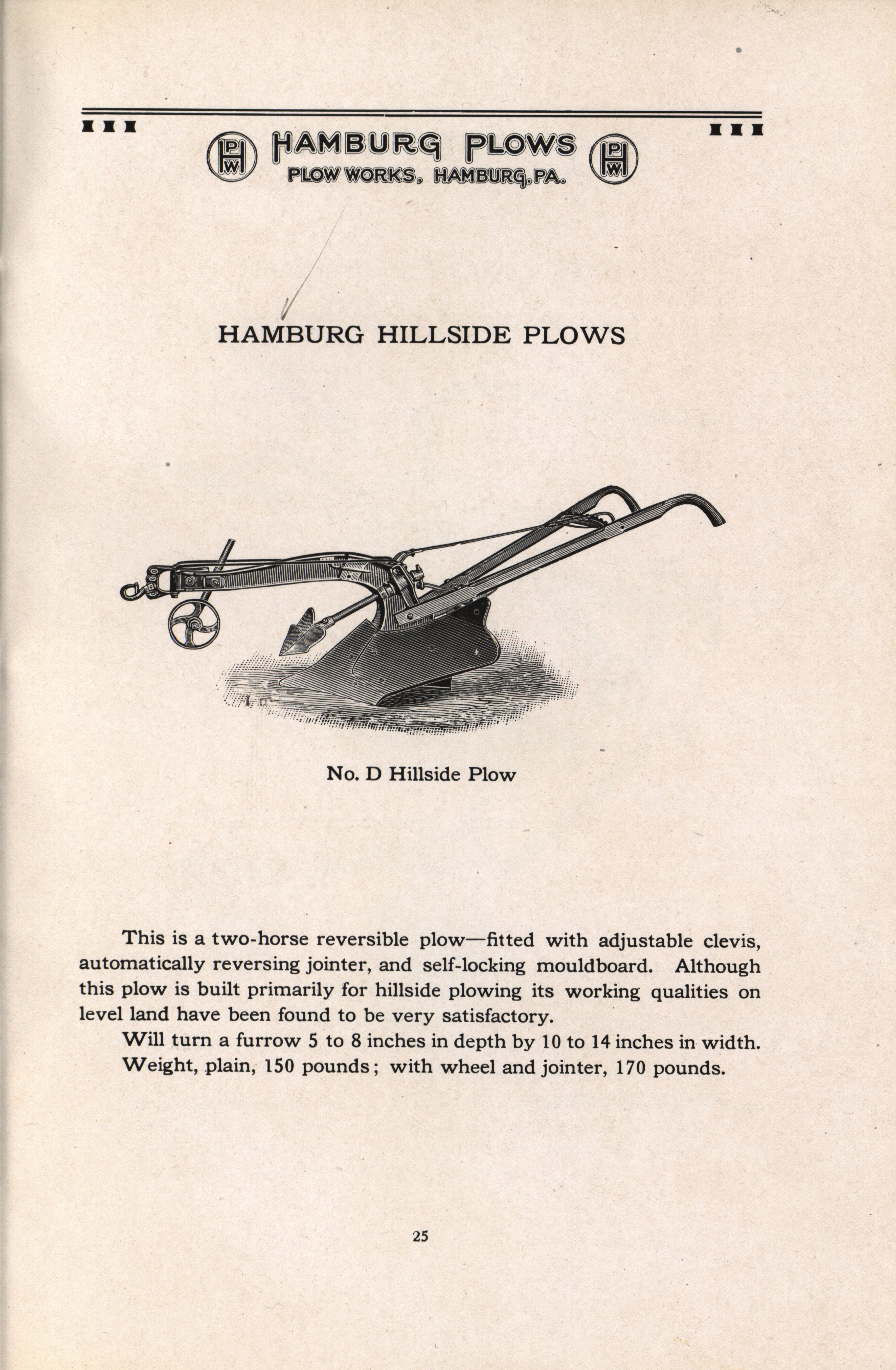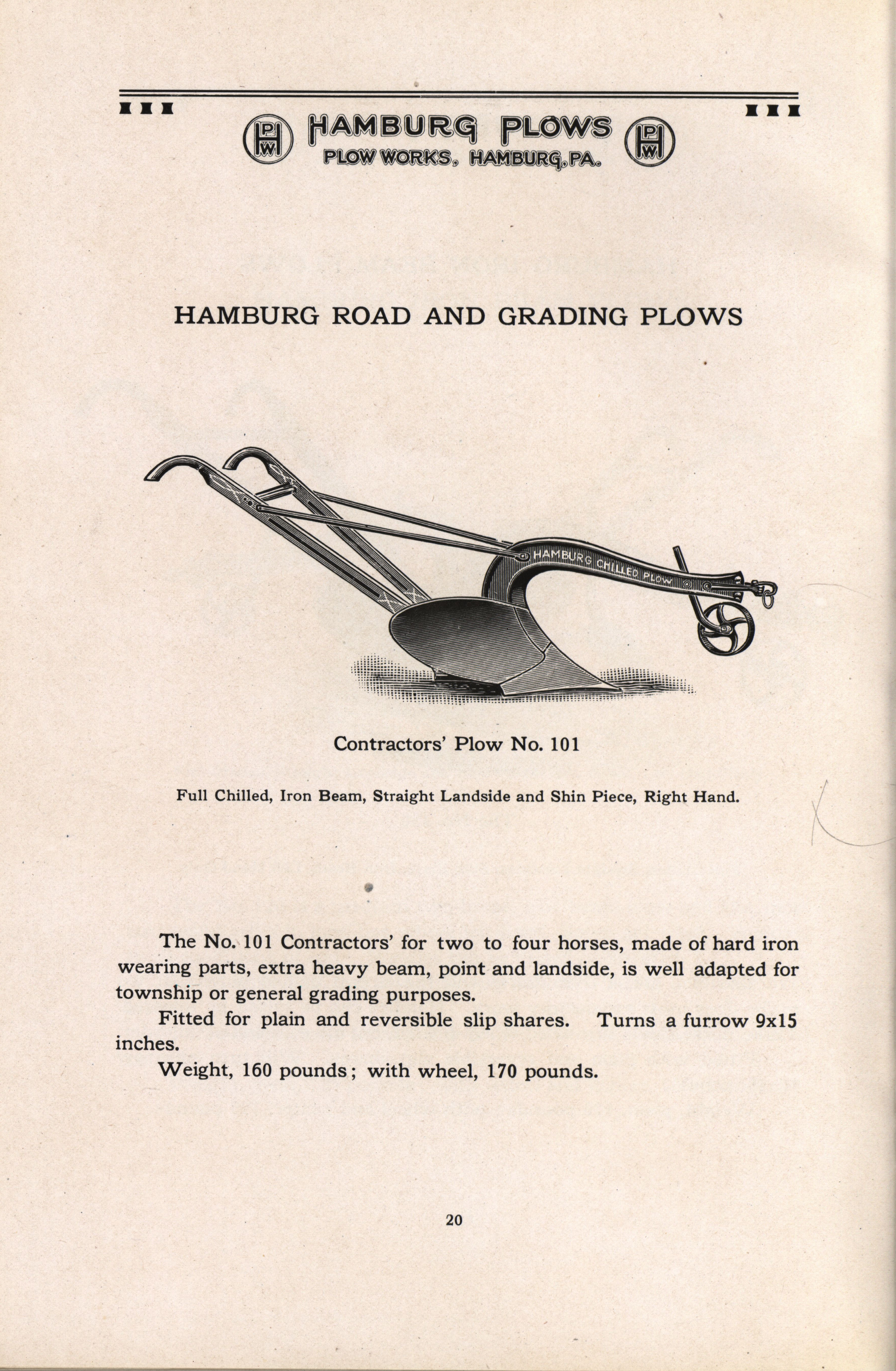 - Illustrated catalog describing the agricultural implements offered by the Hamburg Plow Works in 1918.