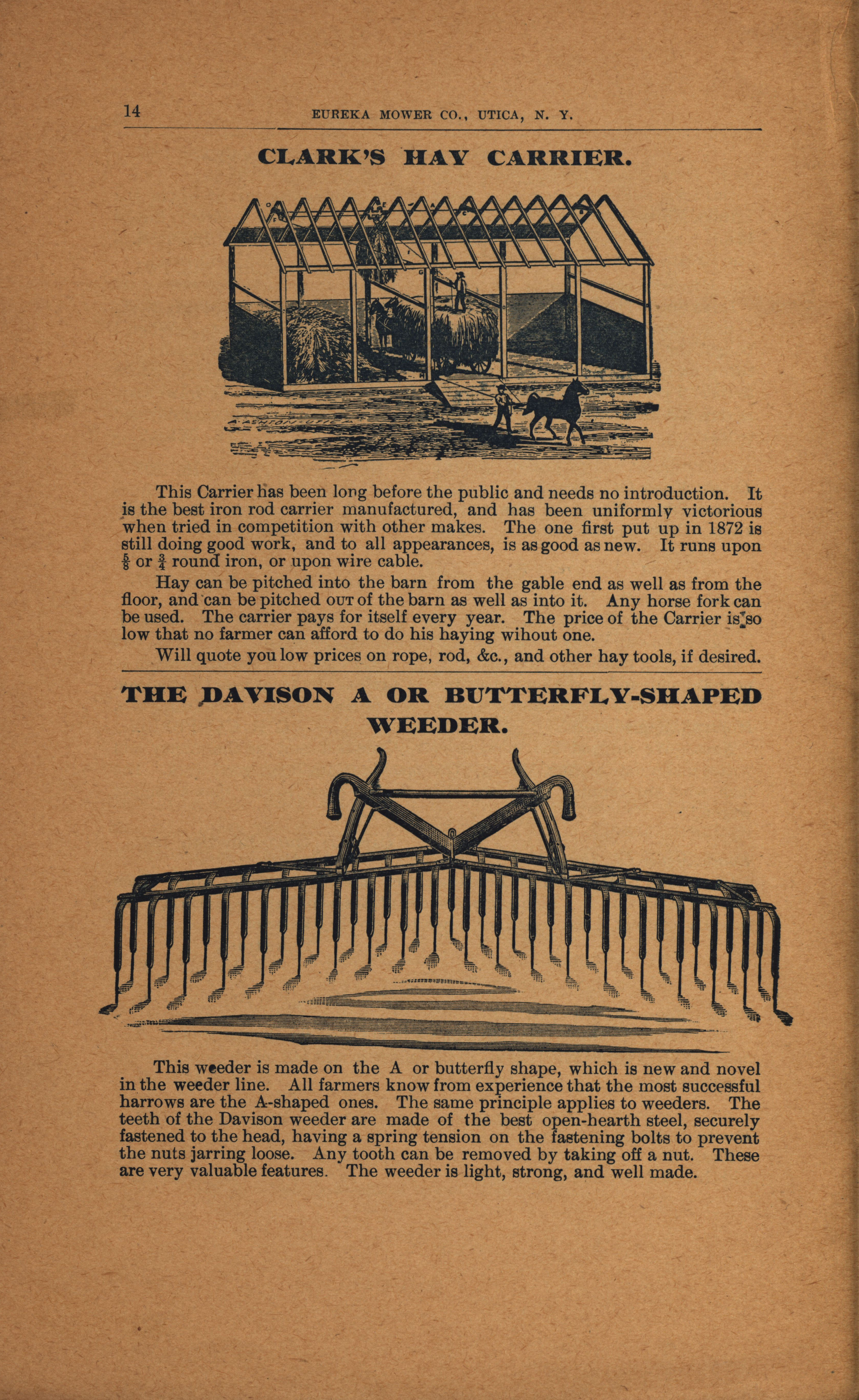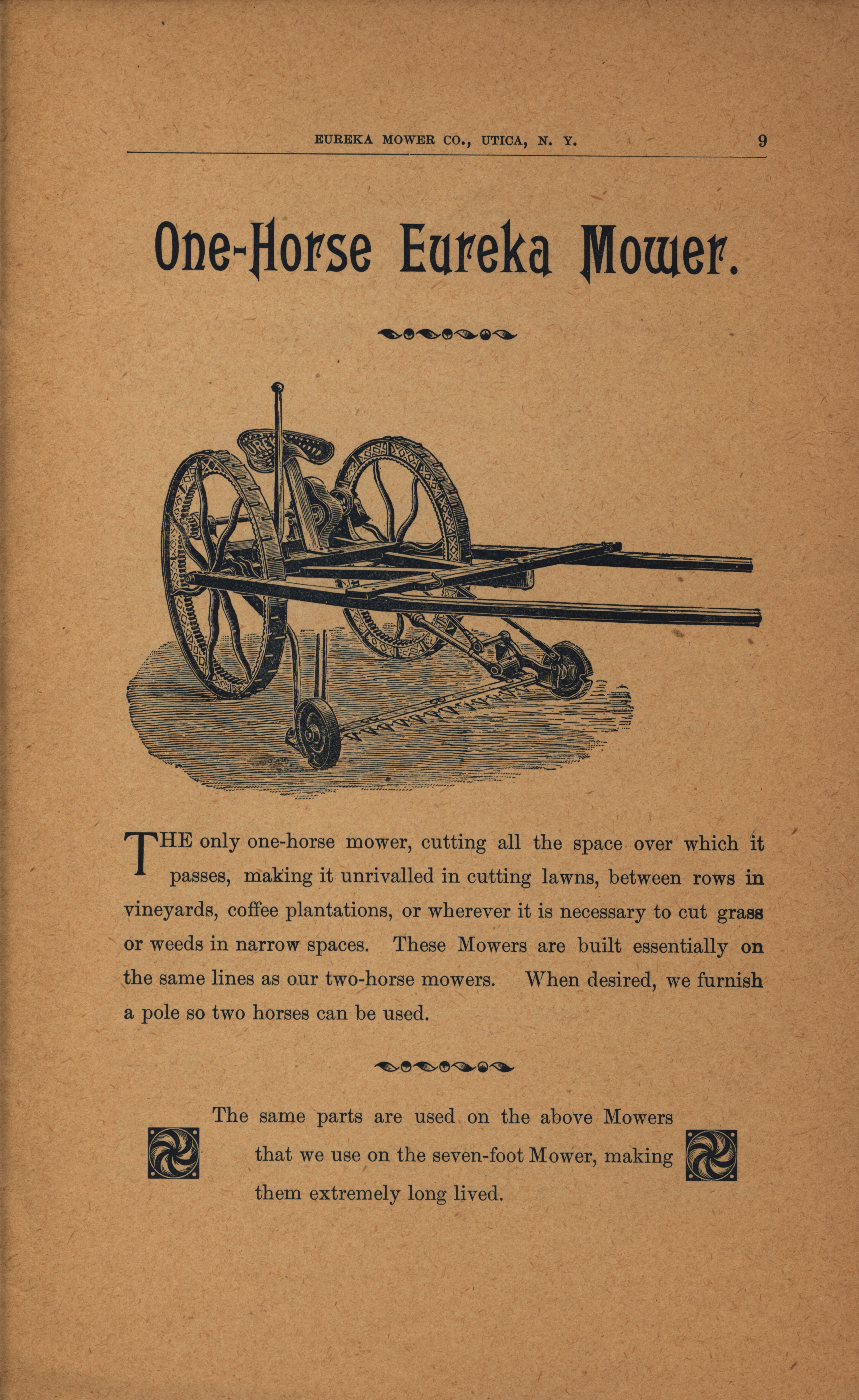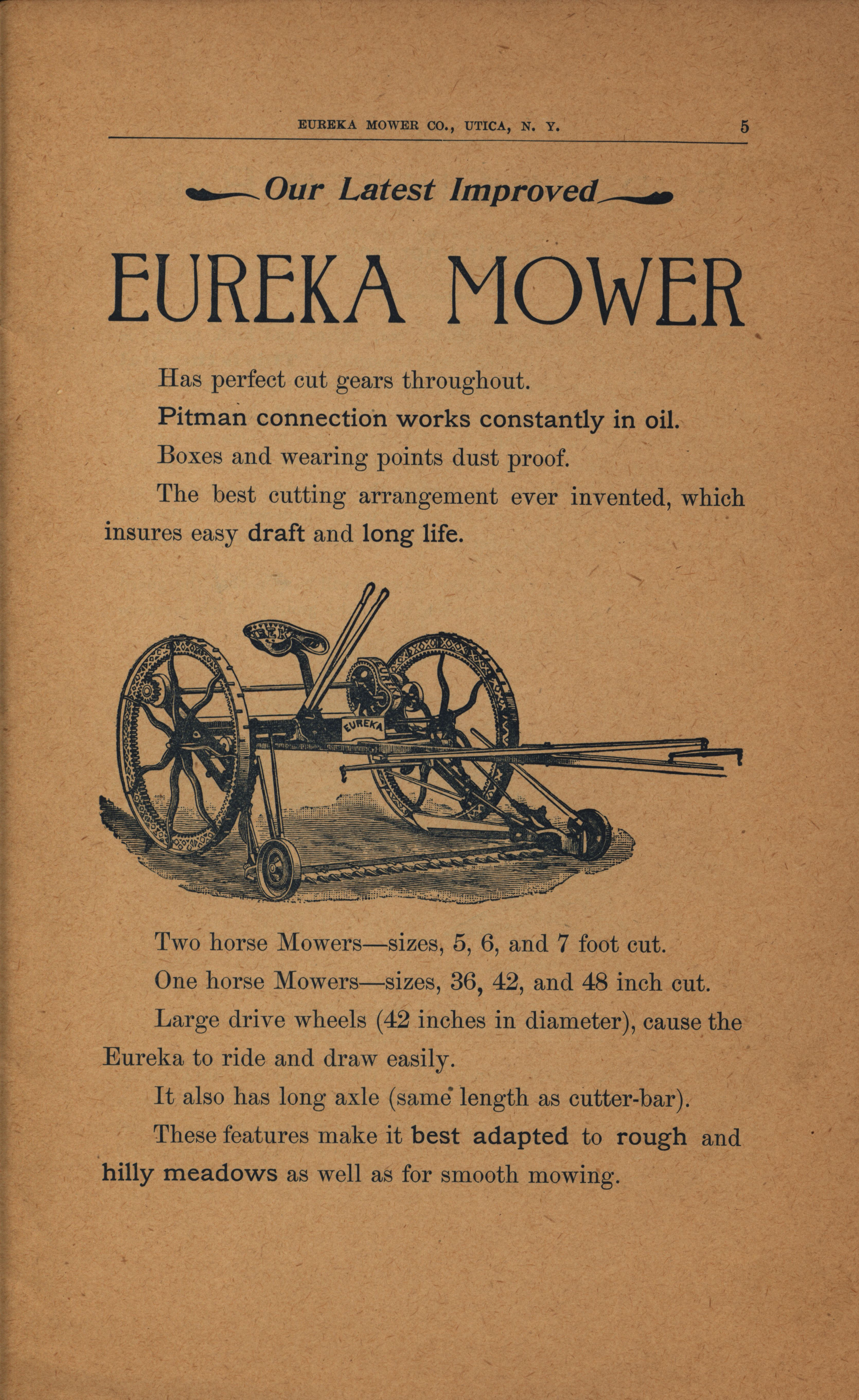 - "Eureka Mower Company catalog", Agricultural Machinery Literature Collection, Iowa State University Library Digital Collections