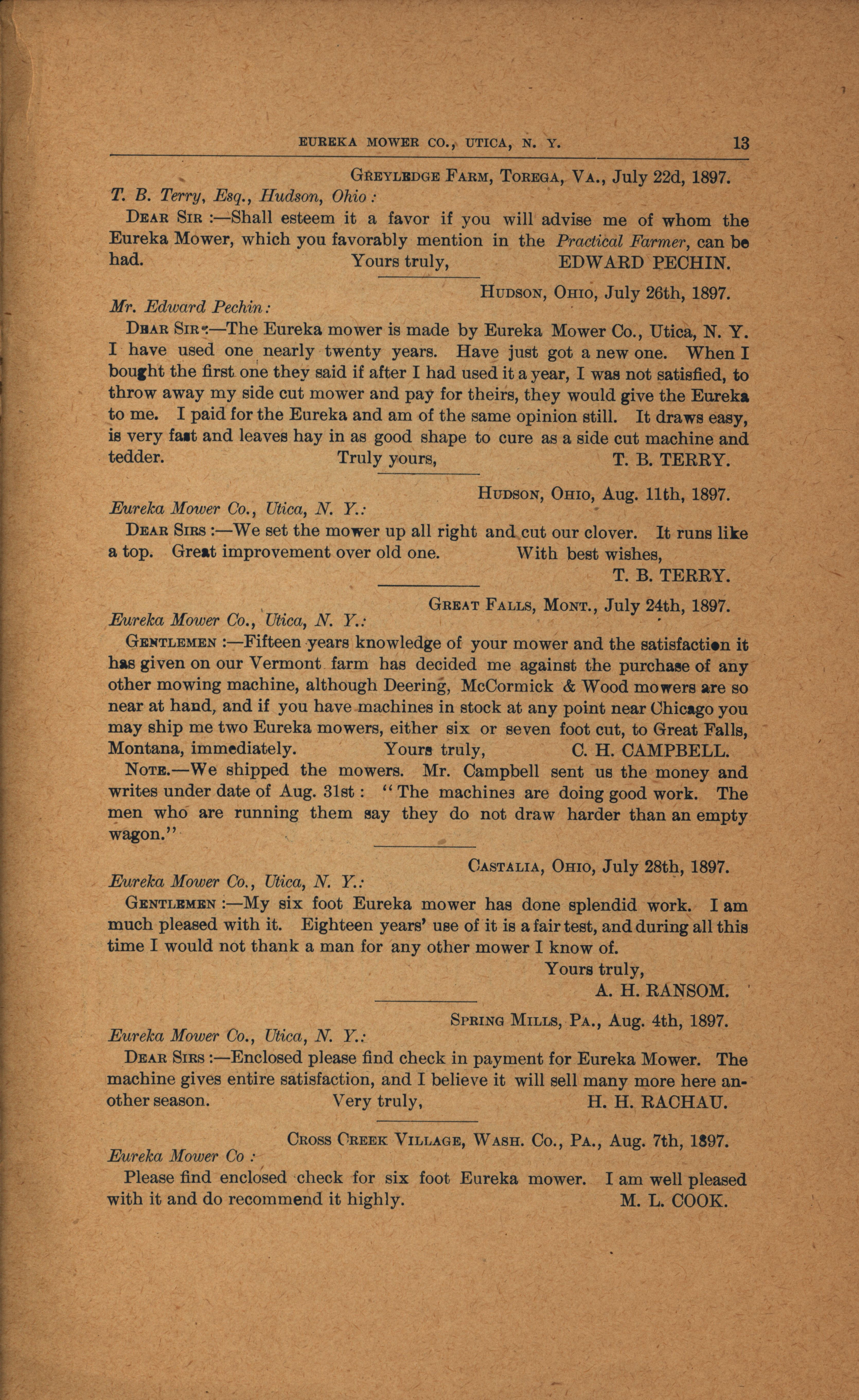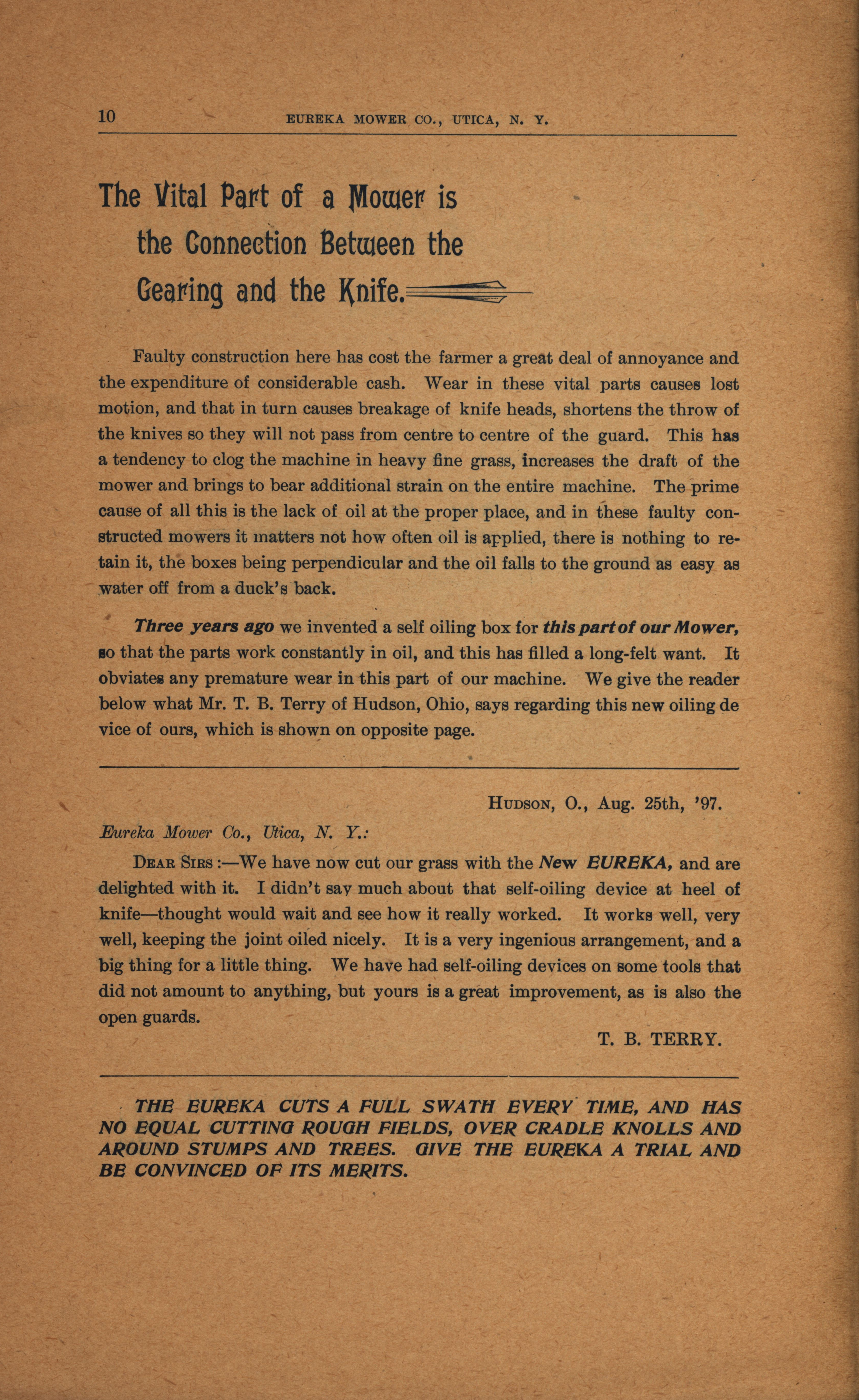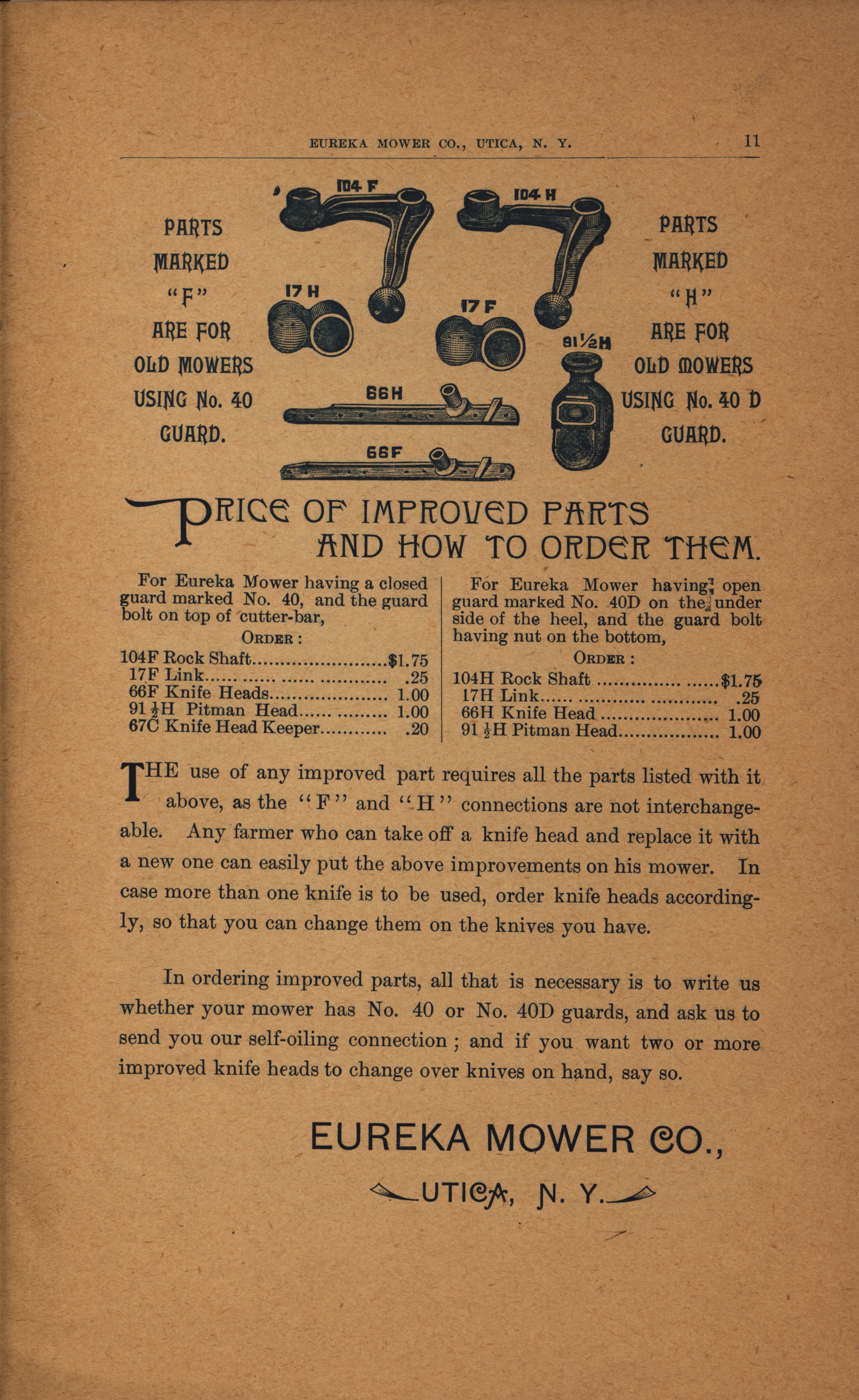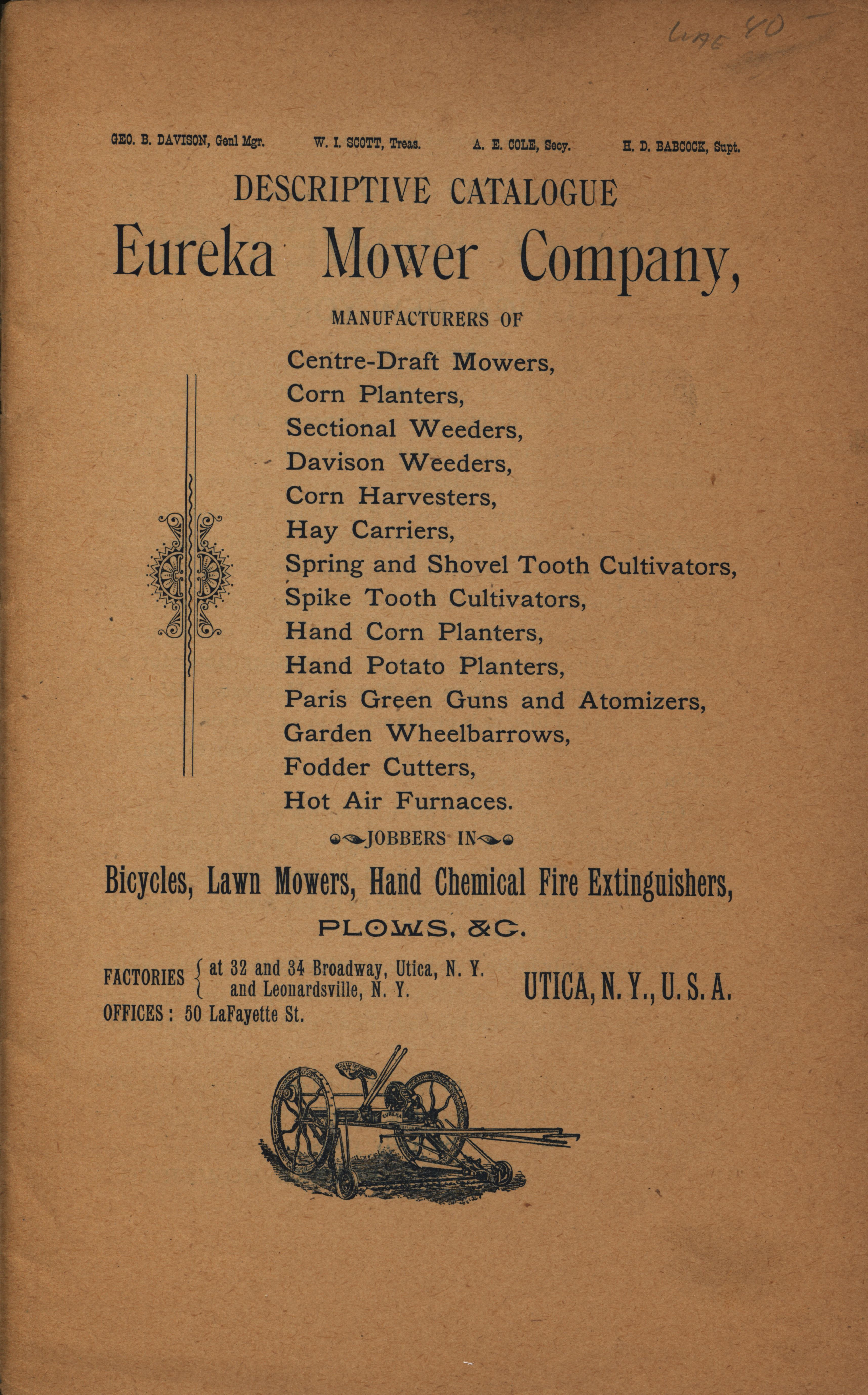 - "Eureka Mower Company catalog", Agricultural Machinery Literature Collection, Iowa State University Library Digital Collections