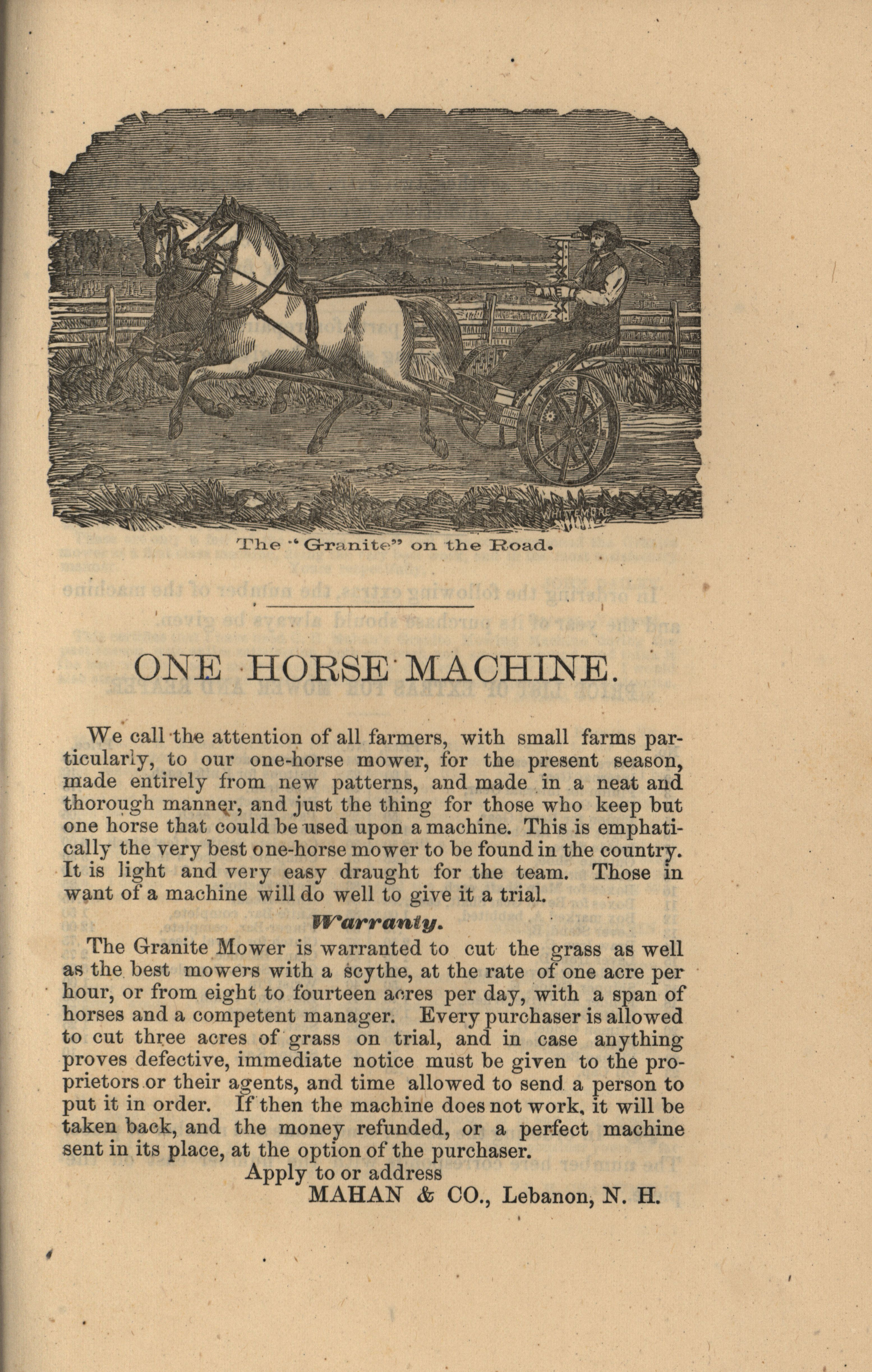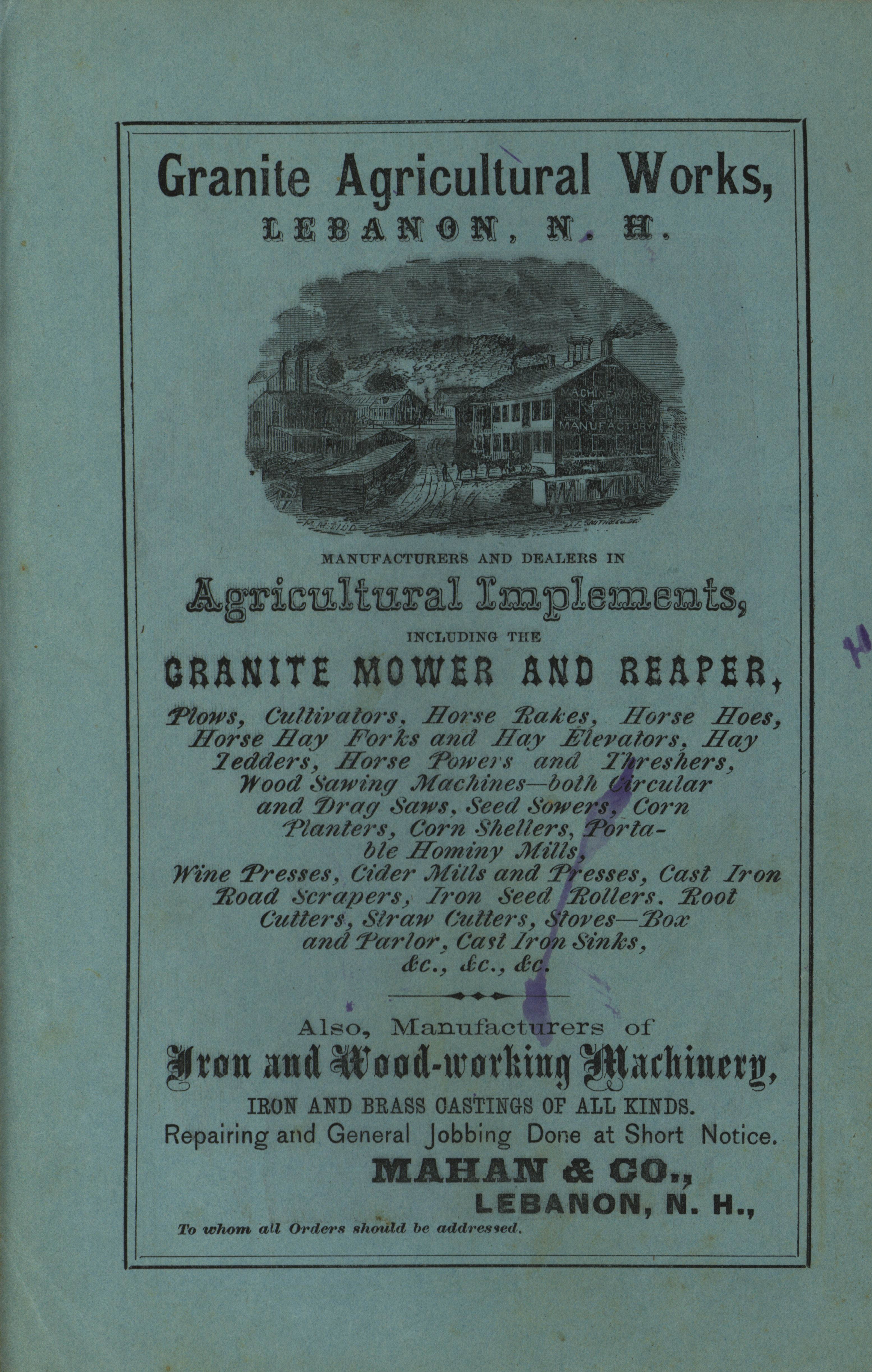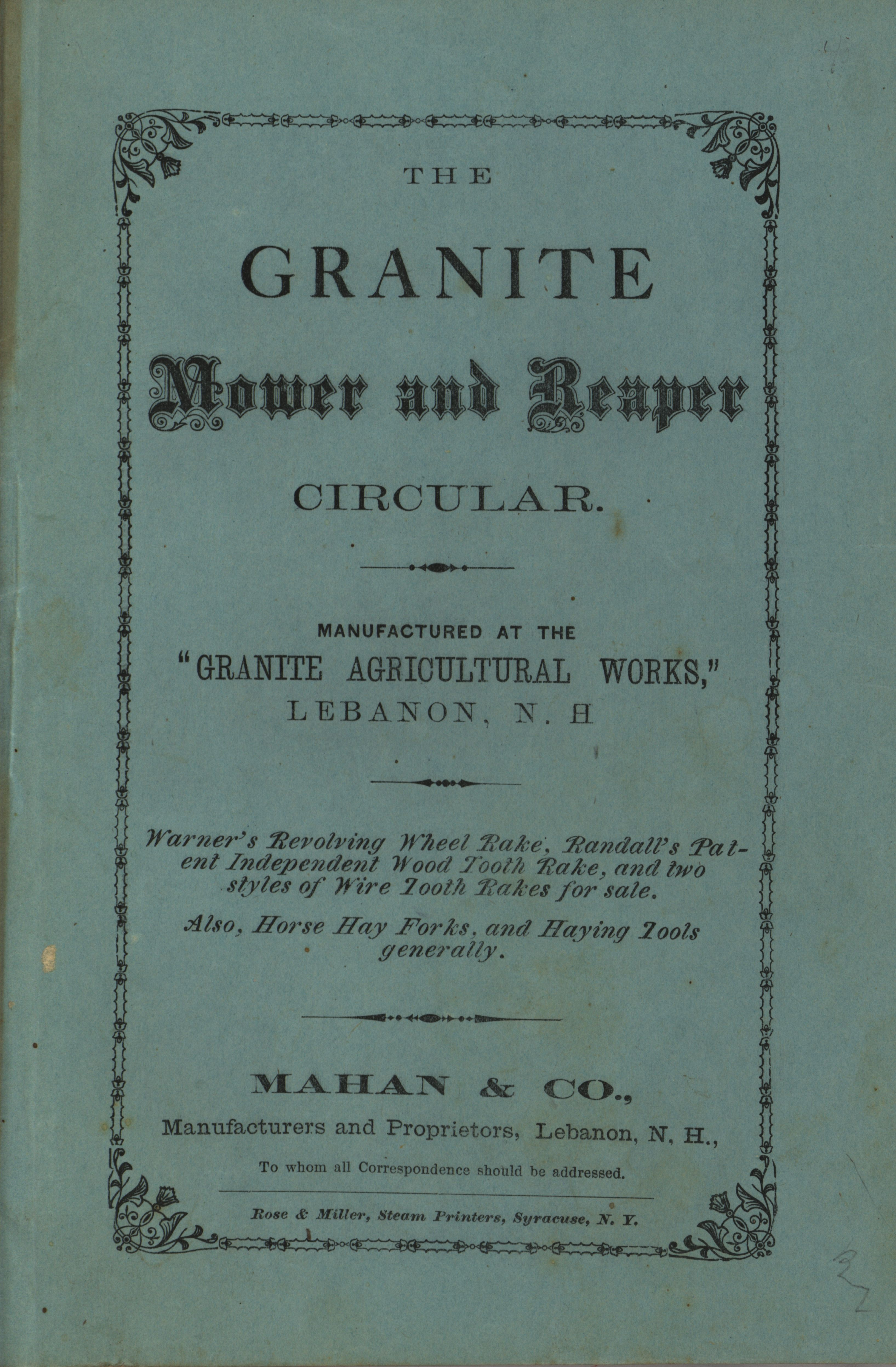 - Illustrated catalog describing the Granite Agricultural Works offered by Mahan and Company.