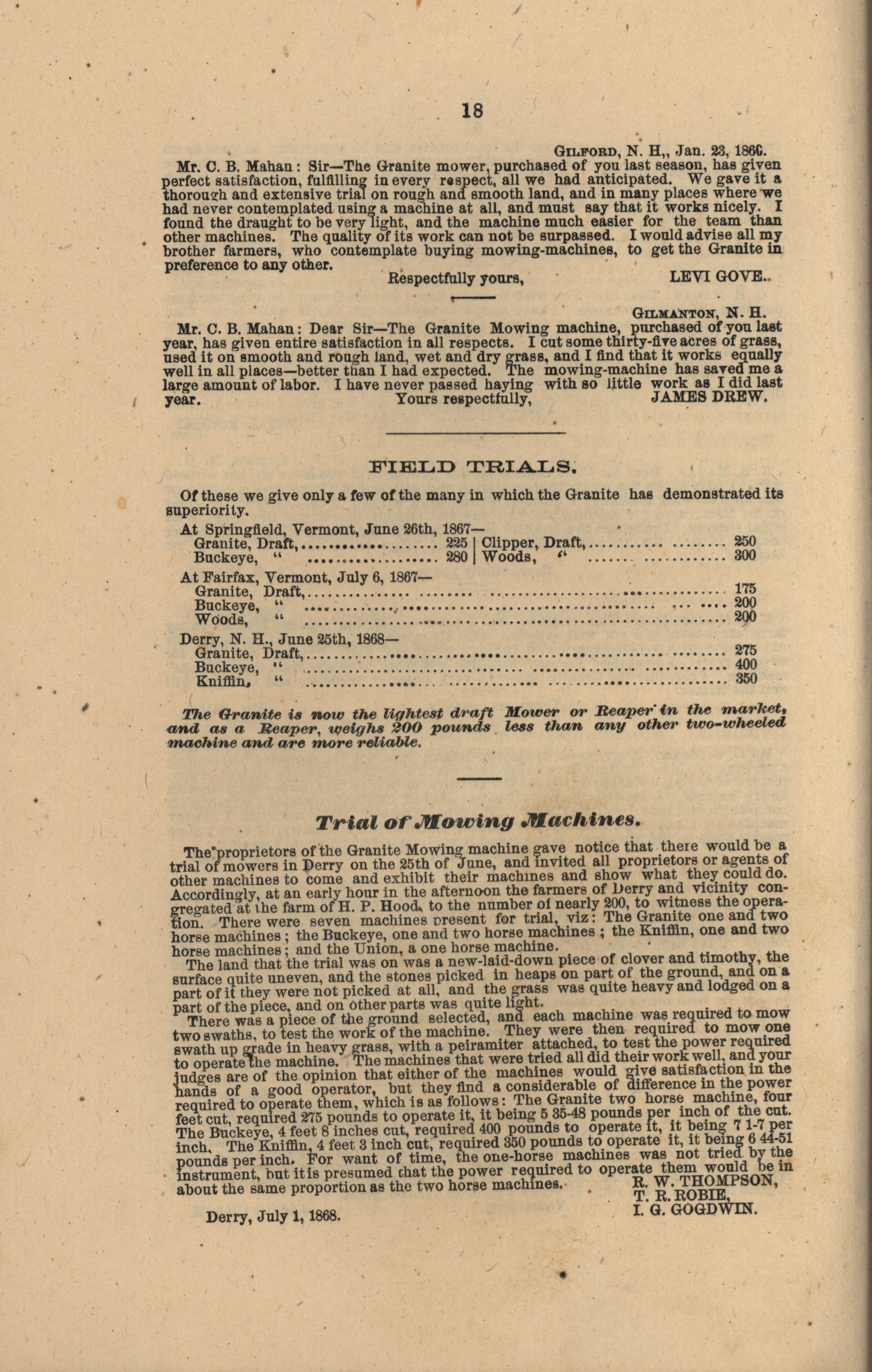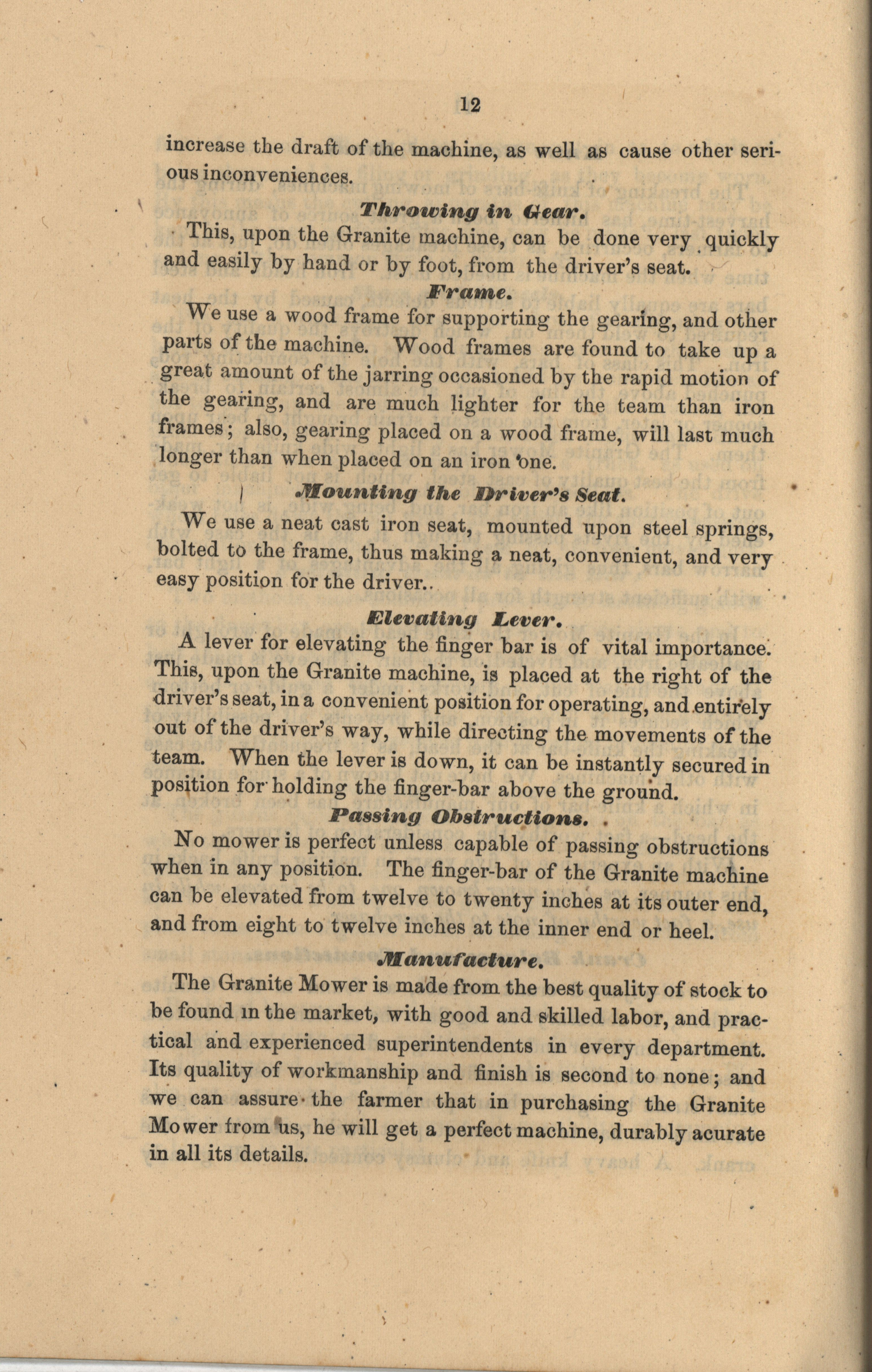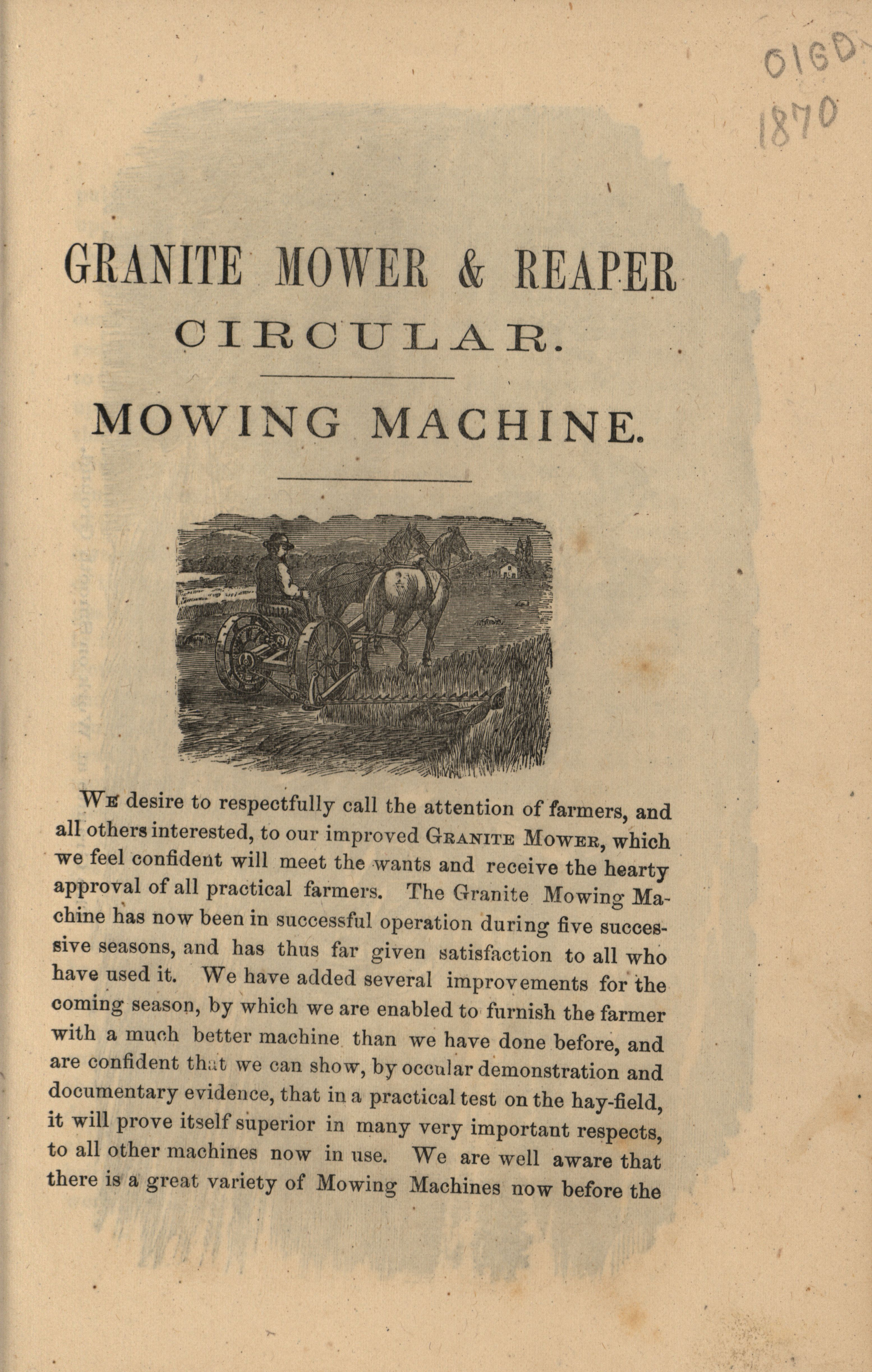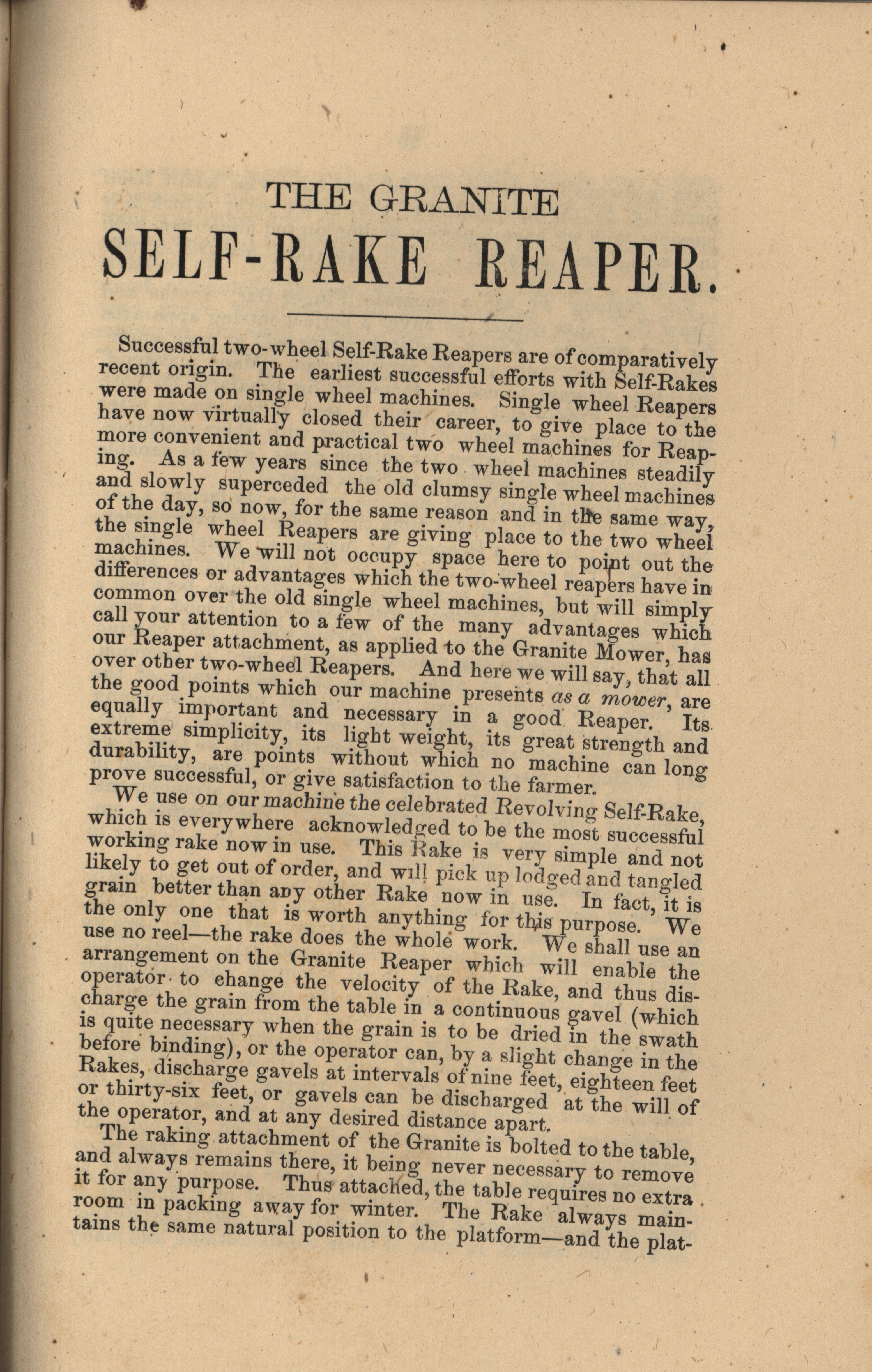 - Illustrated catalog describing the Granite Agricultural Works offered by Mahan and Company.