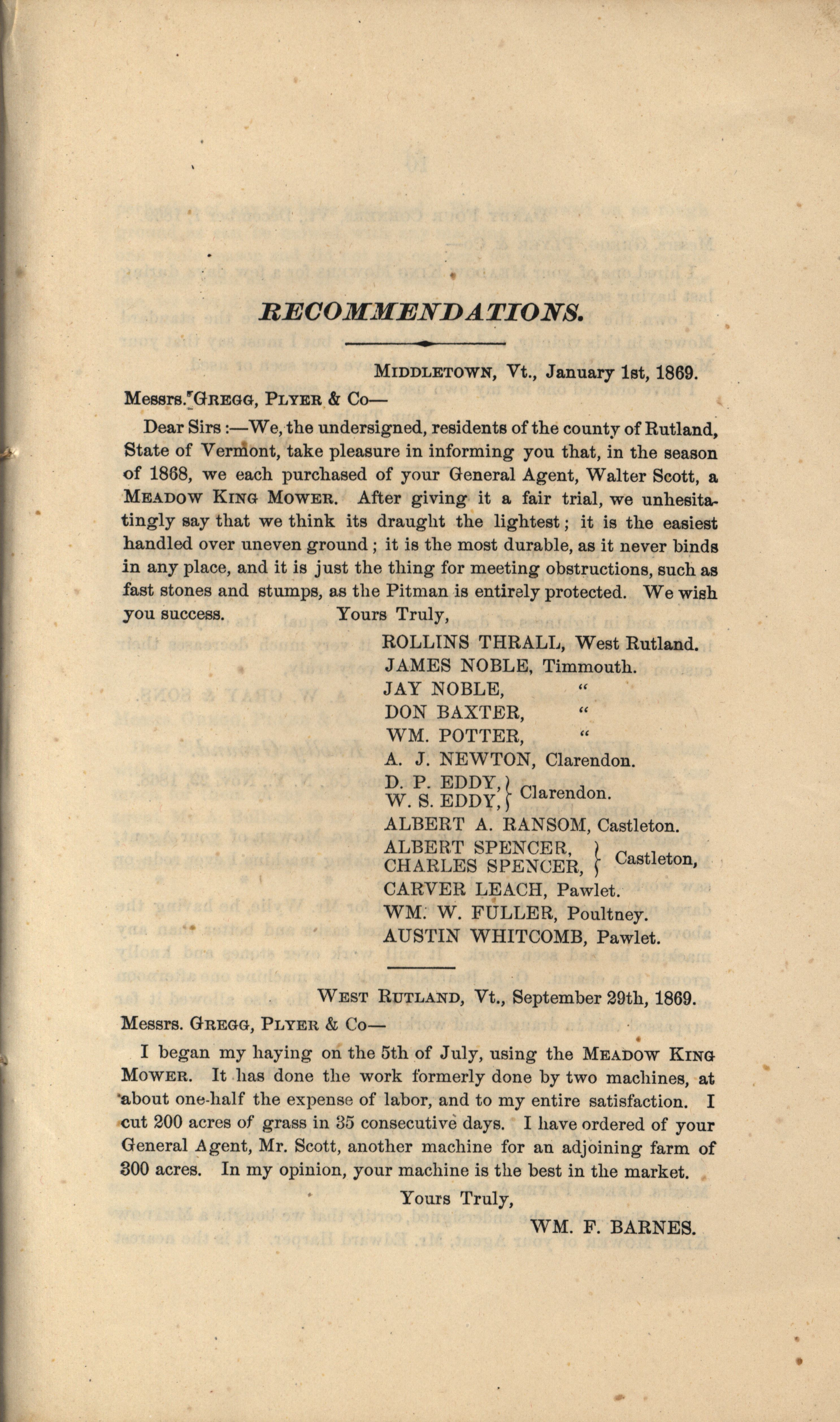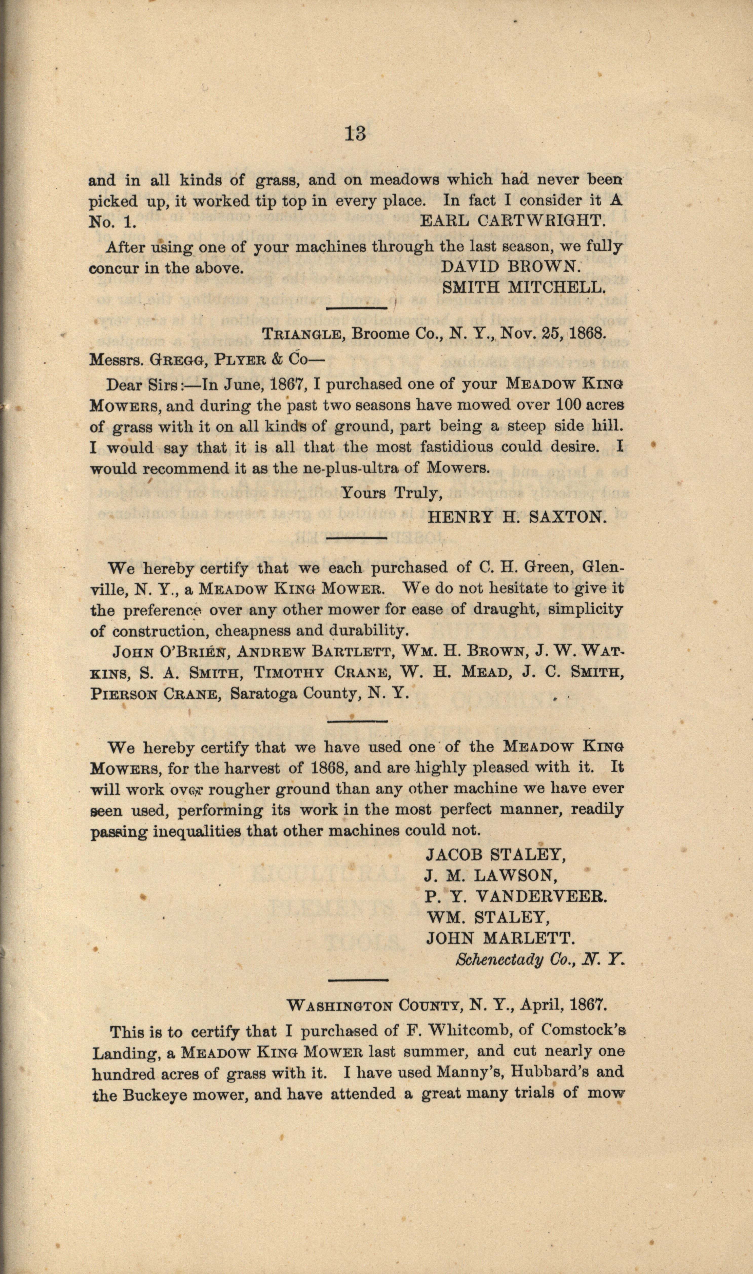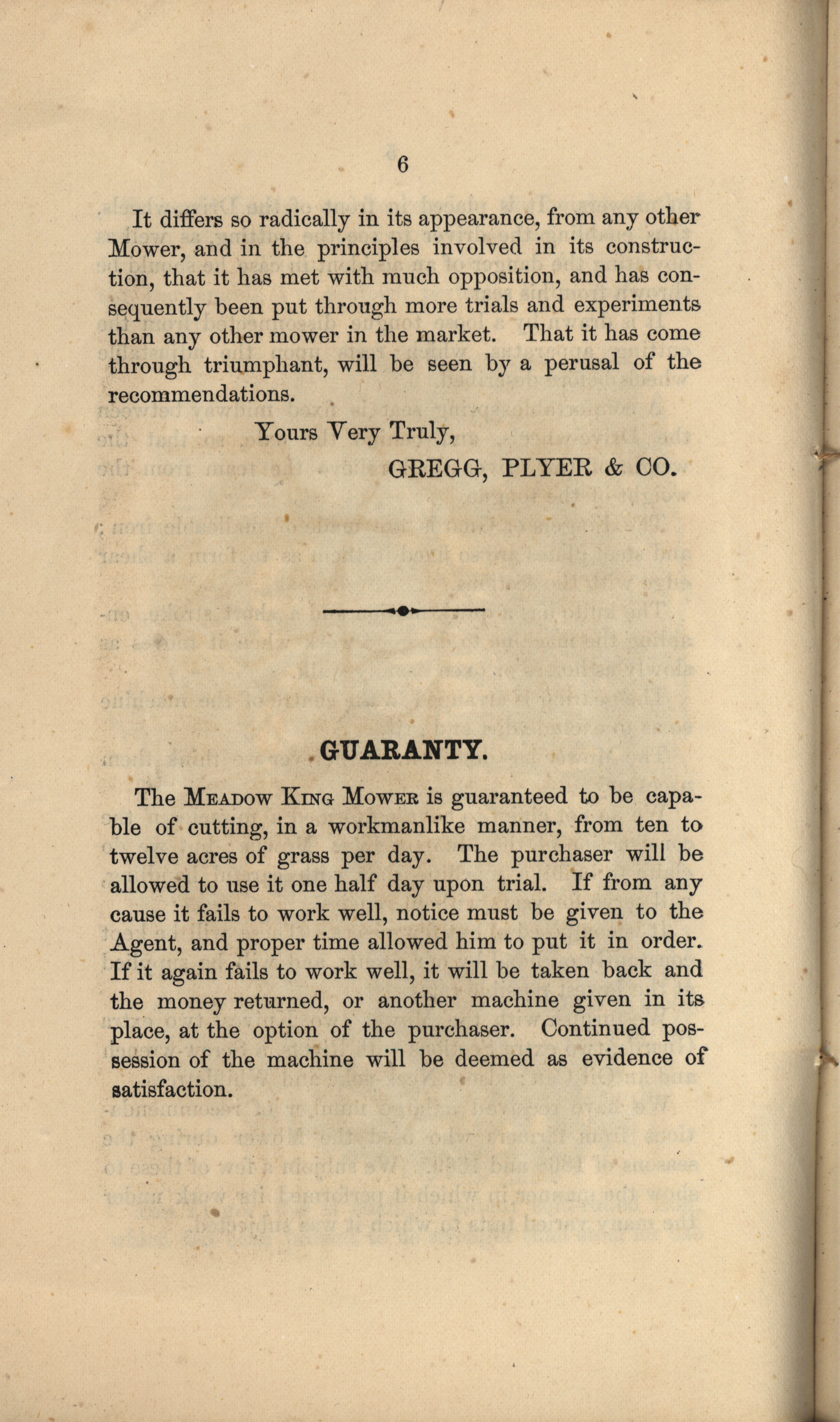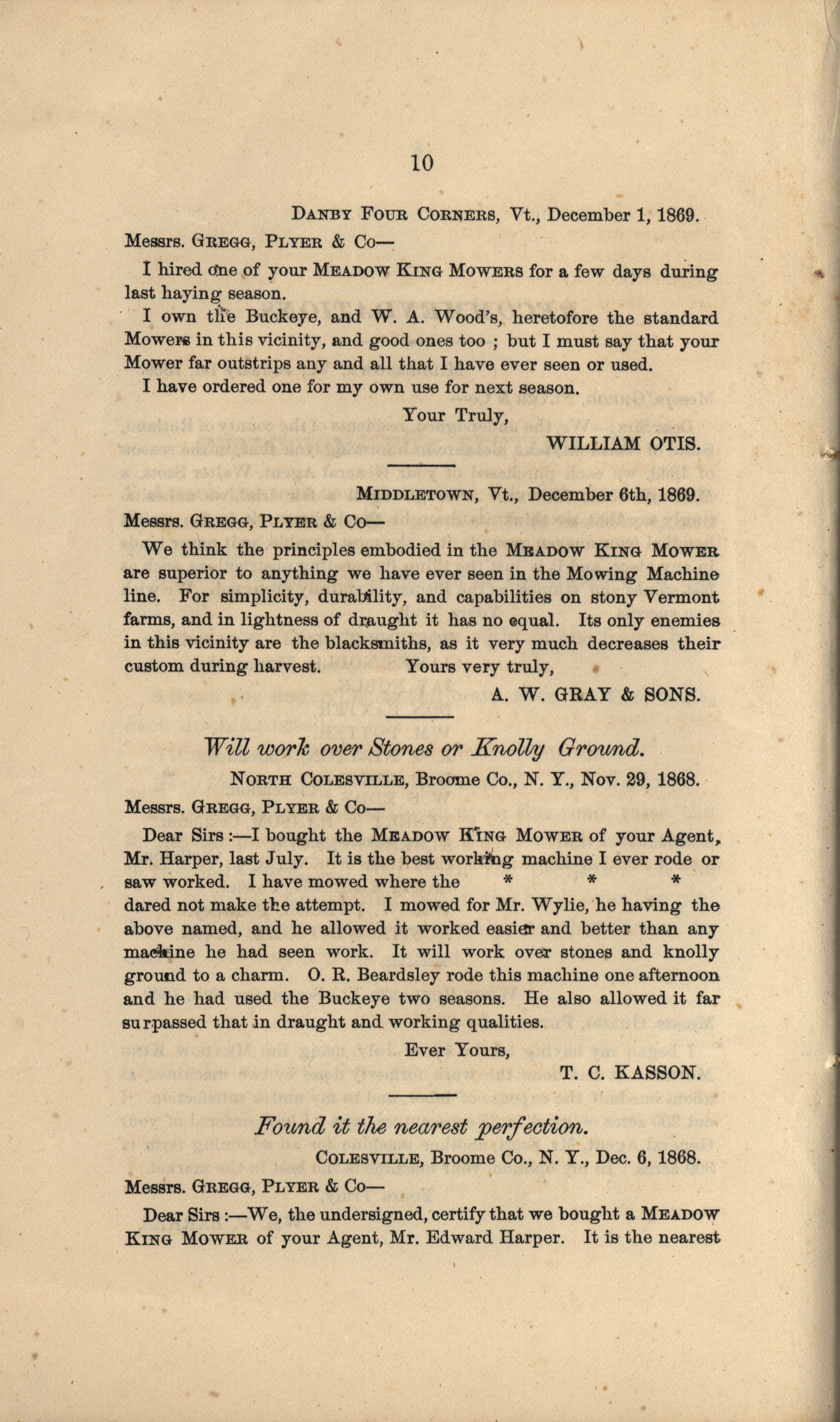 - Gregg, Plyer and Company Meadow King Mower catalog