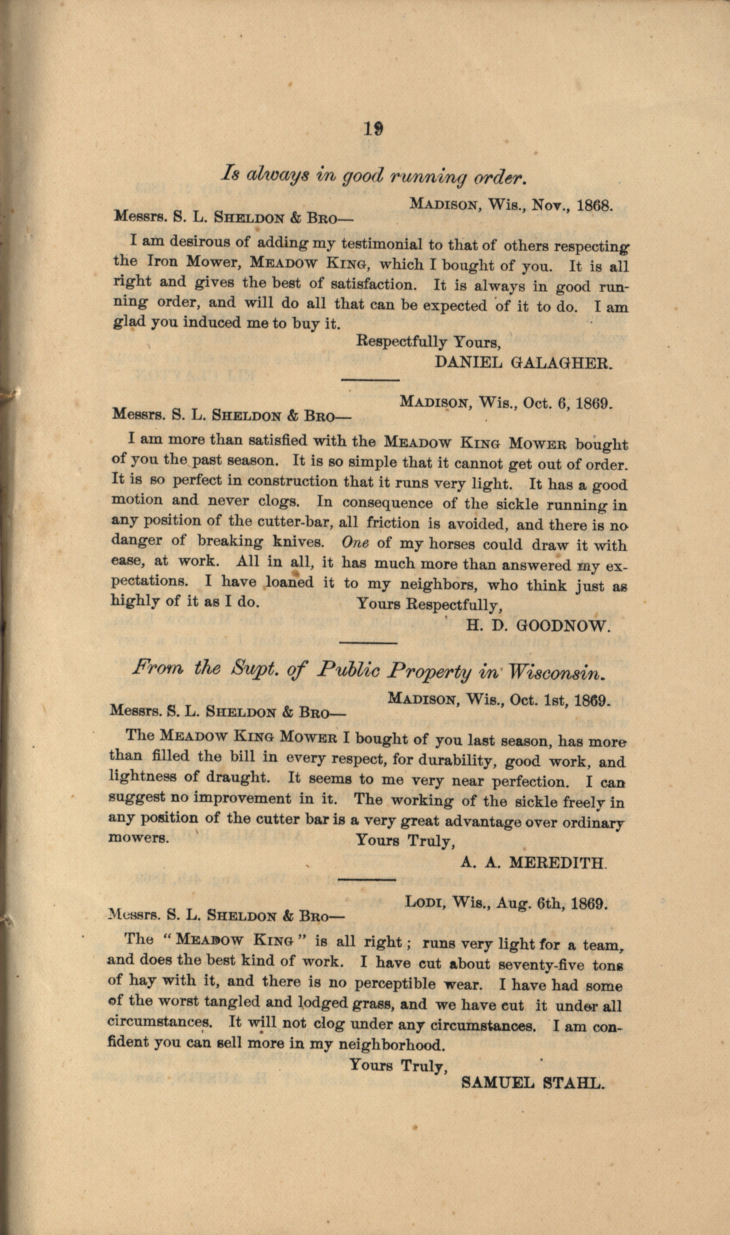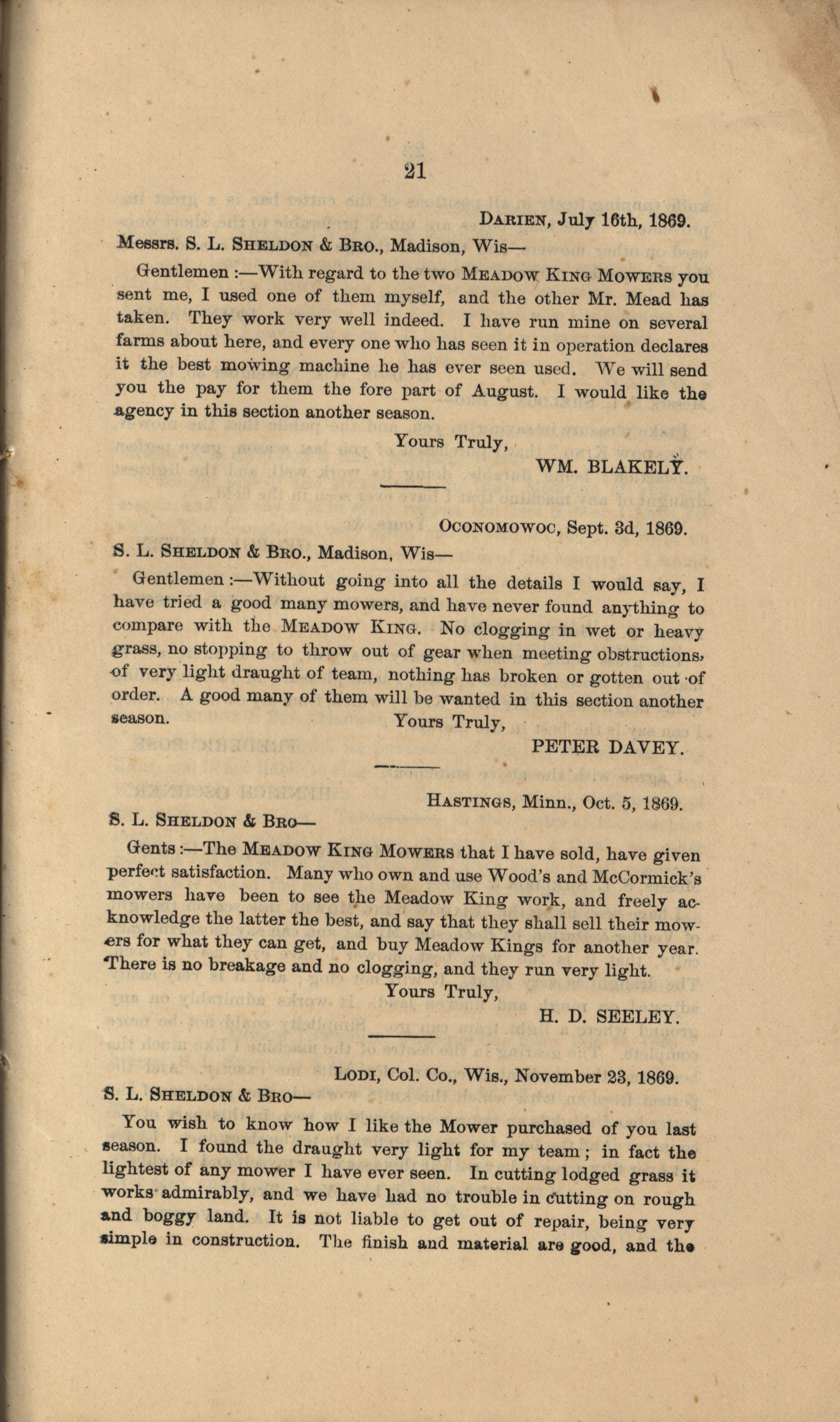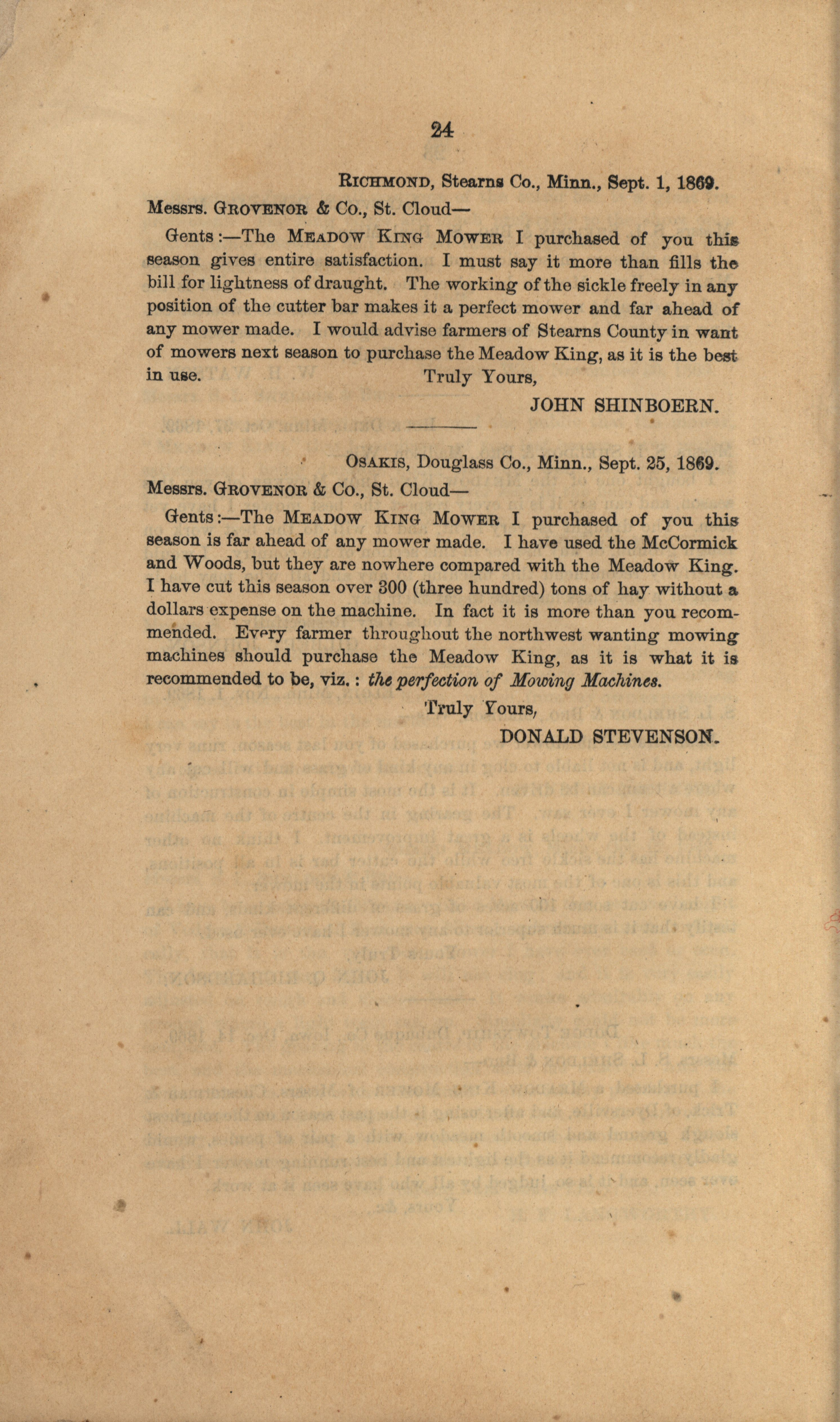 - "Gregg, Plyer and Company Meadow King Mower catalog", Agricultural Machinery Literature Collection, Iowa State University Library Digital Collections