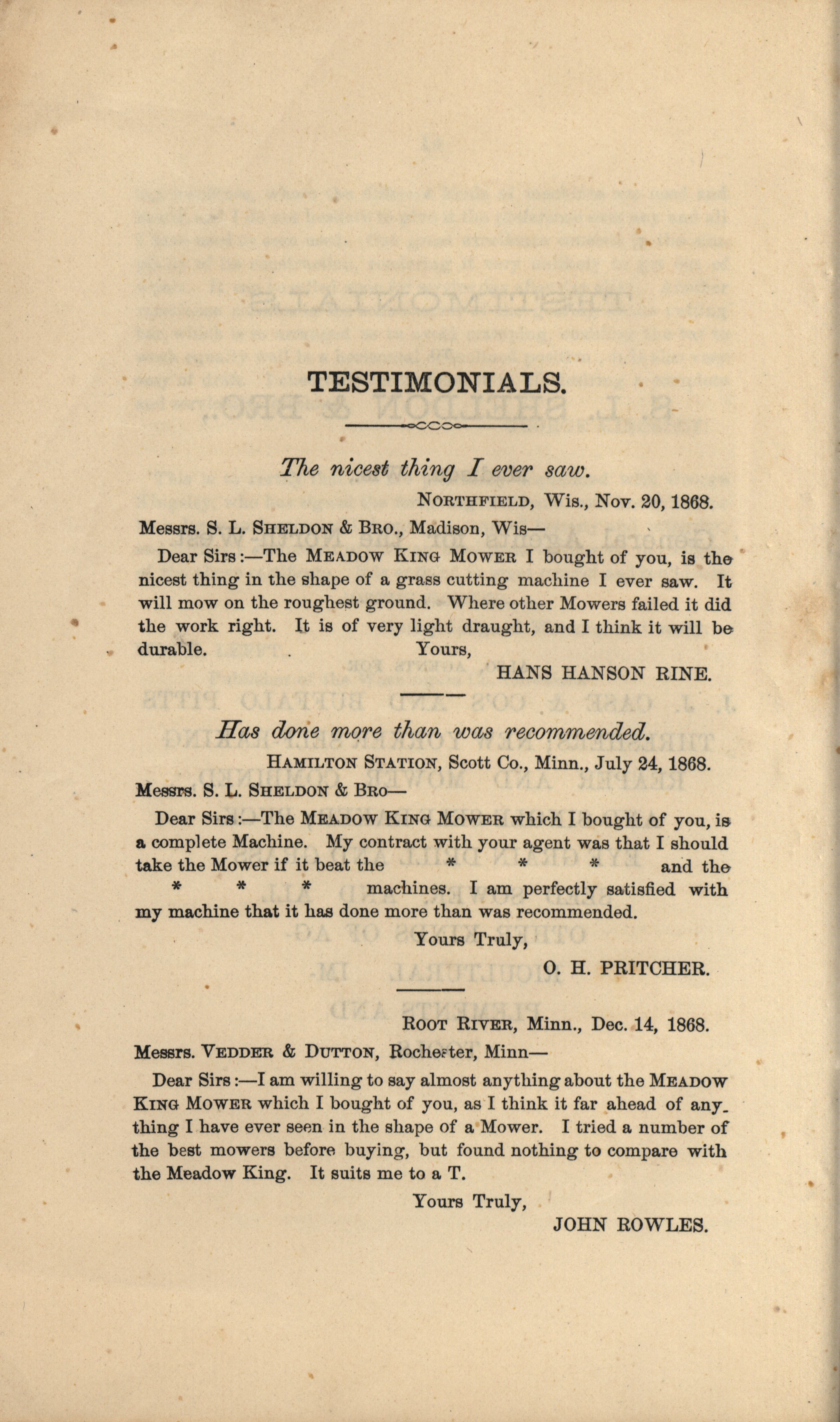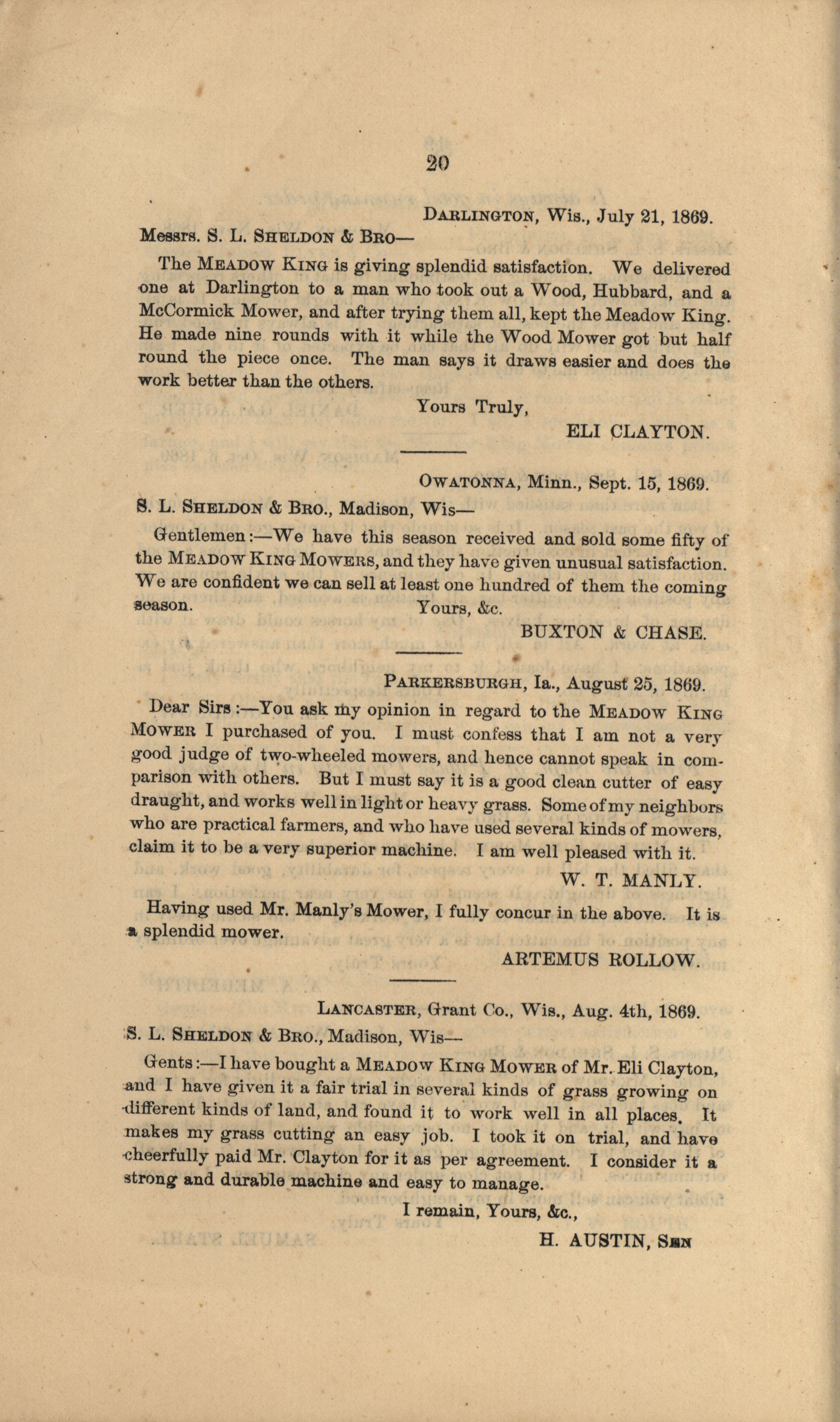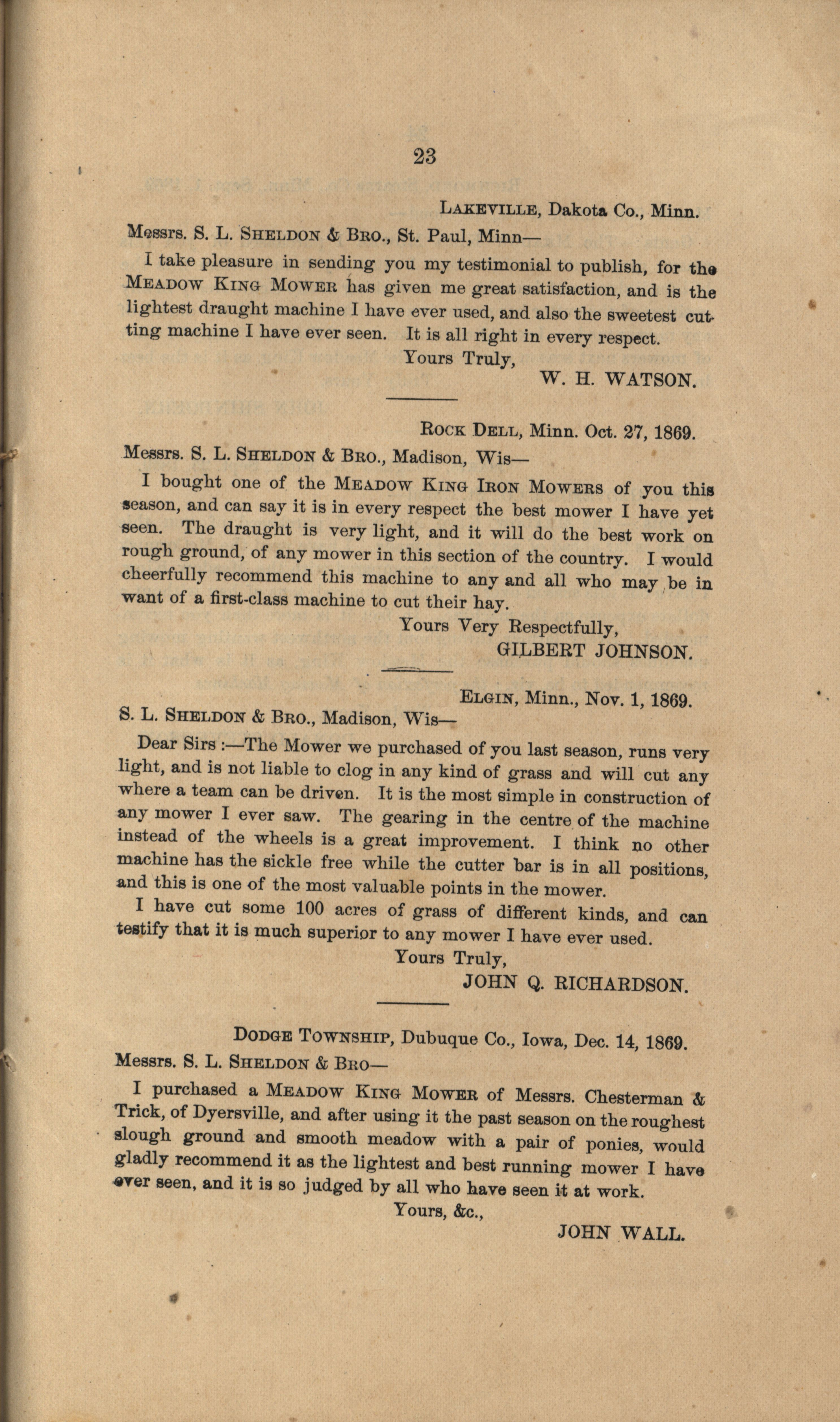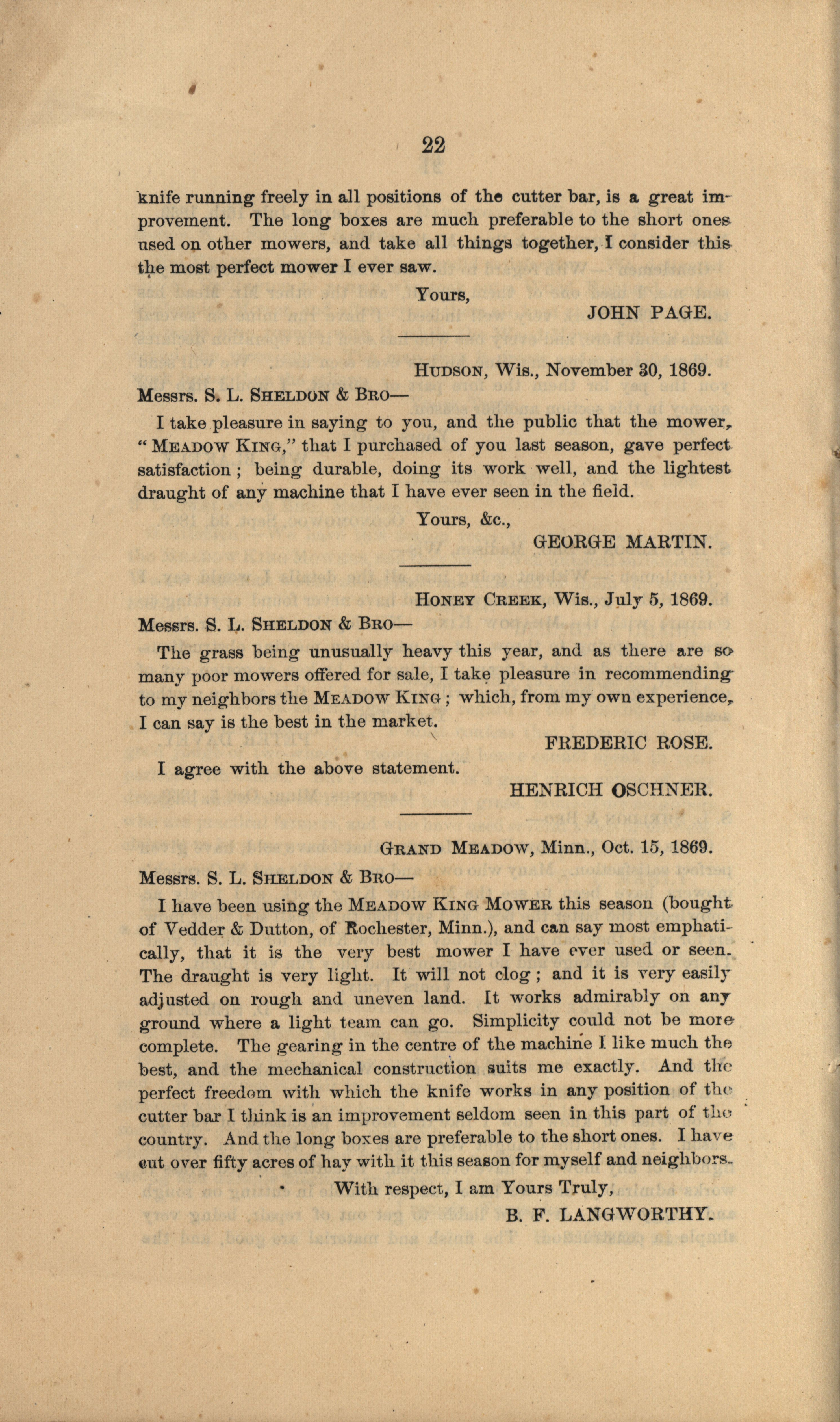 - "Gregg, Plyer and Company Meadow King Mower catalog", Agricultural Machinery Literature Collection, Iowa State University Library Digital Collections