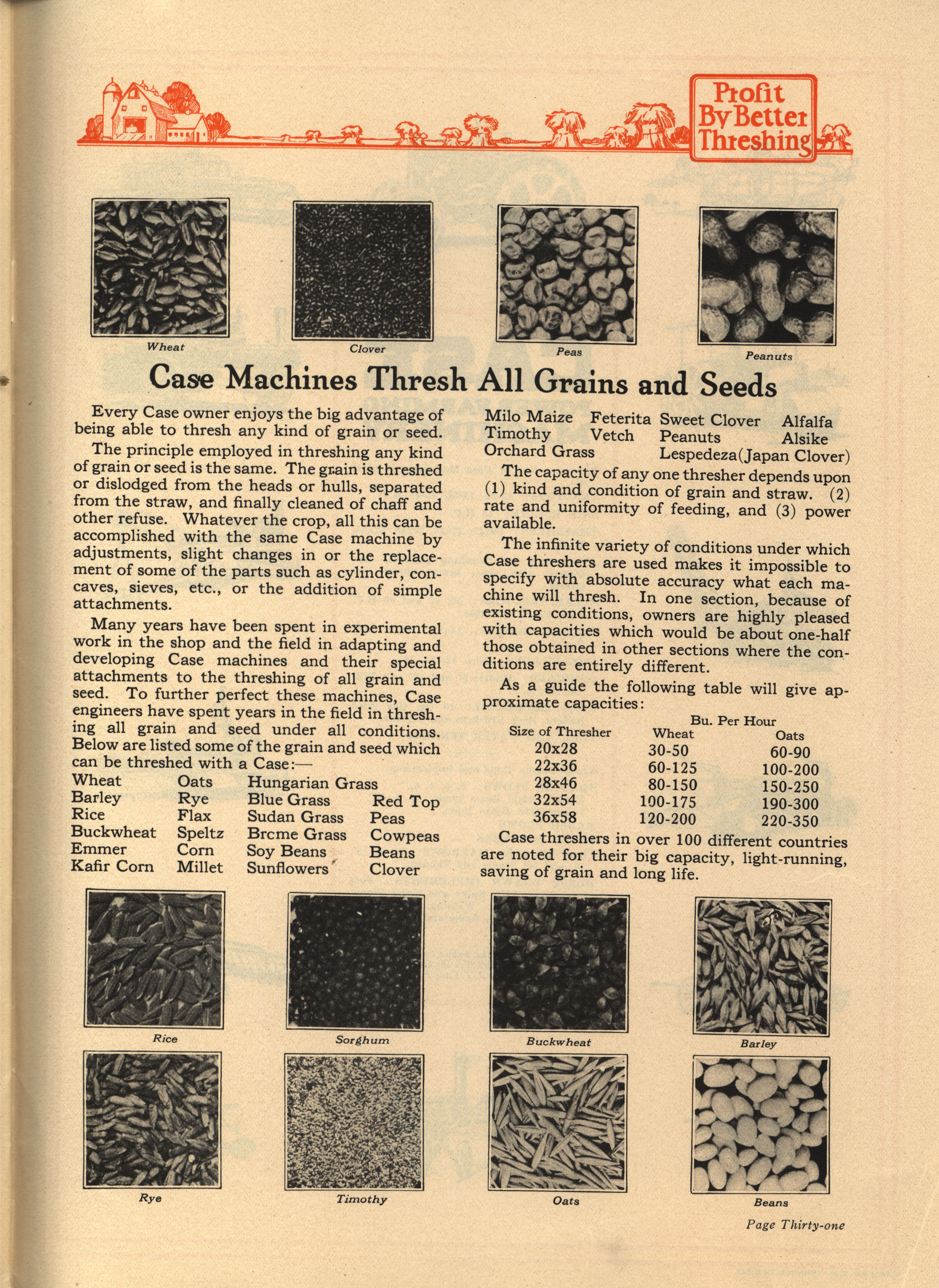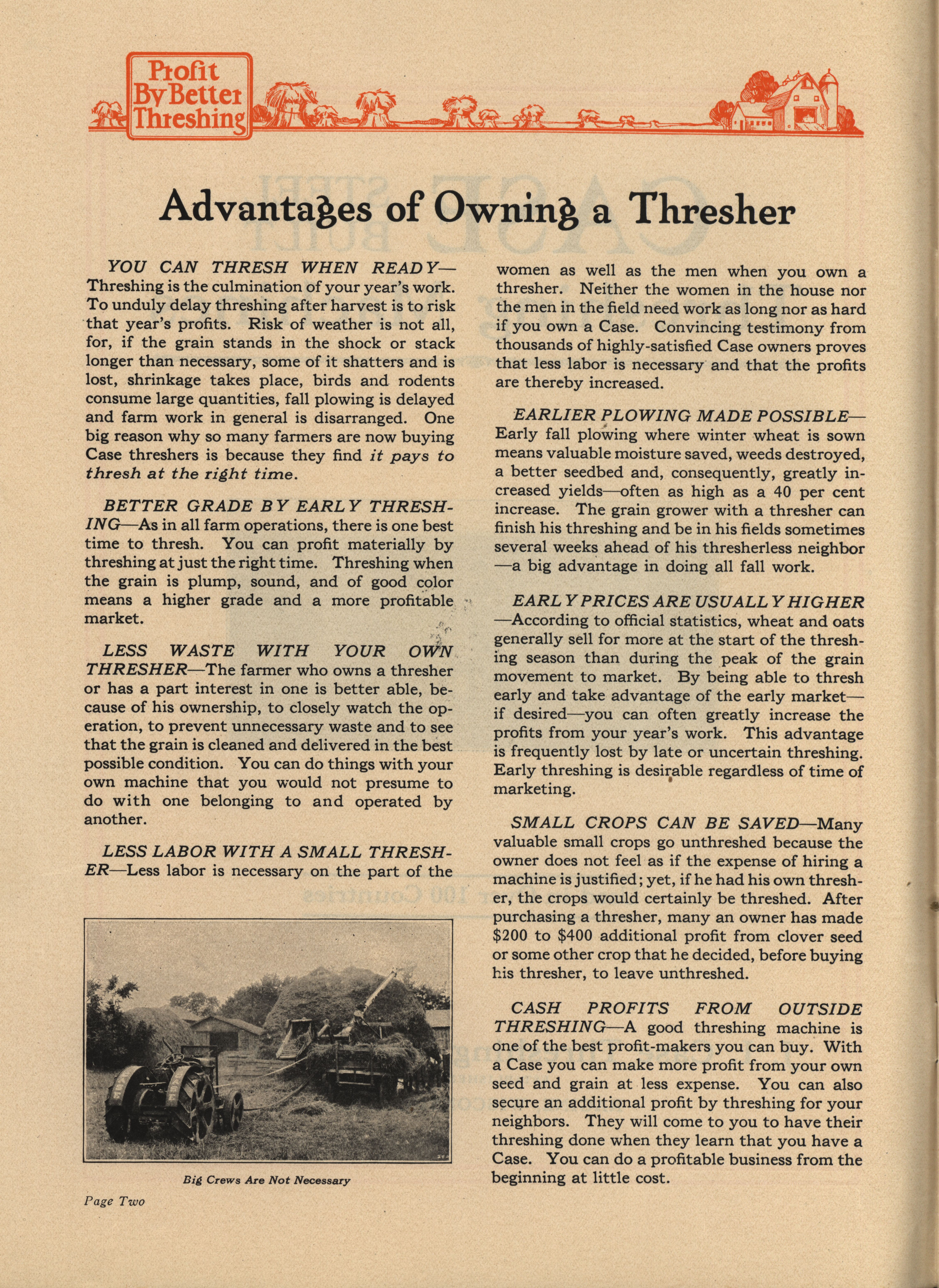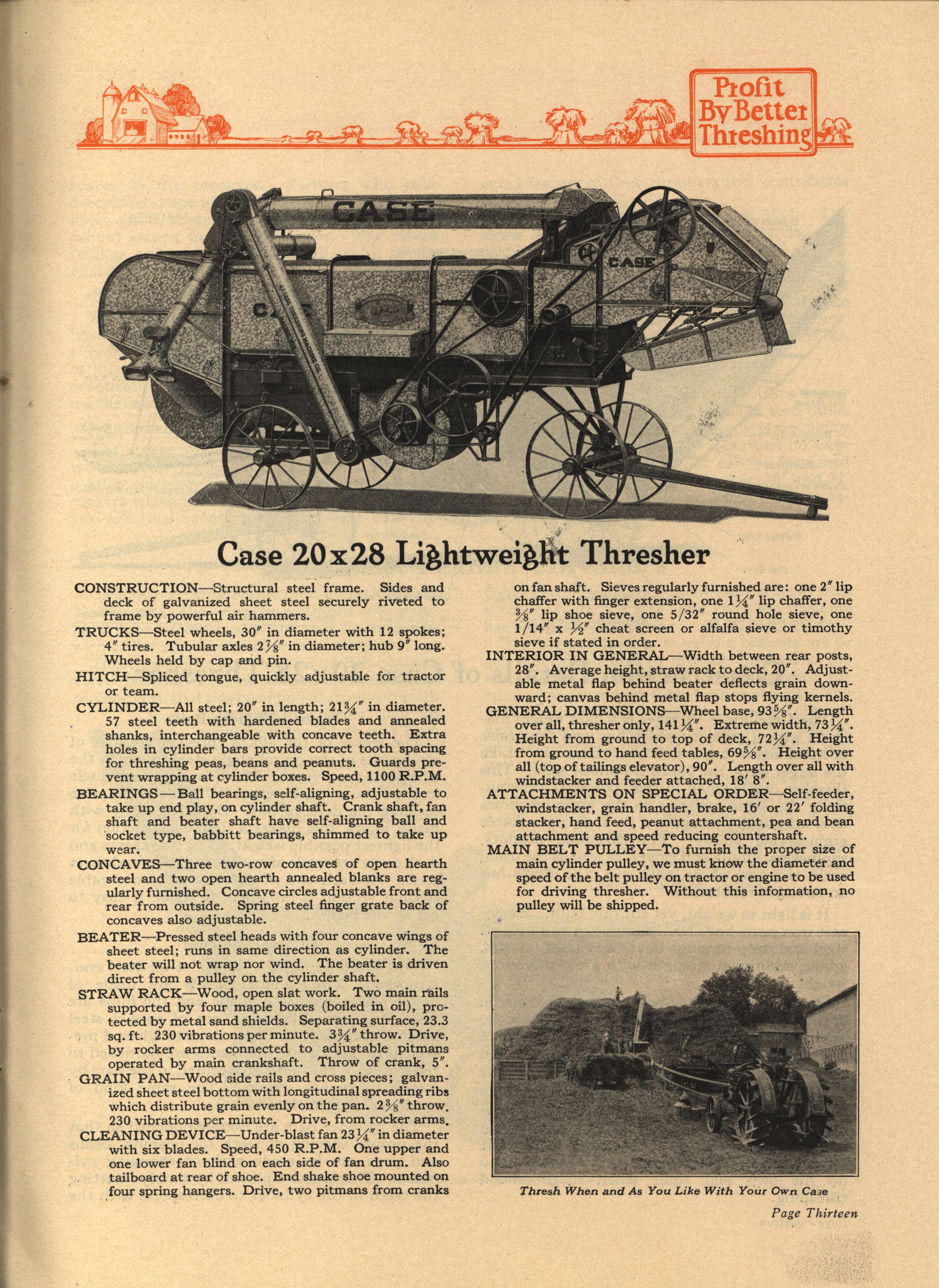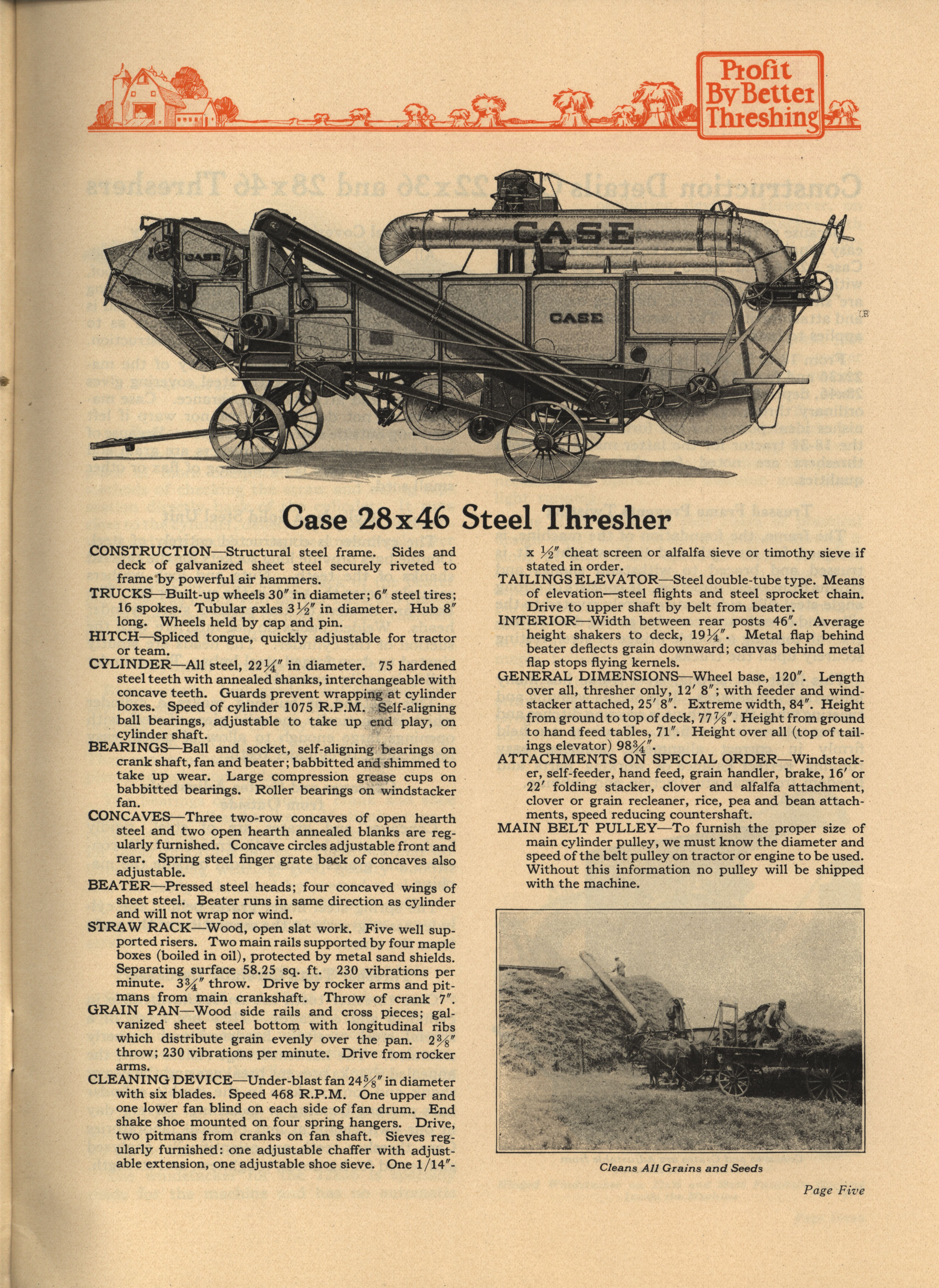 - Illustrated catalog for the Case Steel Built Threshing Machine product line offered by J. I. Case Threshing Machine Company.