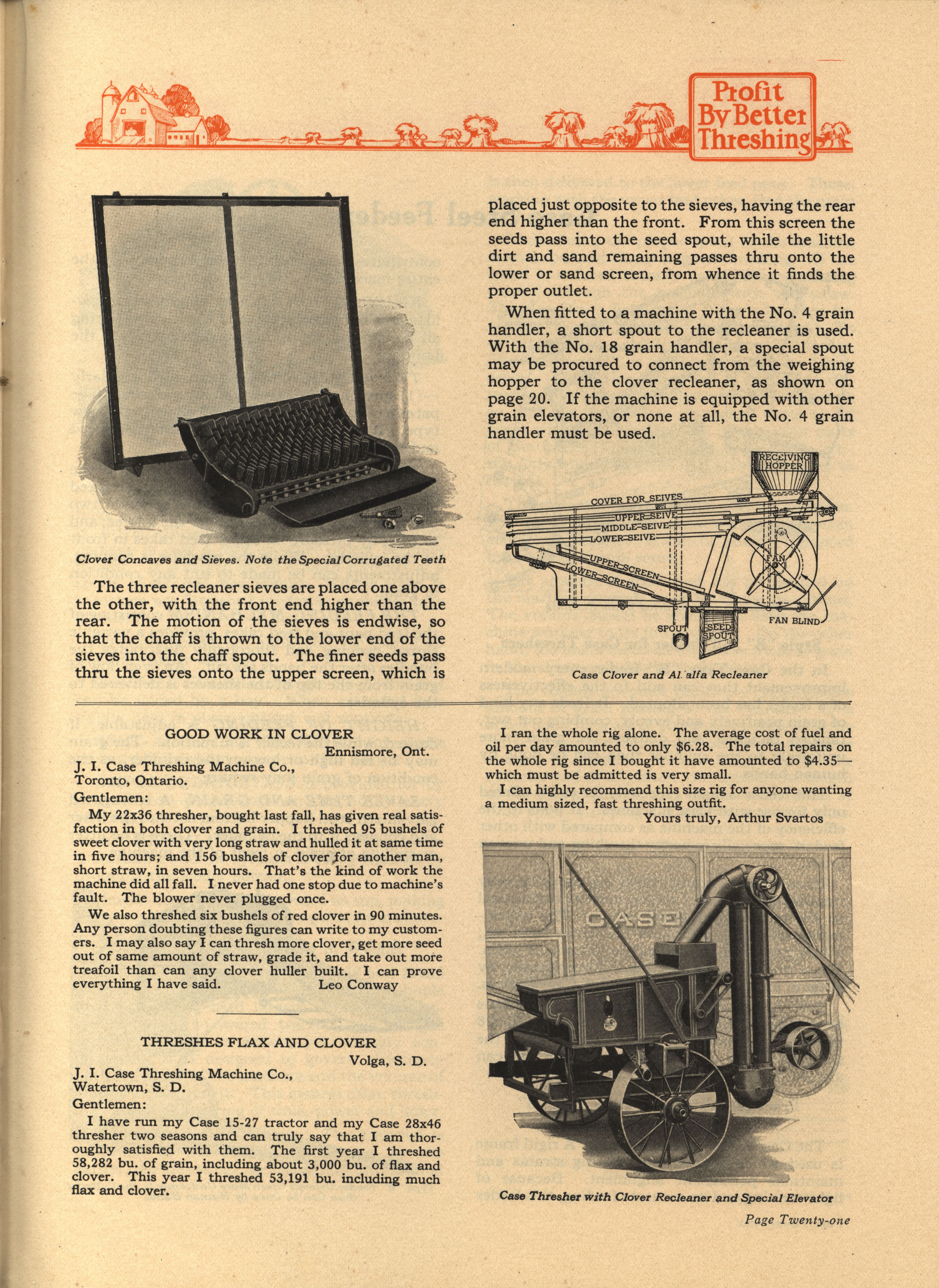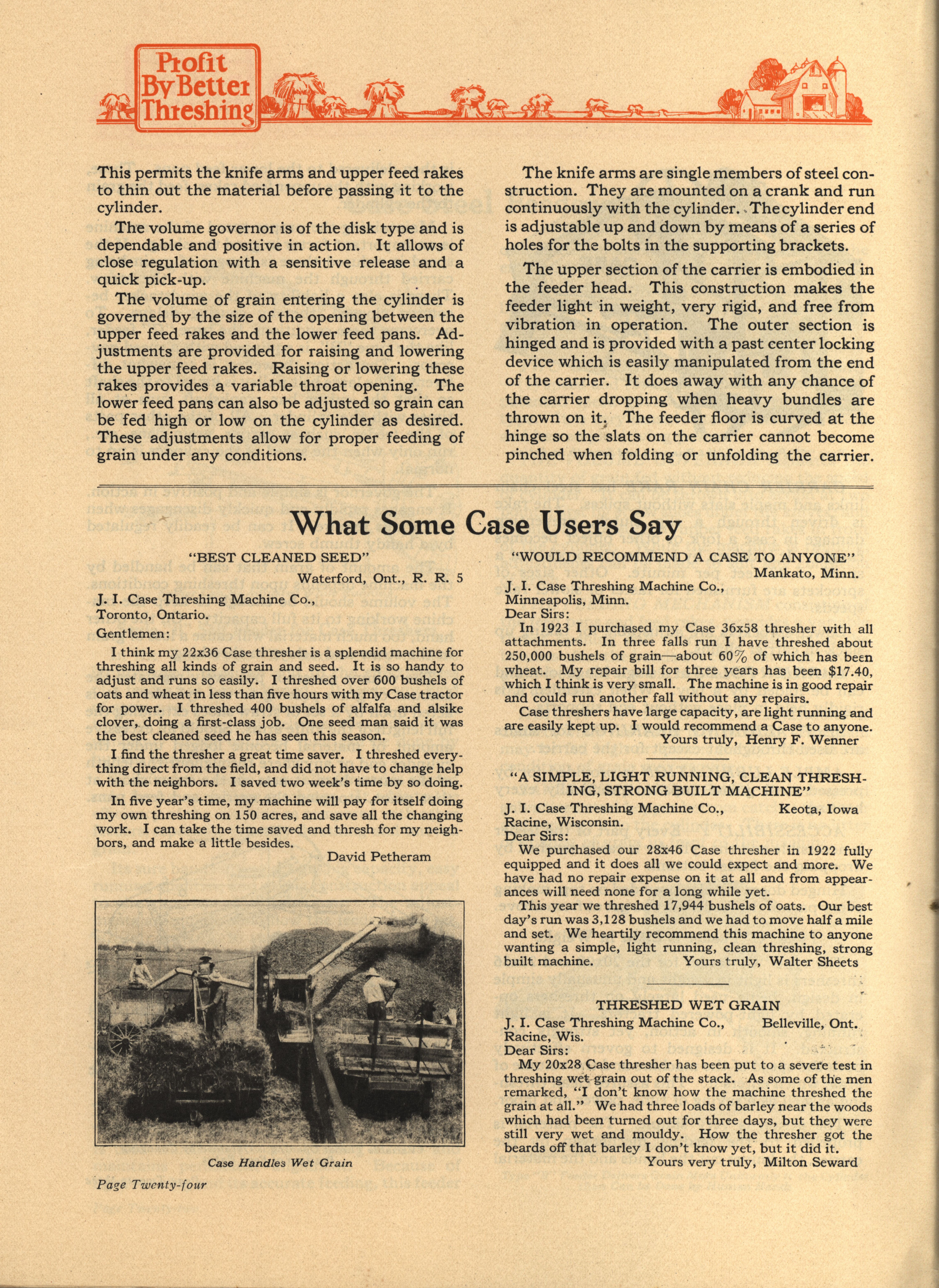 - "J. I. Case Threshing Machine Company Steel Built Threshing Machines catalog", Agricultural Machinery Literature Collection, Iowa State University Library Digital Collections