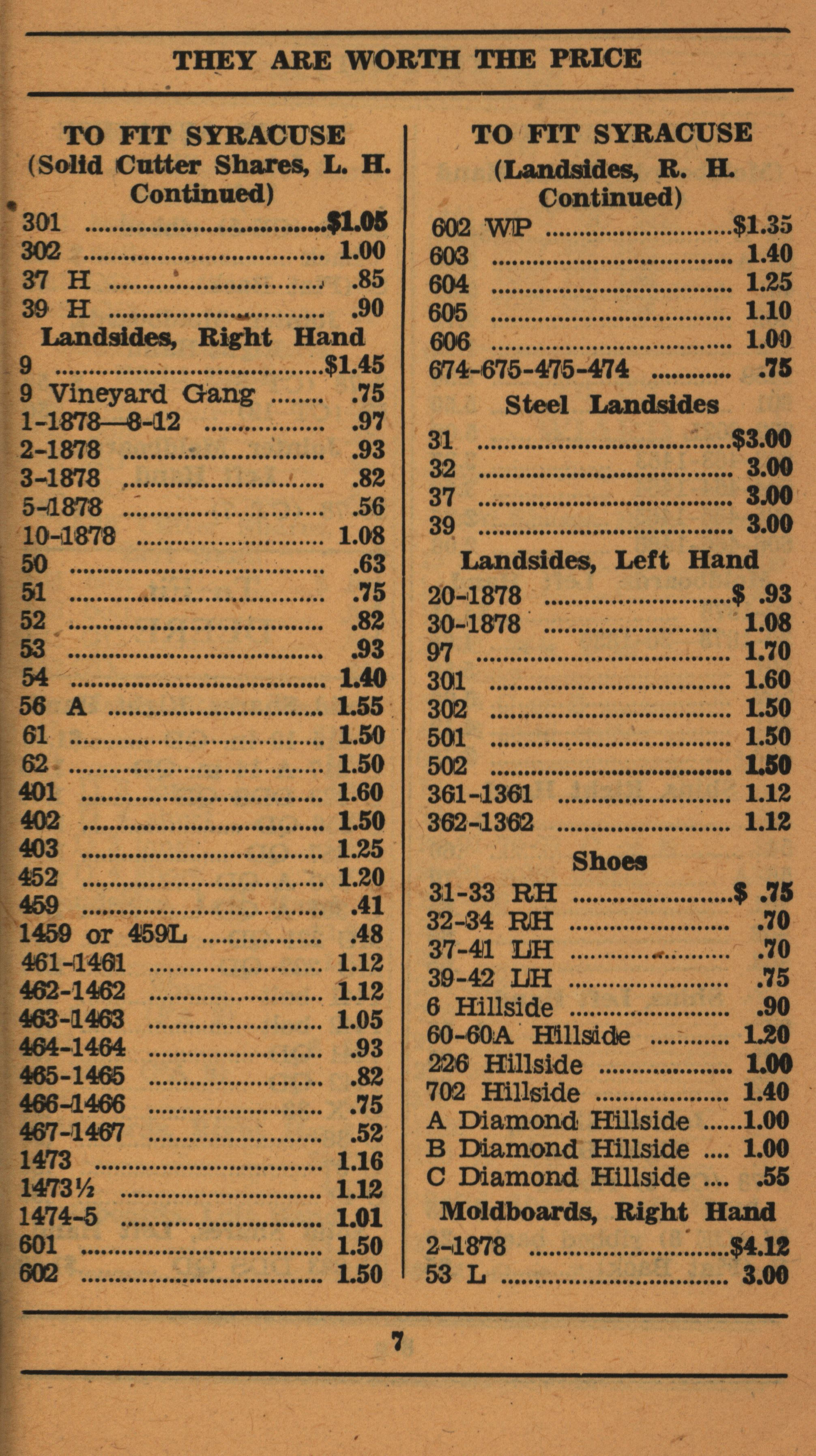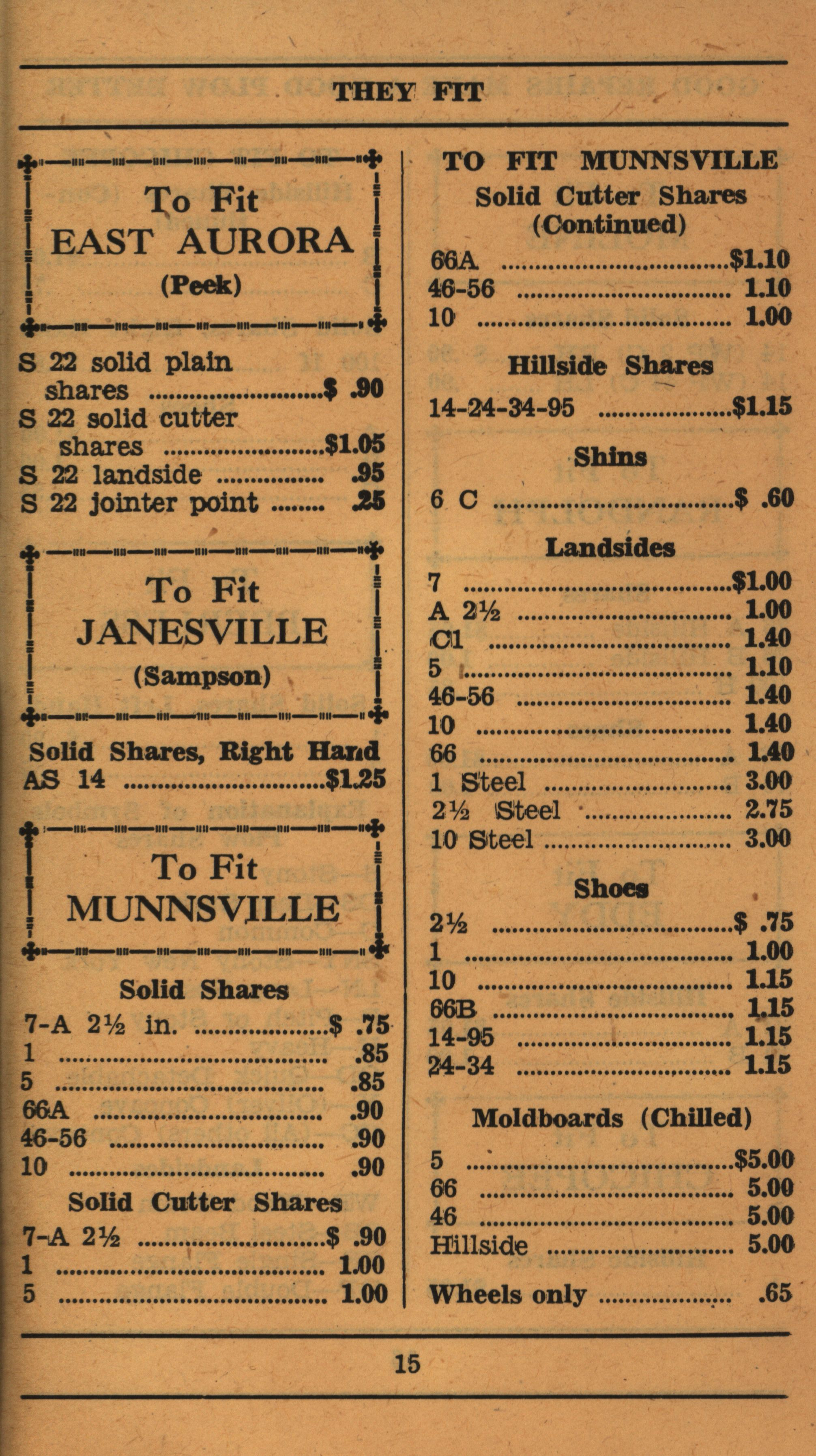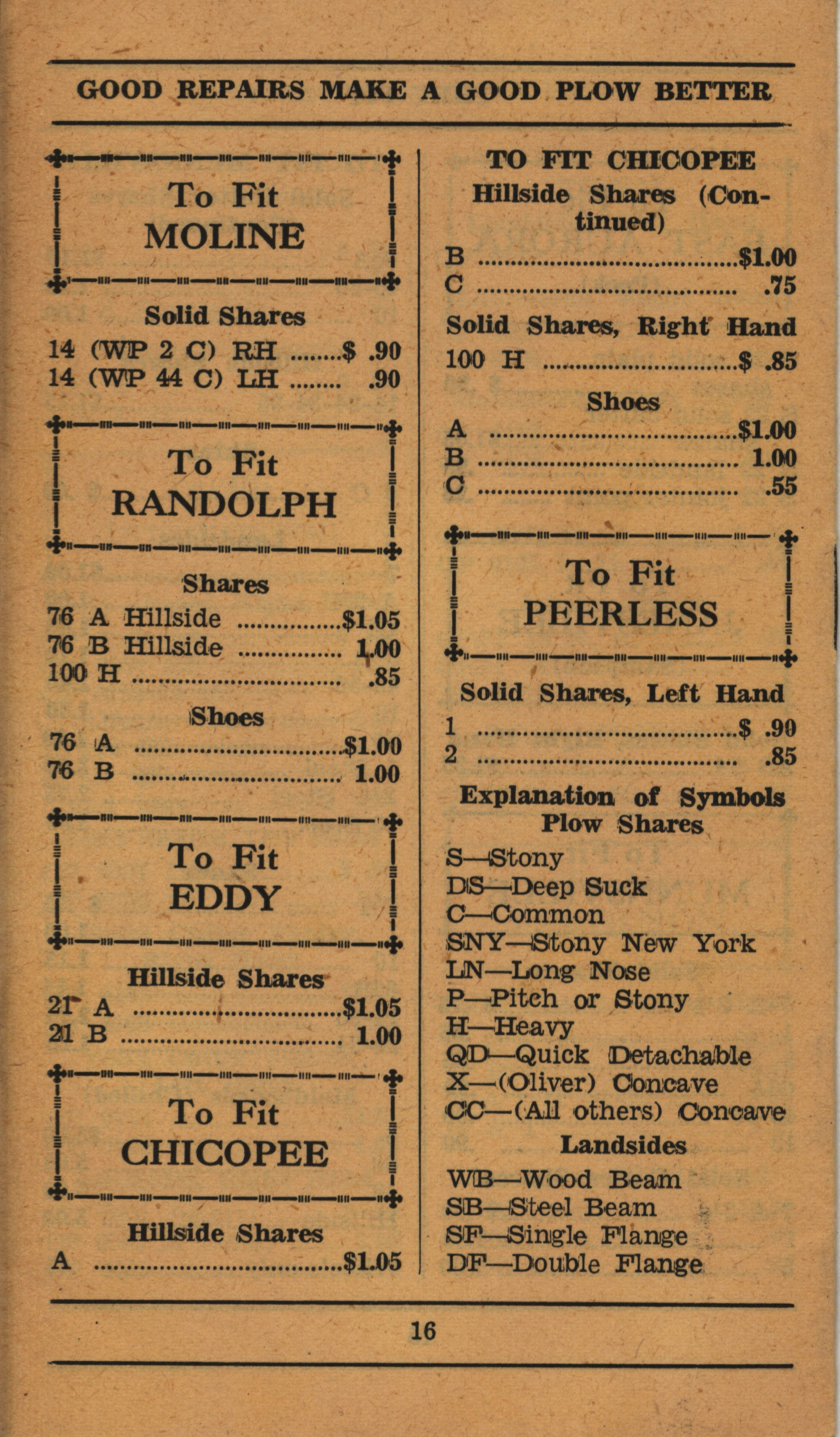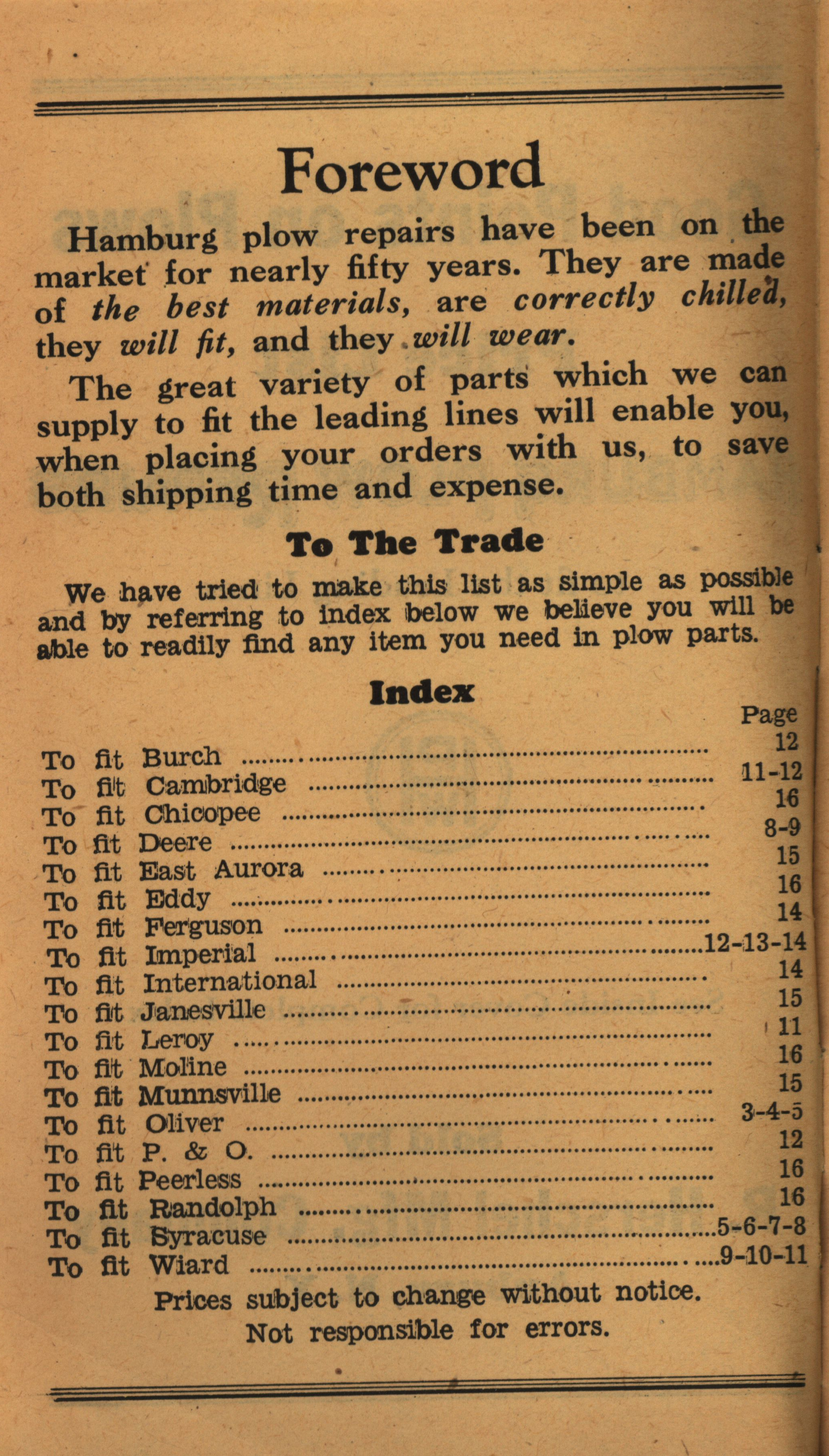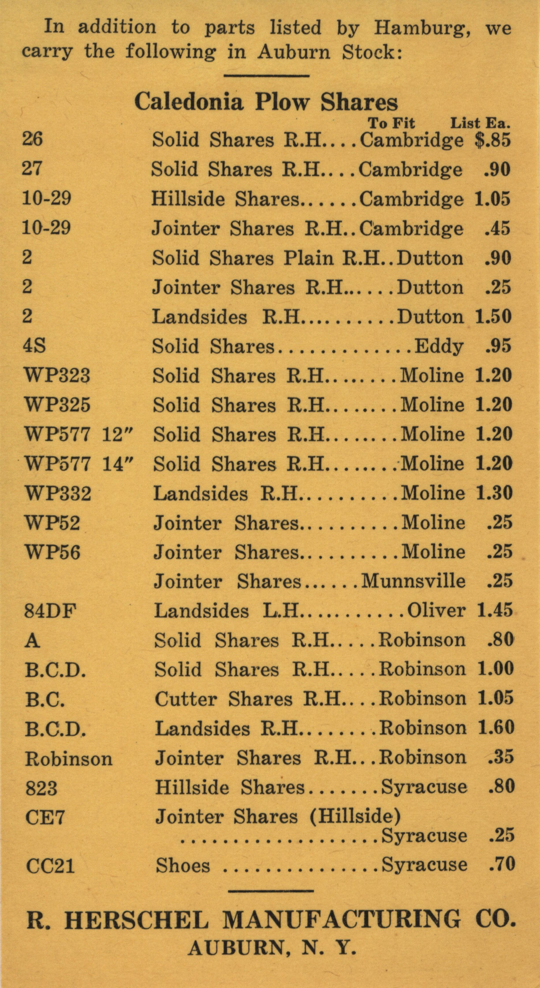 - "Hamburg Plow Works repairs price list", Agricultural Machinery Literature Collection, Iowa State University Library Digital Collections