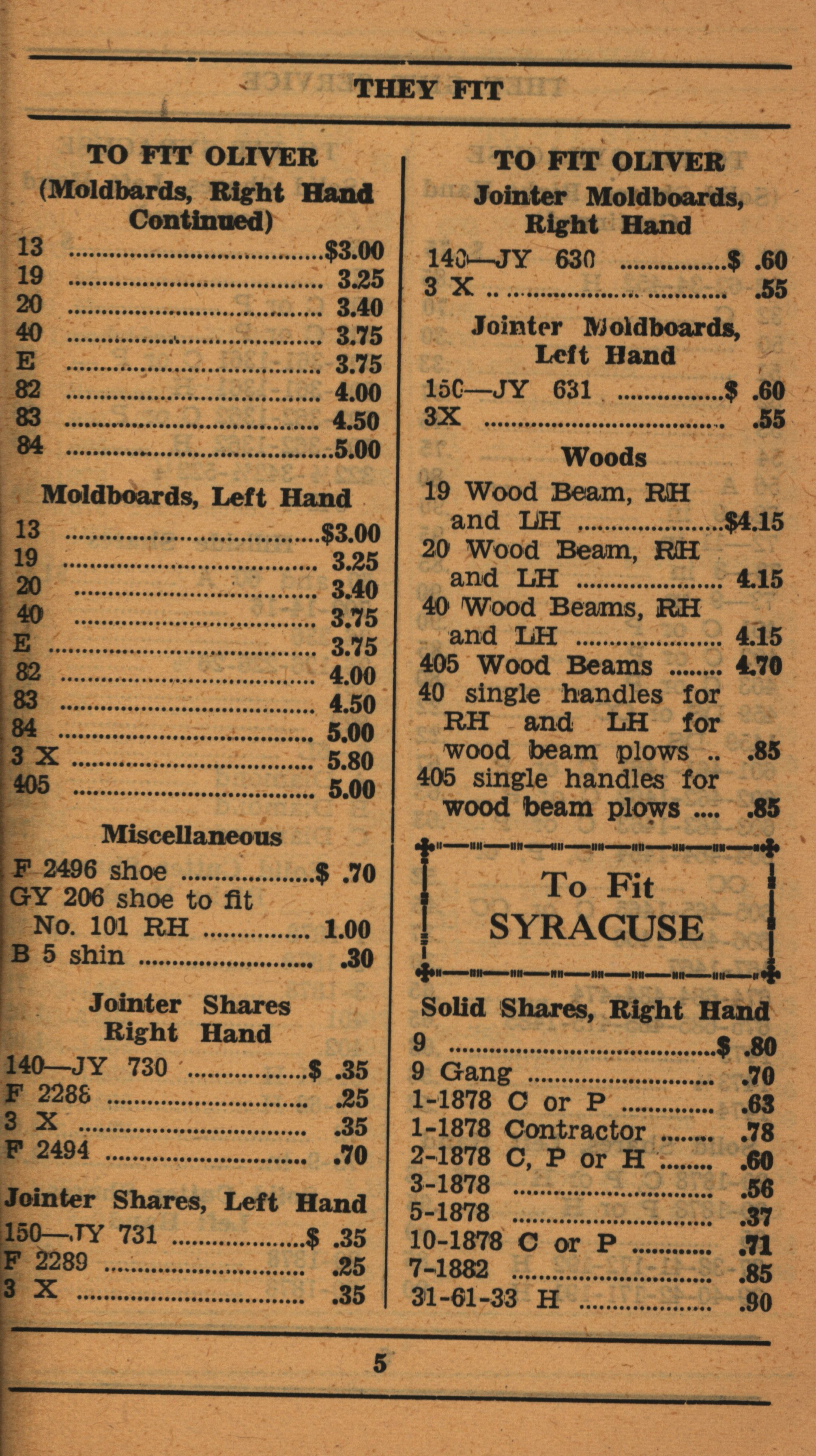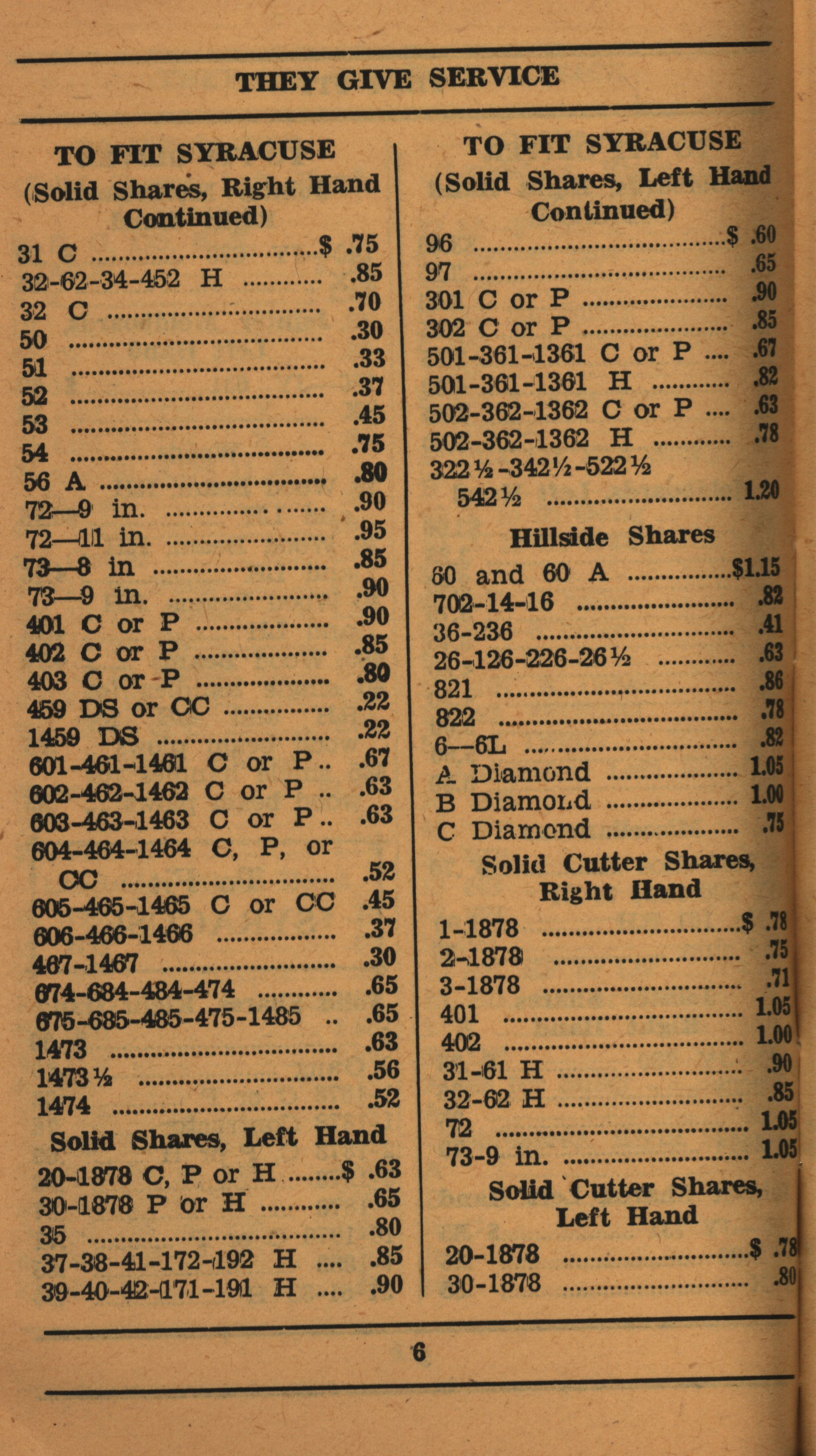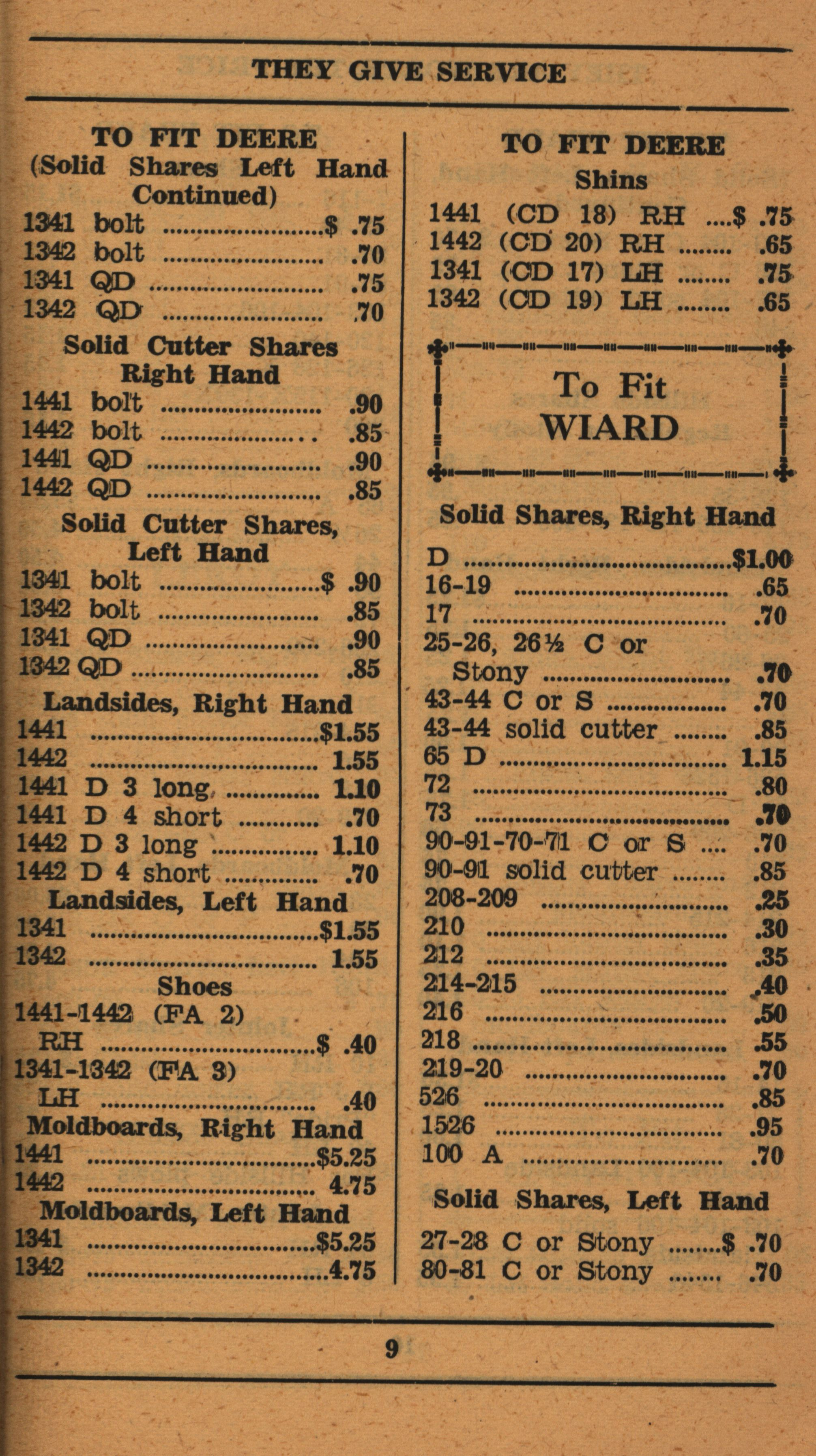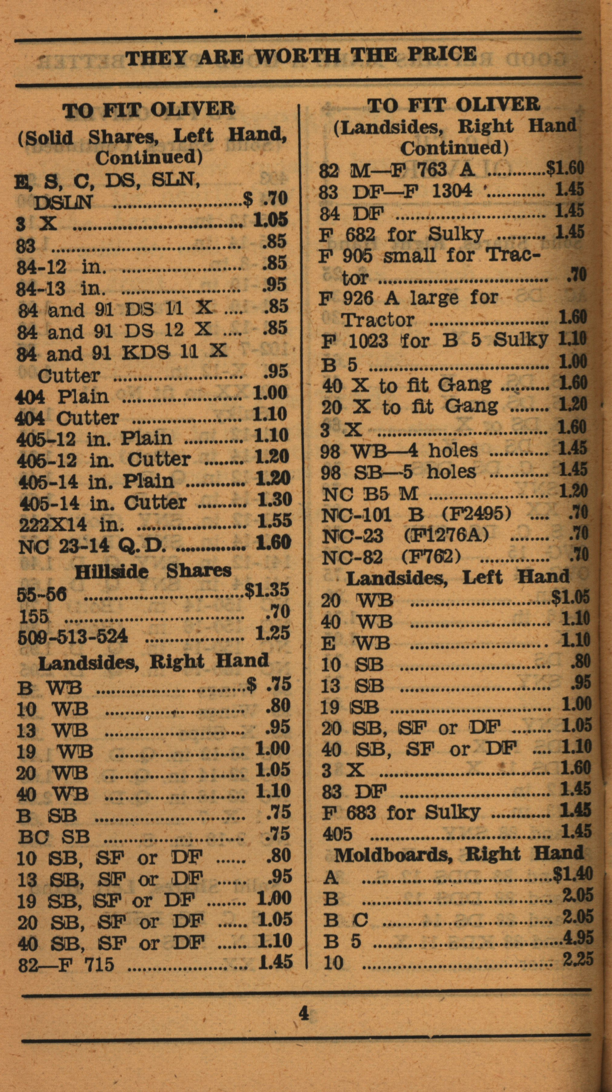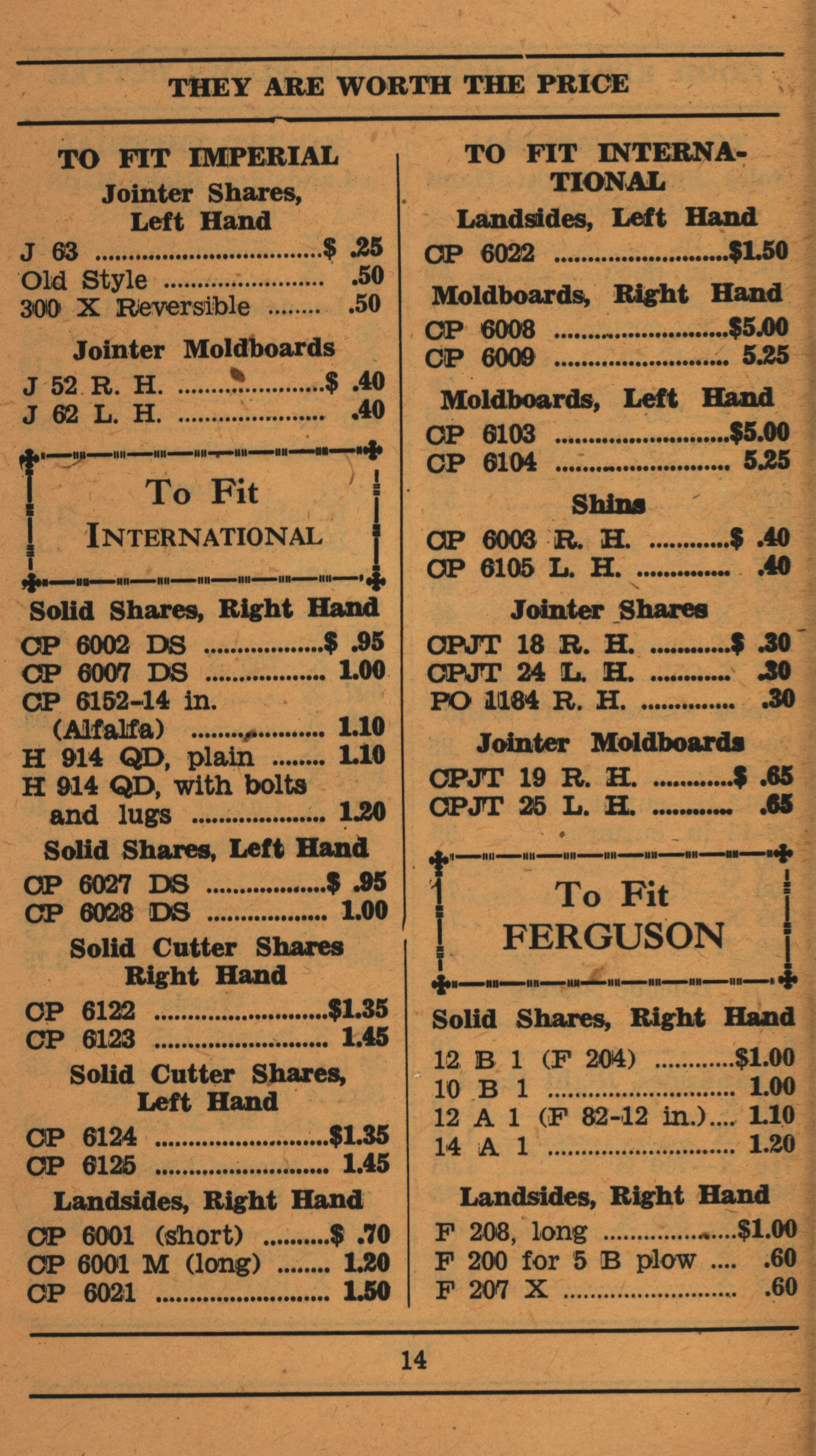 - Price list for repairs and parts for agricultural implements offered by Hamburg Plow Works.
