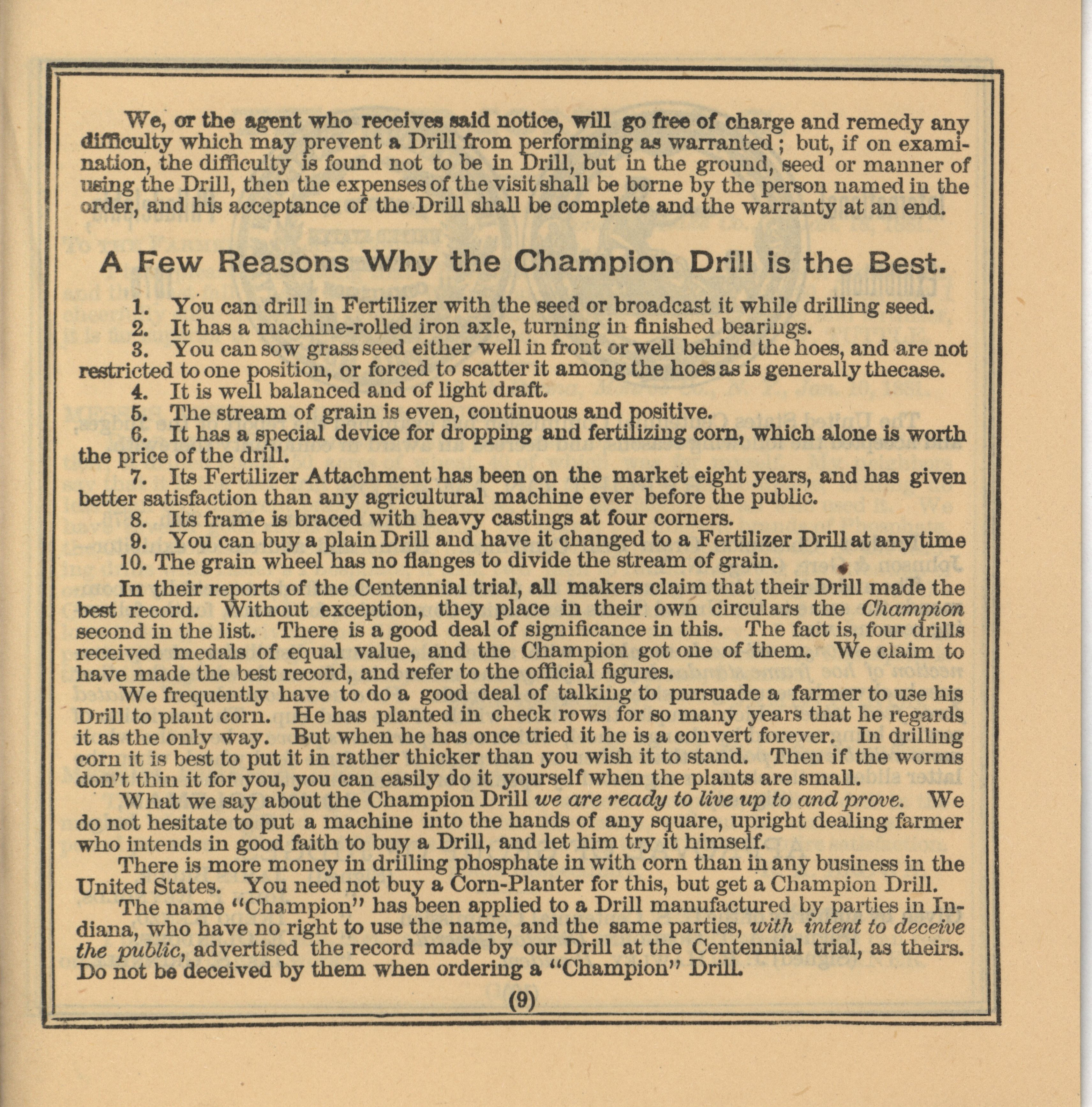 - Johnson, Gere and Truman Champion Grain Drill catalog
