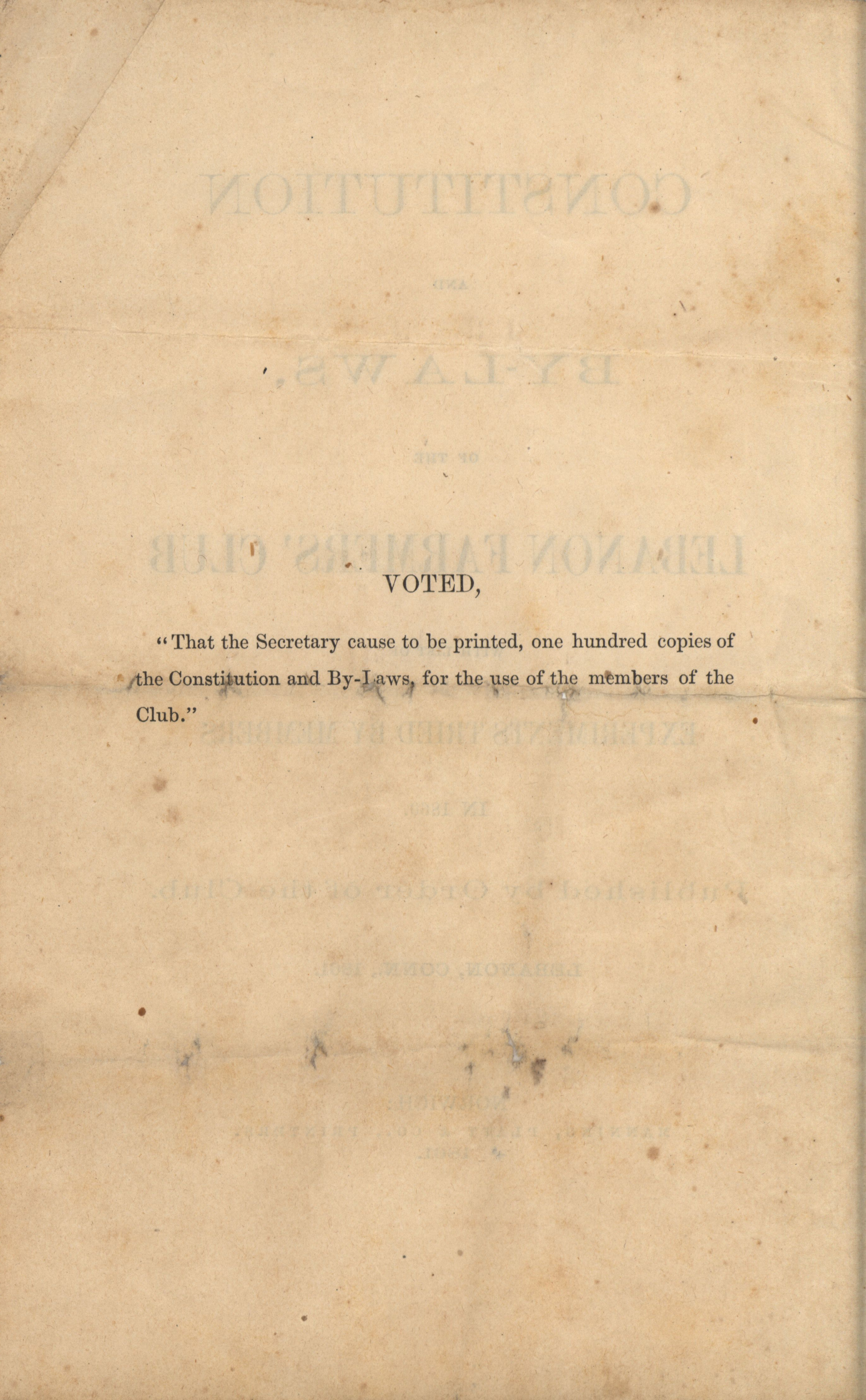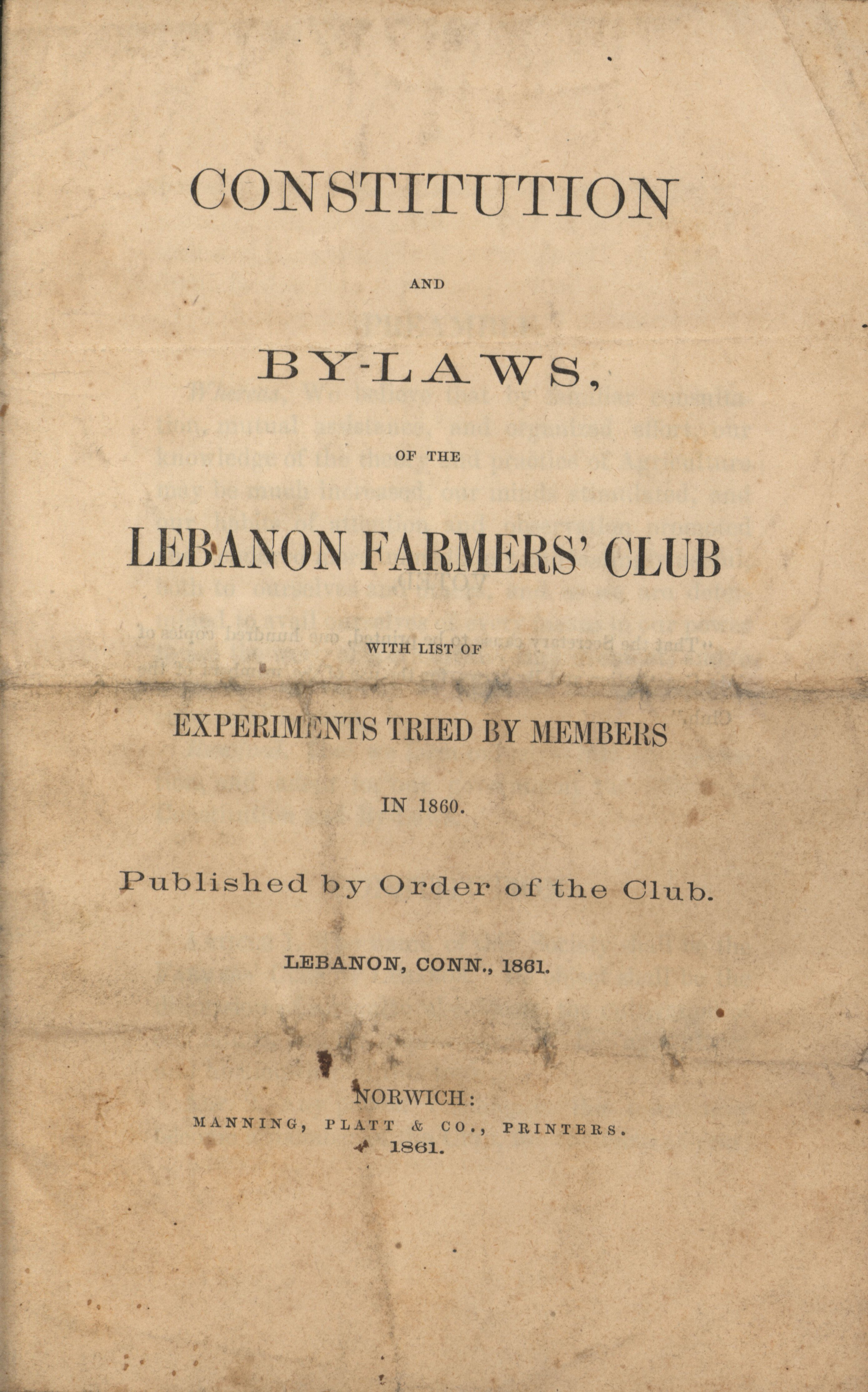 - Constitution and by-laws for the farmers club in Lebanon, Connecticut in 1861.