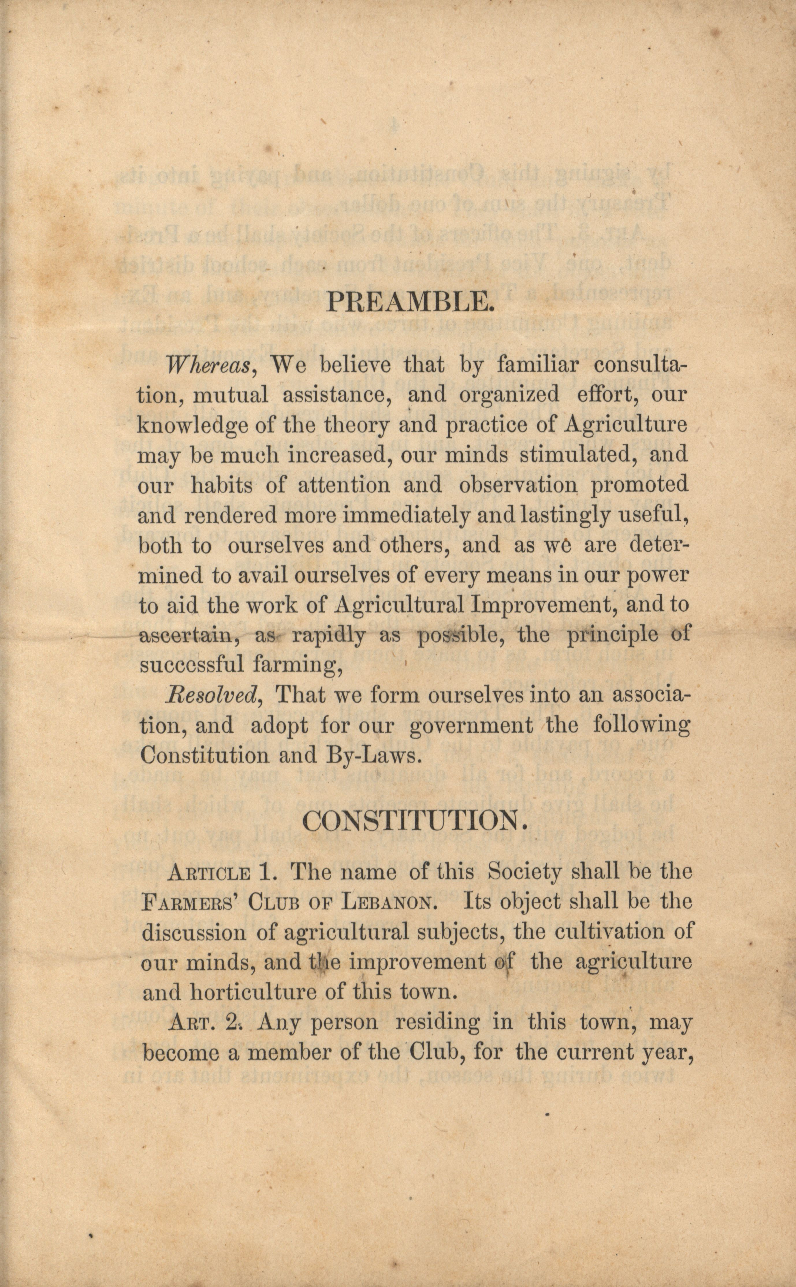 - Lebanon Farmers Club 1861 constitution and by-laws