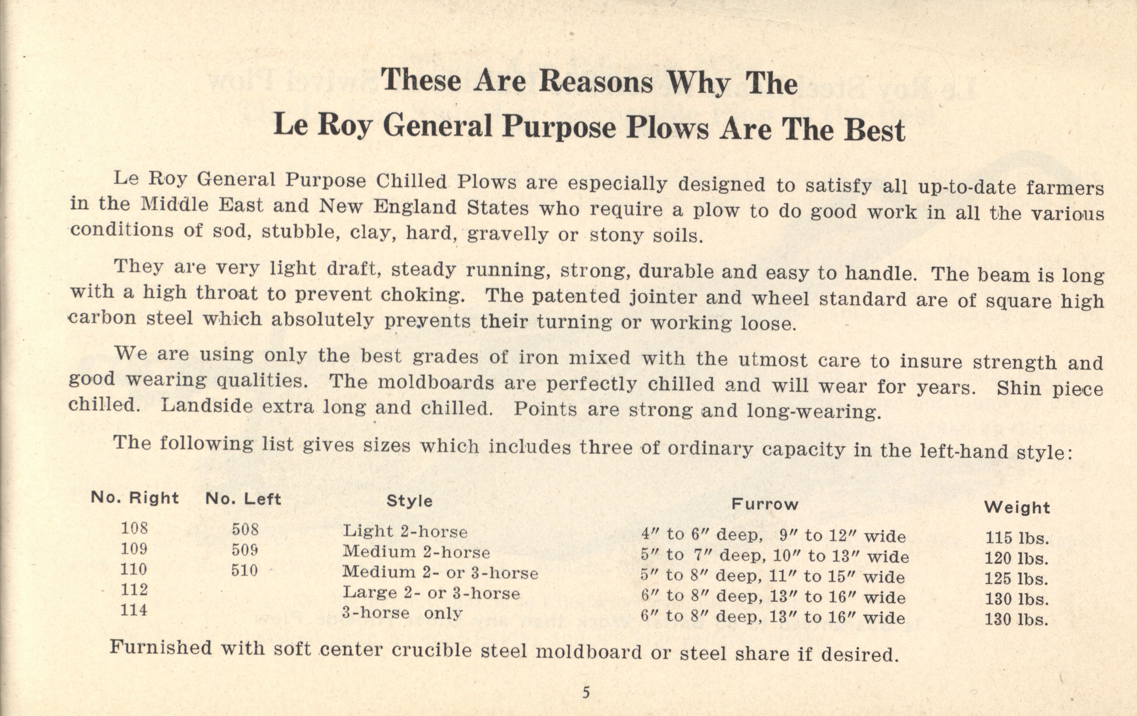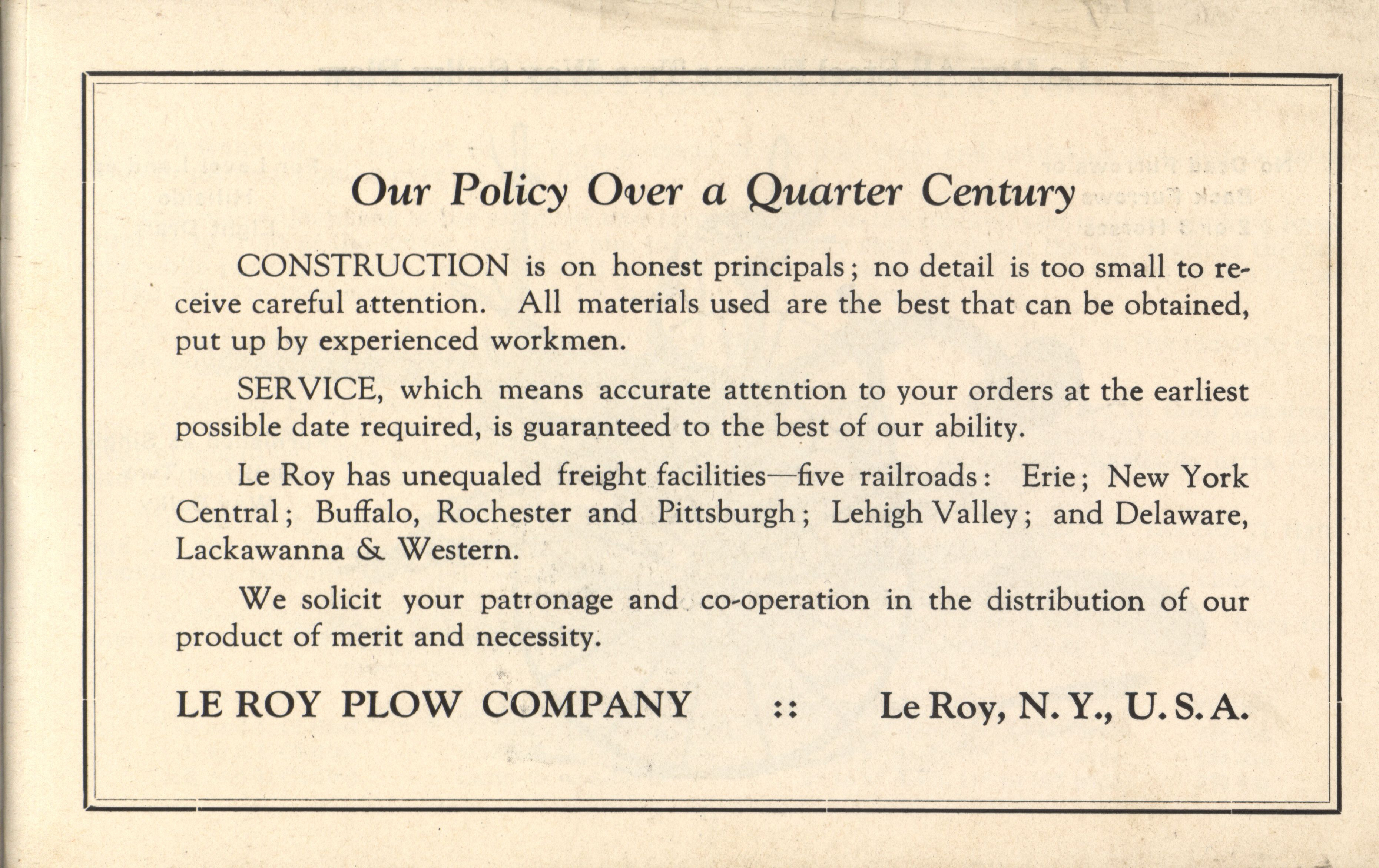 - "Le Roy Plow Company catalog", Agricultural Machinery Literature Collection, Iowa State University Library Digital Collections