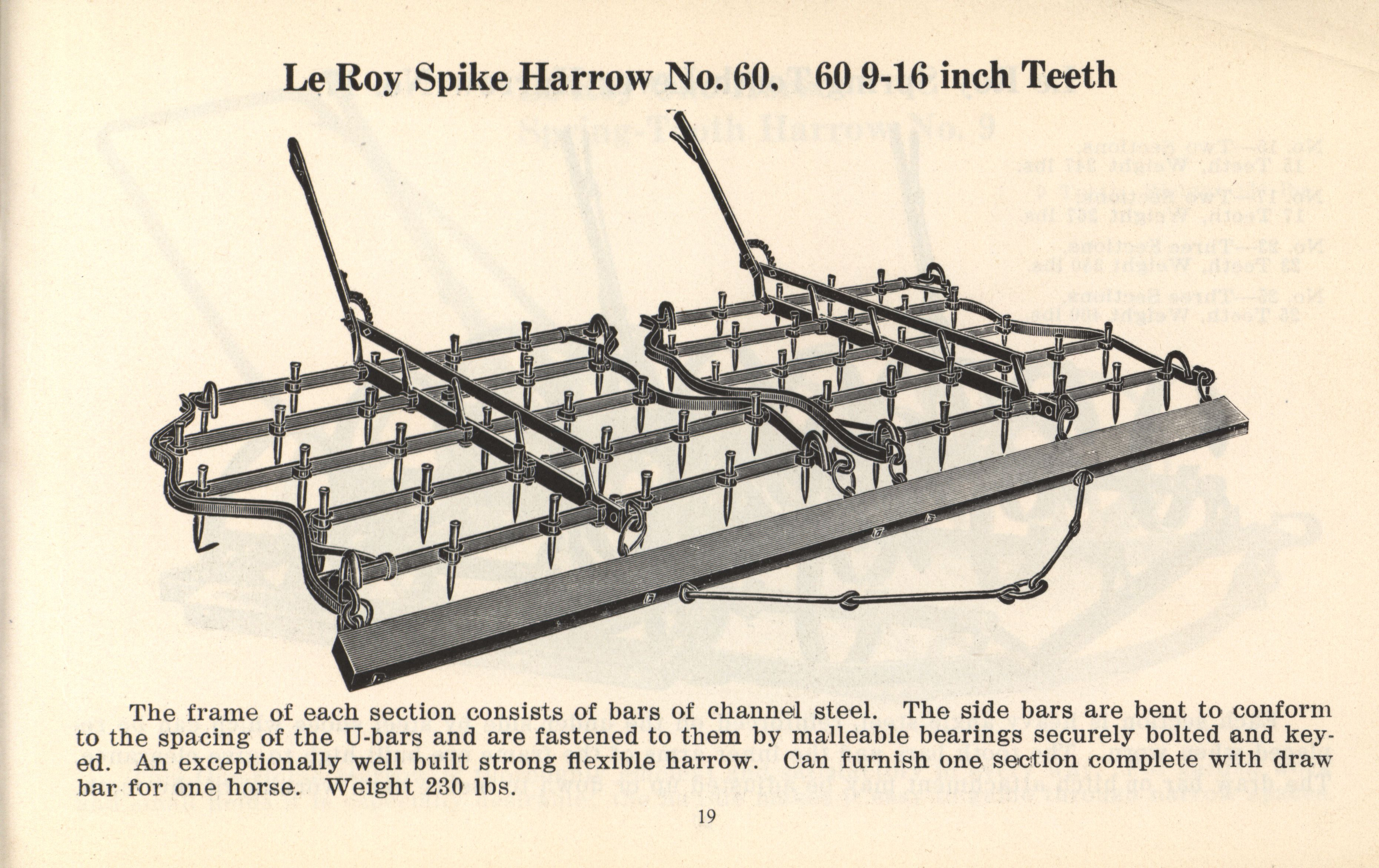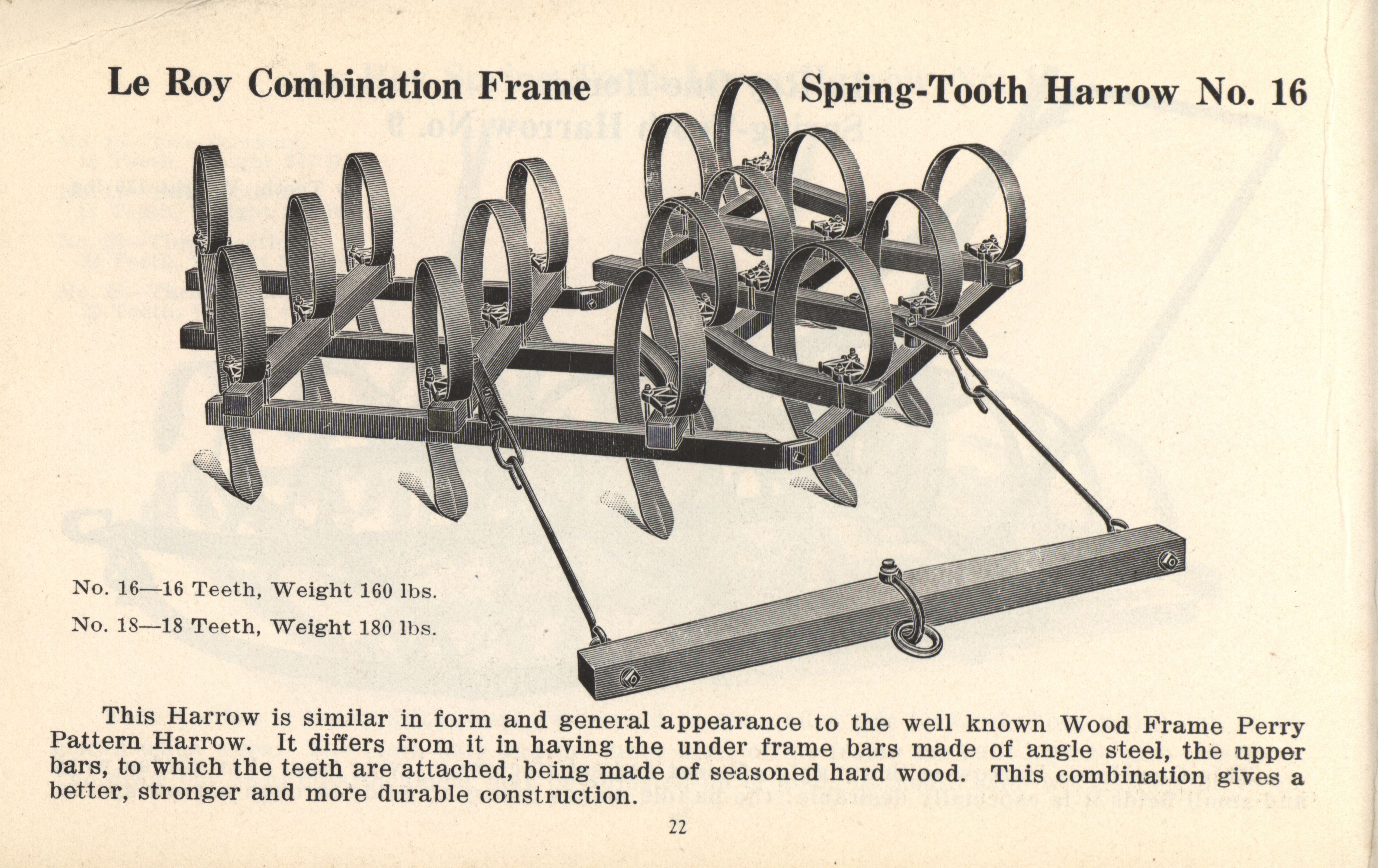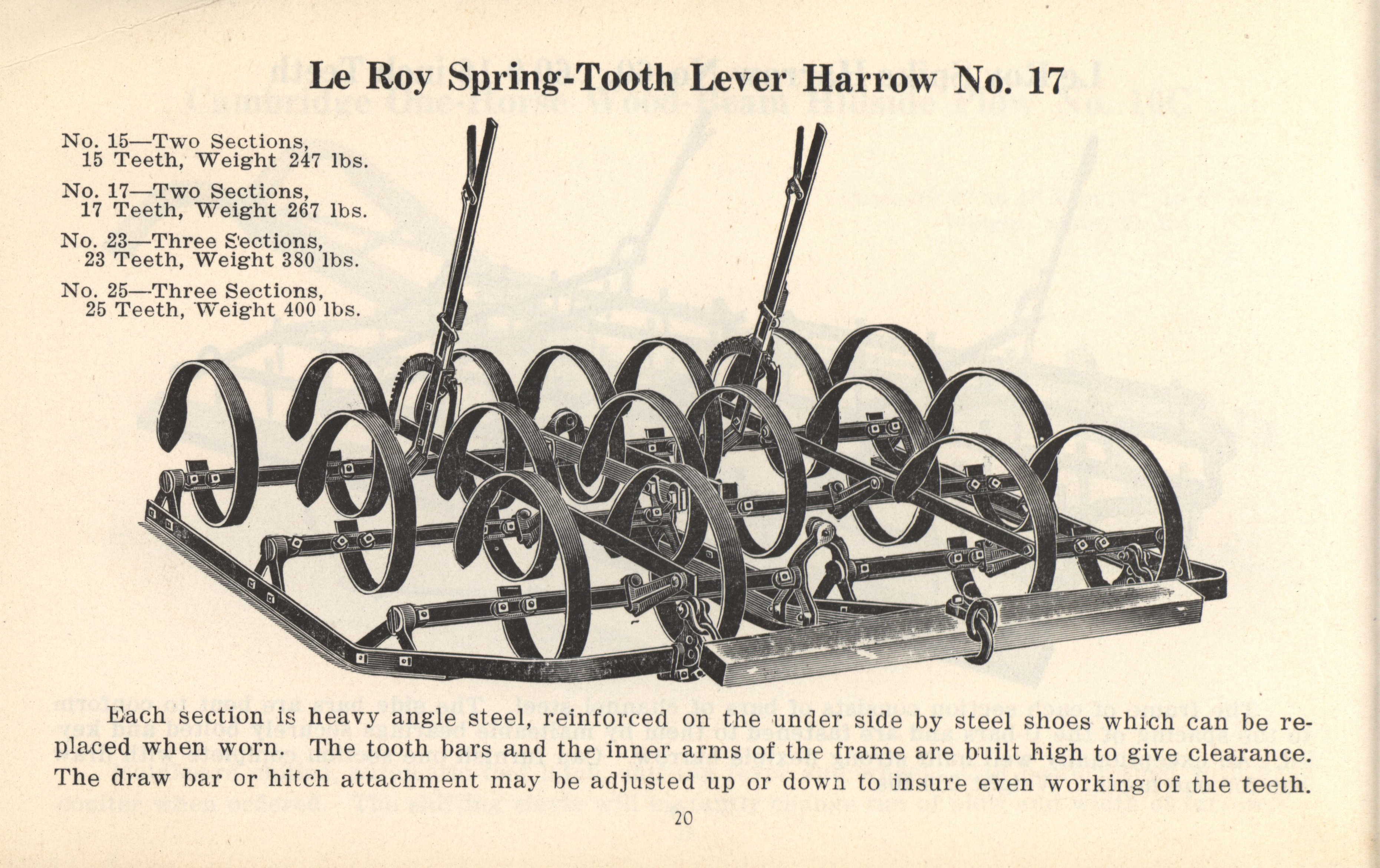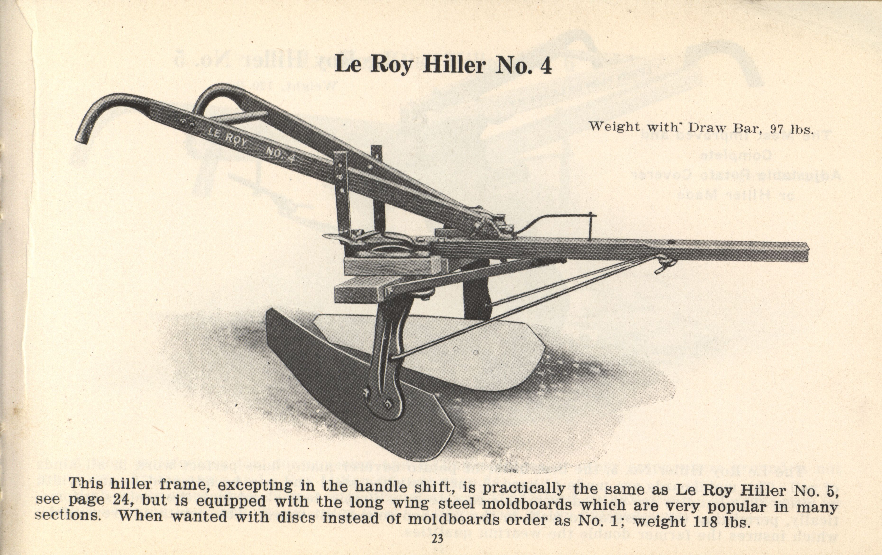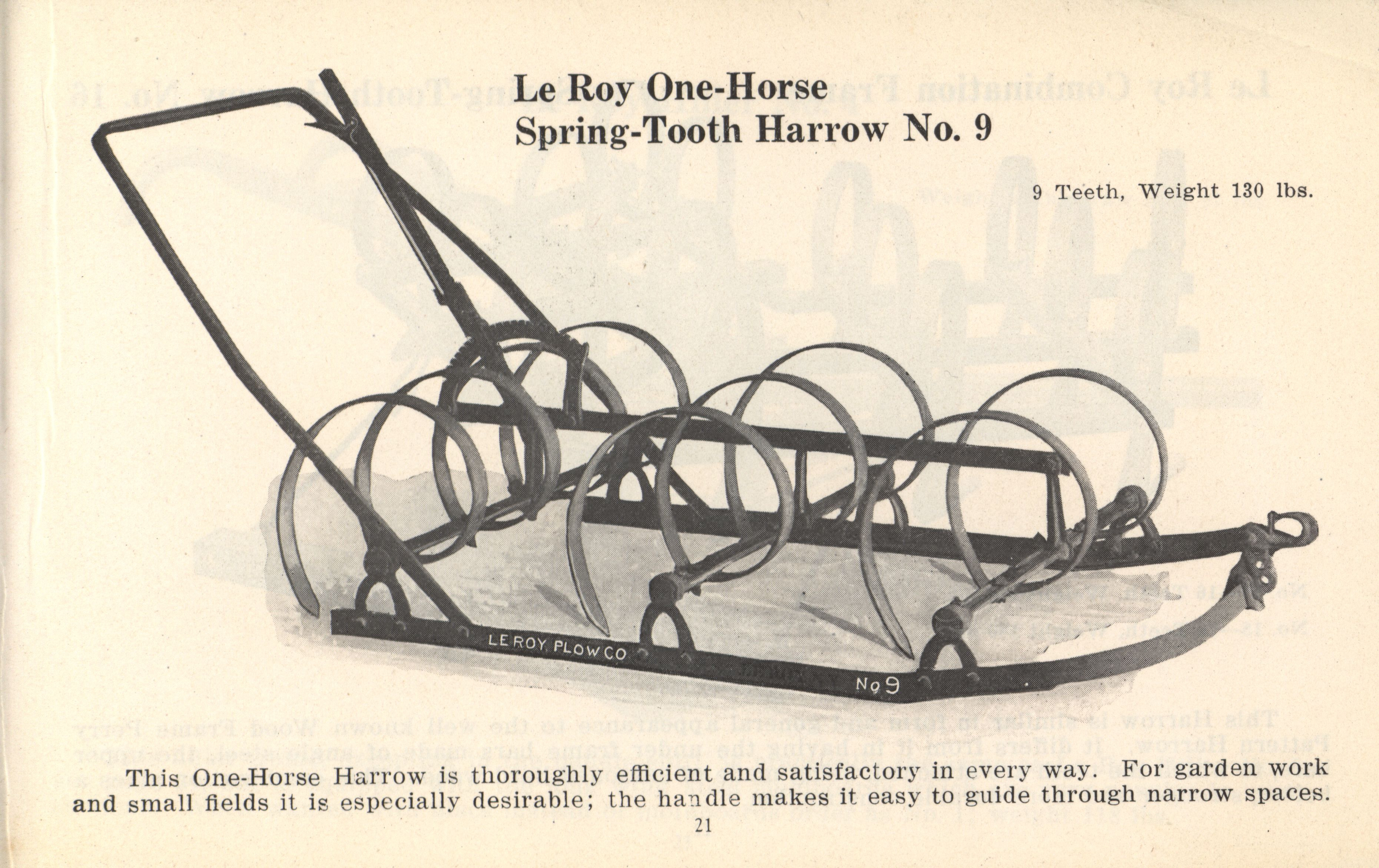 - Illustrated catalog describing the agricultural implements offered by the Le Roy Plow Company.