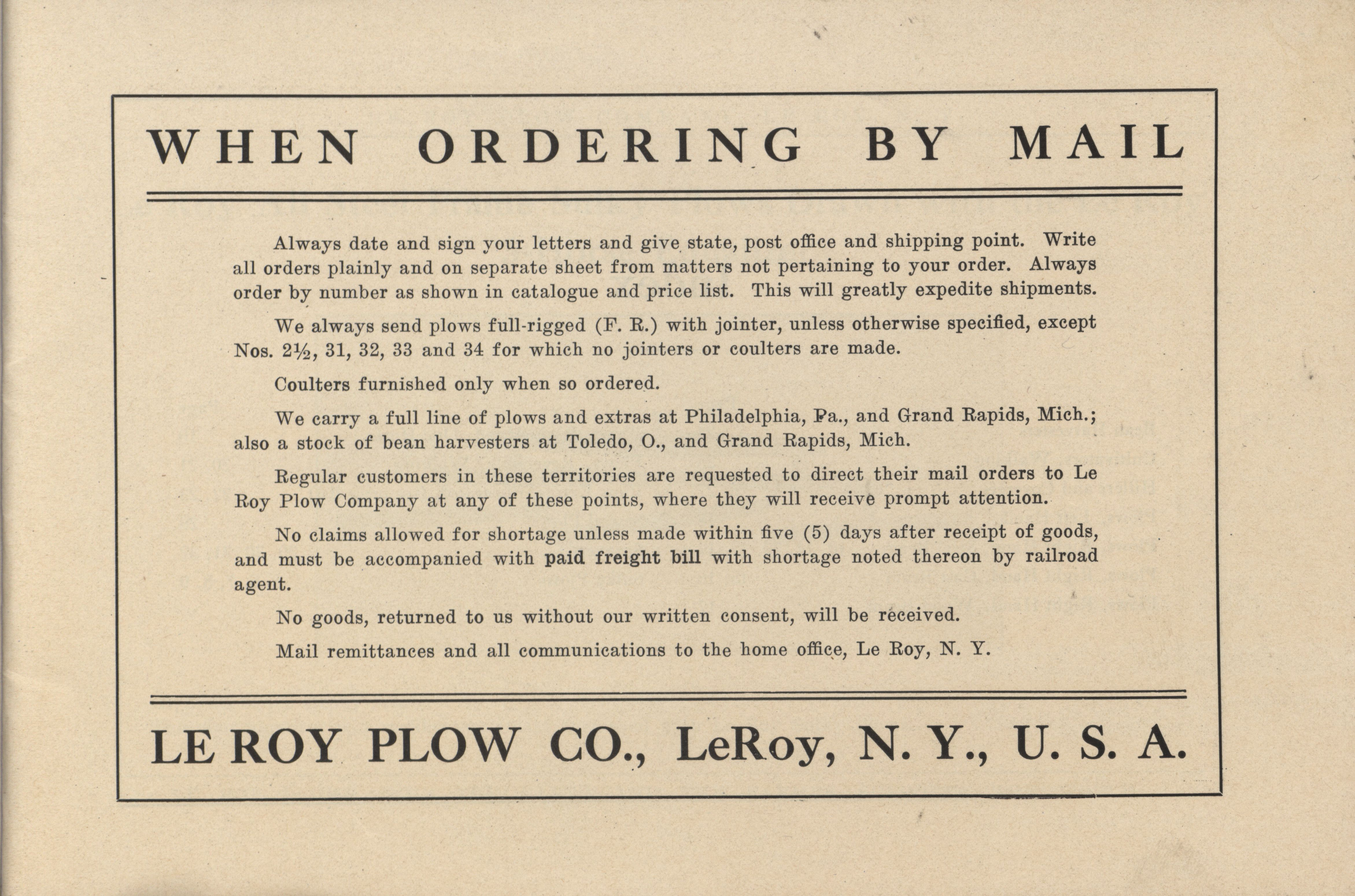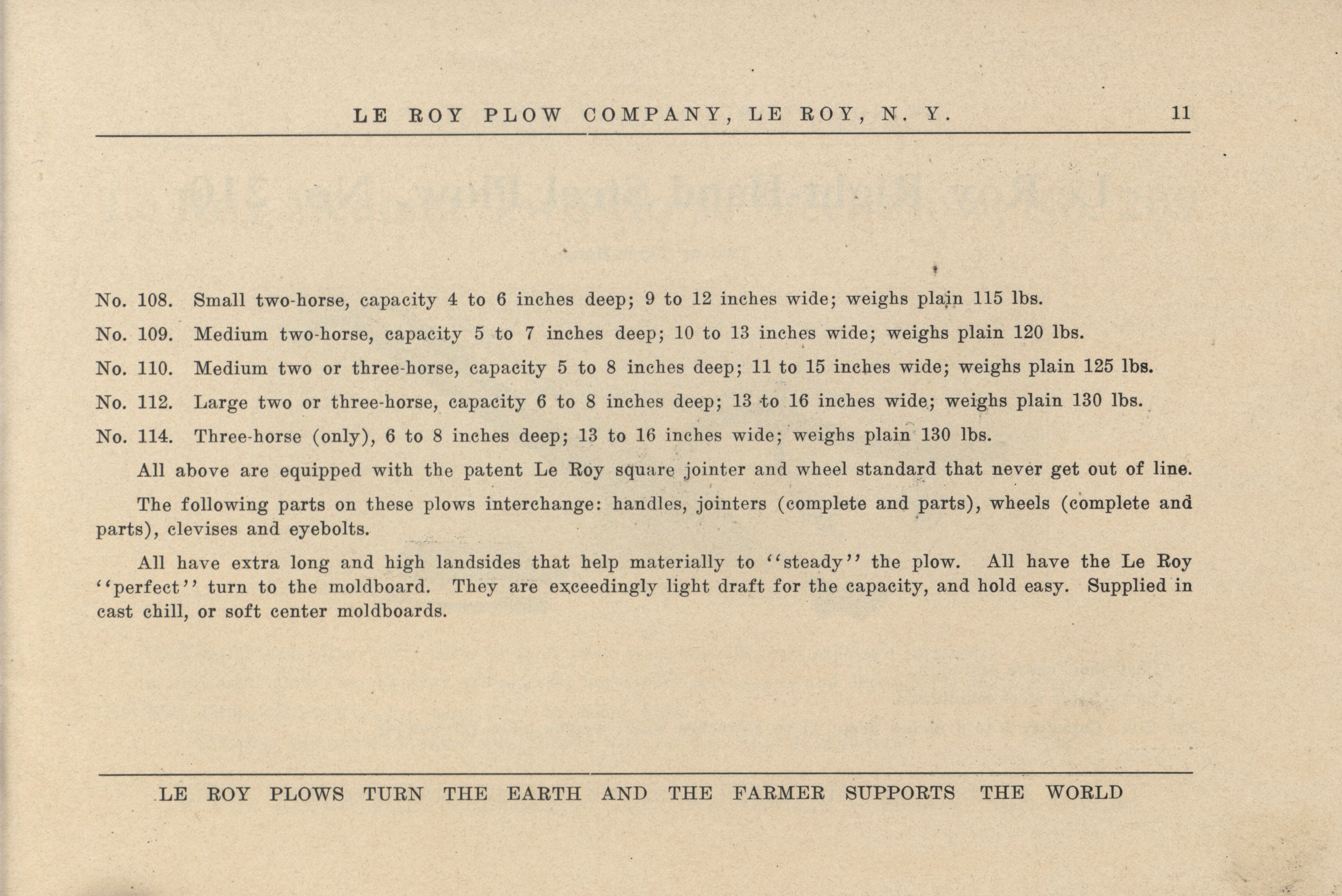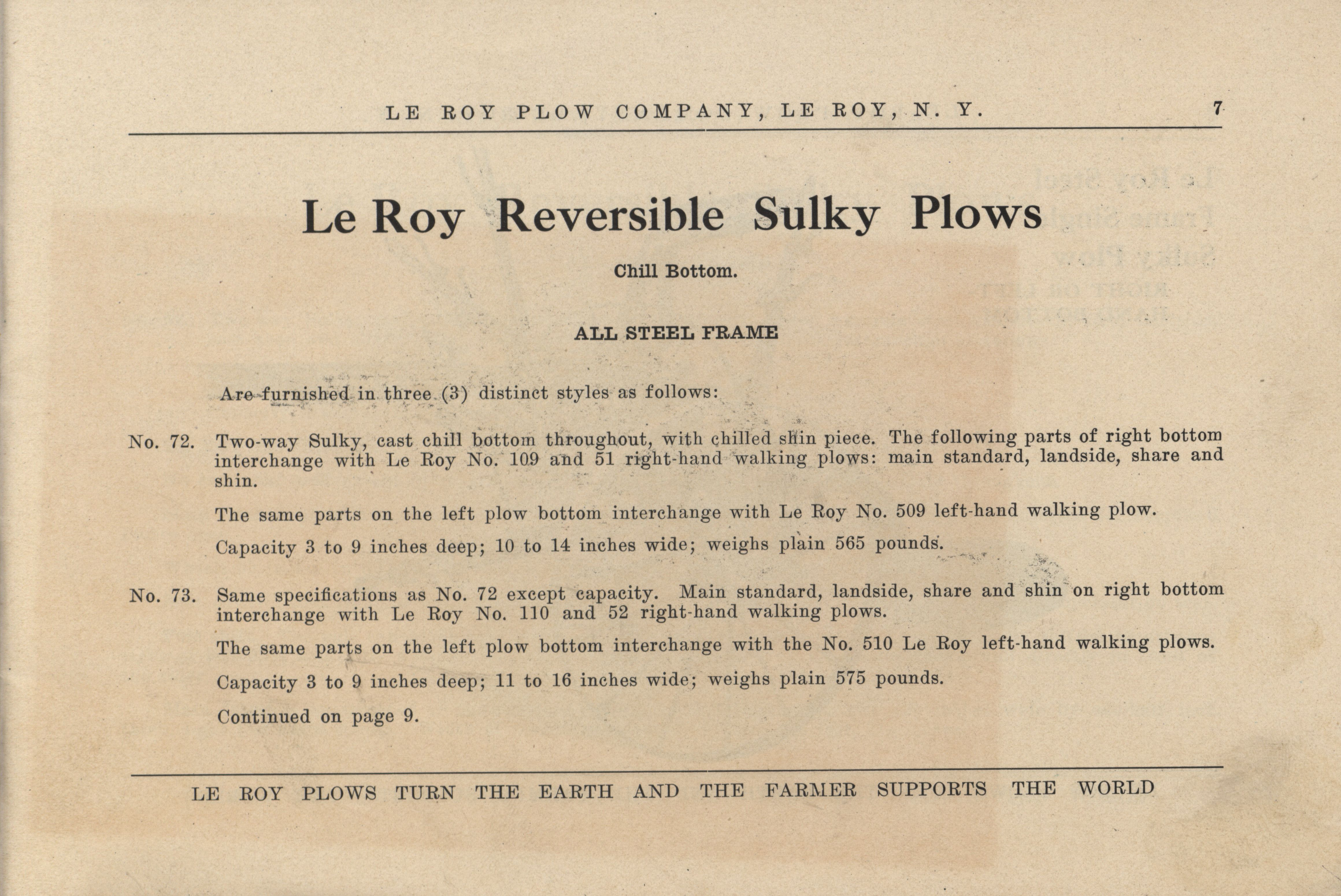 - "Le Roy Plow Company catalog", Agricultural Machinery Literature Collection, Iowa State University Library Digital Collections