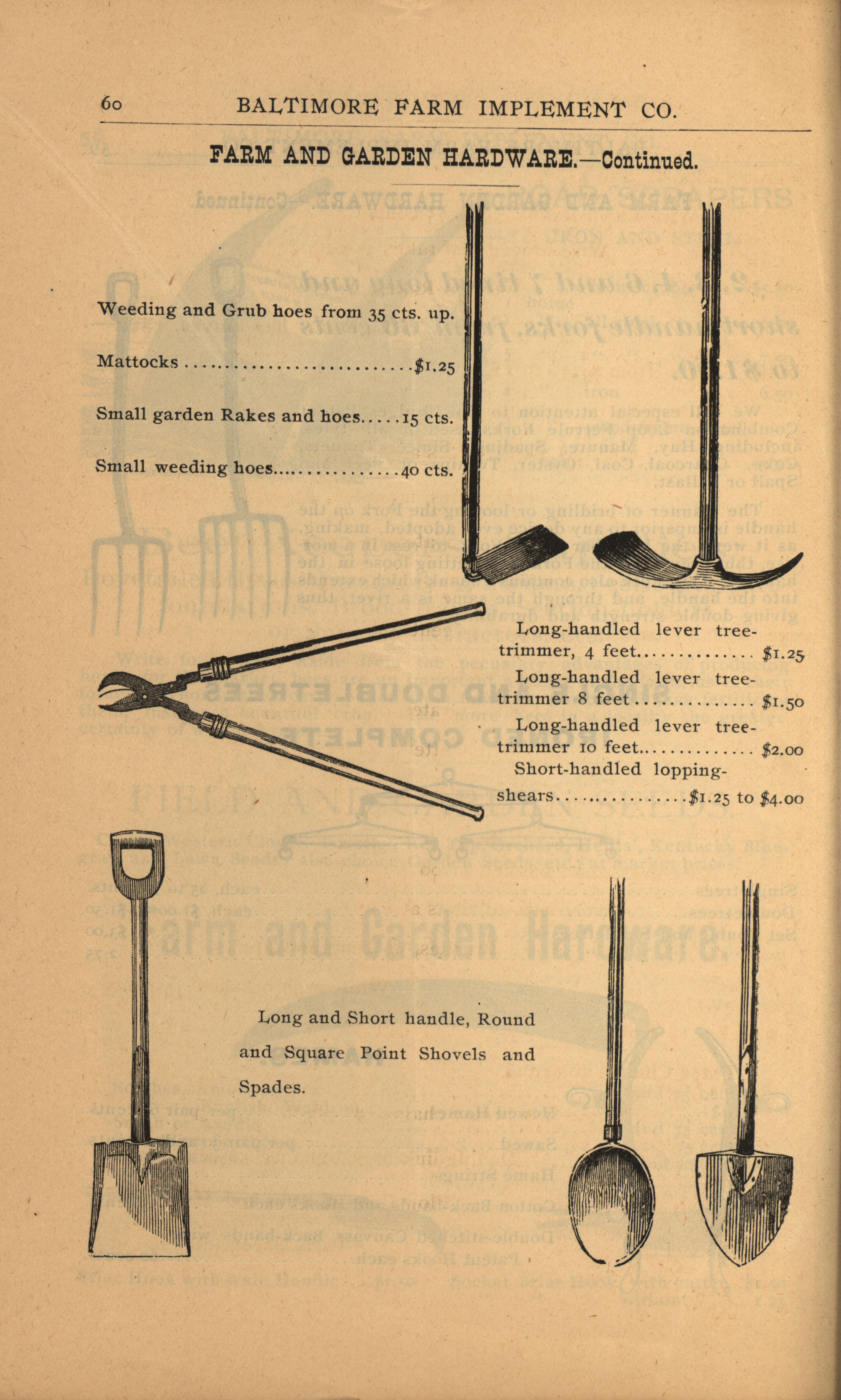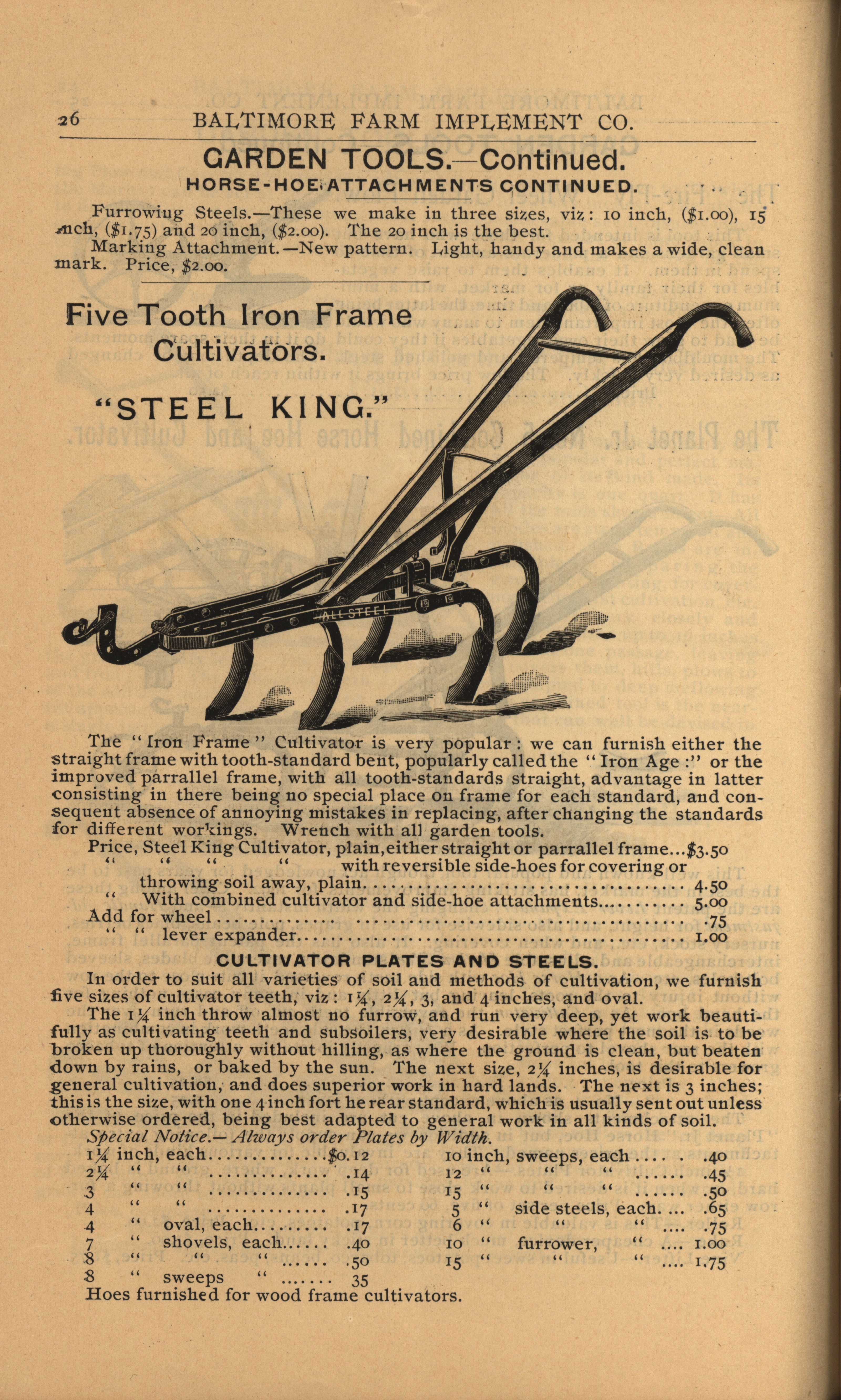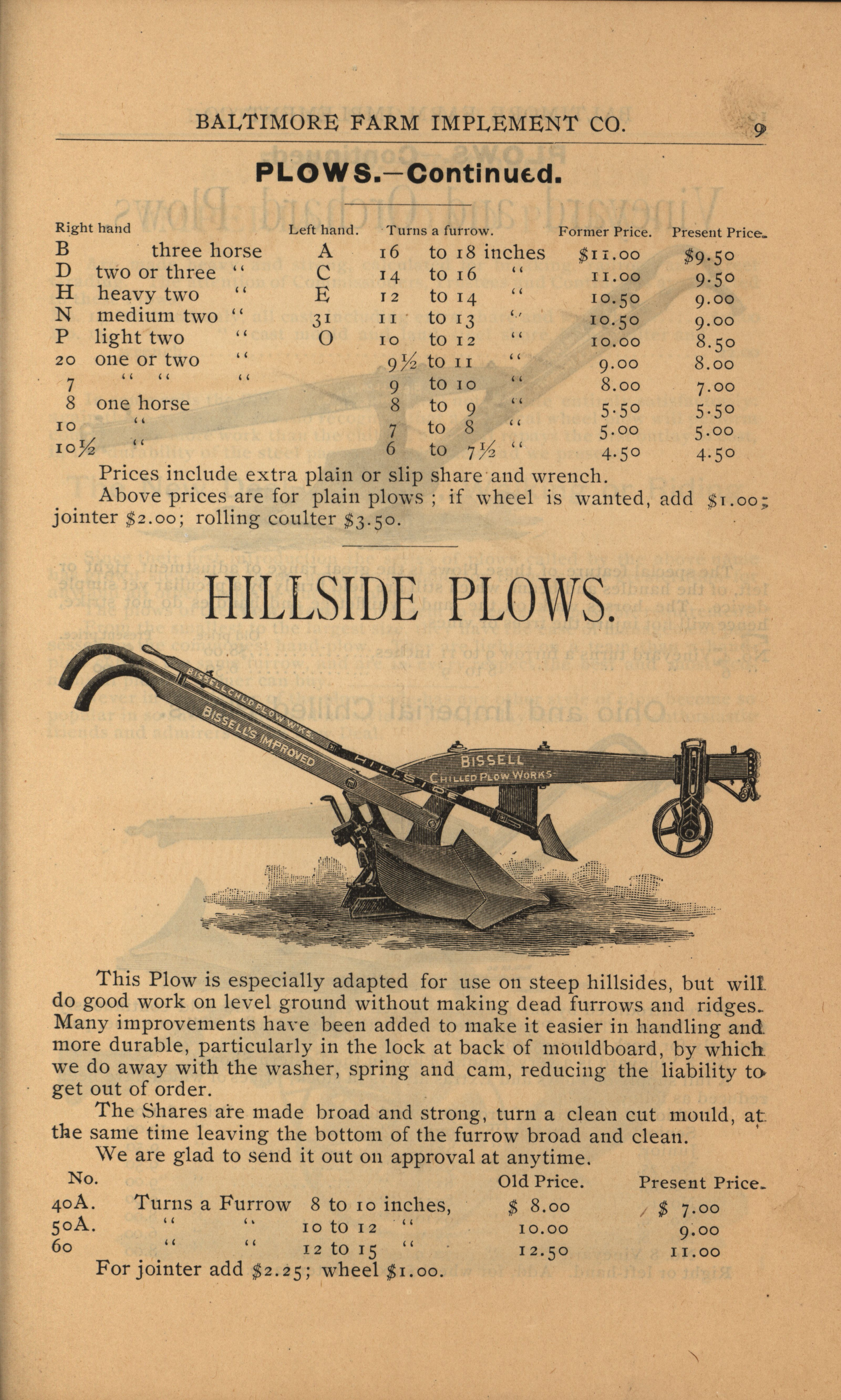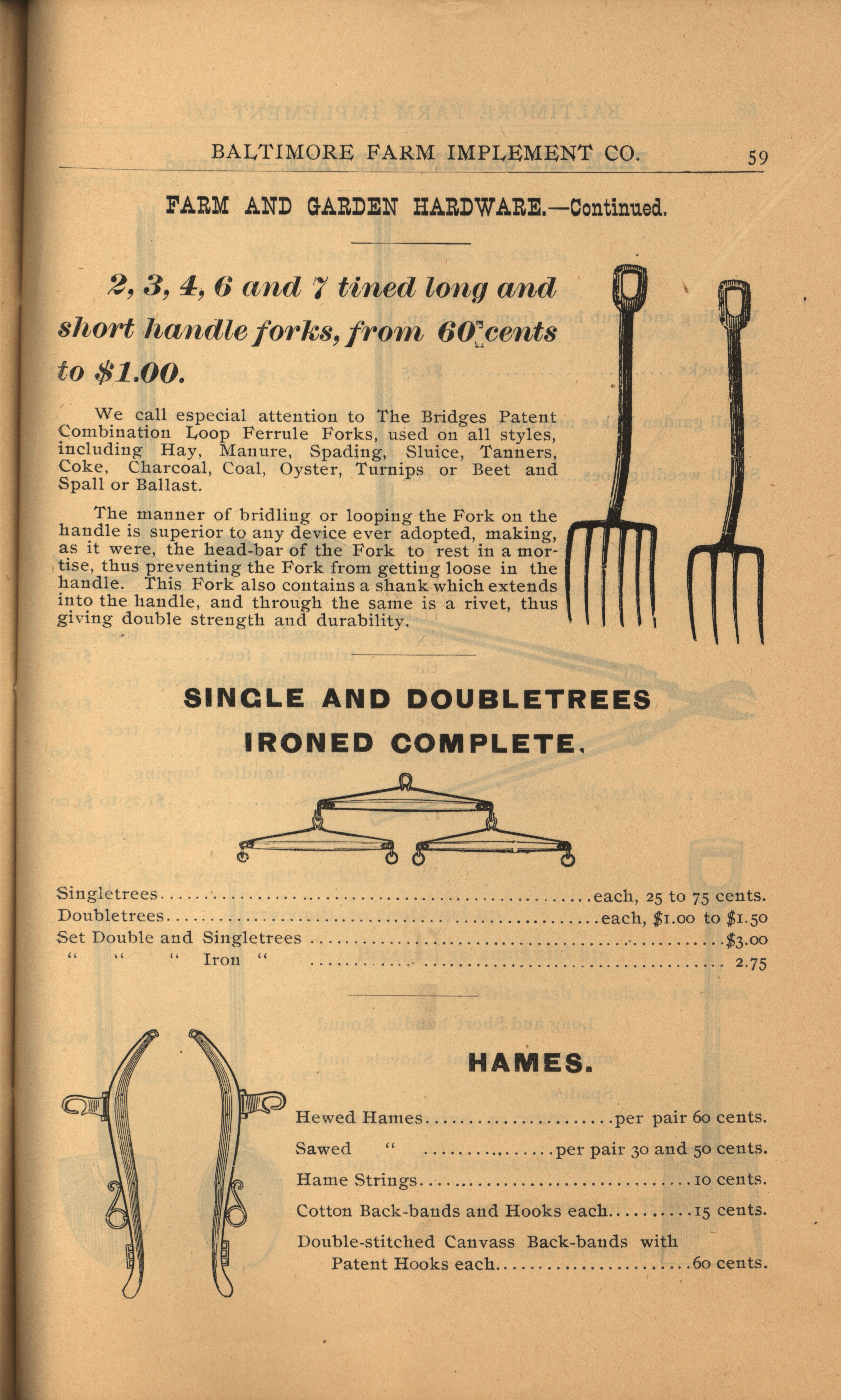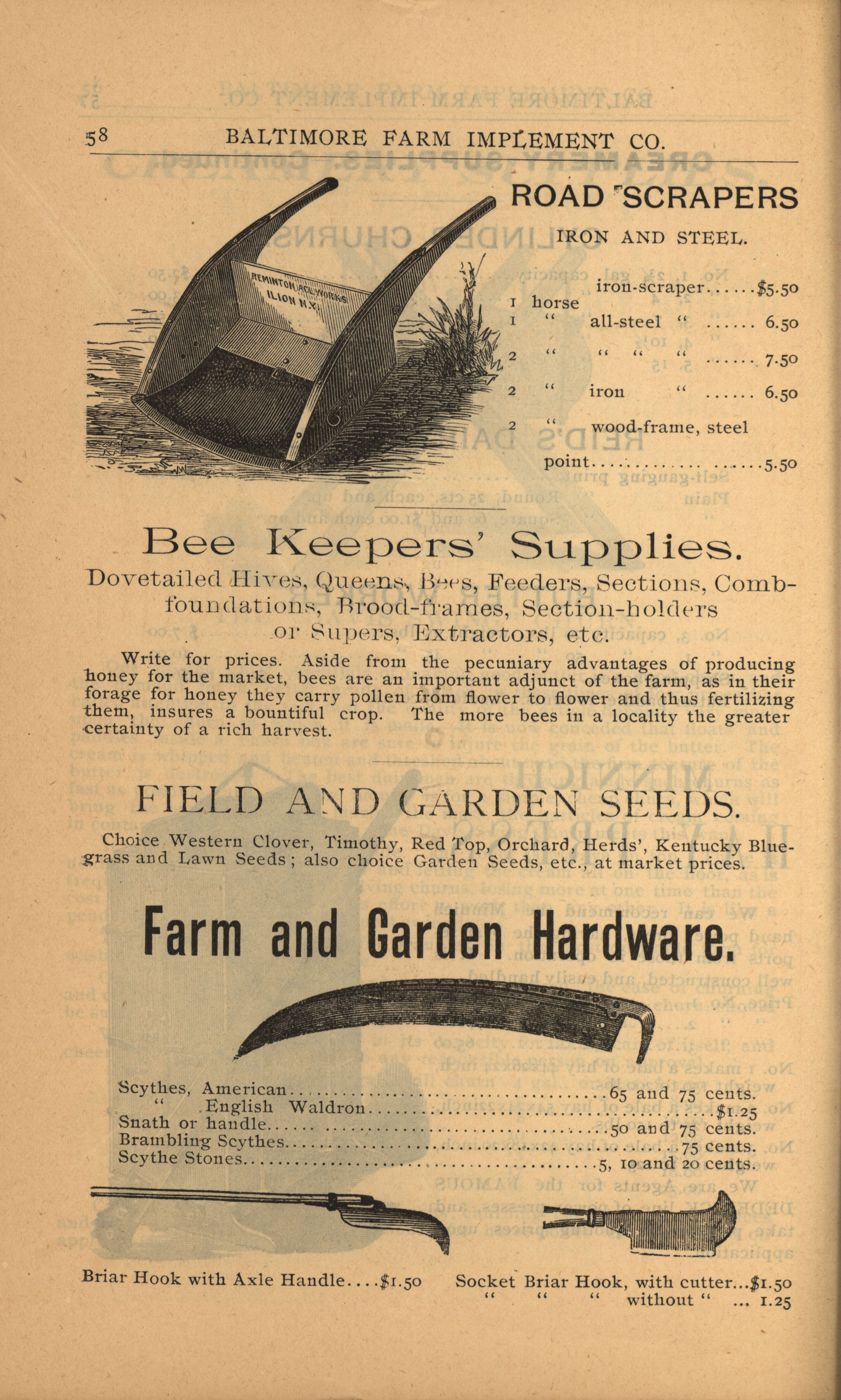 - Illustrated catalog describing the agricultural implements and related products offered by the Baltimore Farm Implement Company in 1892.