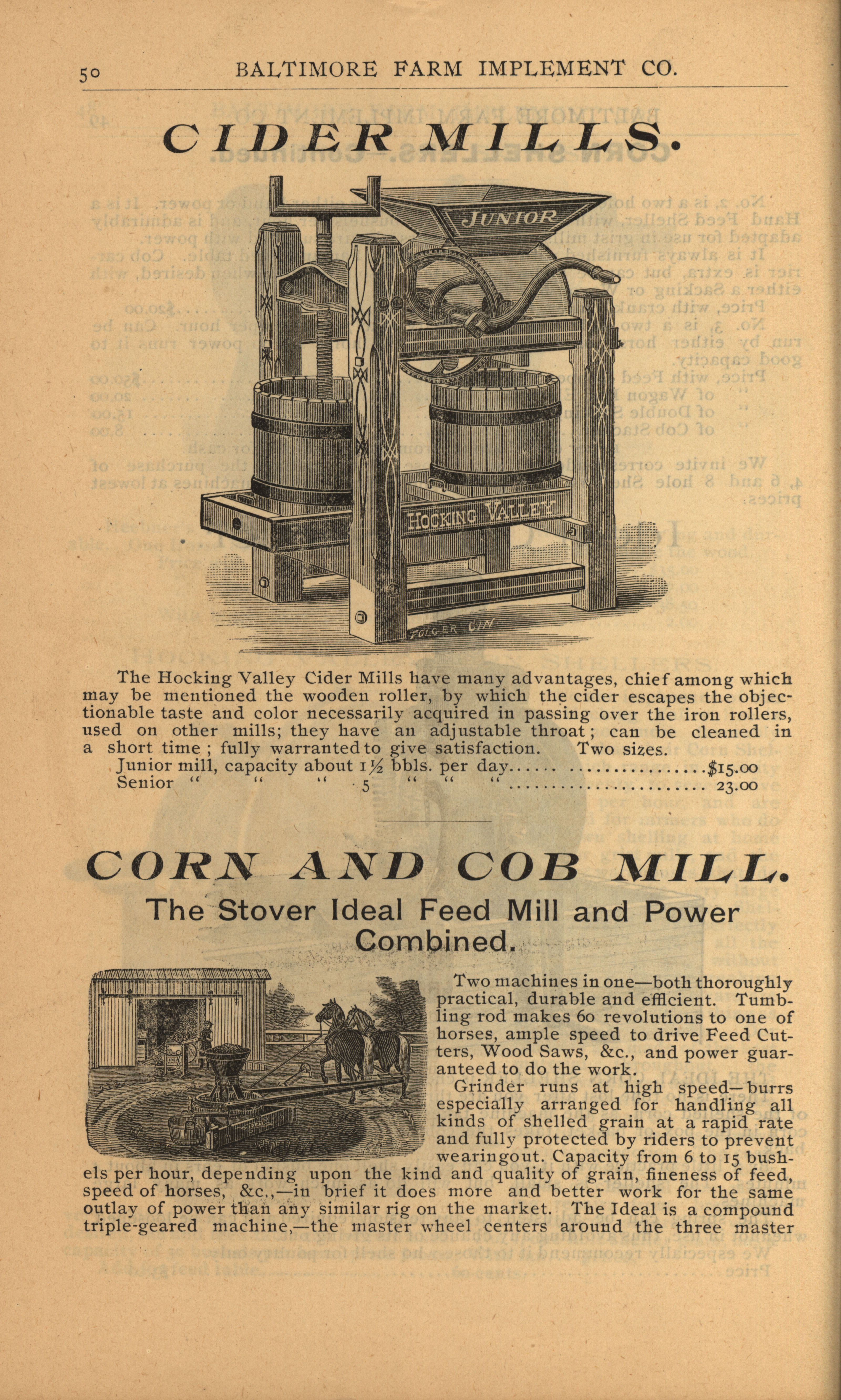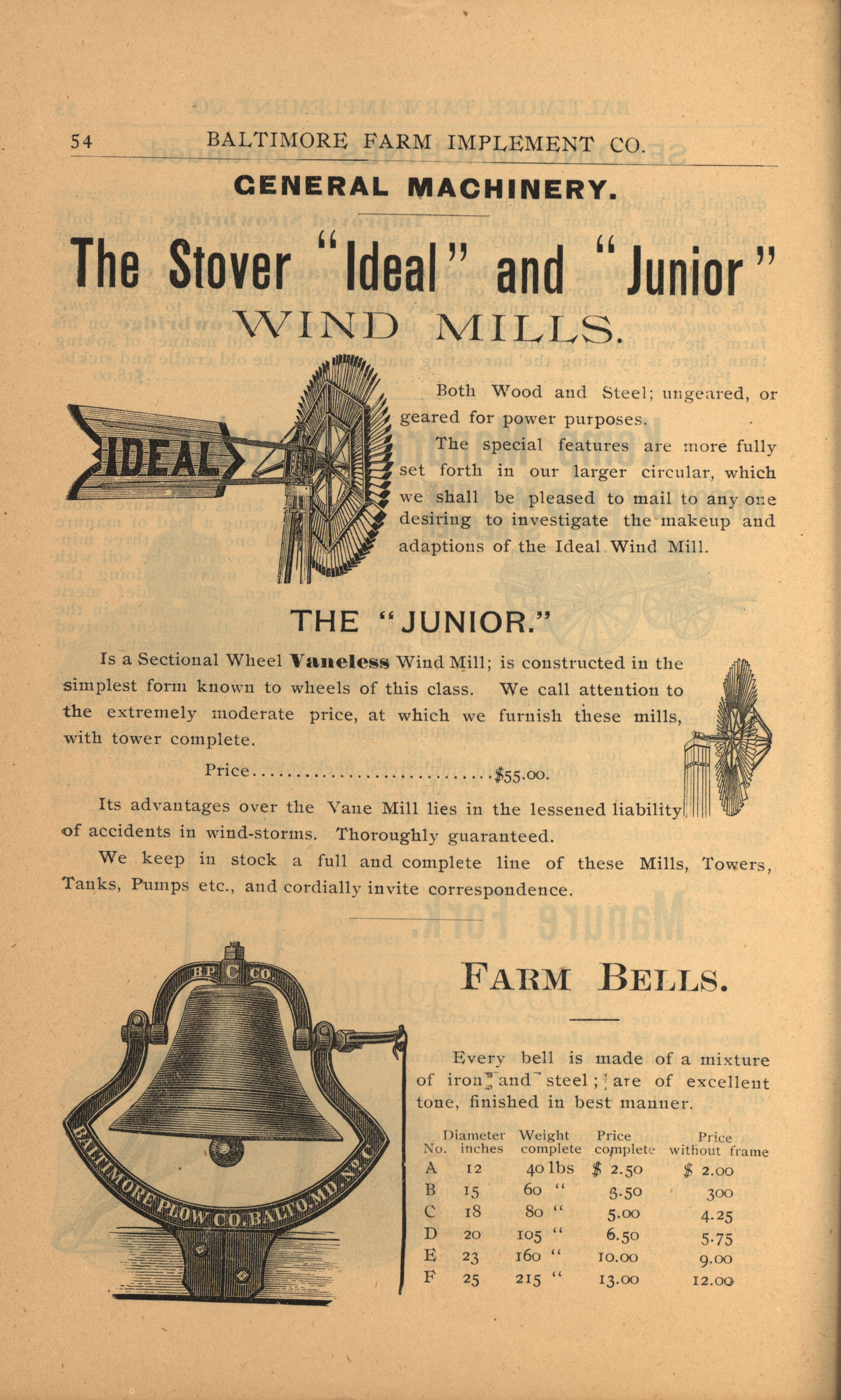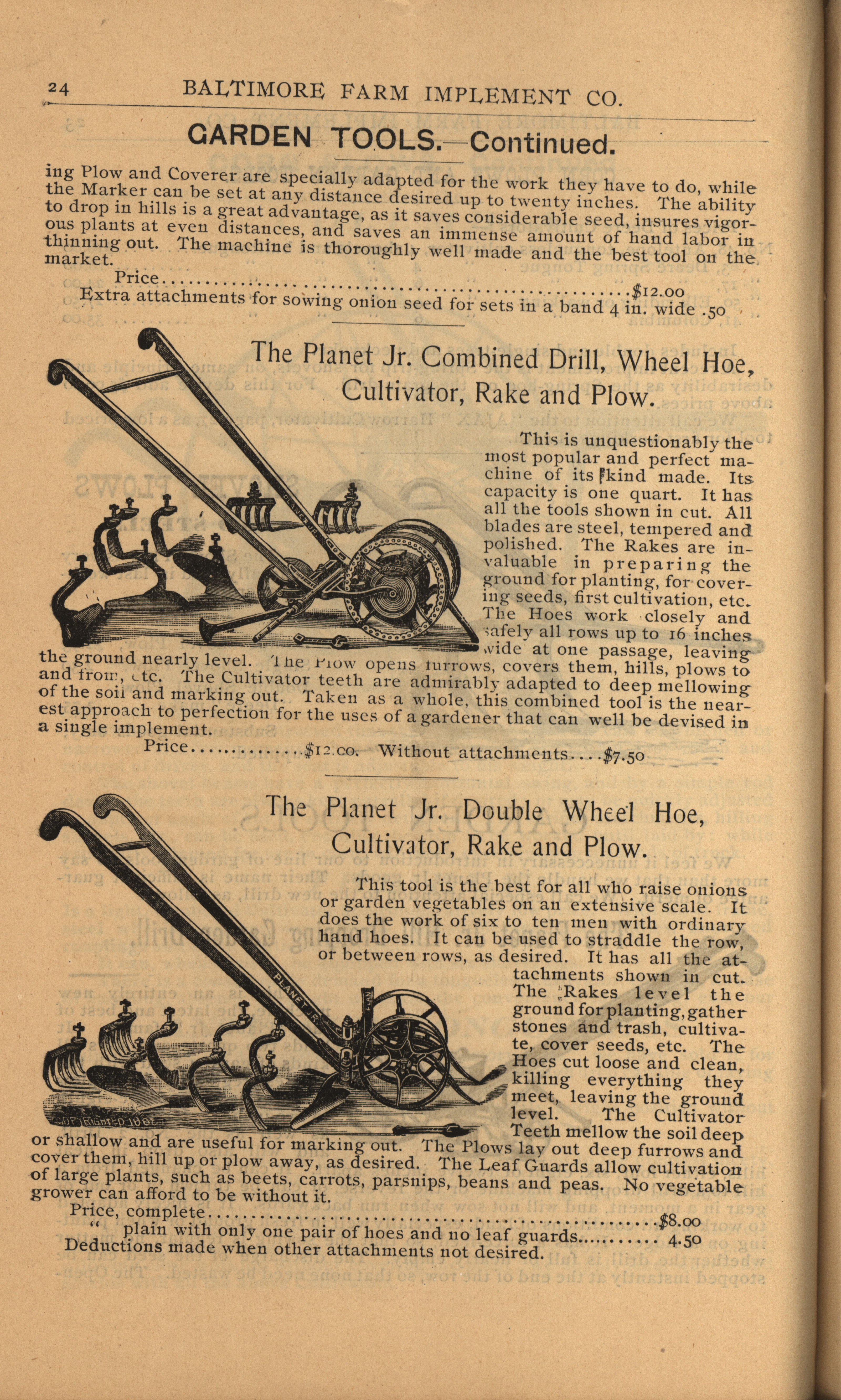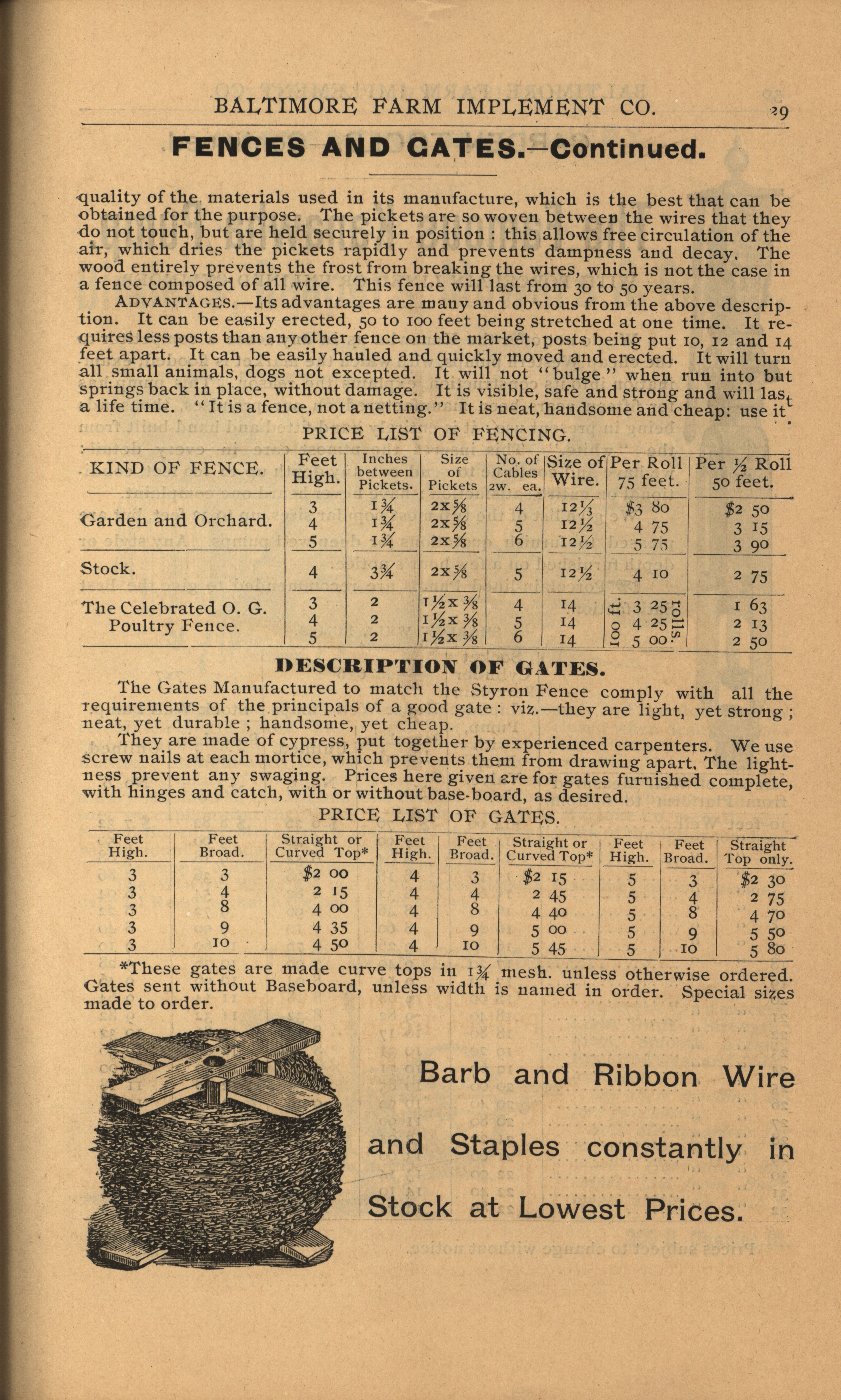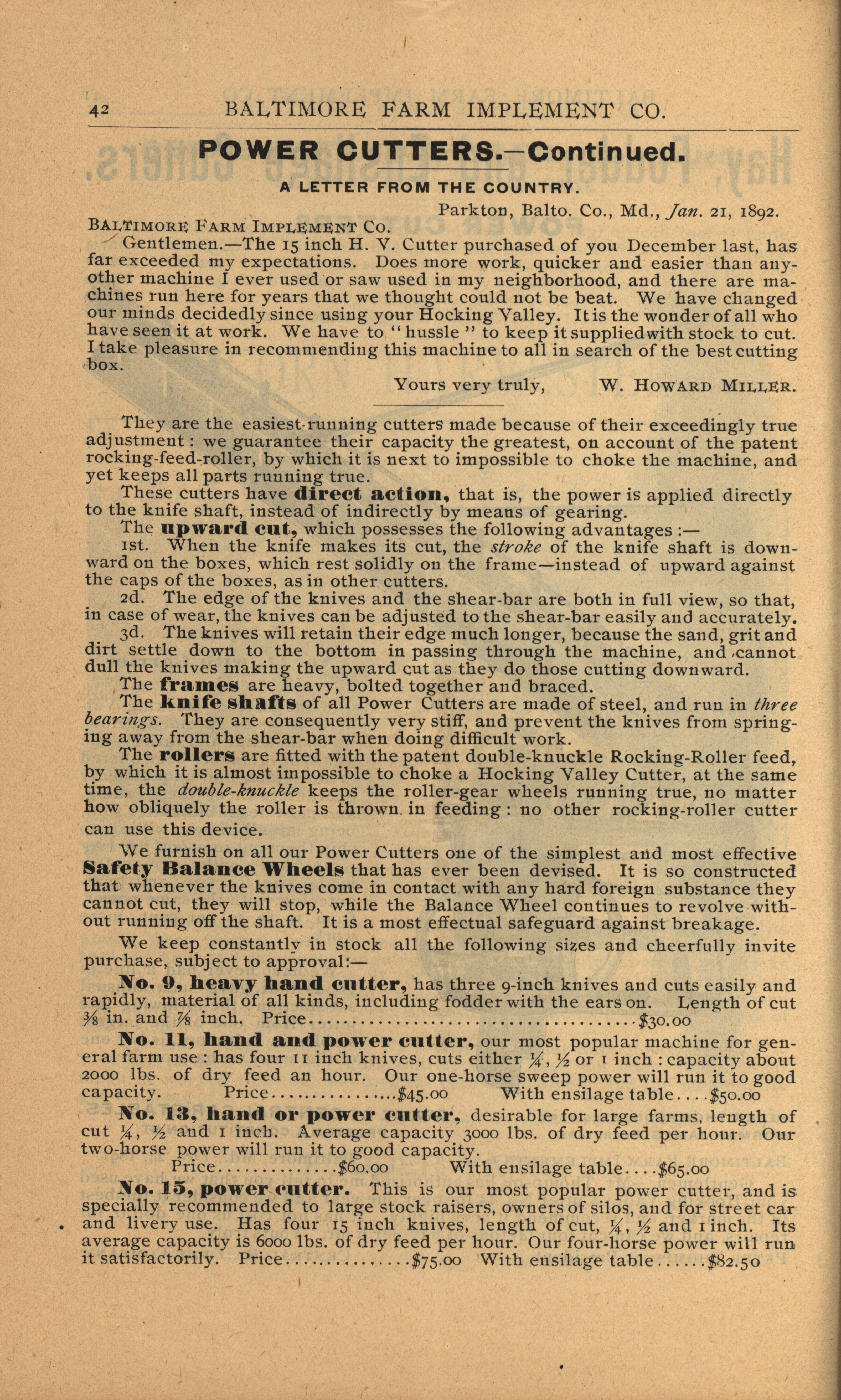 - Illustrated catalog describing the agricultural implements and related products offered by the Baltimore Farm Implement Company in 1892.