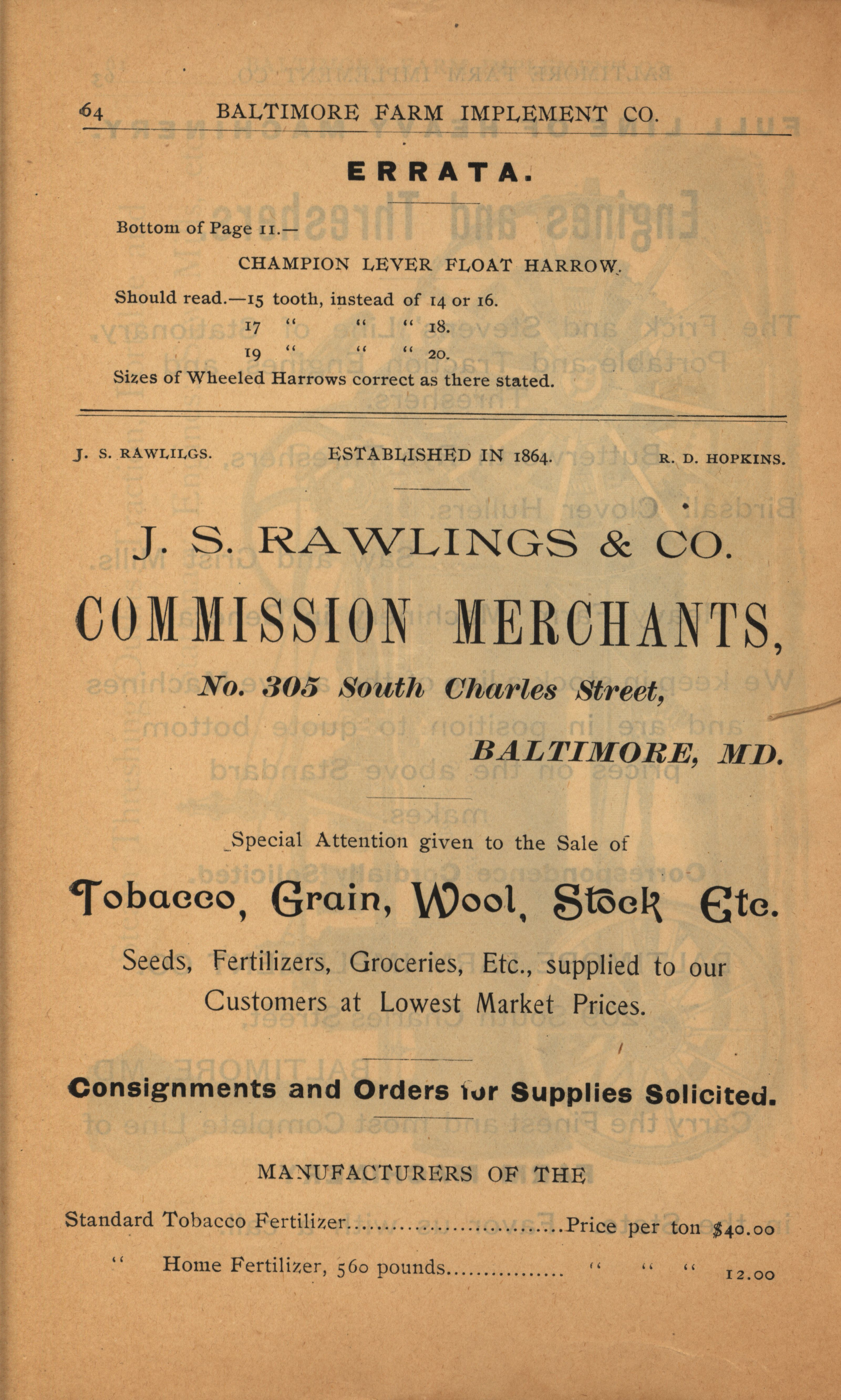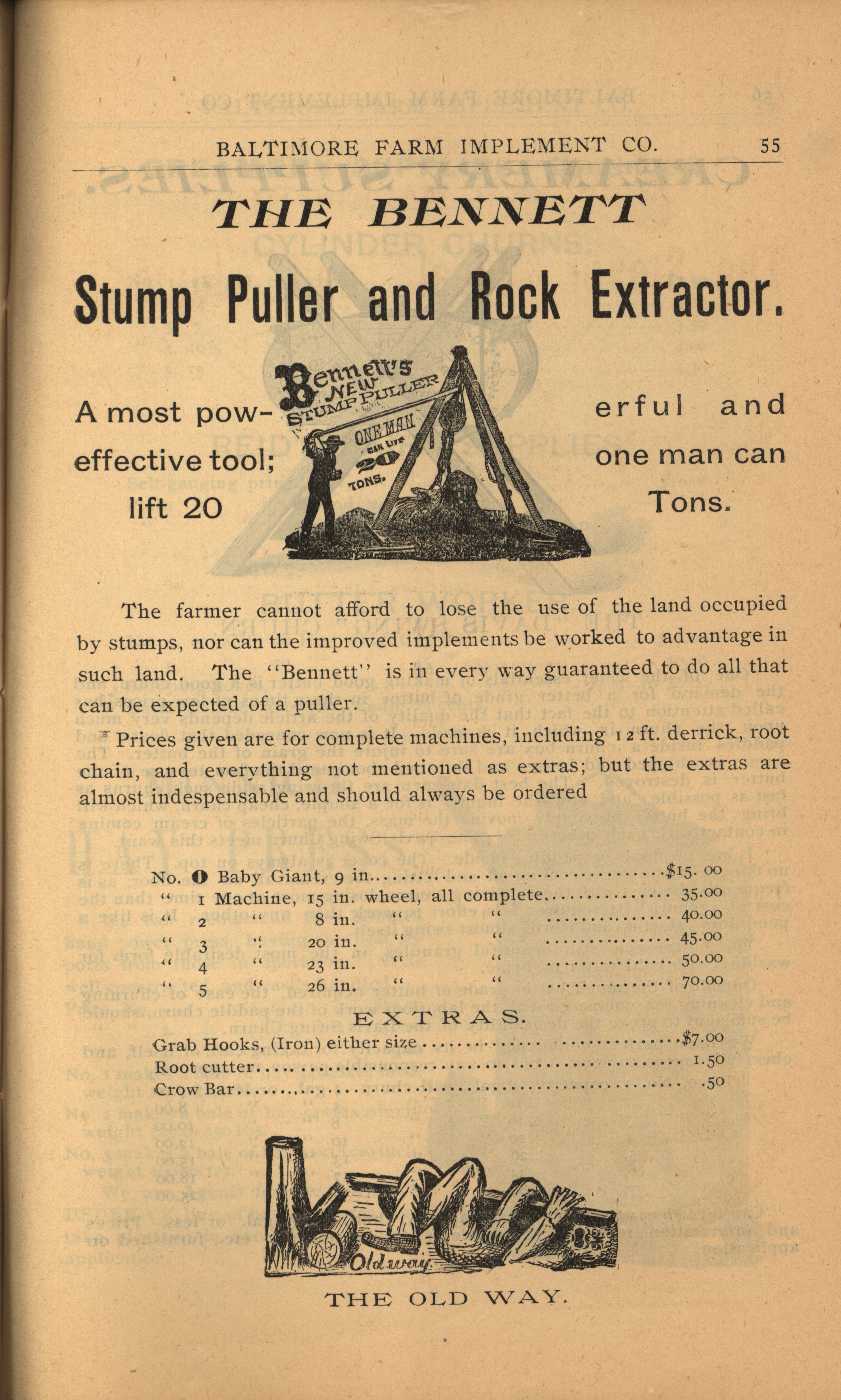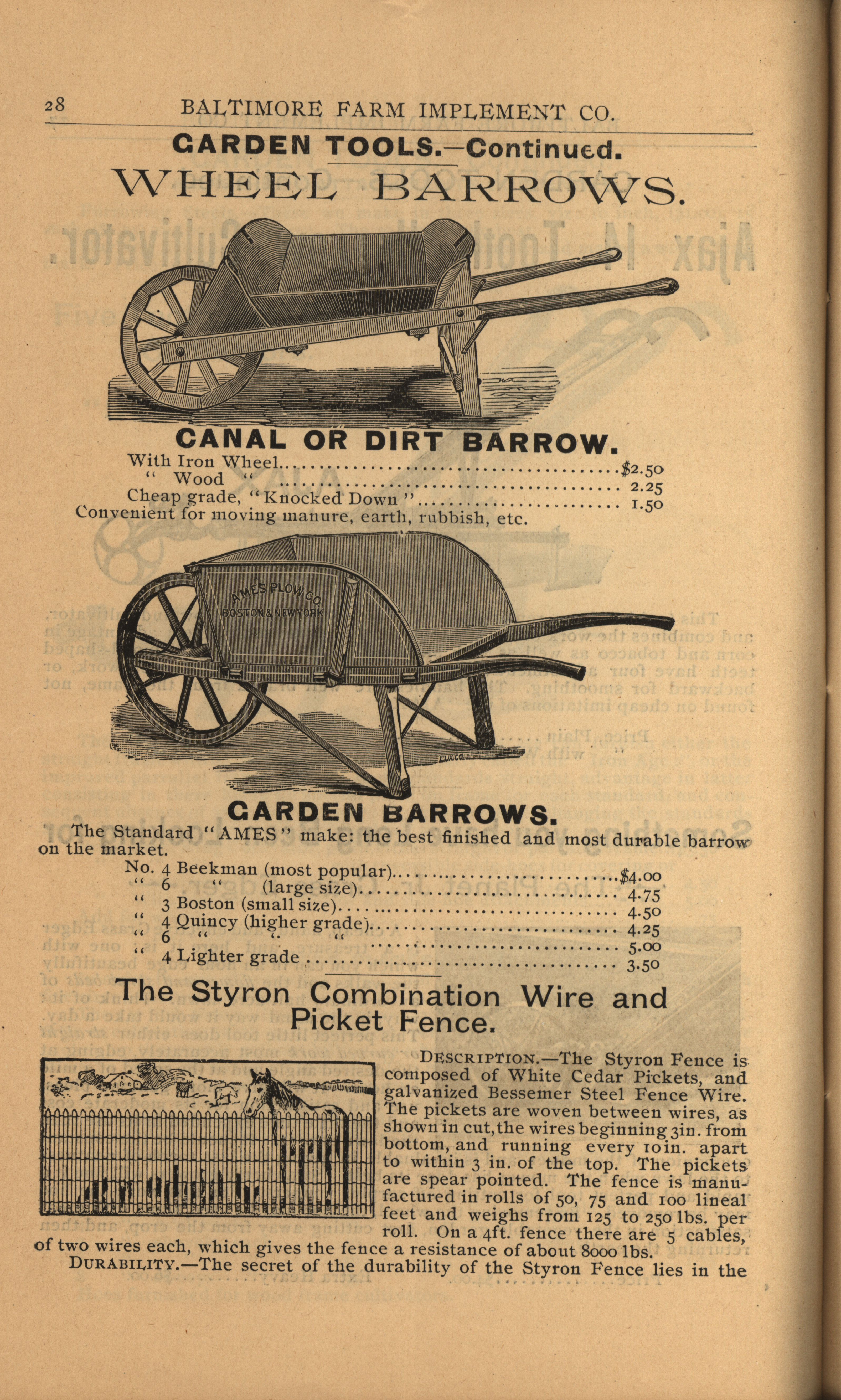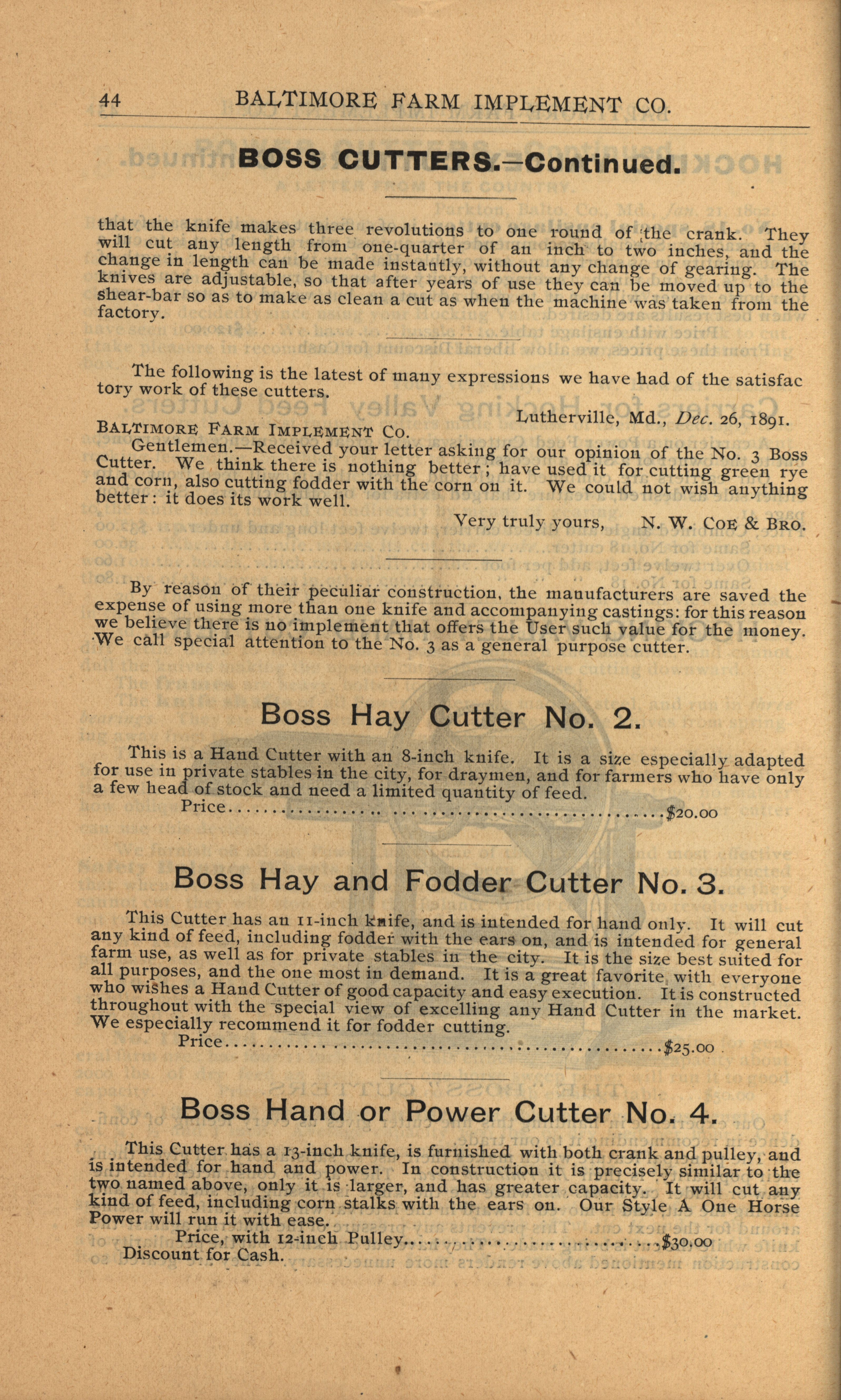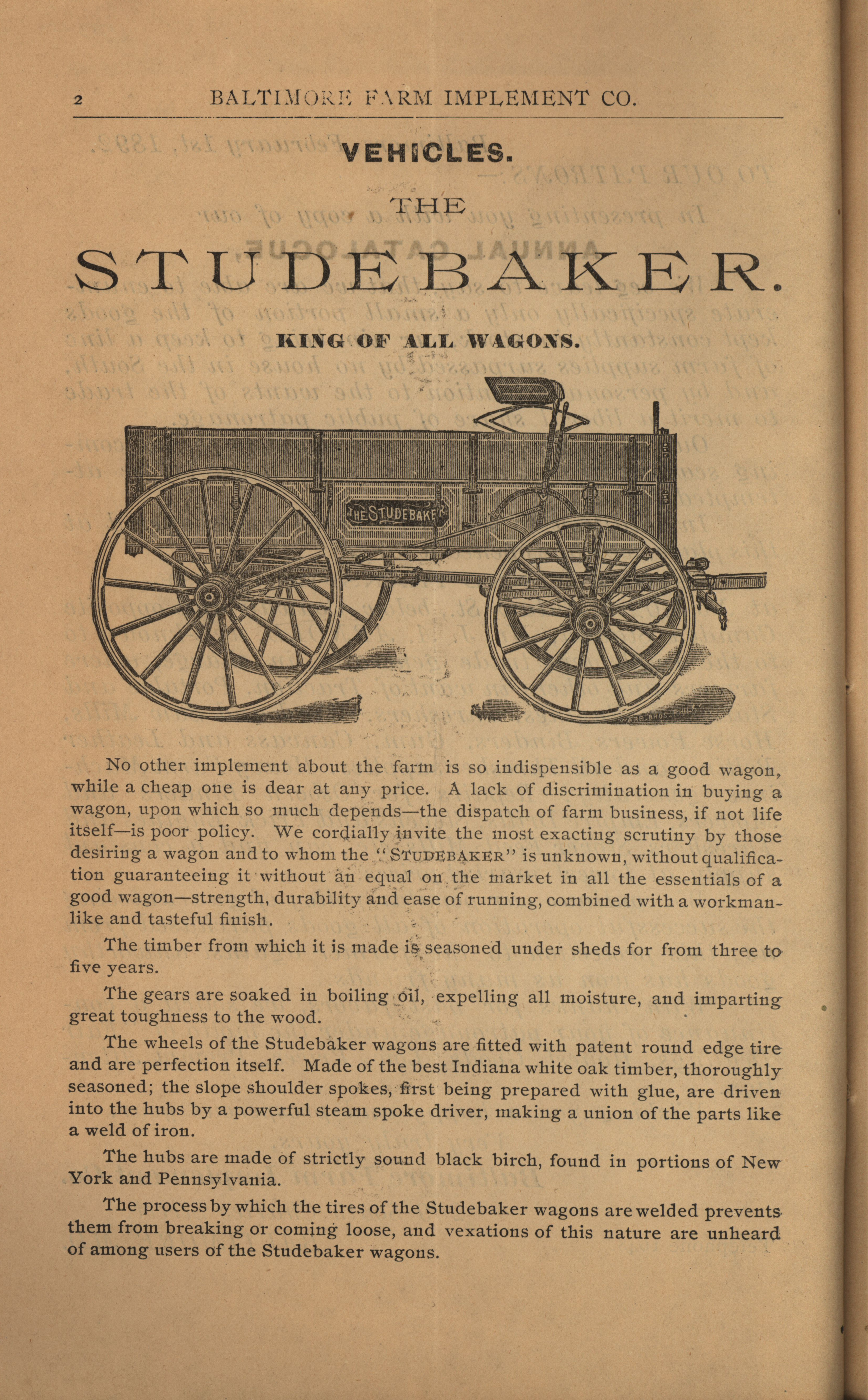 - Illustrated catalog describing the agricultural implements and related products offered by the Baltimore Farm Implement Company in 1892.