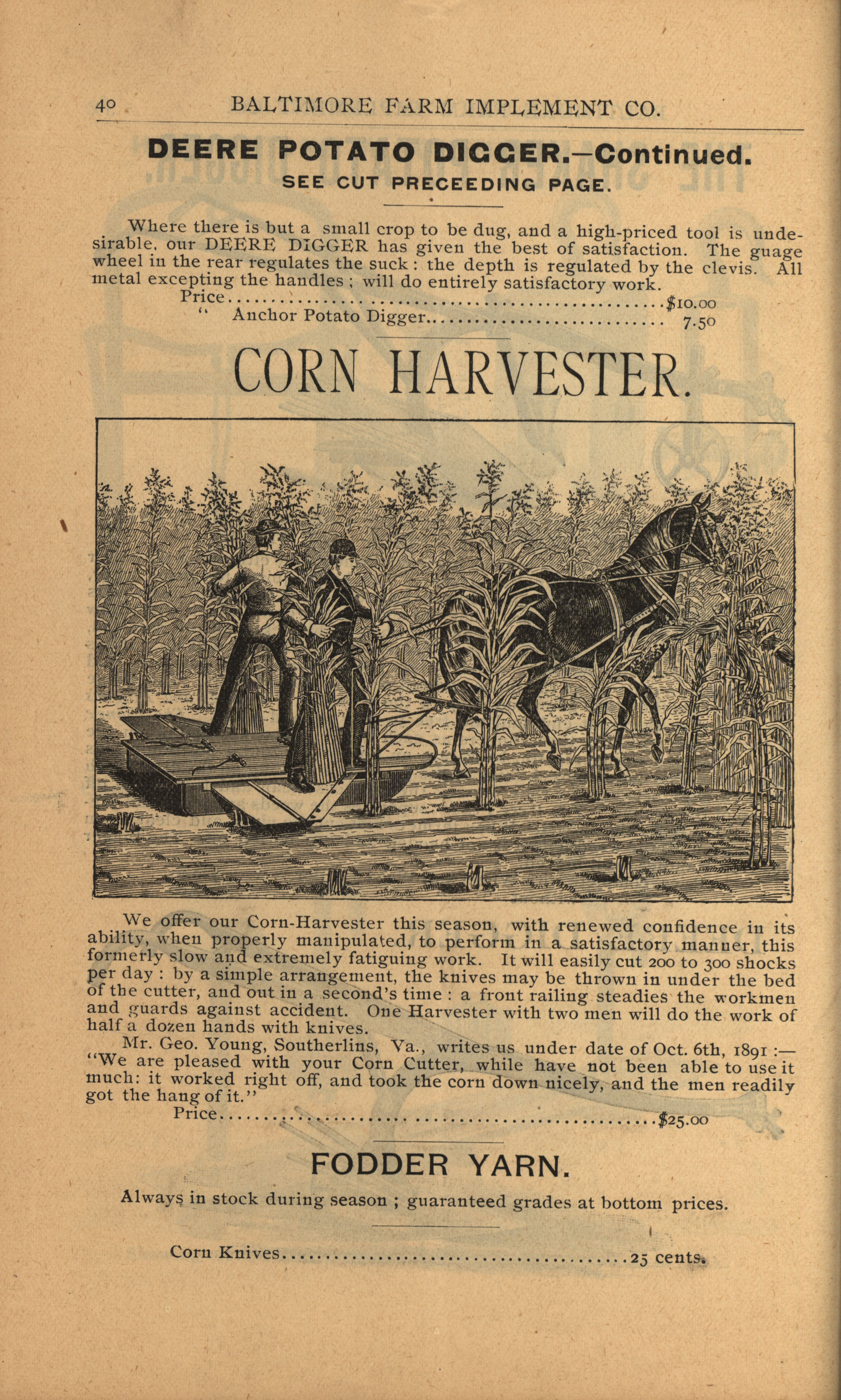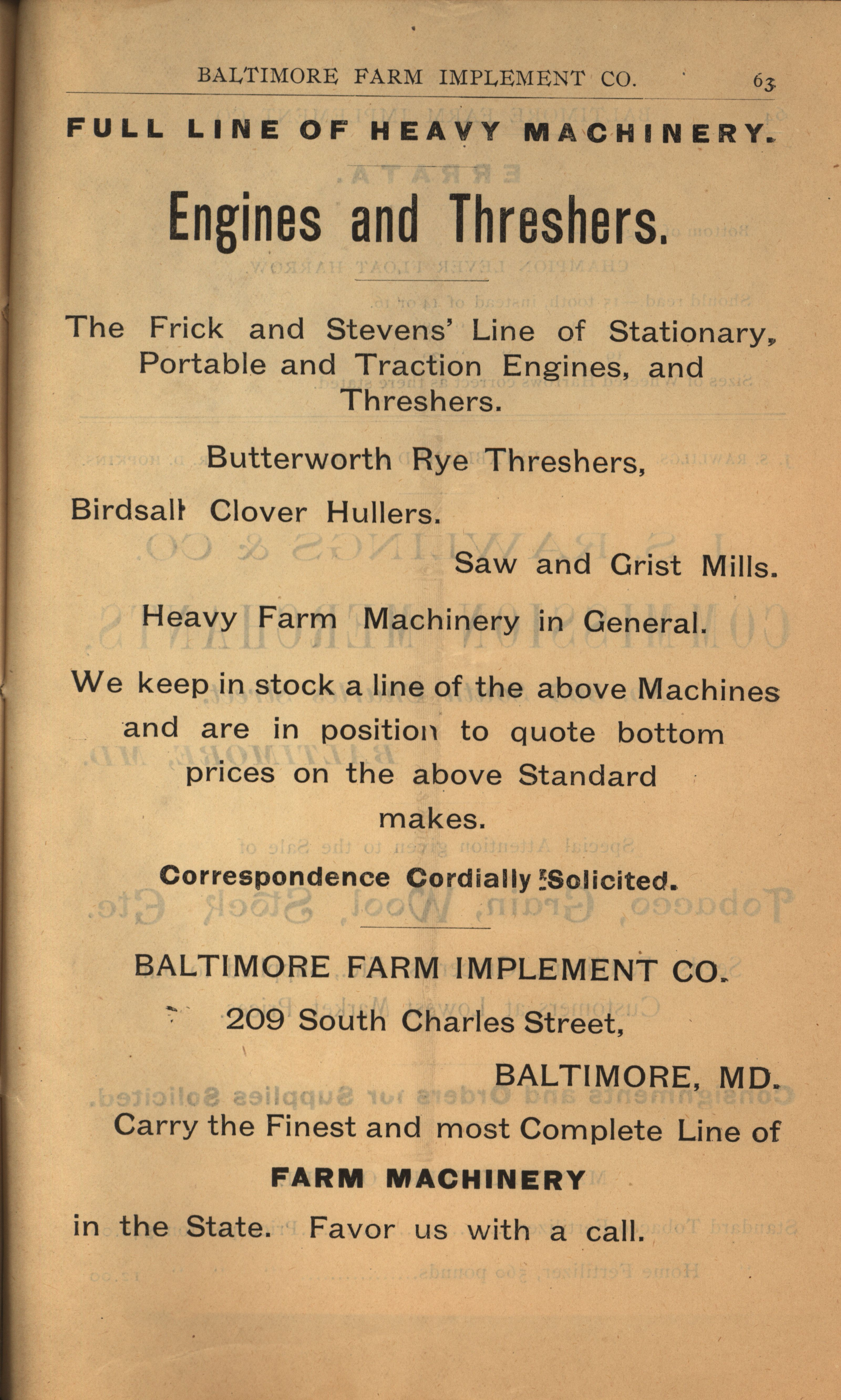 - "Baltimore Farm Implement Company catalog", Agricultural Machinery Literature Collection, Iowa State University Library Digital Collections