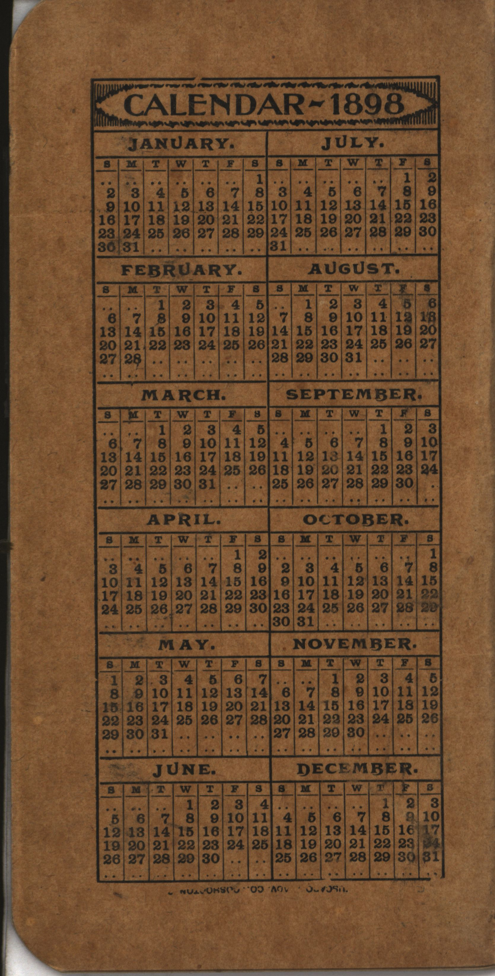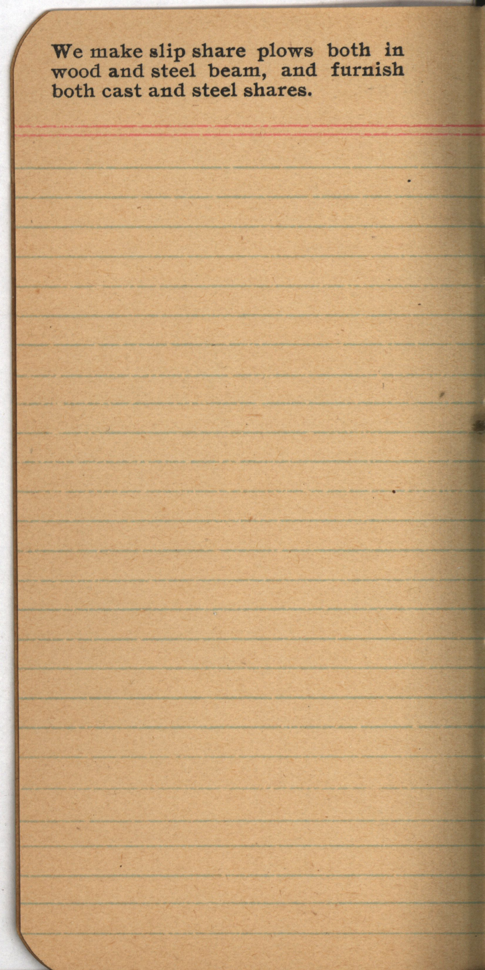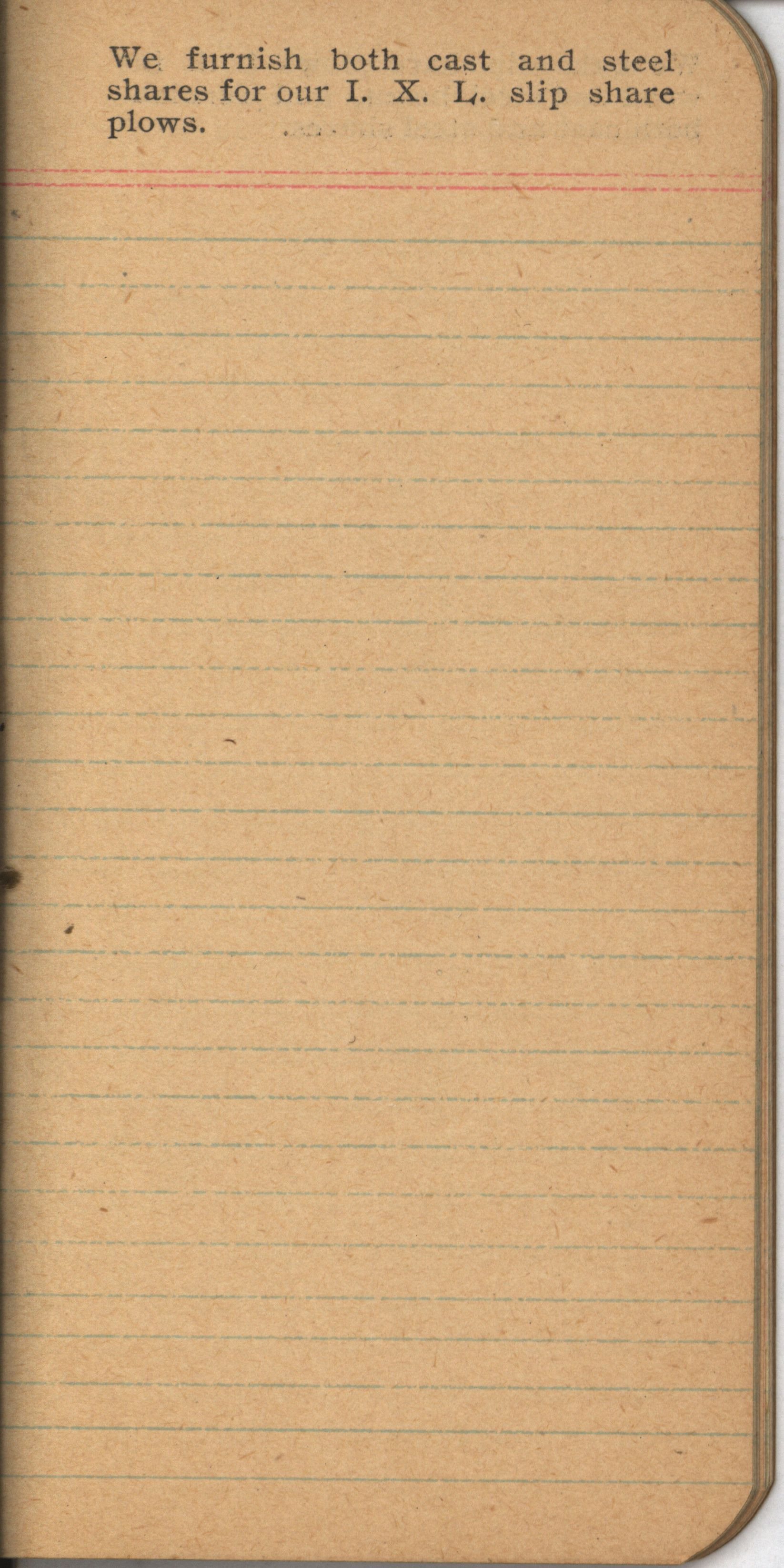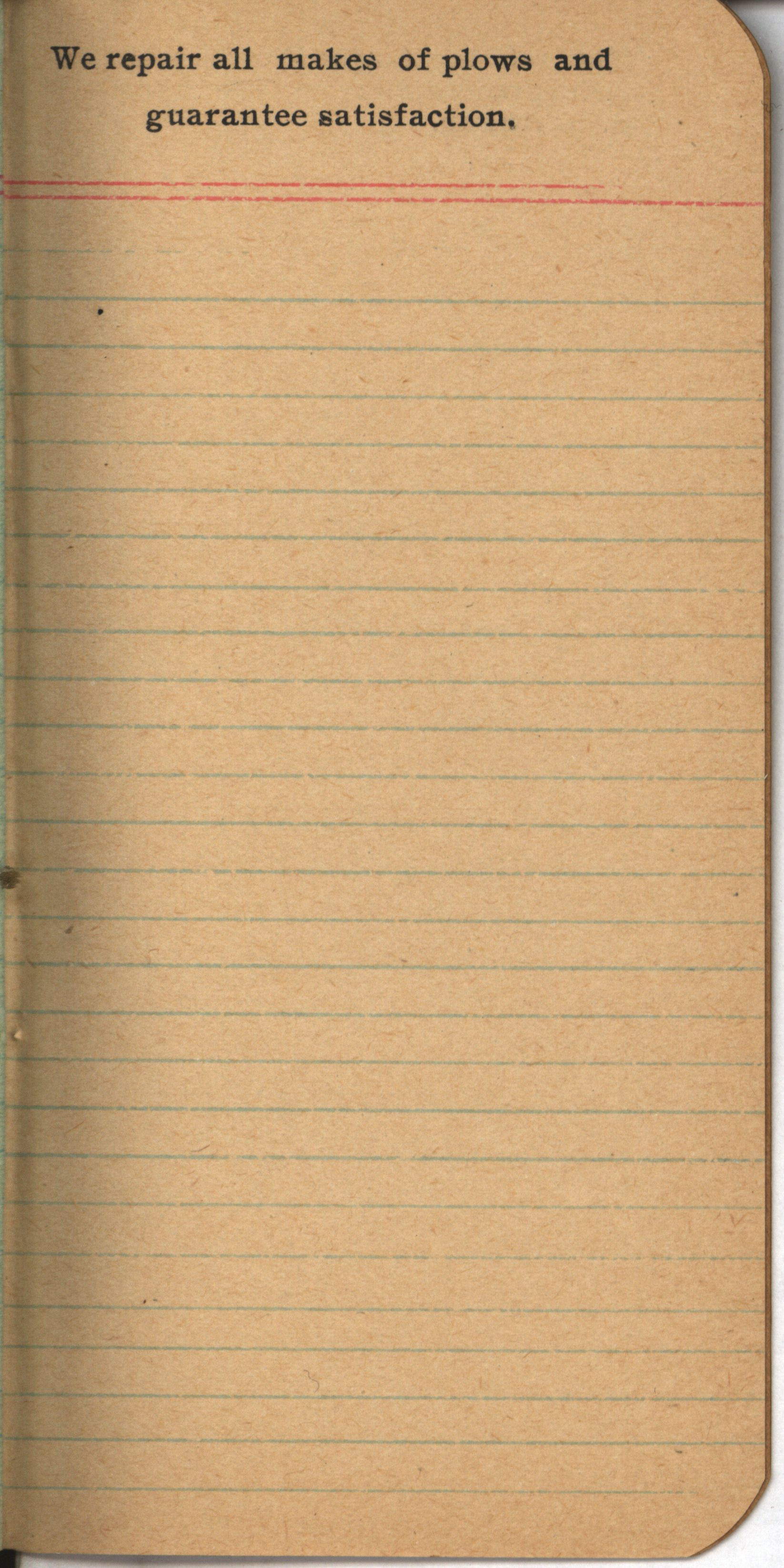 - Pocket book offered by Cast Steel Plow Company for advertising purposes for their Aughe Plow in 1898.