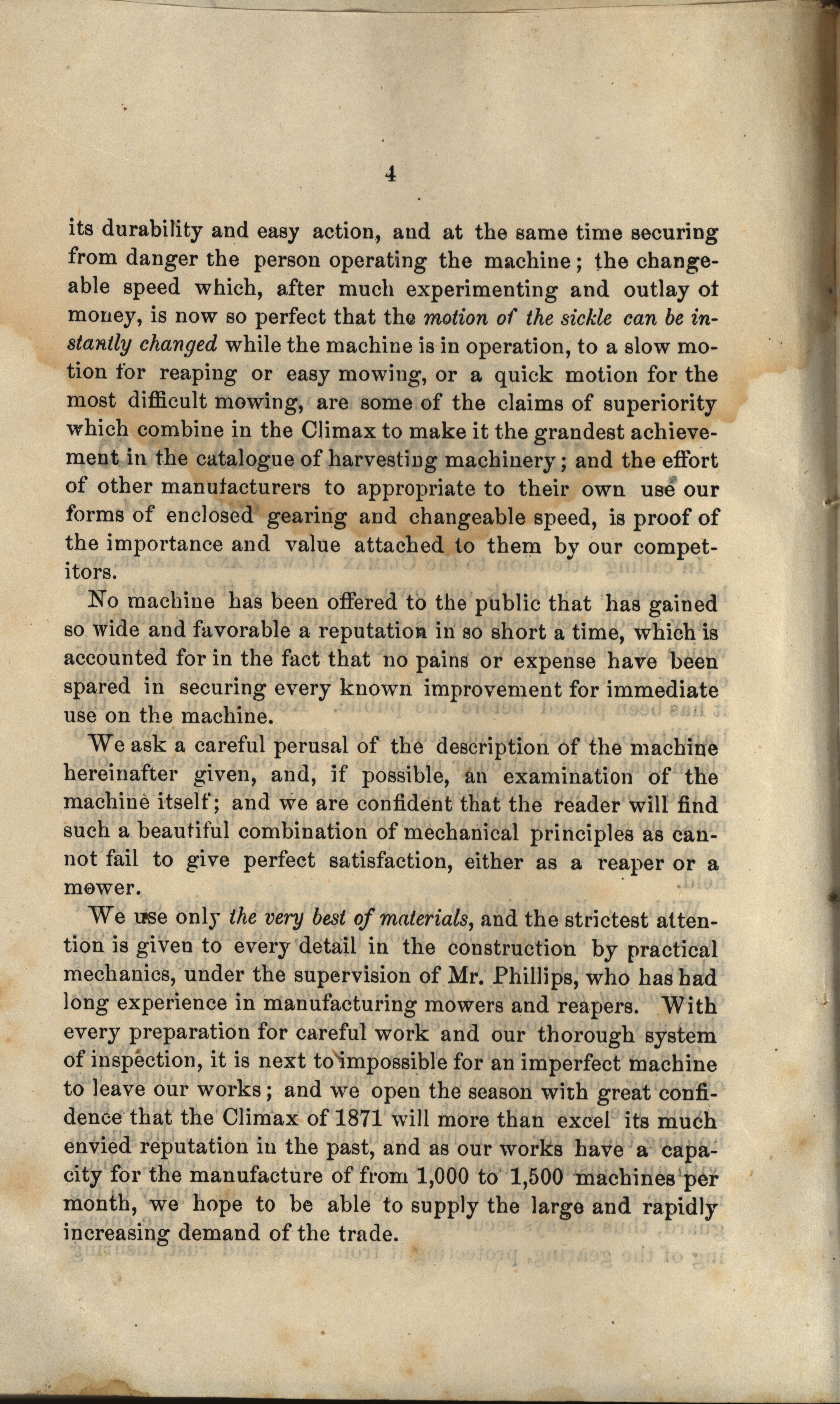 - Illustrated catalog describing the mower and reapers offered by Climax Mower and Reaper Company.