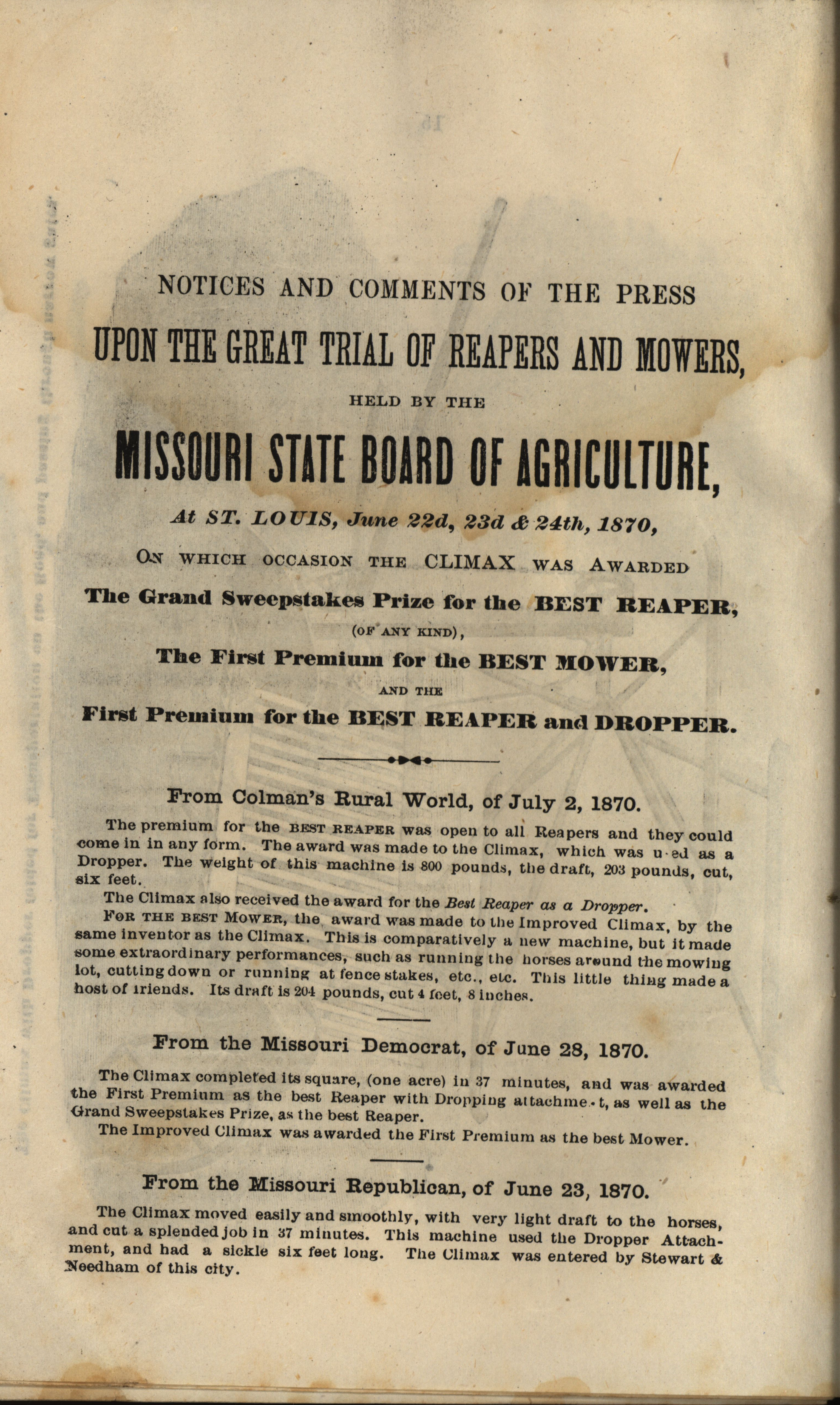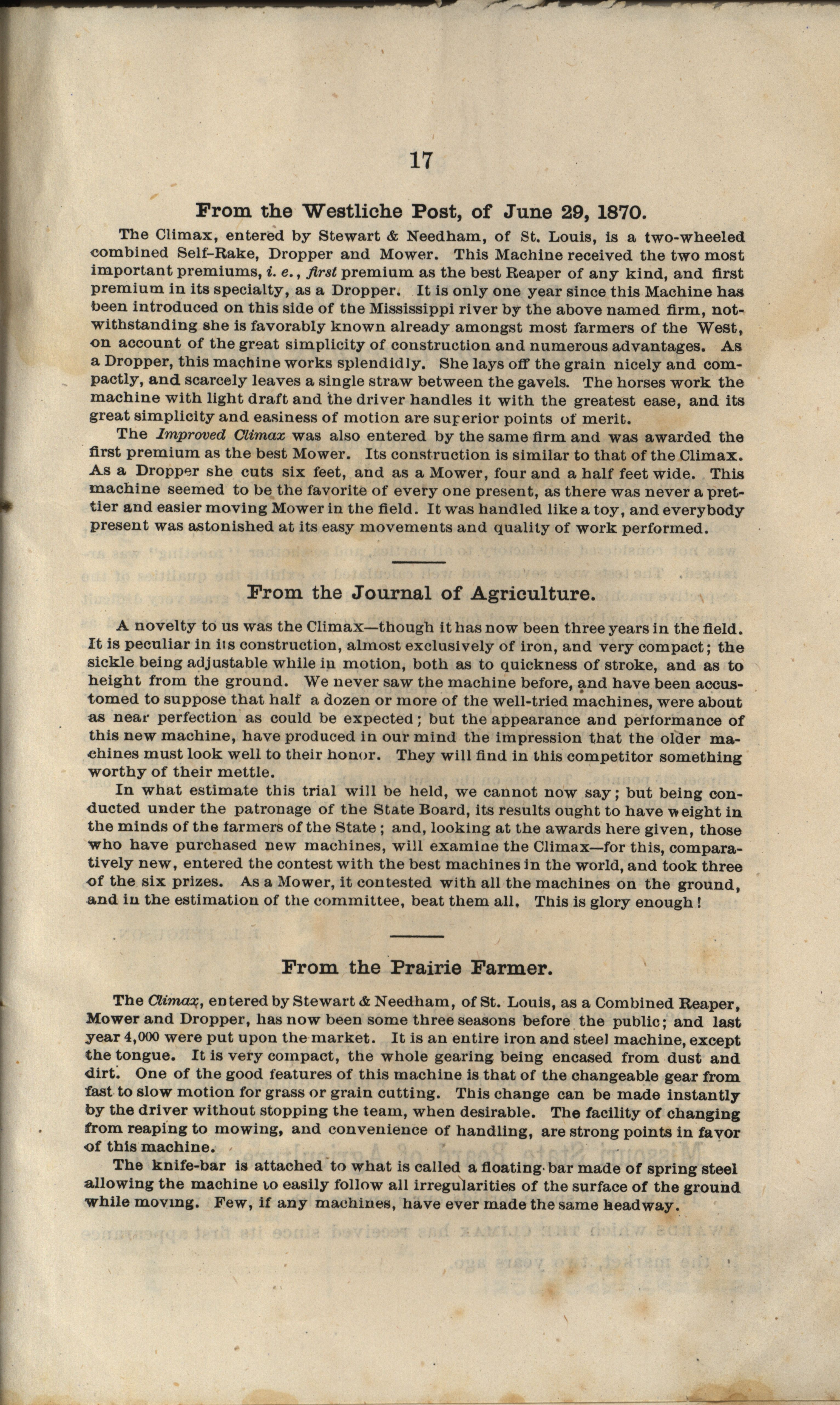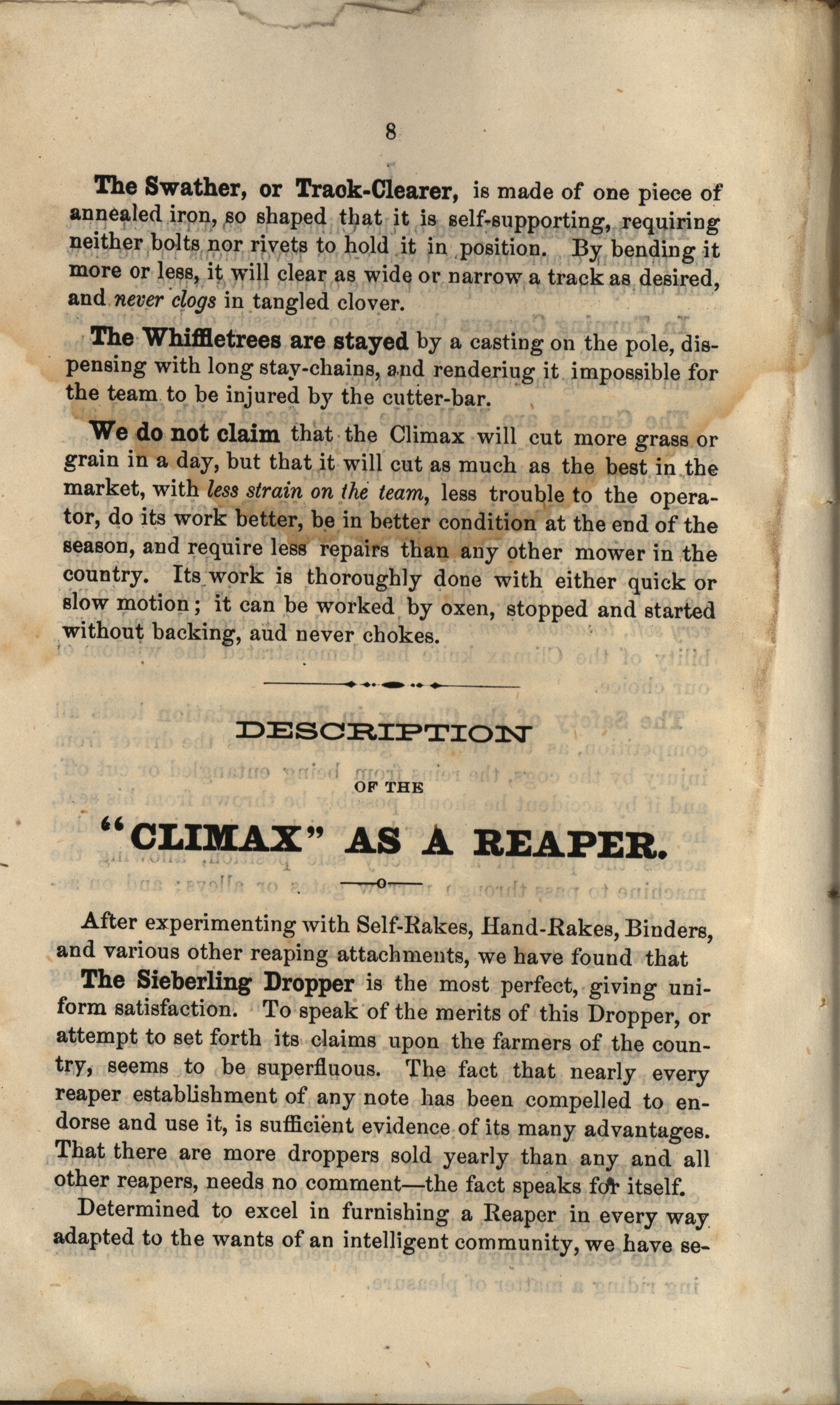 - "Climax Mower and Reaper Company catalog", Agricultural Machinery Literature Collection, Iowa State University Library Digital Collections