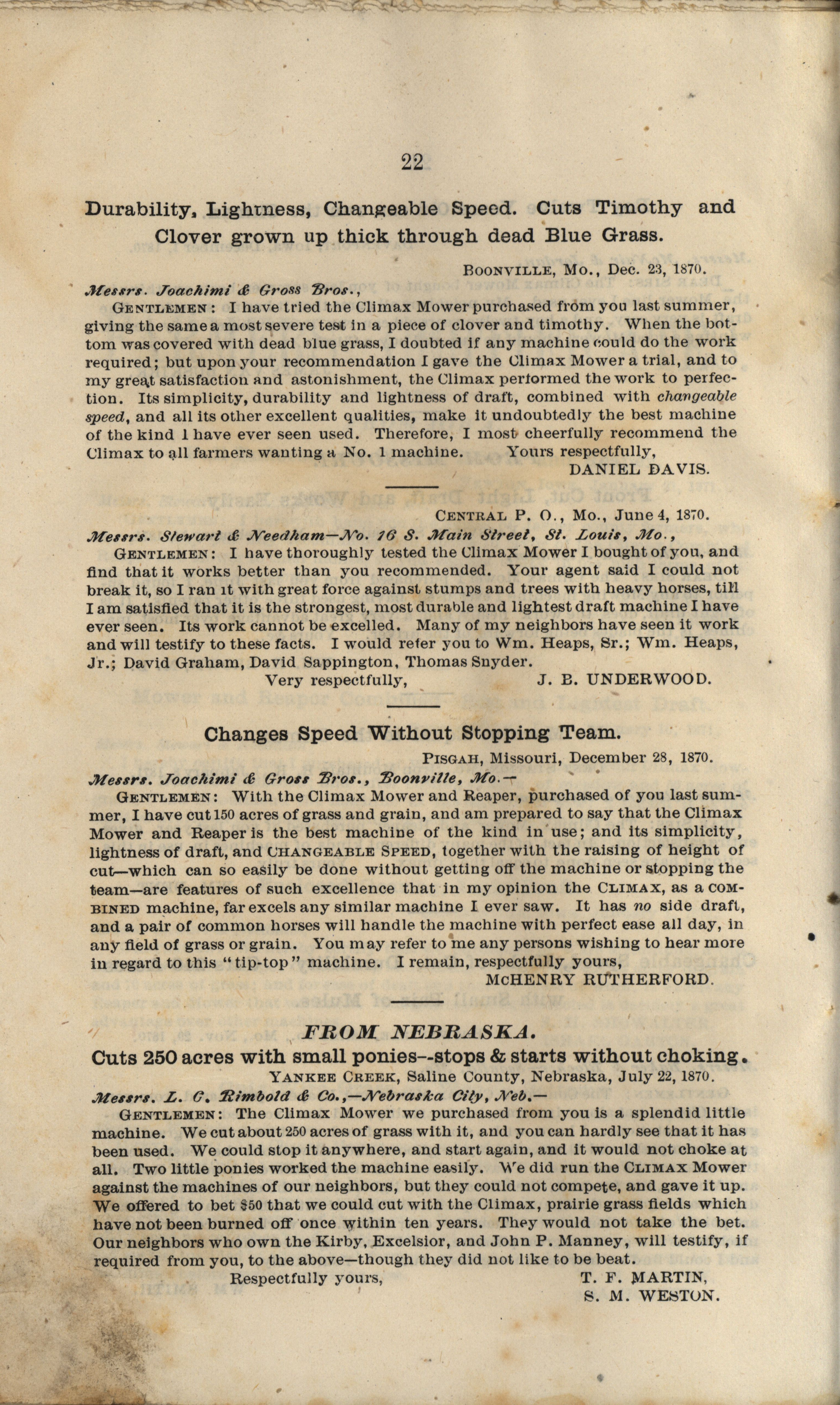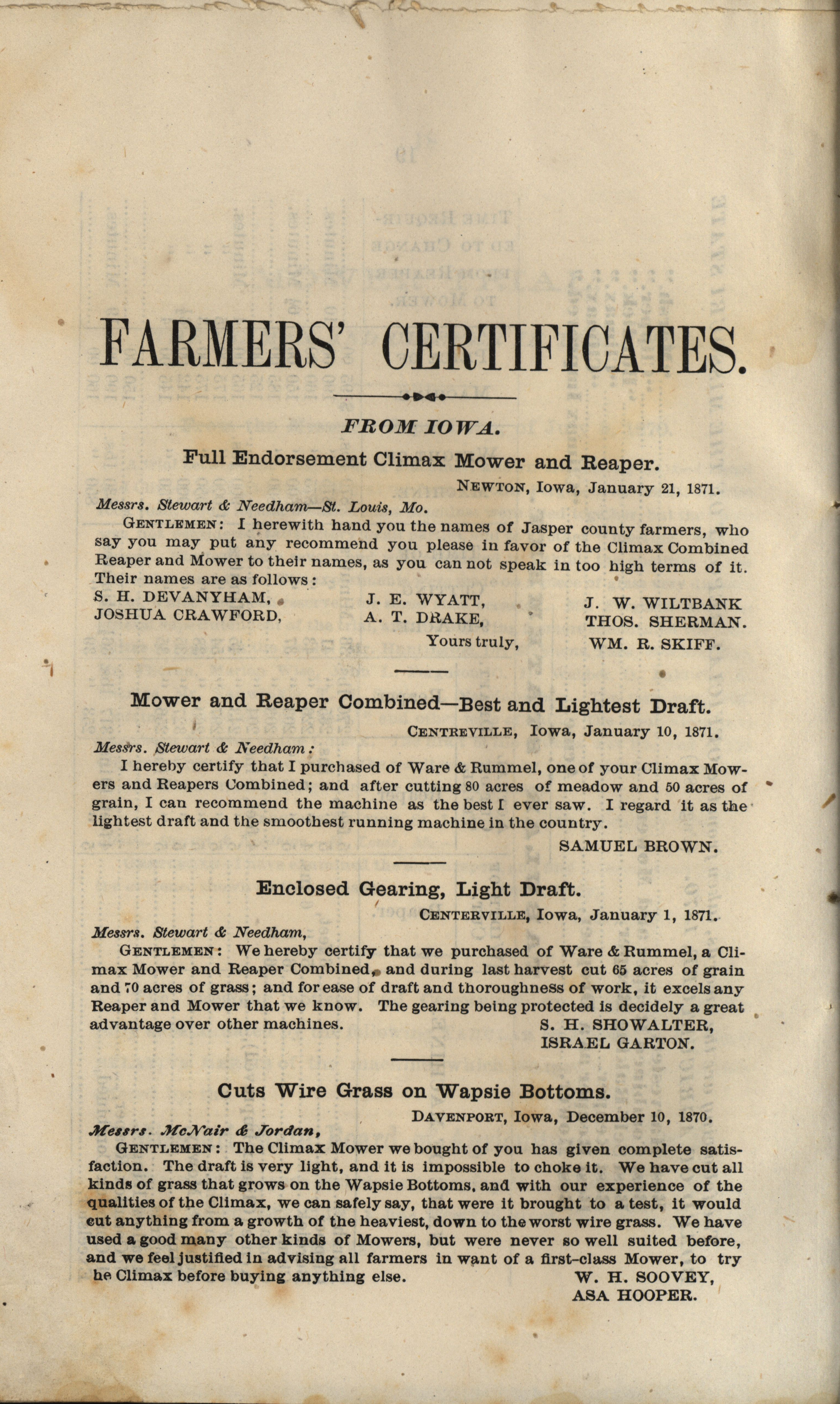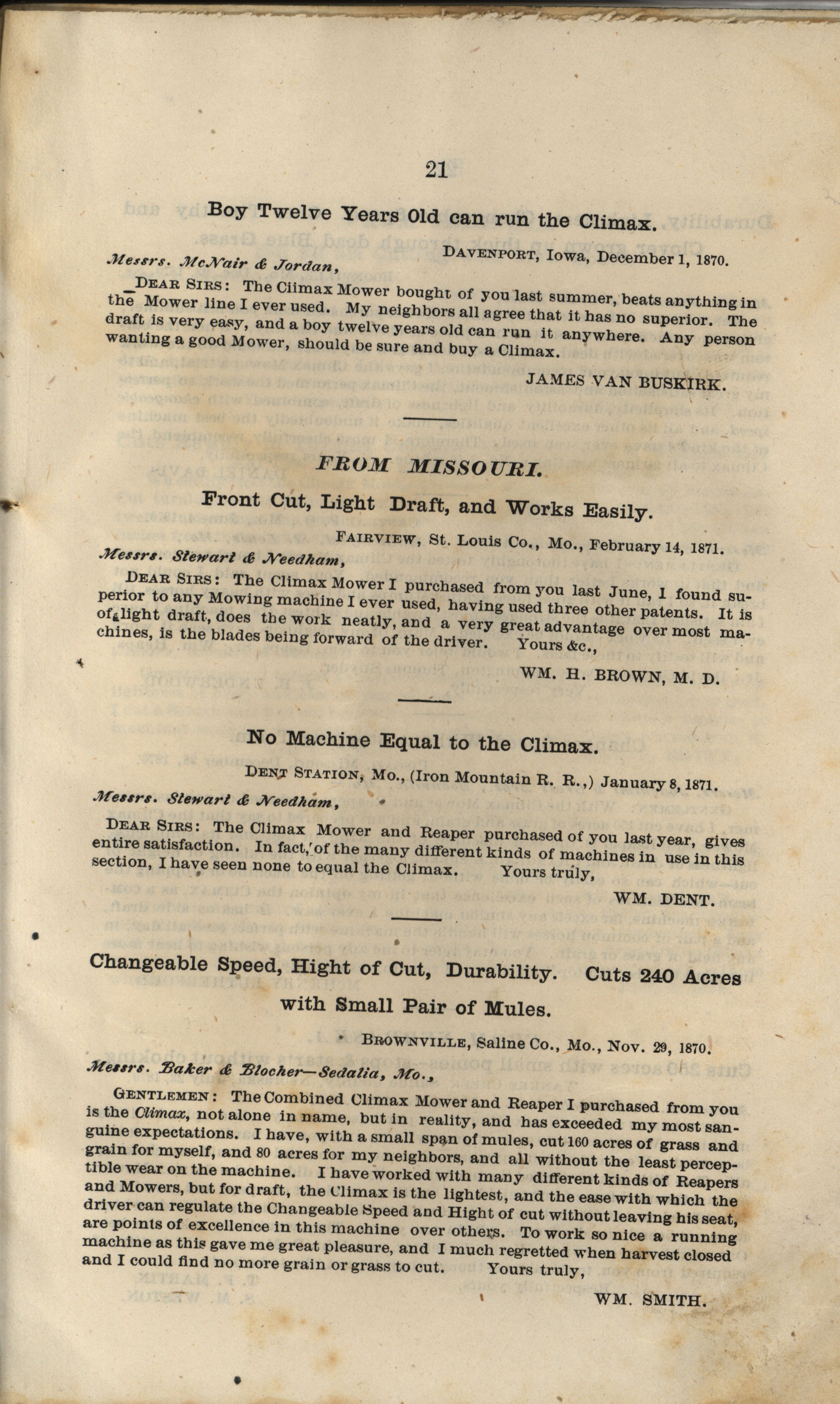 - "Climax Mower and Reaper Company catalog", Agricultural Machinery Literature Collection, Iowa State University Library Digital Collections