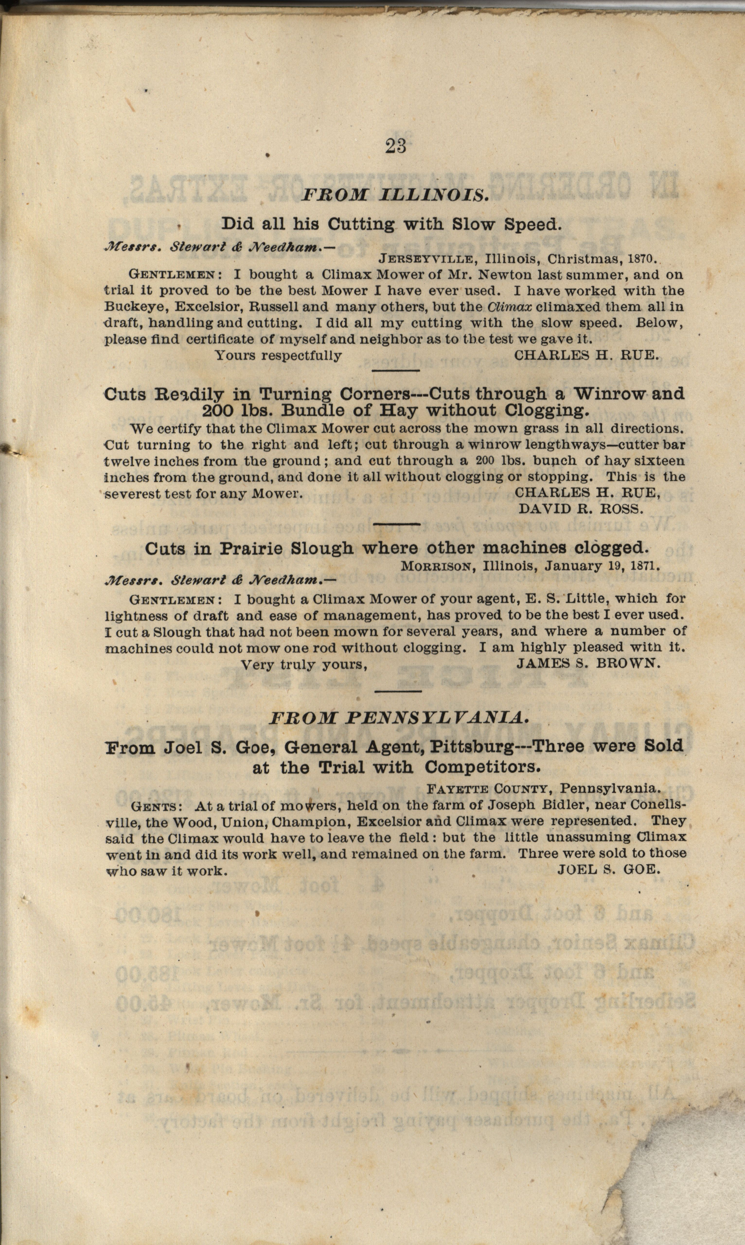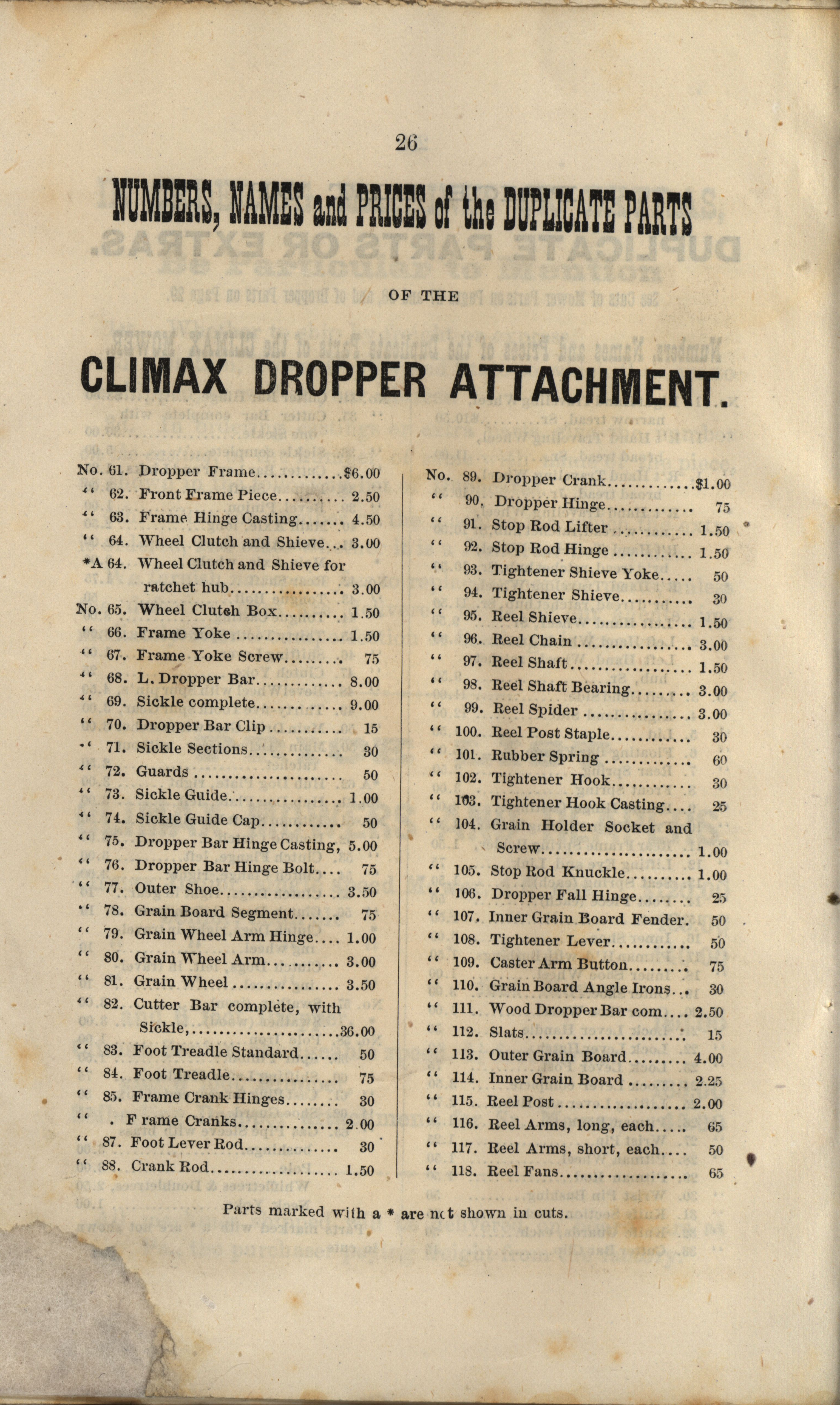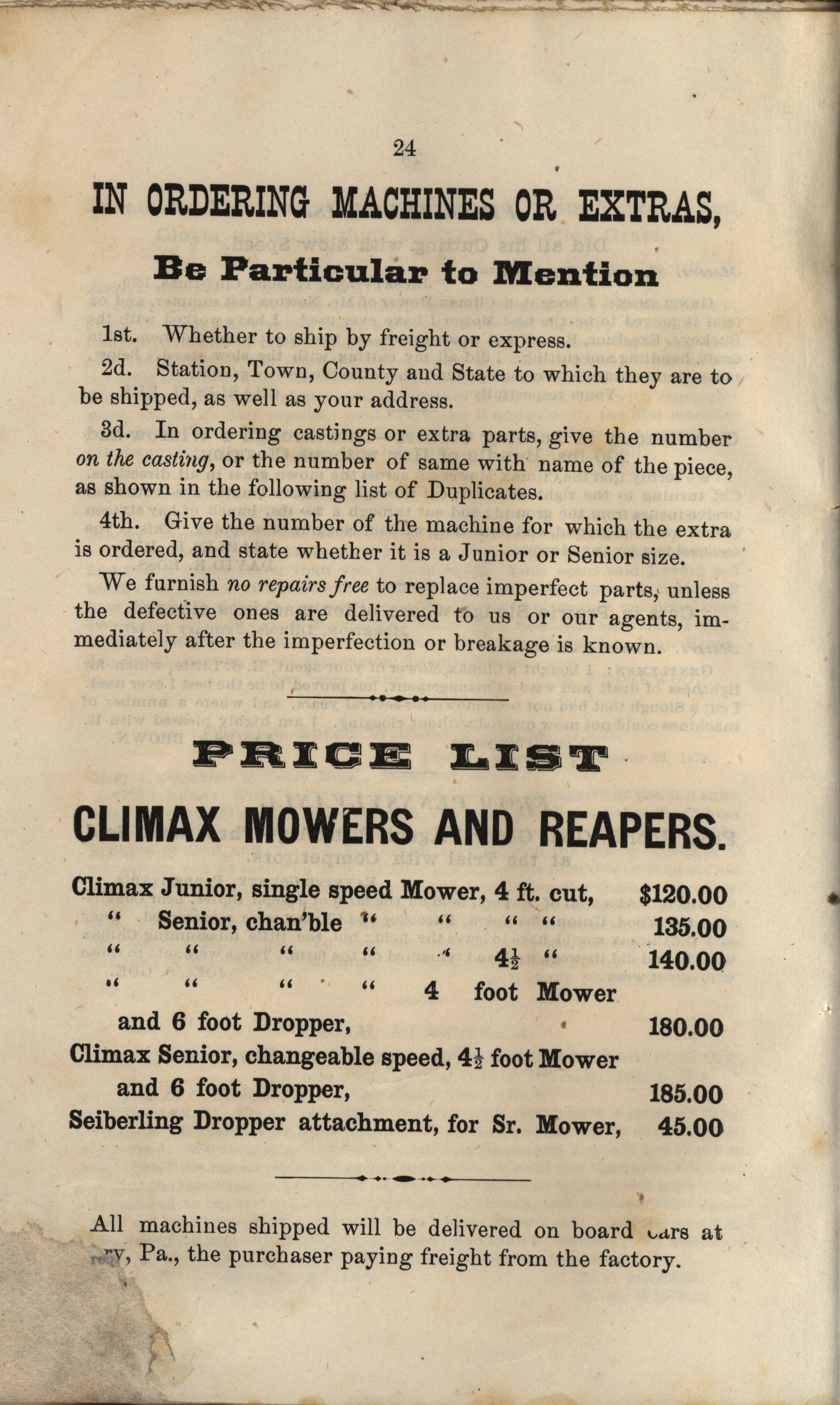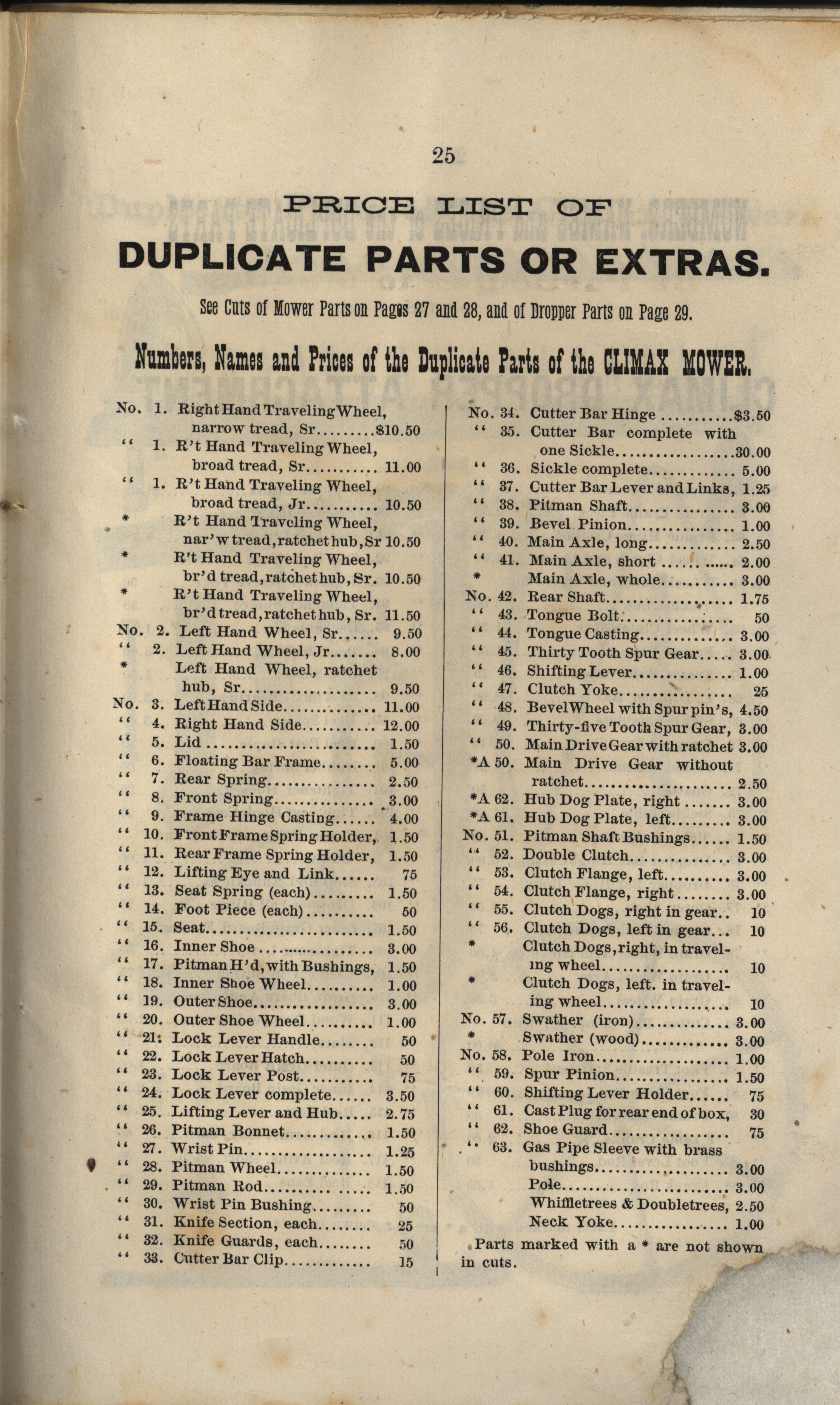 Climax Mower and Reaper Company catalog Item Info