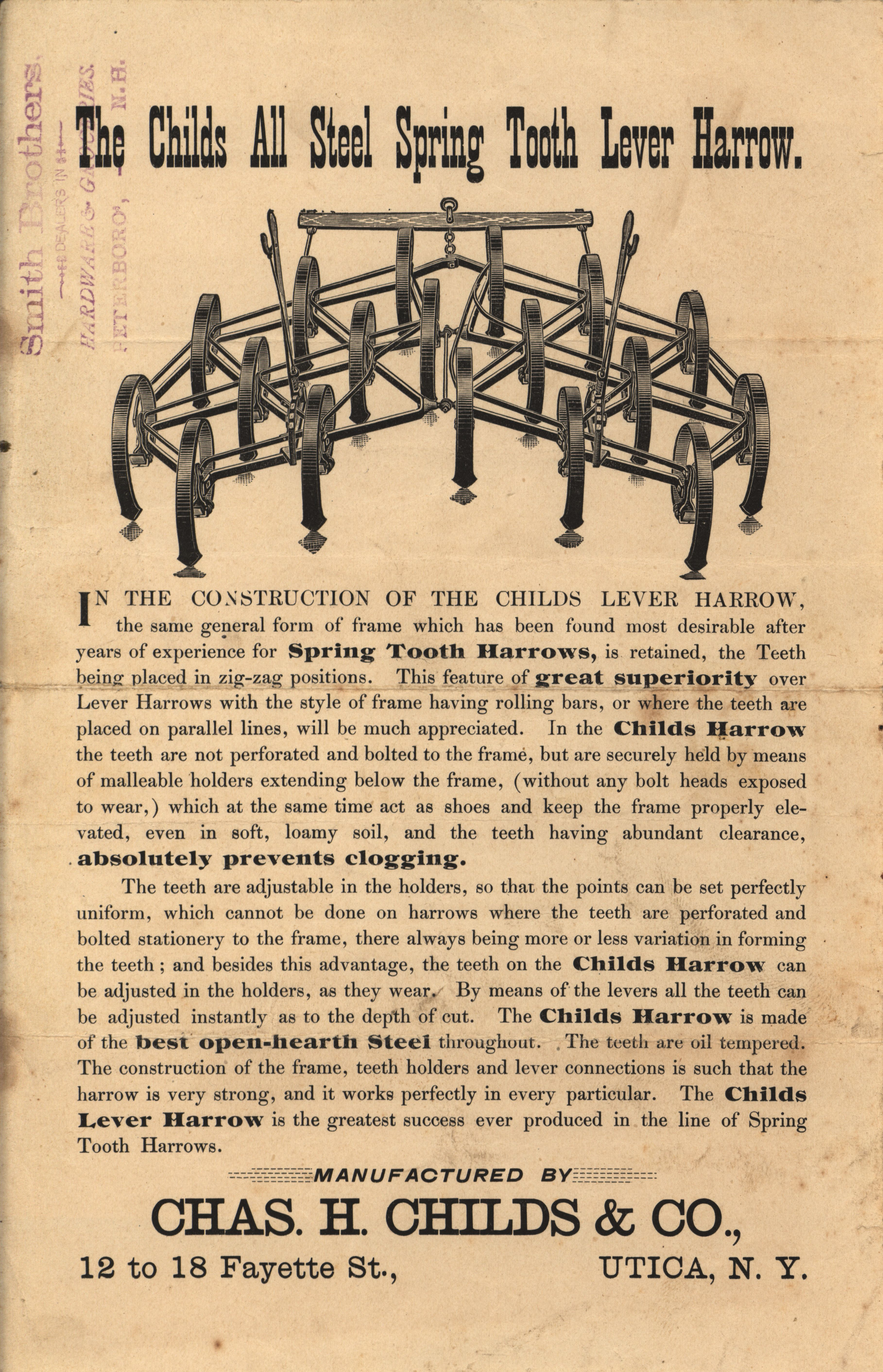 - "Childs All Steel Spring Tooth Lever Harrow advertisement", Agricultural Machinery Literature Collection, Iowa State University Library Digital Collections