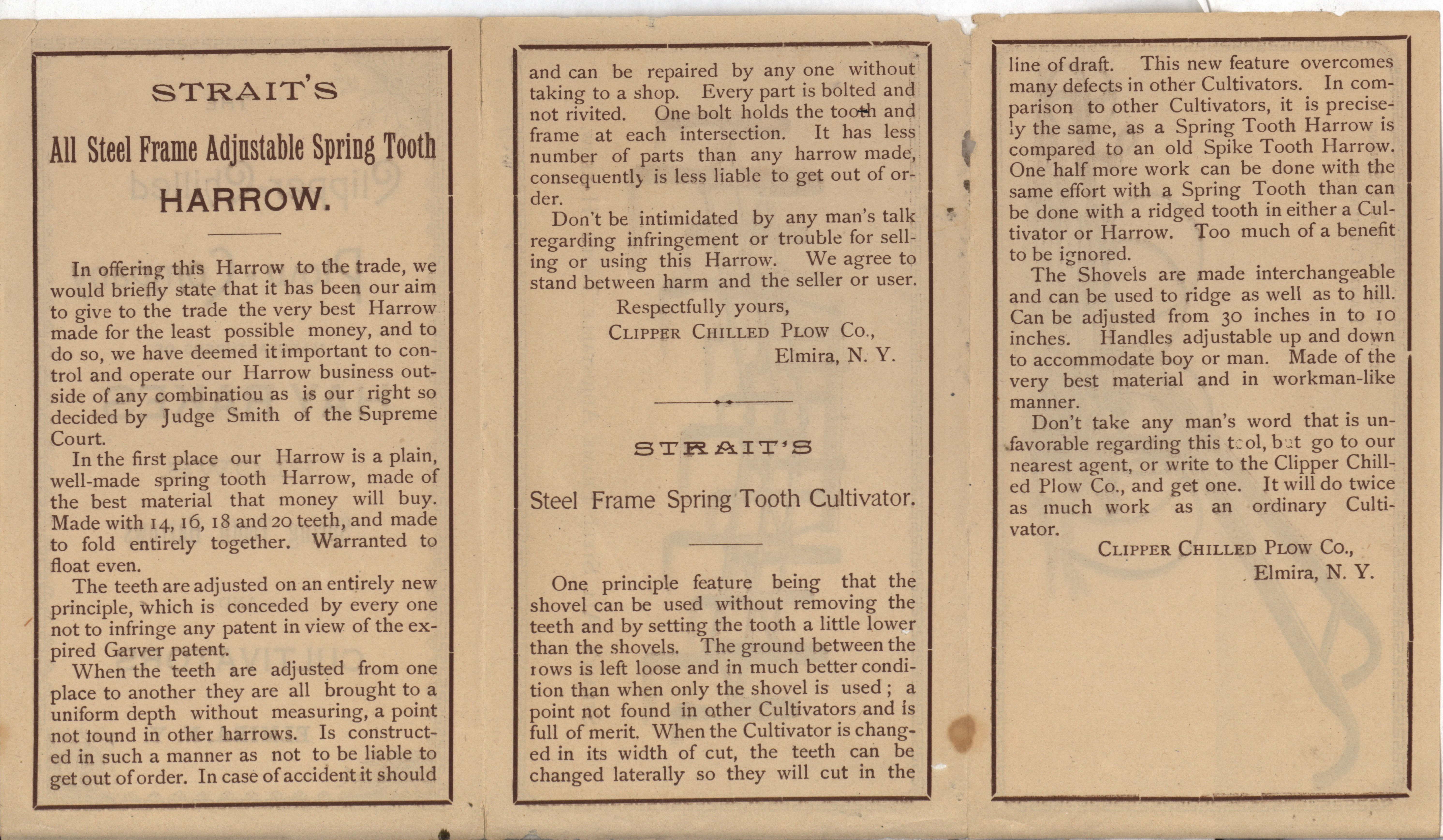 - Clipper Chilled Plow Company hay rakes, plows, spring tooth harrows, and cultivators advertisement pamphlet