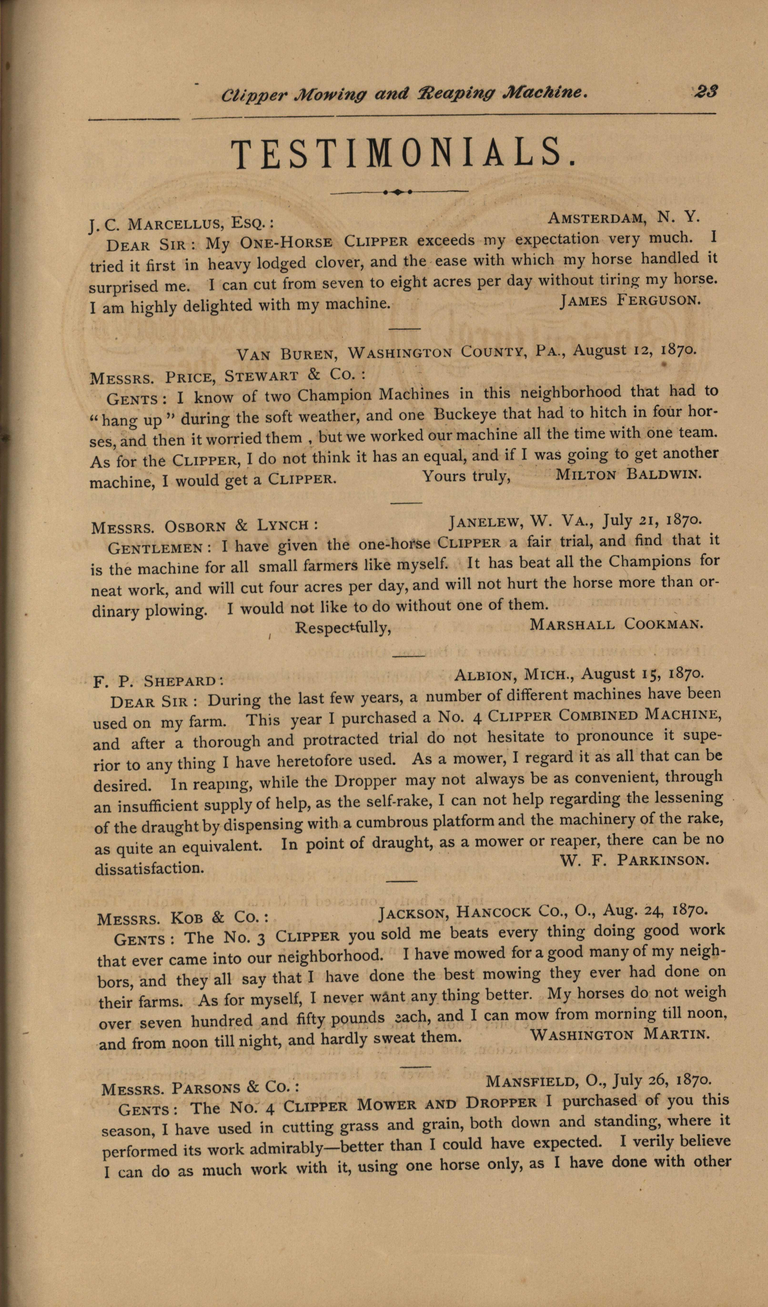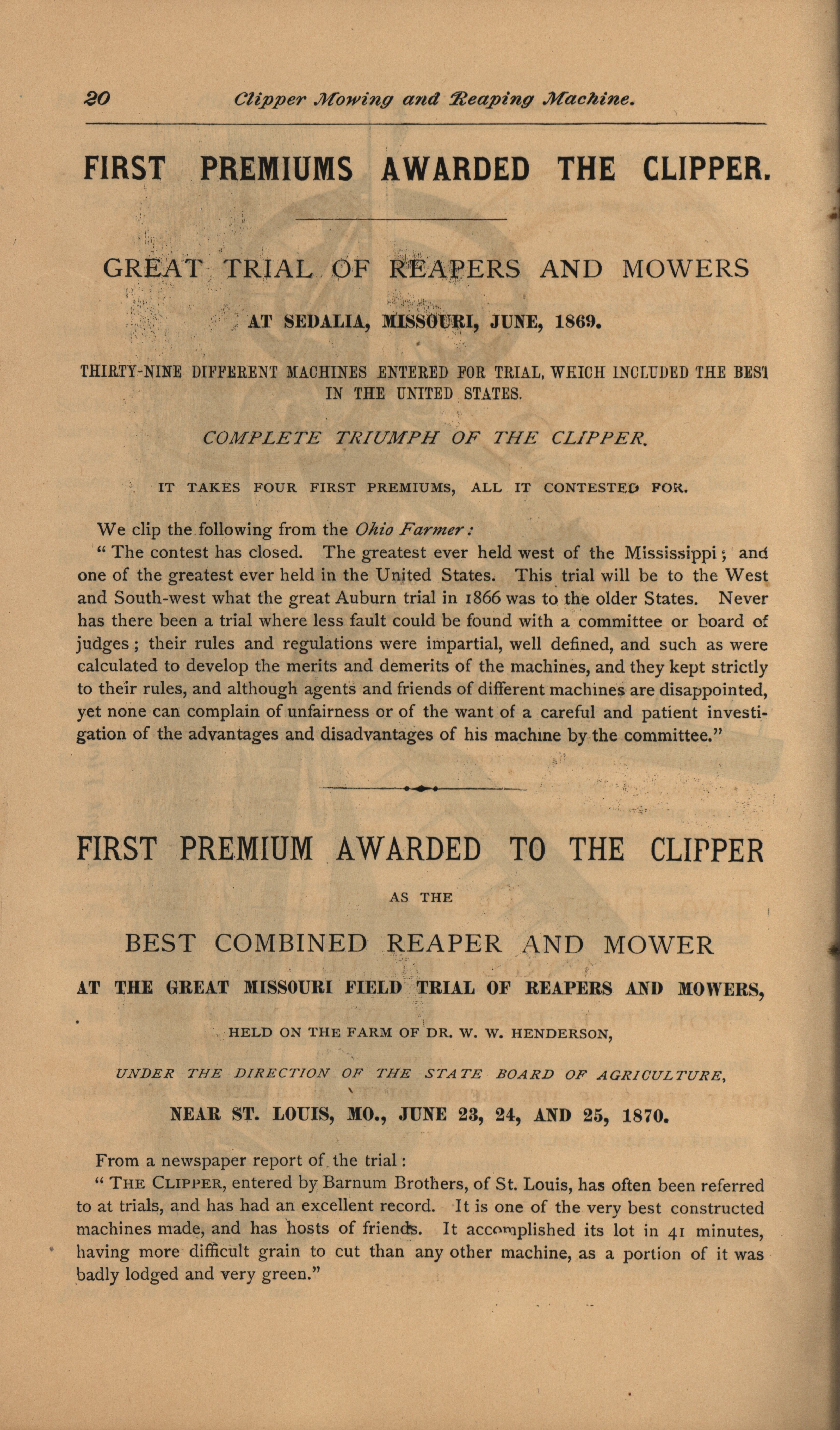 - "Clipper Mower and Reaper Company catalog", Agricultural Machinery Literature Collection, Iowa State University Library Digital Collections