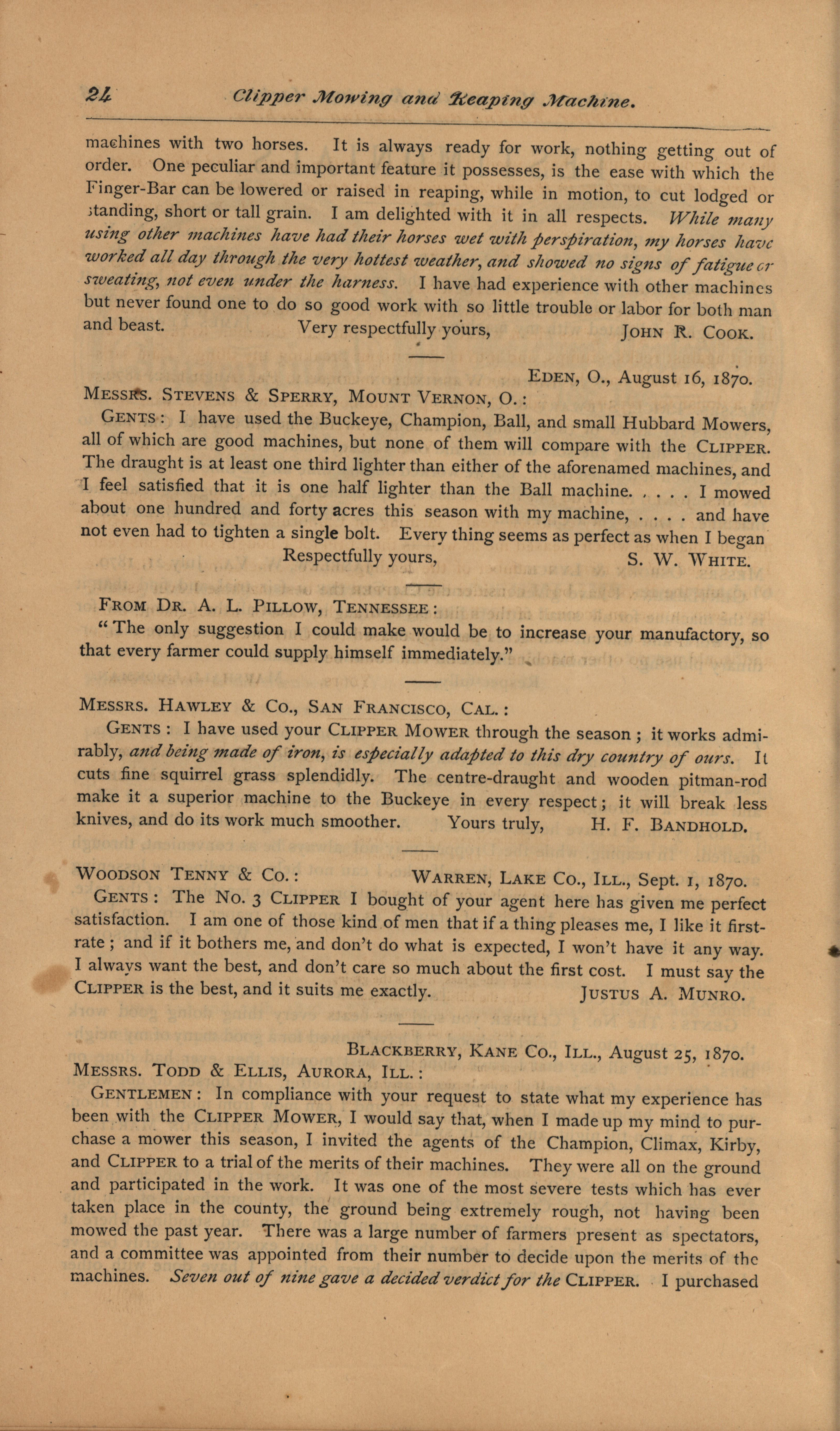 - Clipper Mower and Reaper Company catalog