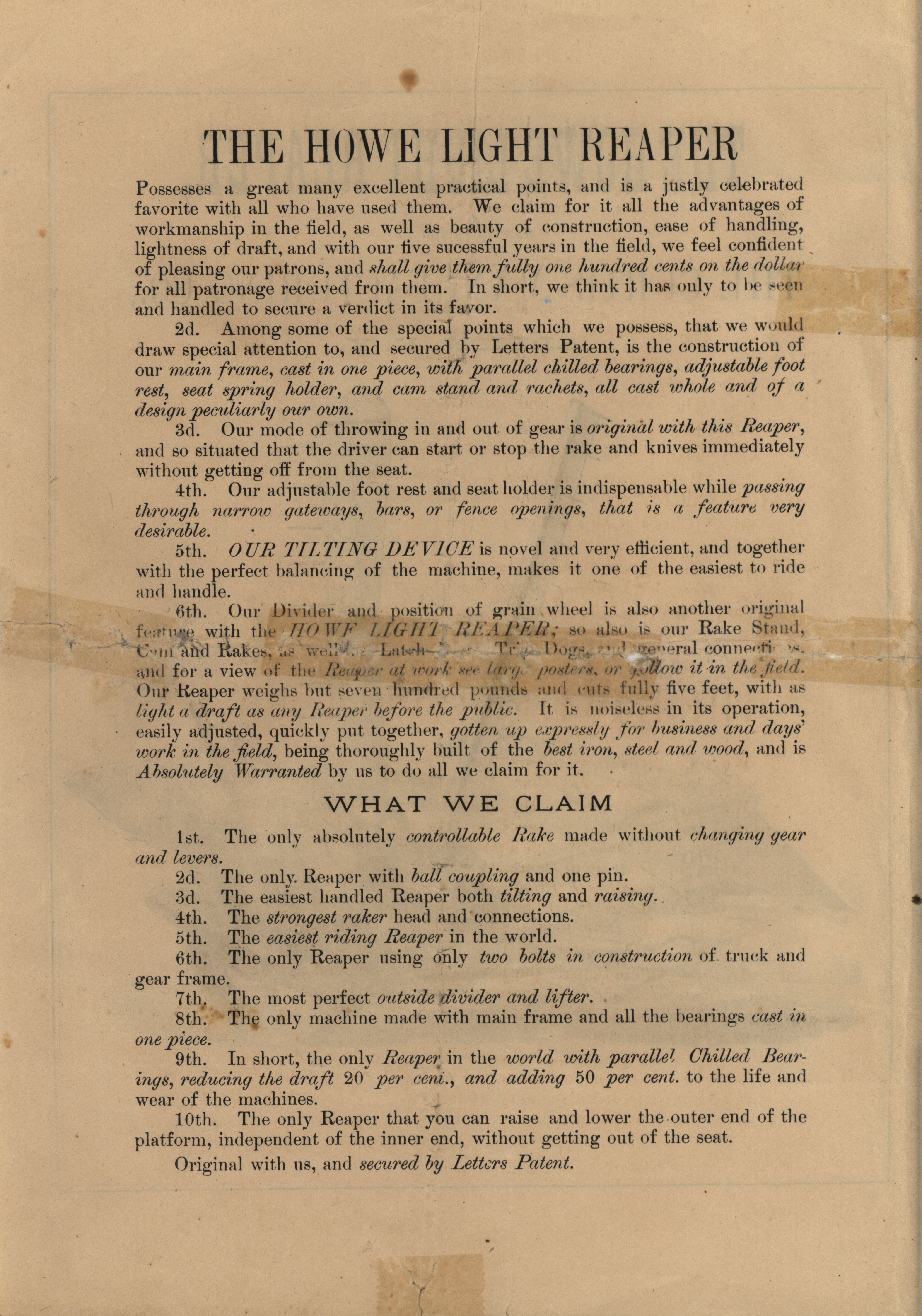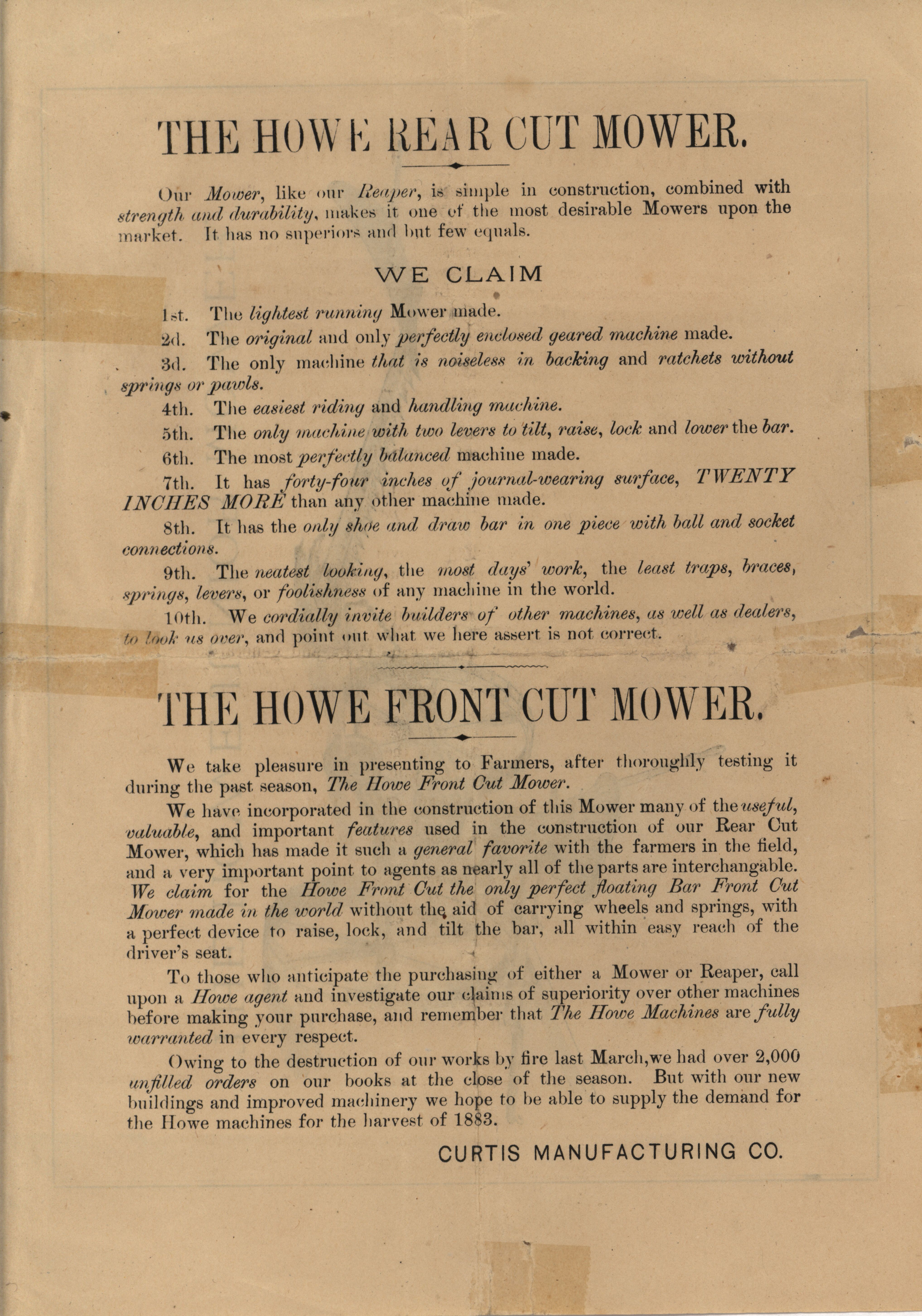 - "Curtis Manufacturing Company reapers and mowers advertisement", Agricultural Machinery Literature Collection, Iowa State University Library Digital Collections